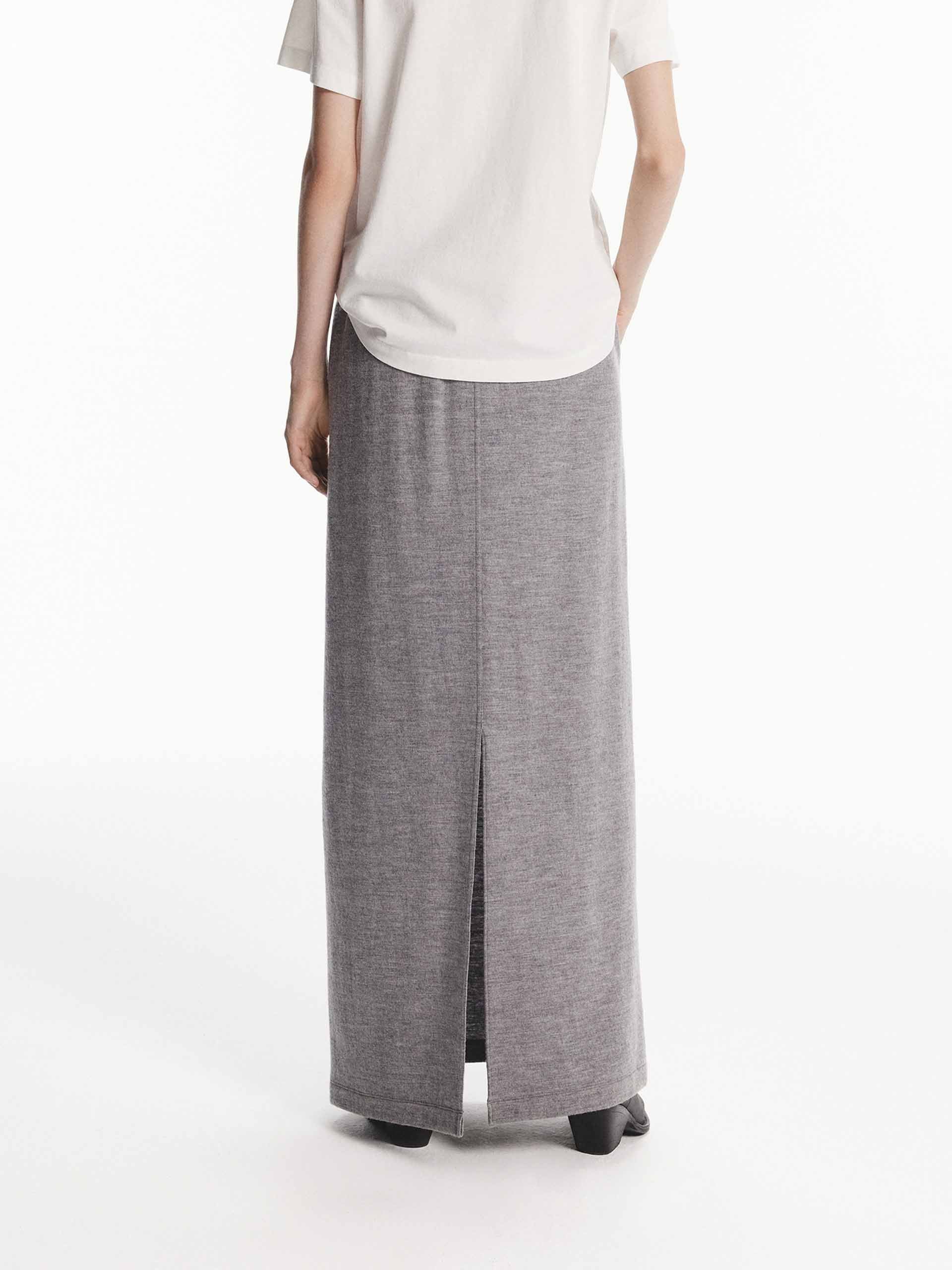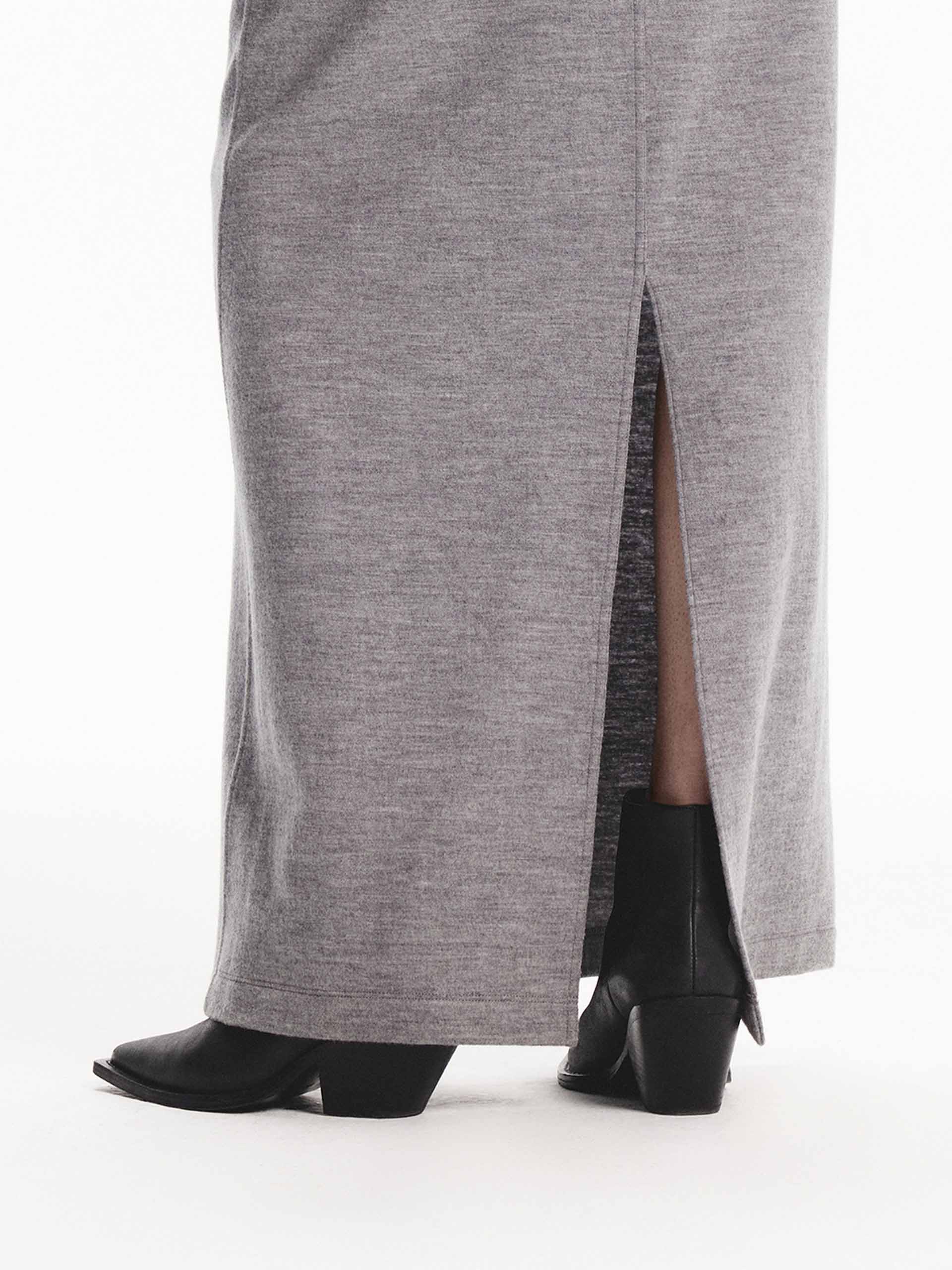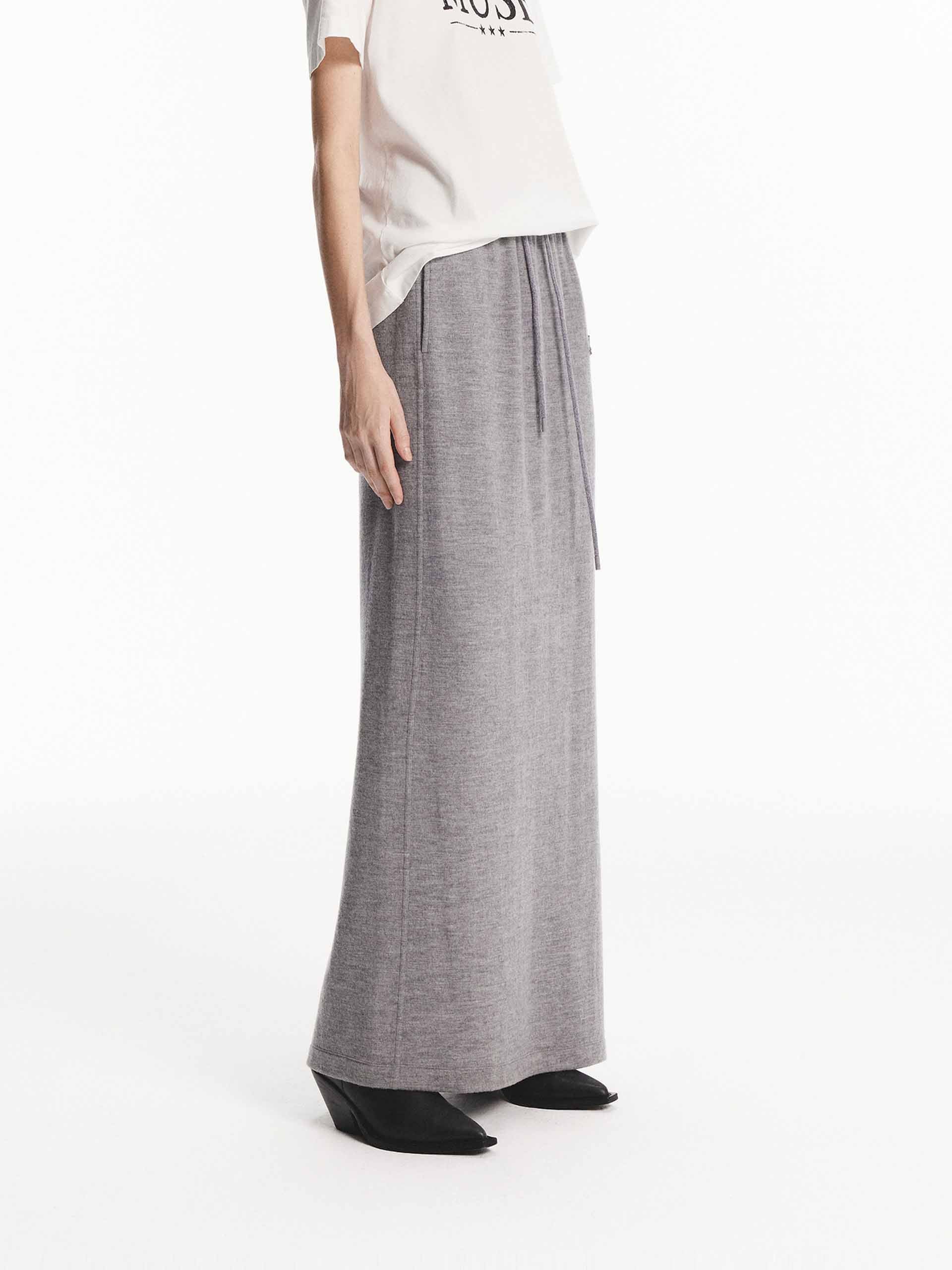 This skirt is a stylish and comfortable maxi silhouette made from 100% wool. Designed in a straight cut falls gracefully to the floor, and the drawstring waist allows for a customizable fit, while the side pocket adds a practical touch.