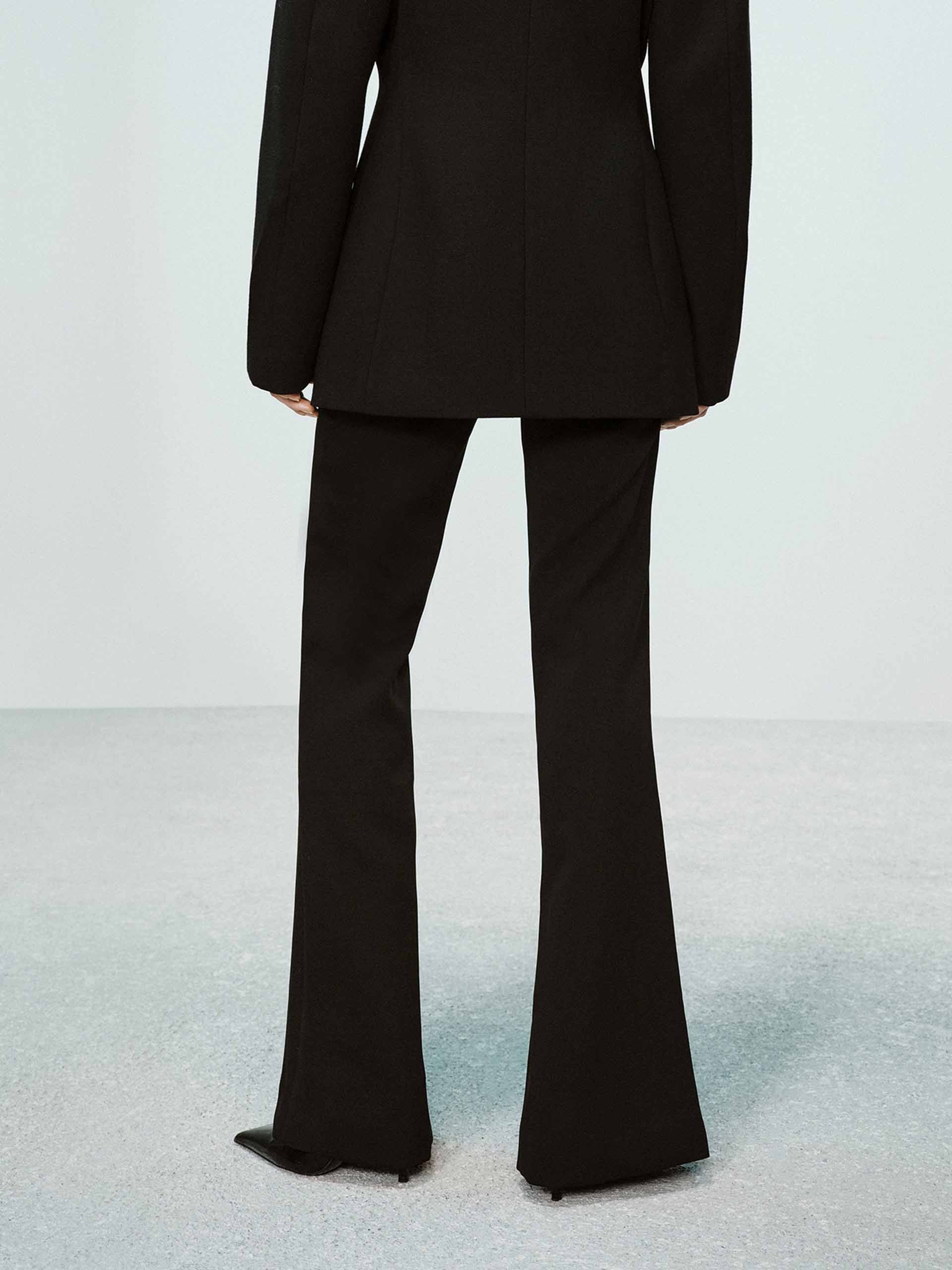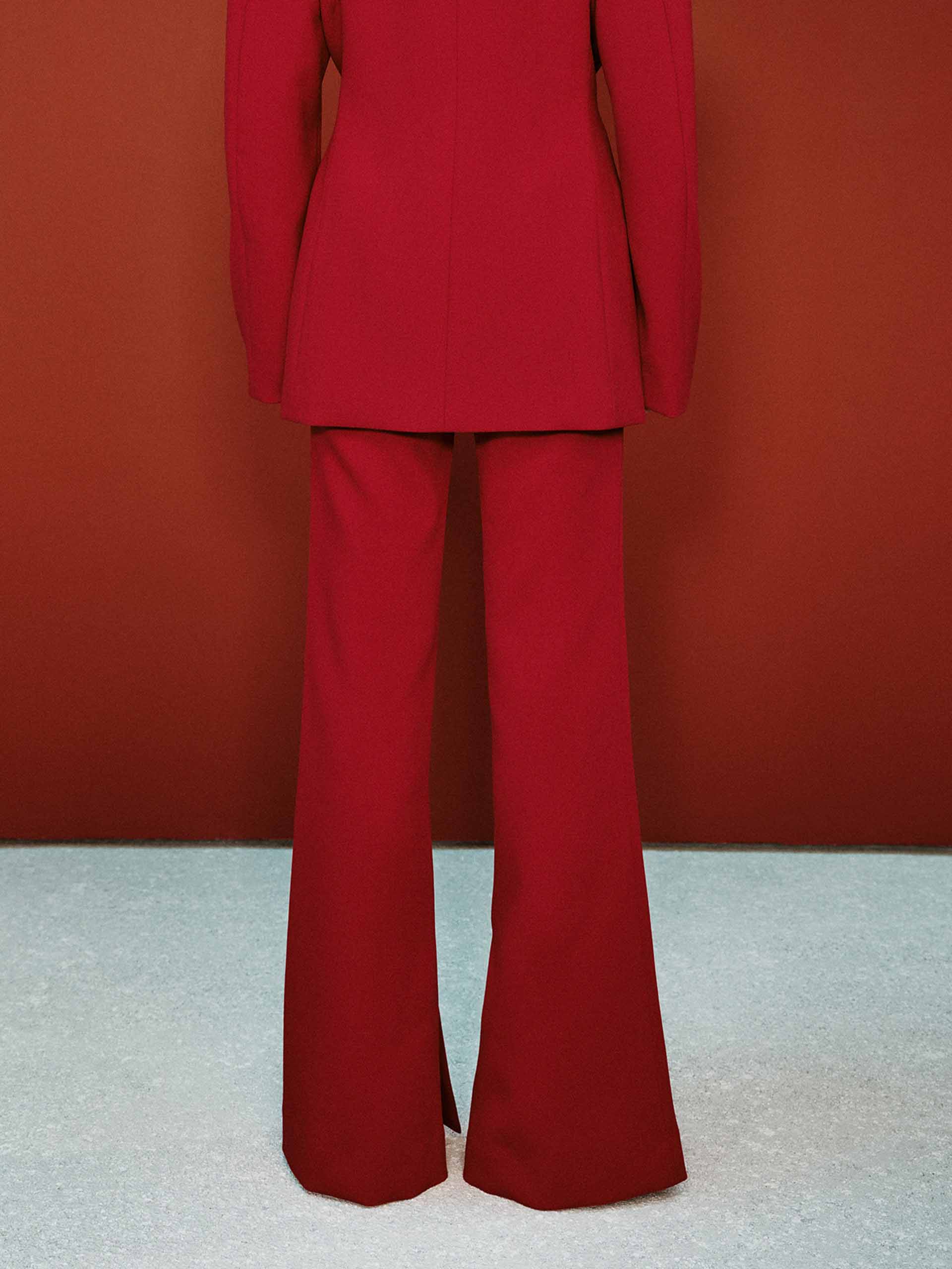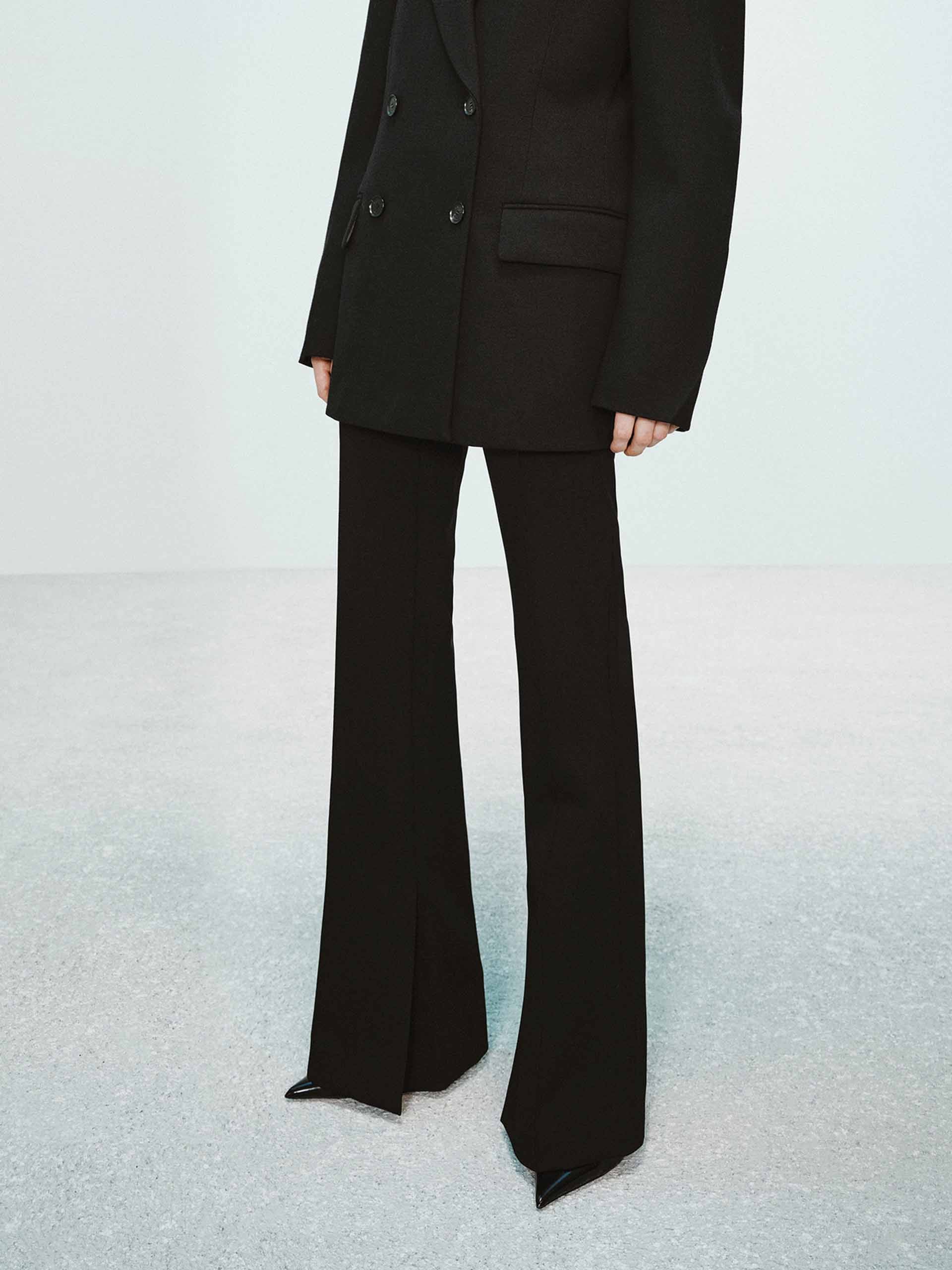 Made from high-quality fabric, they offer a comfortable fit with a crisp, drape shape. These pants have a high waist and flared hem to provide a flattering silhouette, while the side seam pocket, zipper closure, and slit design add functionality and style. Pair with a coordinating blazer for a polished look.