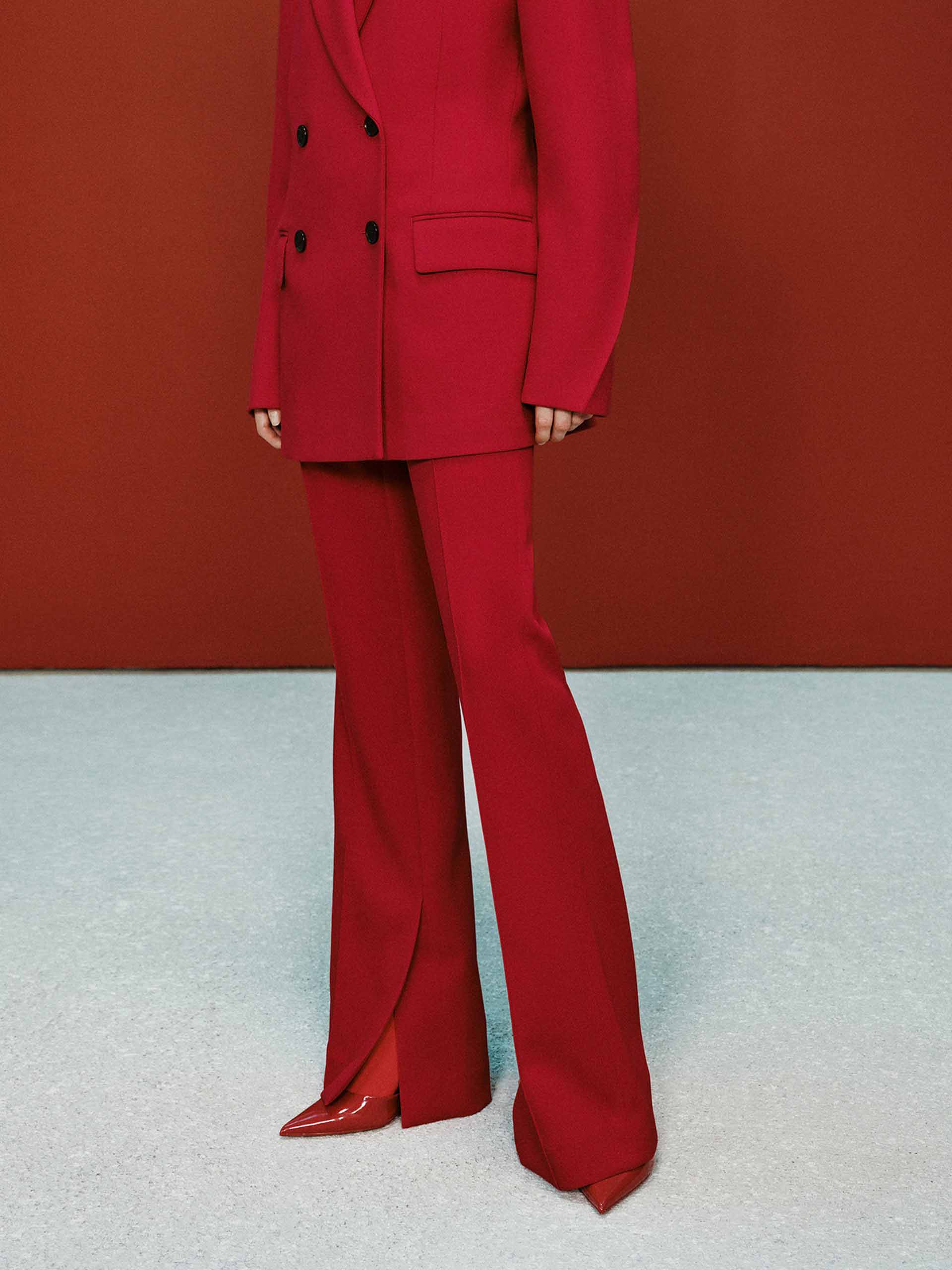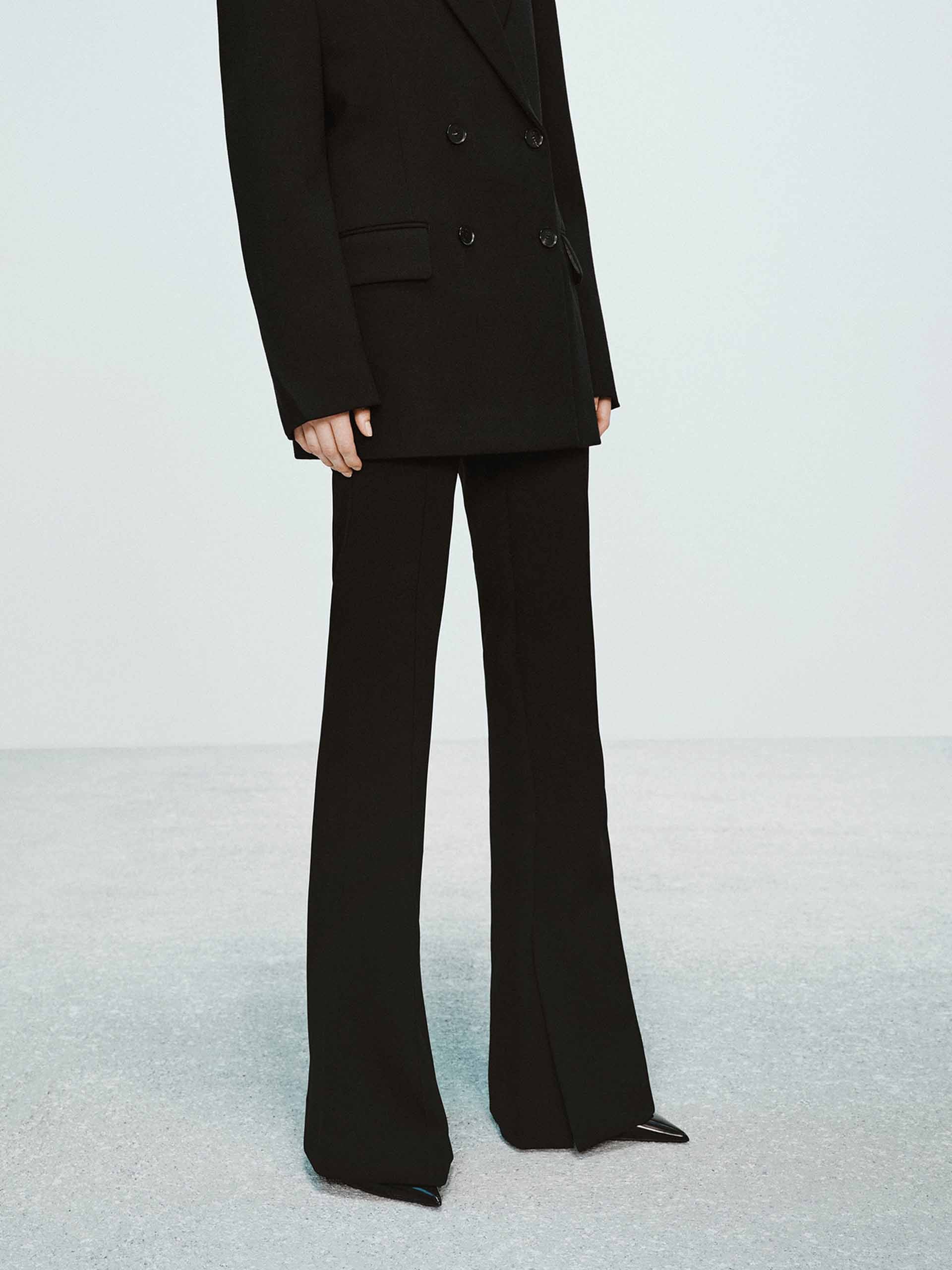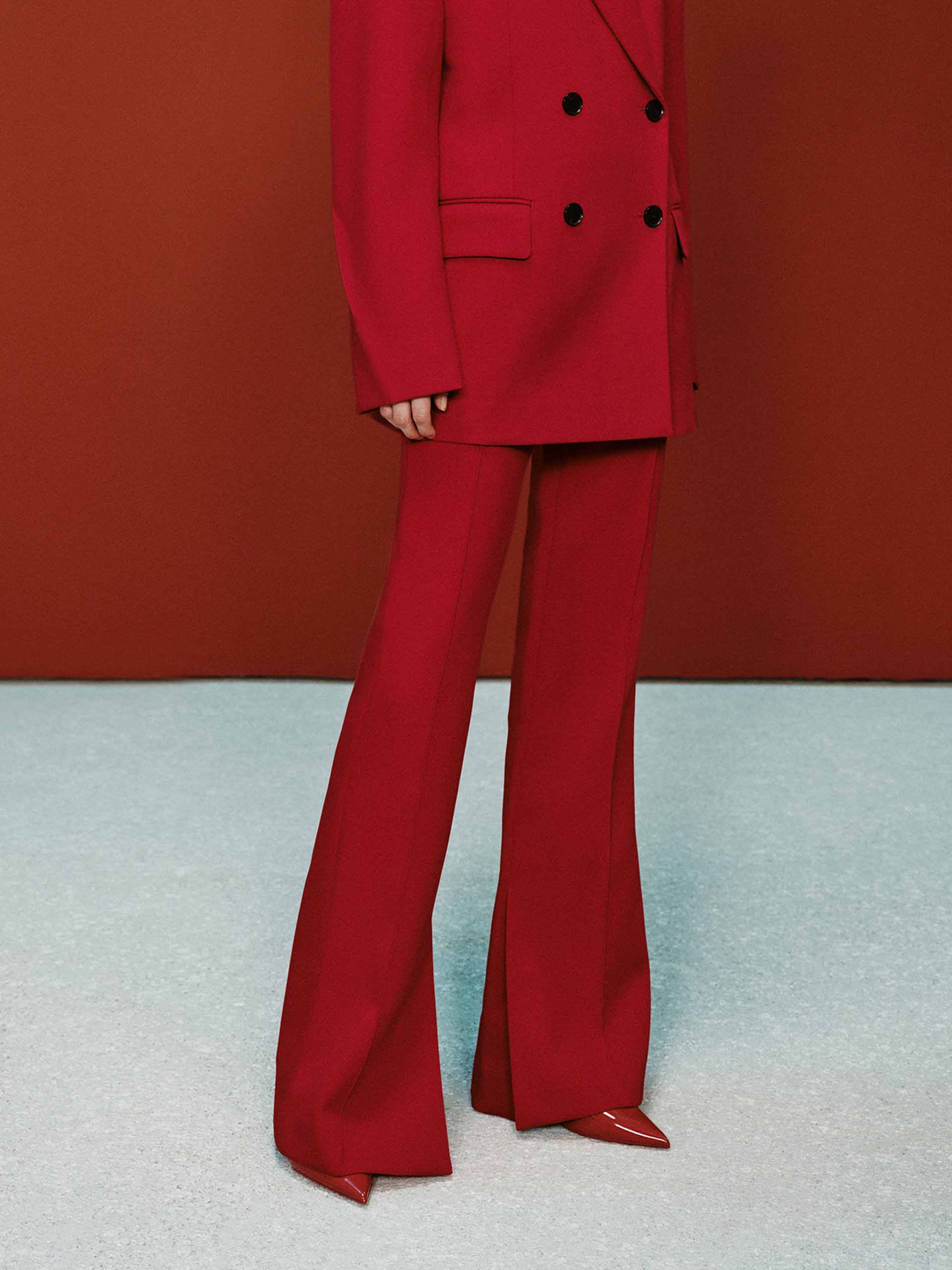 Made from high-quality fabric, they offer a comfortable fit with a crisp, drape shape. These pants have a high waist and flared hem to provide a flattering silhouette, while the side seam pocket, zipper closure, and slit design add functionality and style. Pair with a coordinating blazer for a polished look.