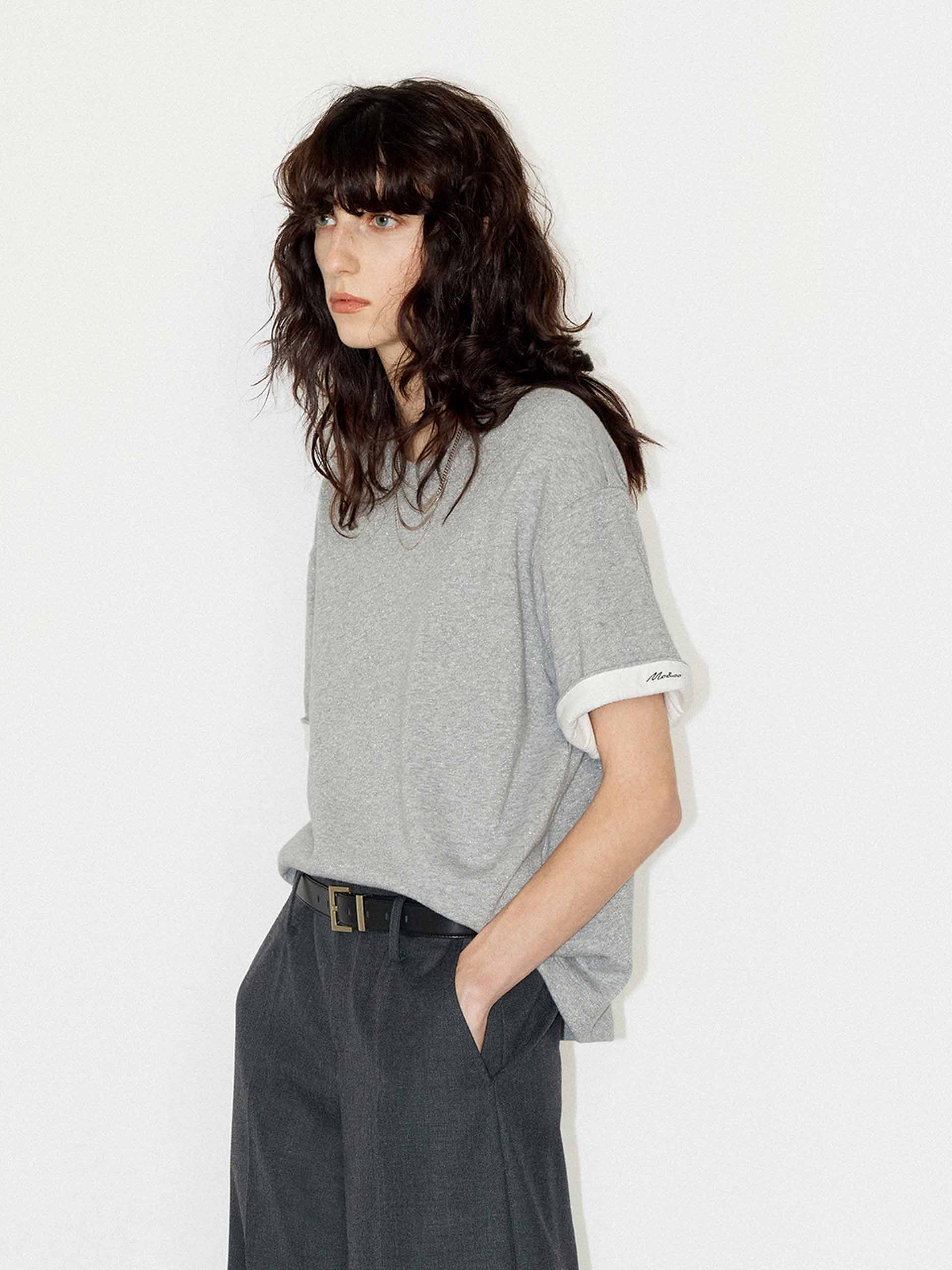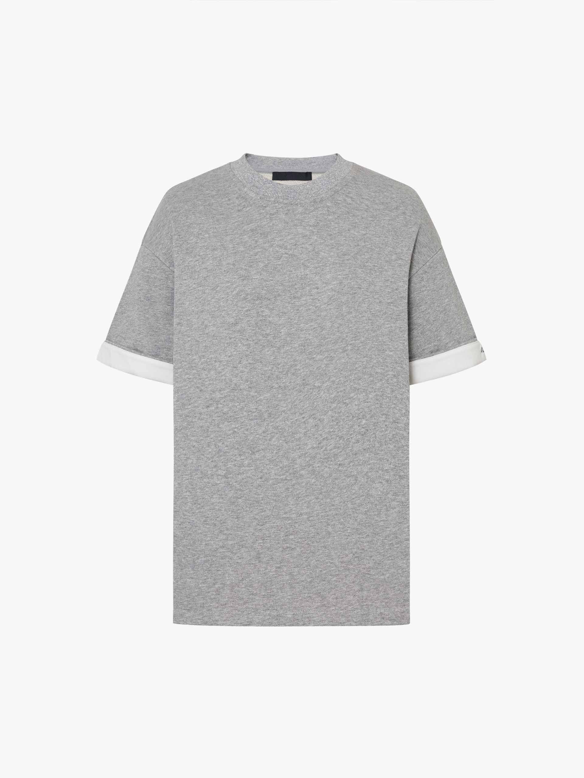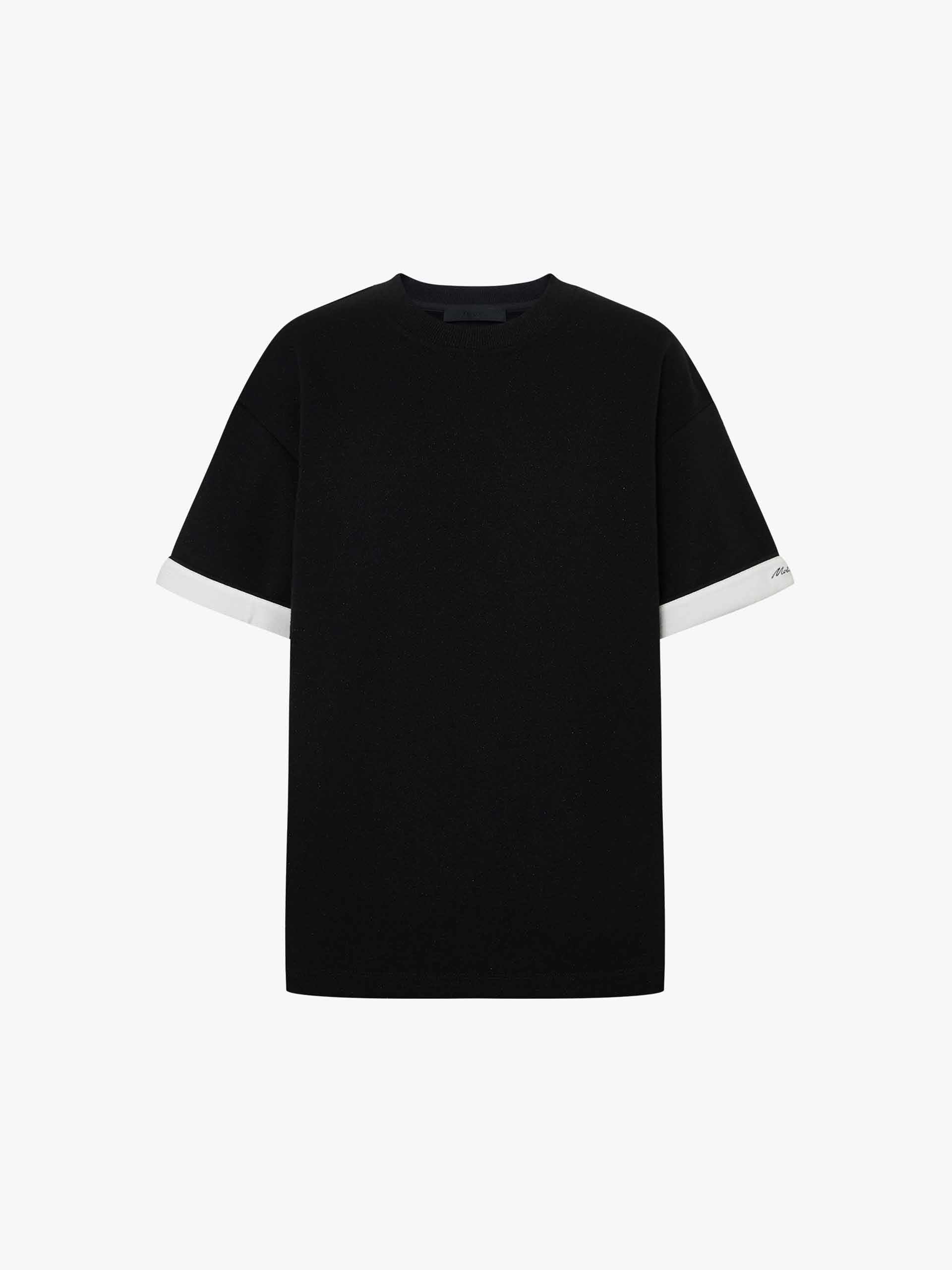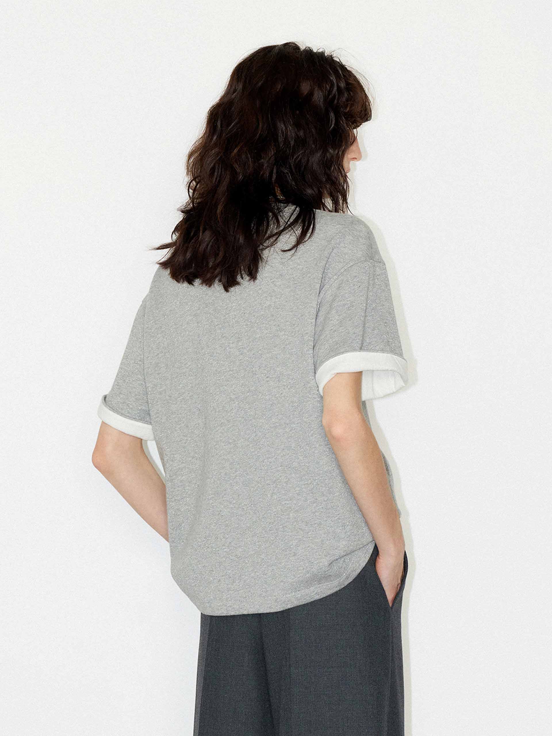 Crafted from a heavyweight cotton blend with a few metallic fibers. This t-shirt features a round neck and slightly loose fit ensuring comfort, while the contrast cuffs and logo embroidery add a touch of sophistication.