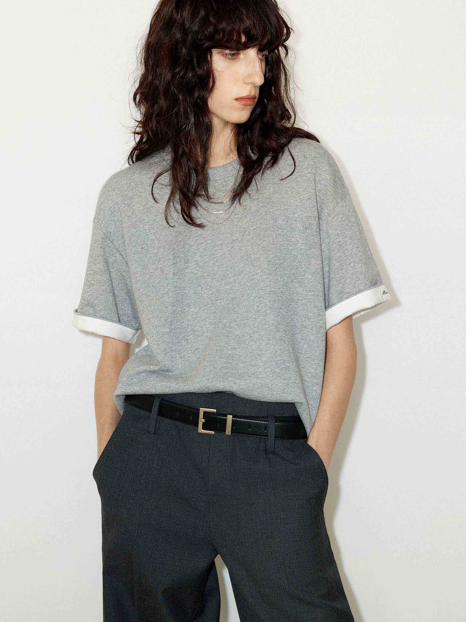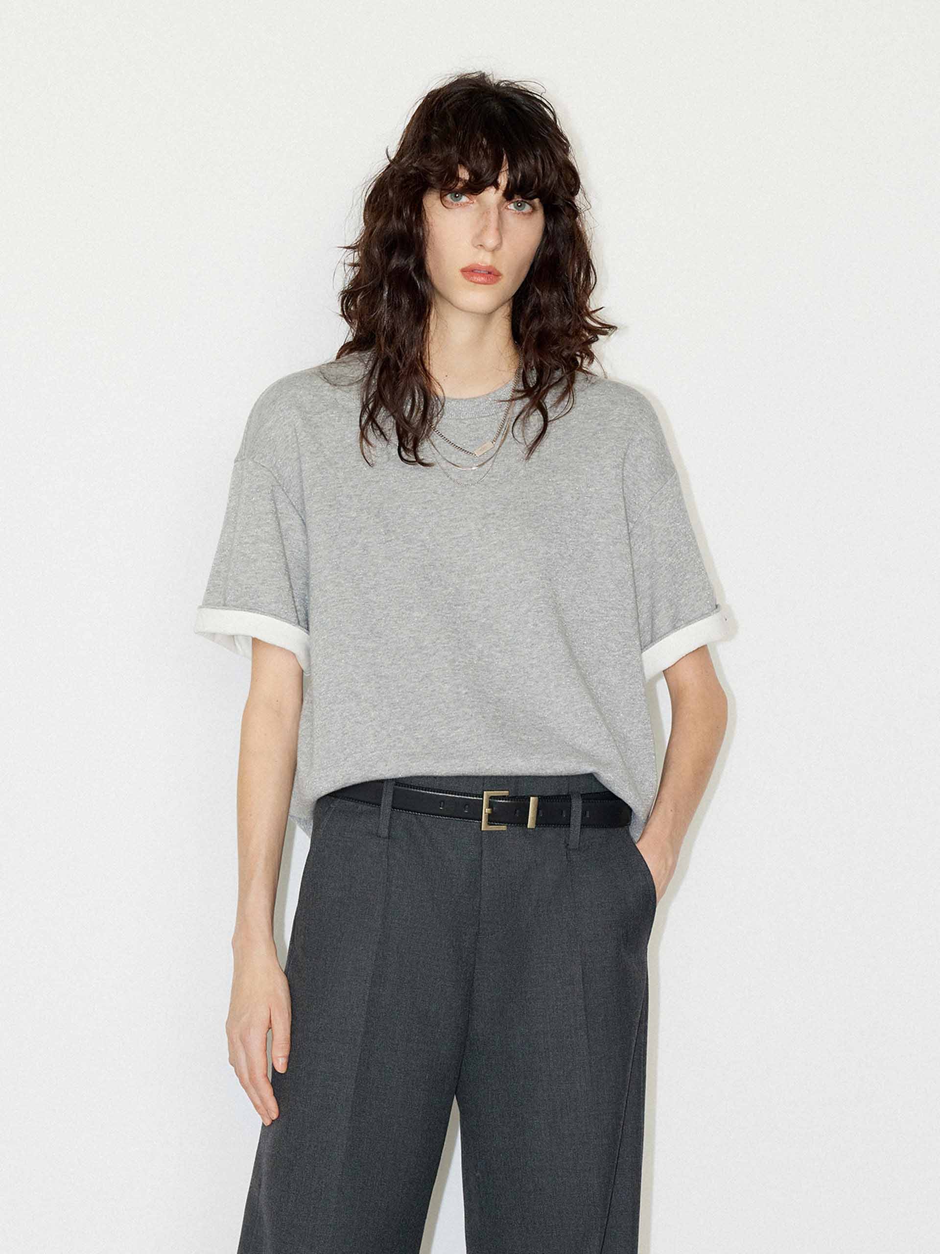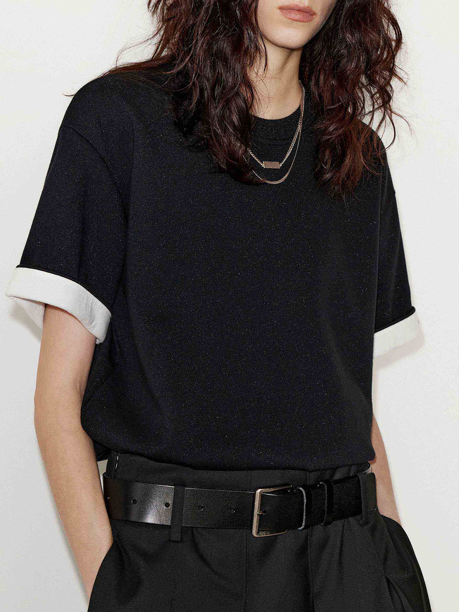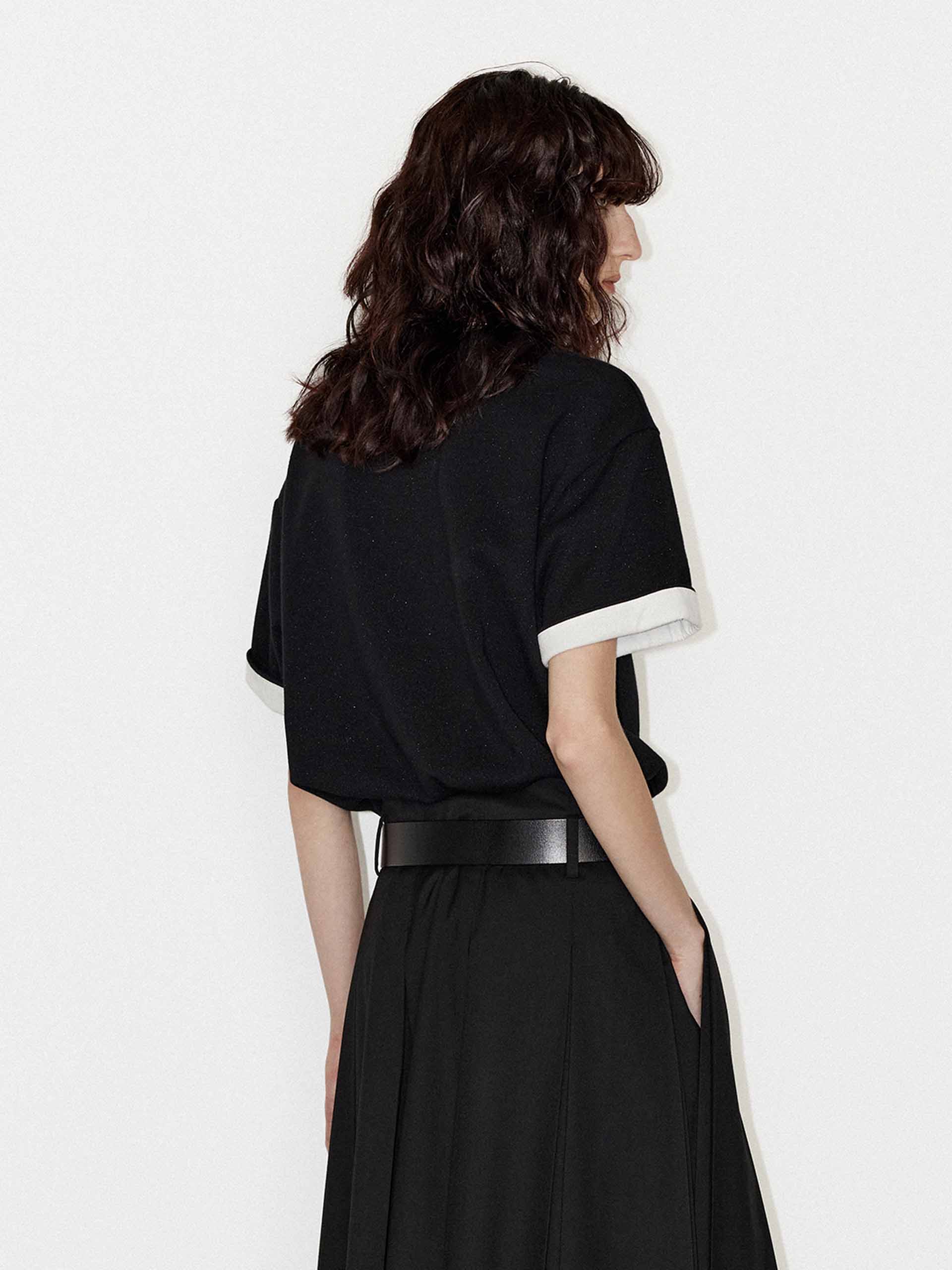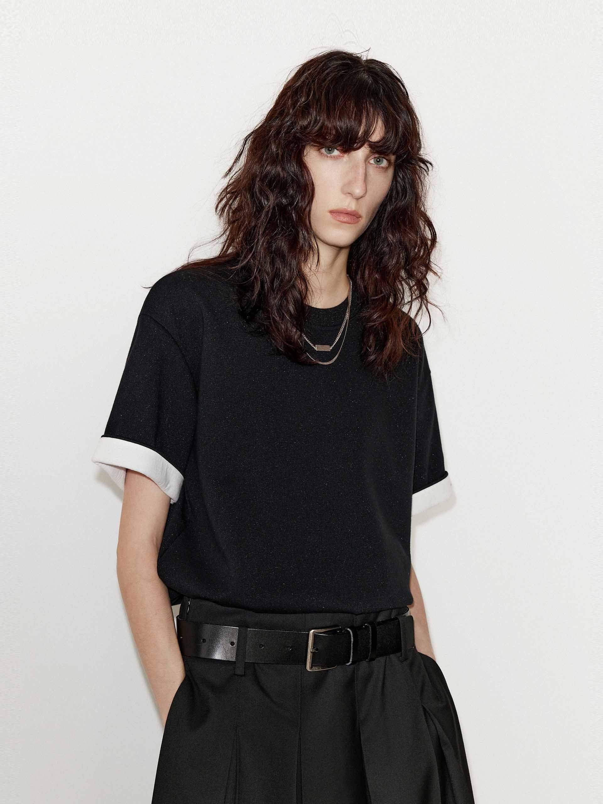 Crafted from a heavyweight cotton blend with a few metallic fibers. This t-shirt features a round neck and slightly loose fit ensuring comfort, while the contrast cuffs and logo embroidery add a touch of sophistication.