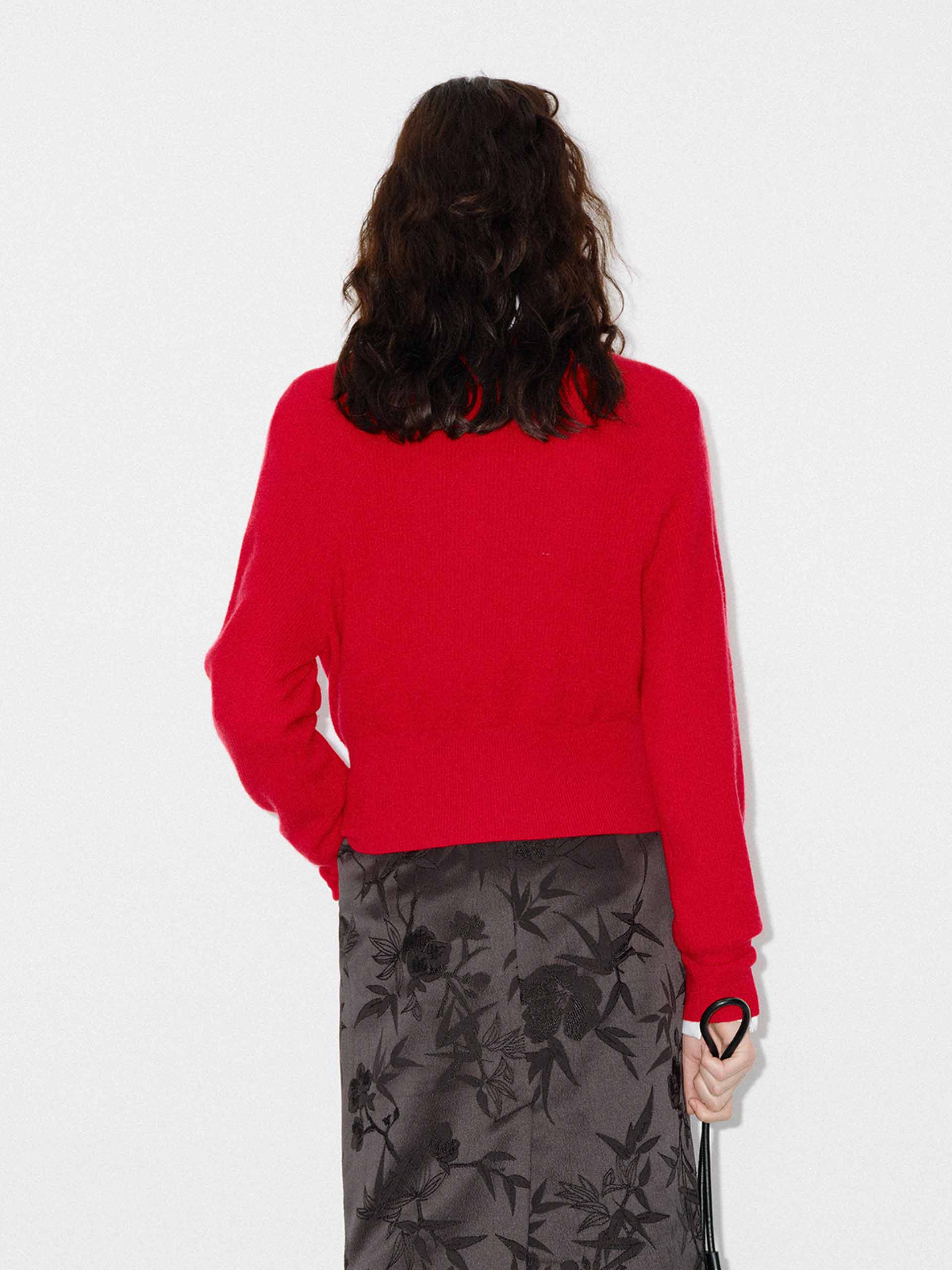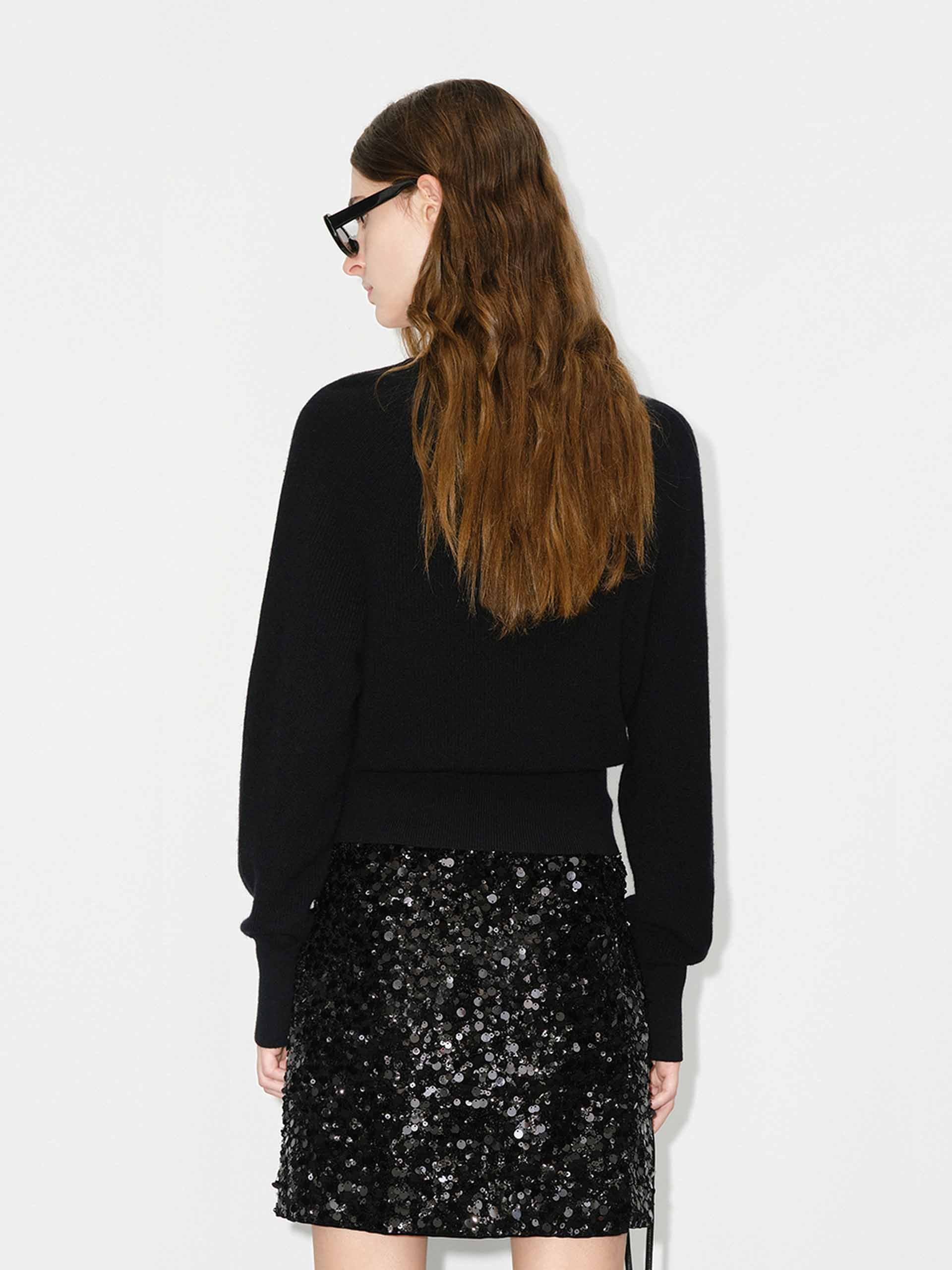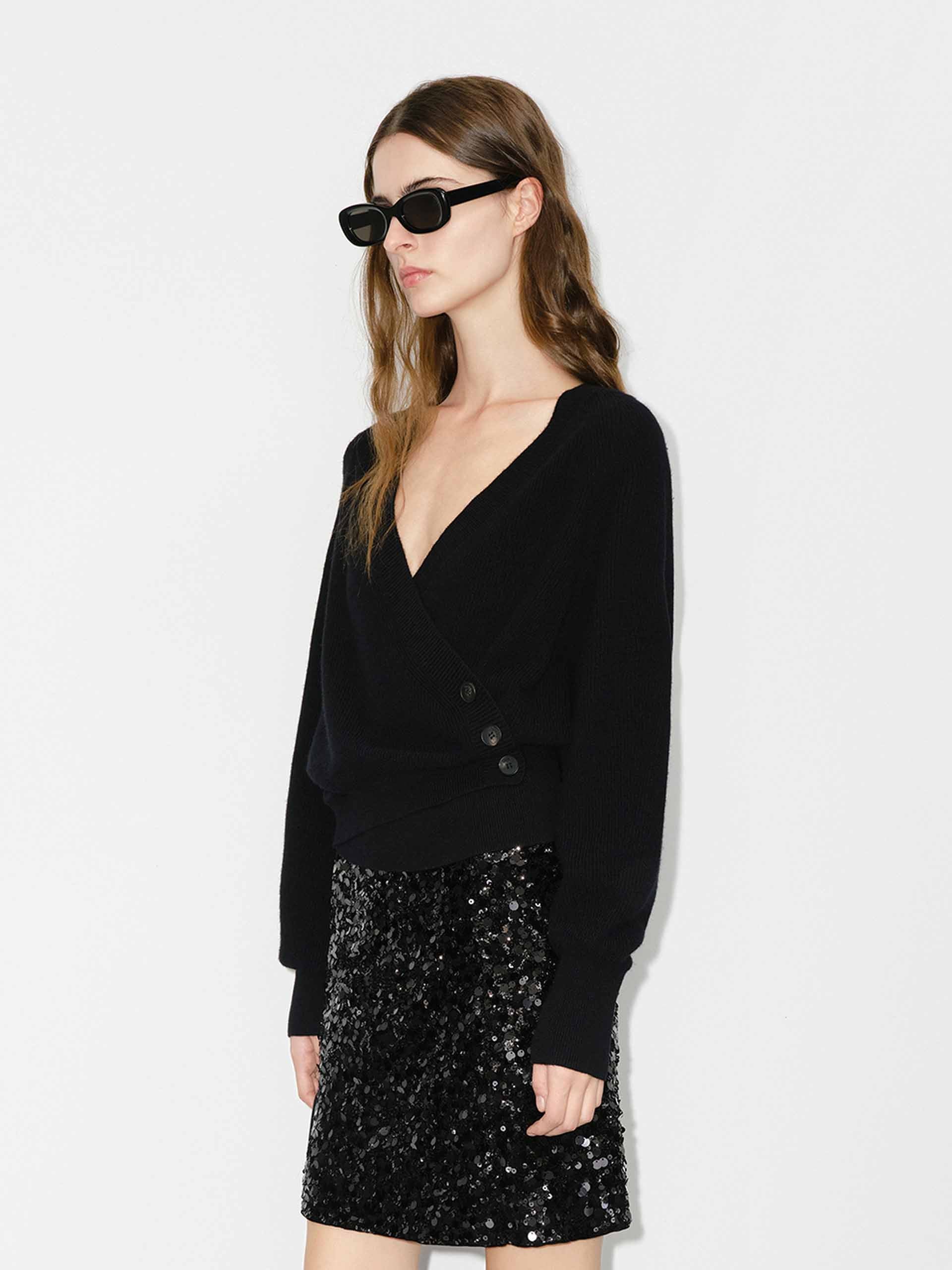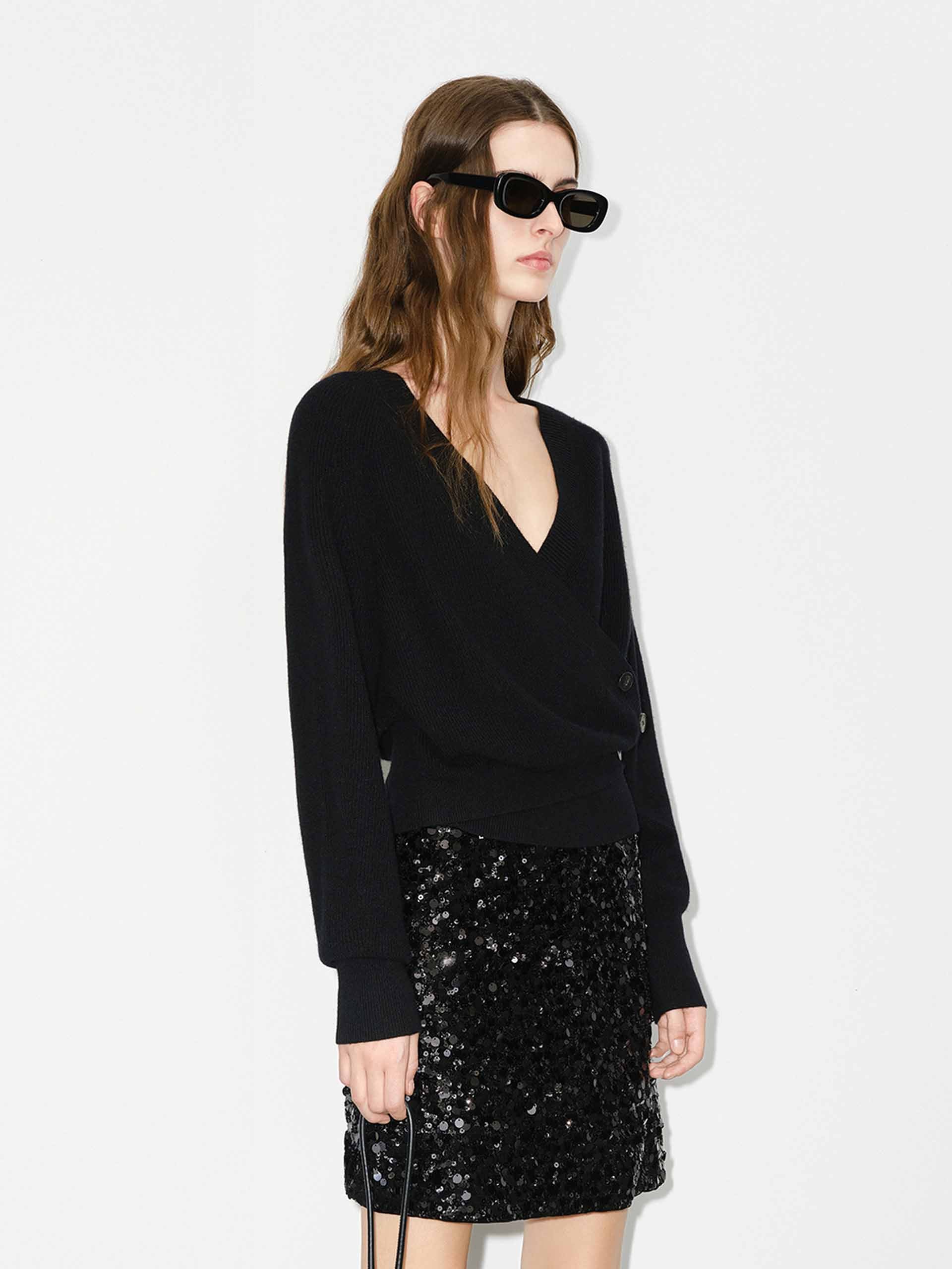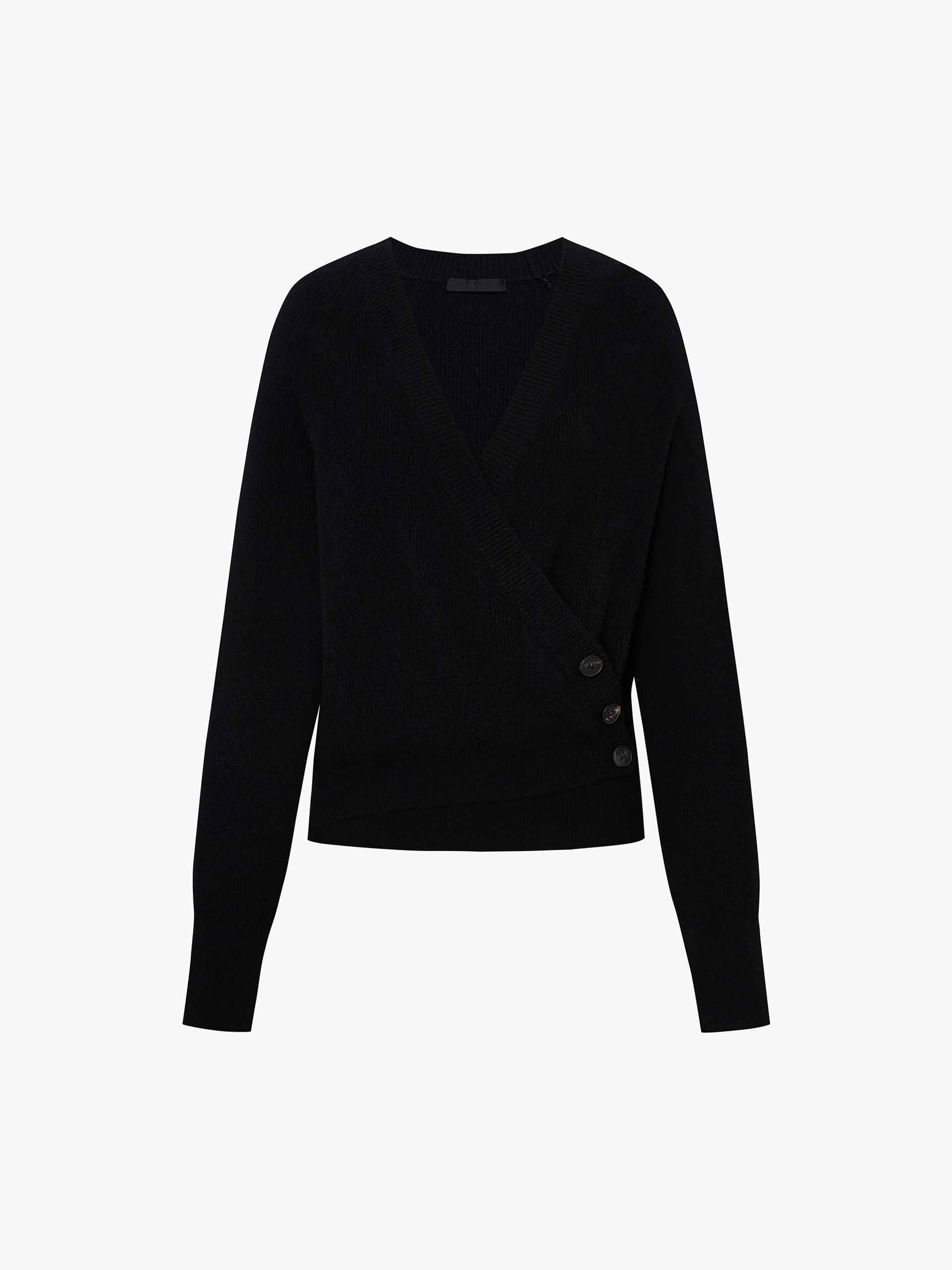 Expertly crafted from a luxurious blend of wool and cashmere, this sweater offers a soft and cozy feel against the skin. Features a V-neckline and close fit create a flattering silhouette, while the irregularly wrapped details add a unique and stylish touch.