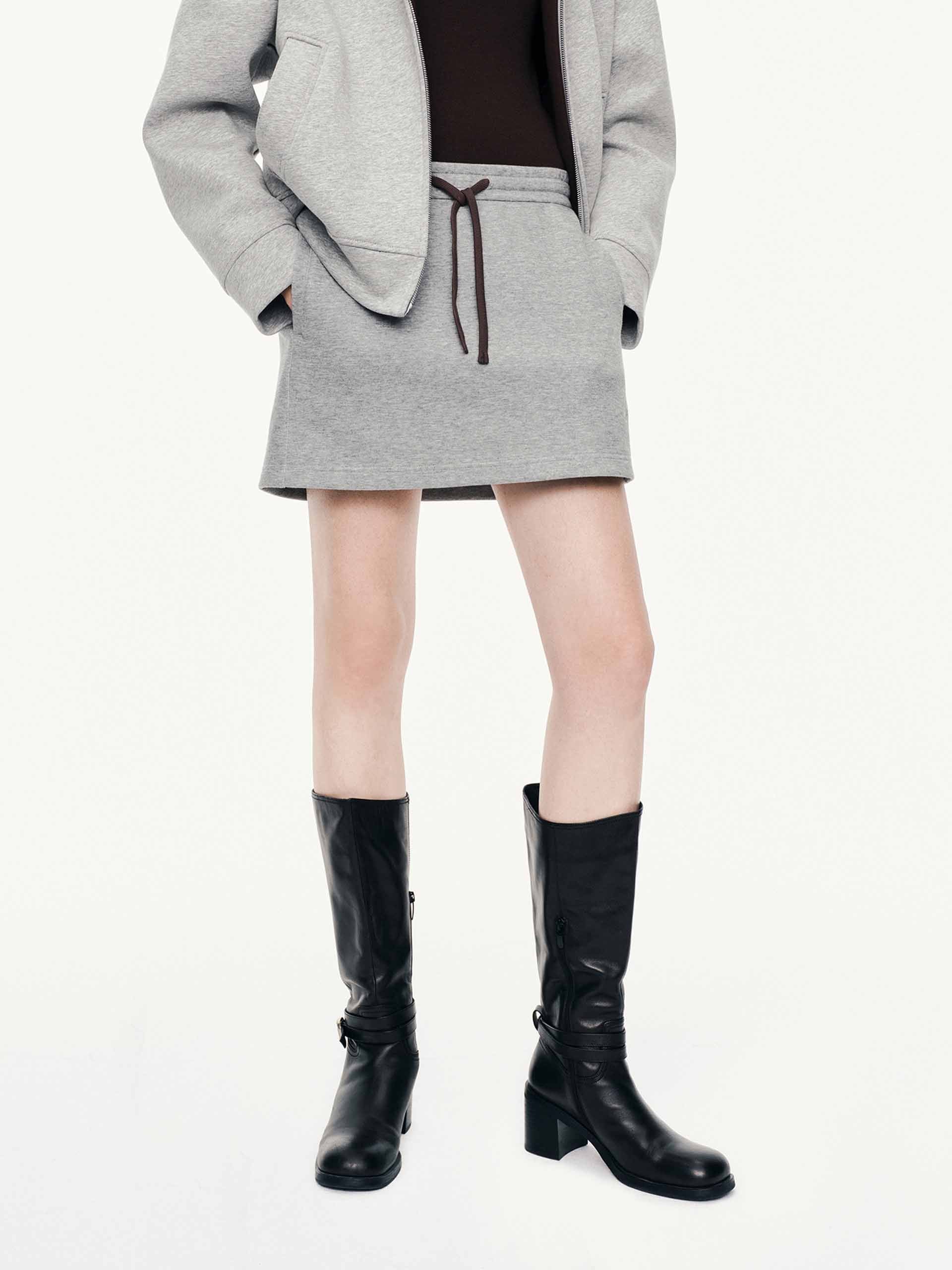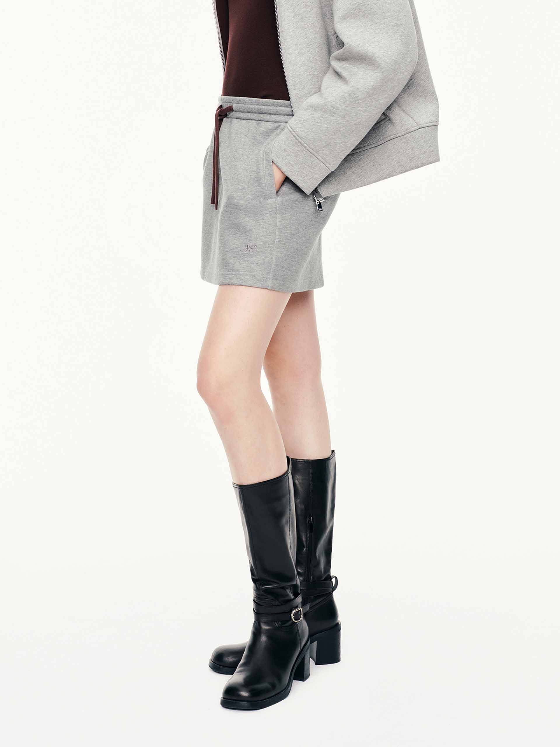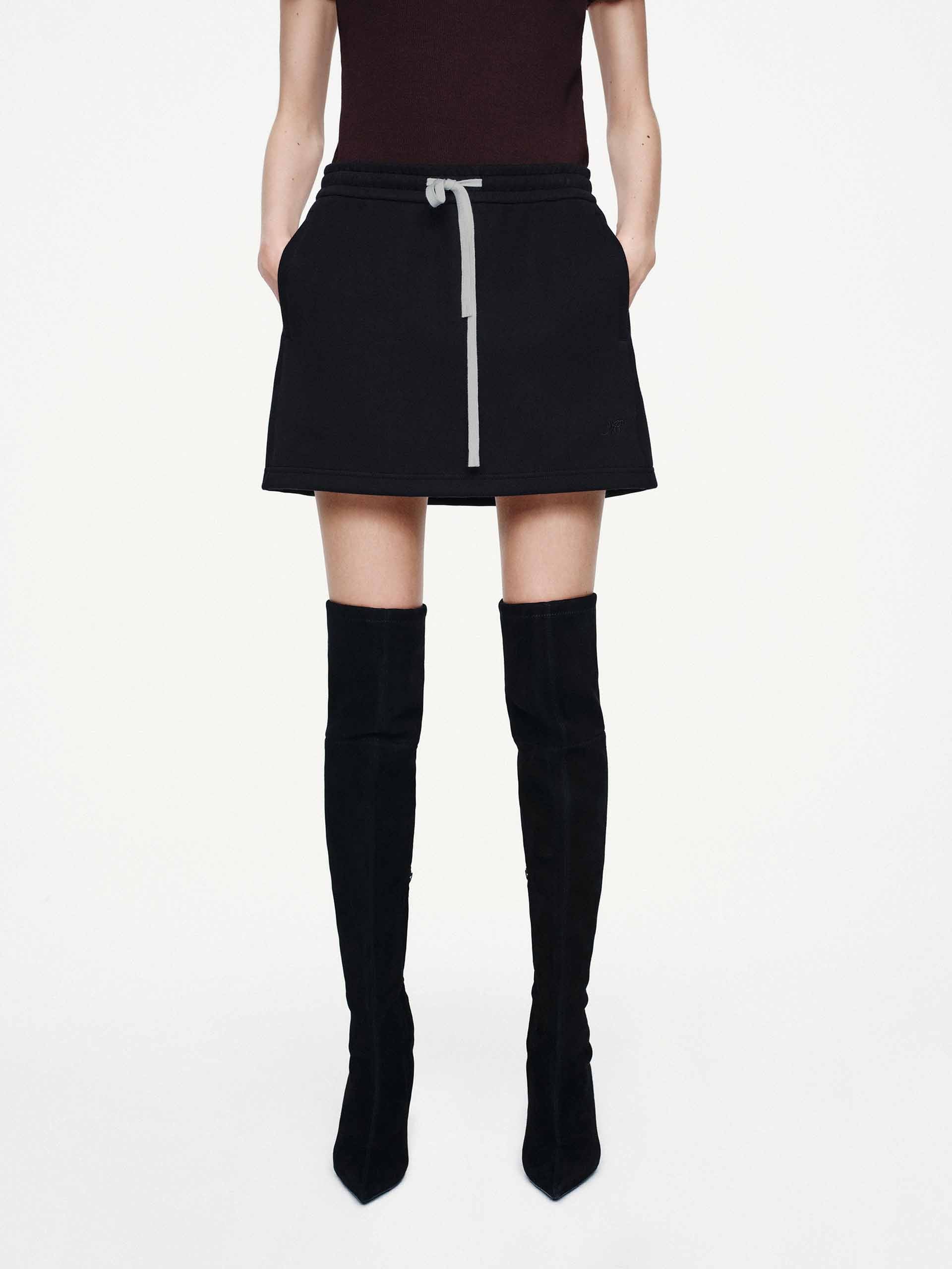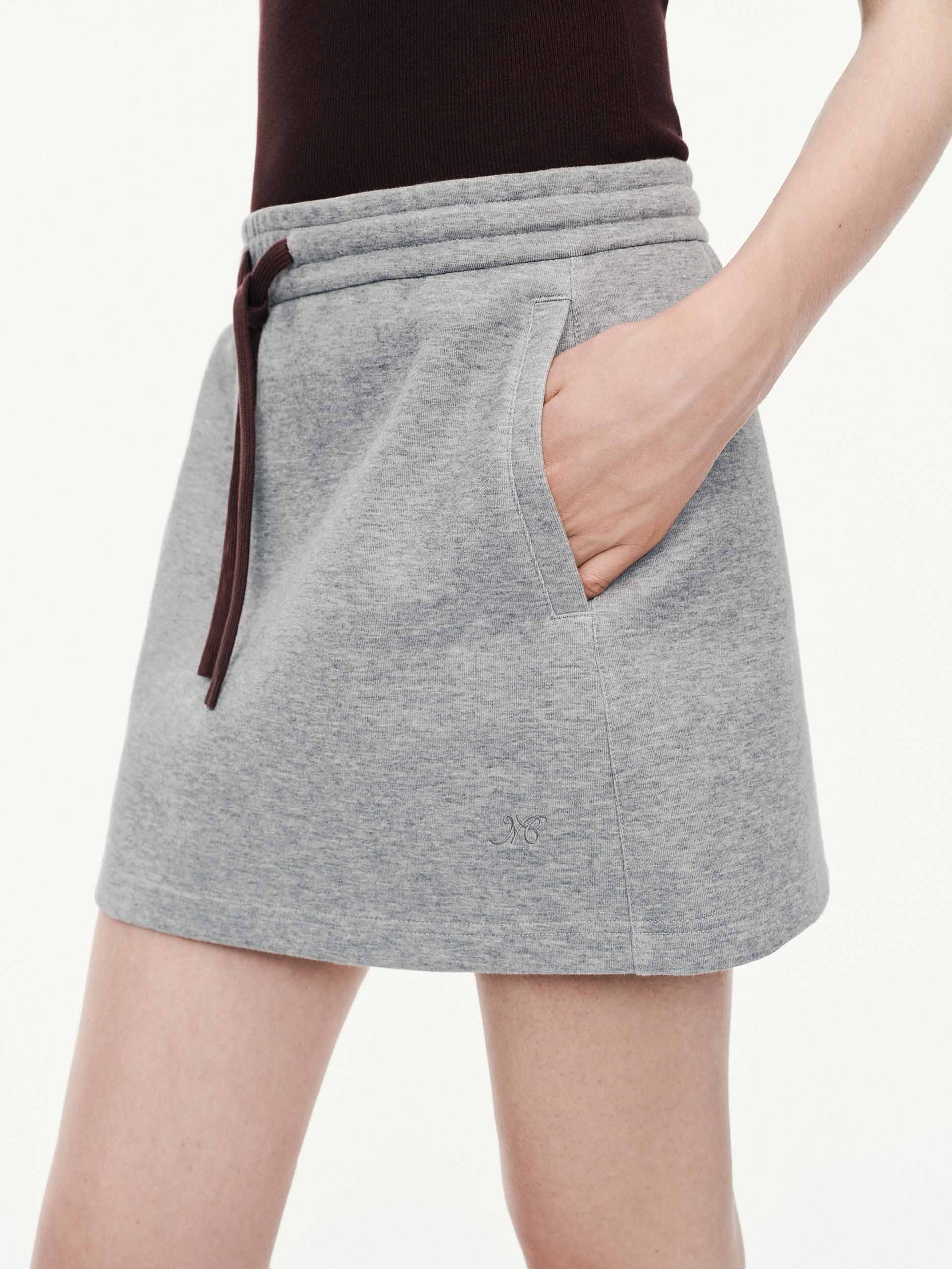 This skirt blends youthful charm with smart functionality, featuring a comfortable elasticated waistband accented by a contrast drawstring for adjustable fit. The tonal embroidery detail at the hem adds subtle texture, while the built-in shorts provide coverage and freedom of movement, perfect for active days or breezy outings. Pair with the matching coat for a more sophisticated and charming look.