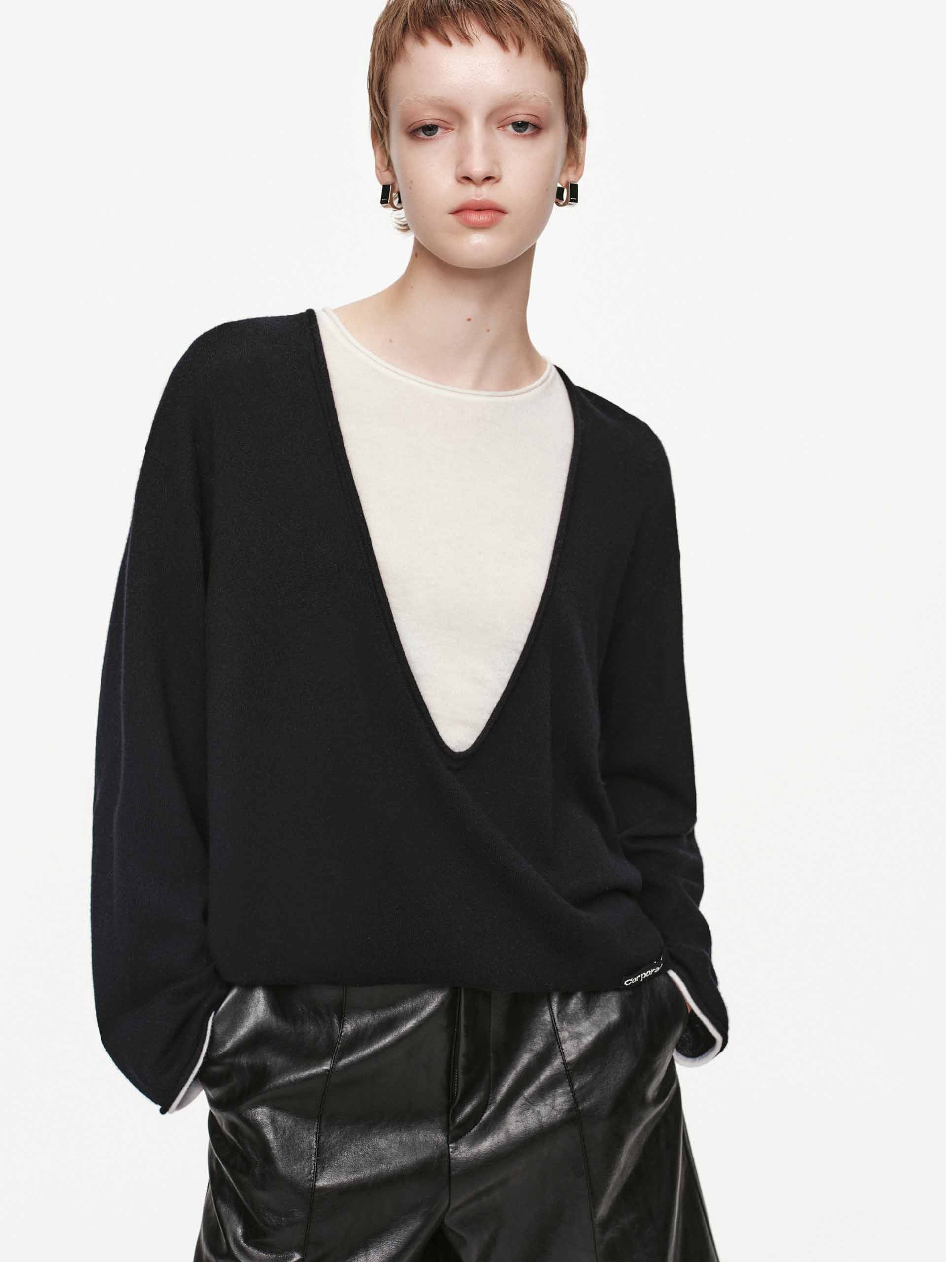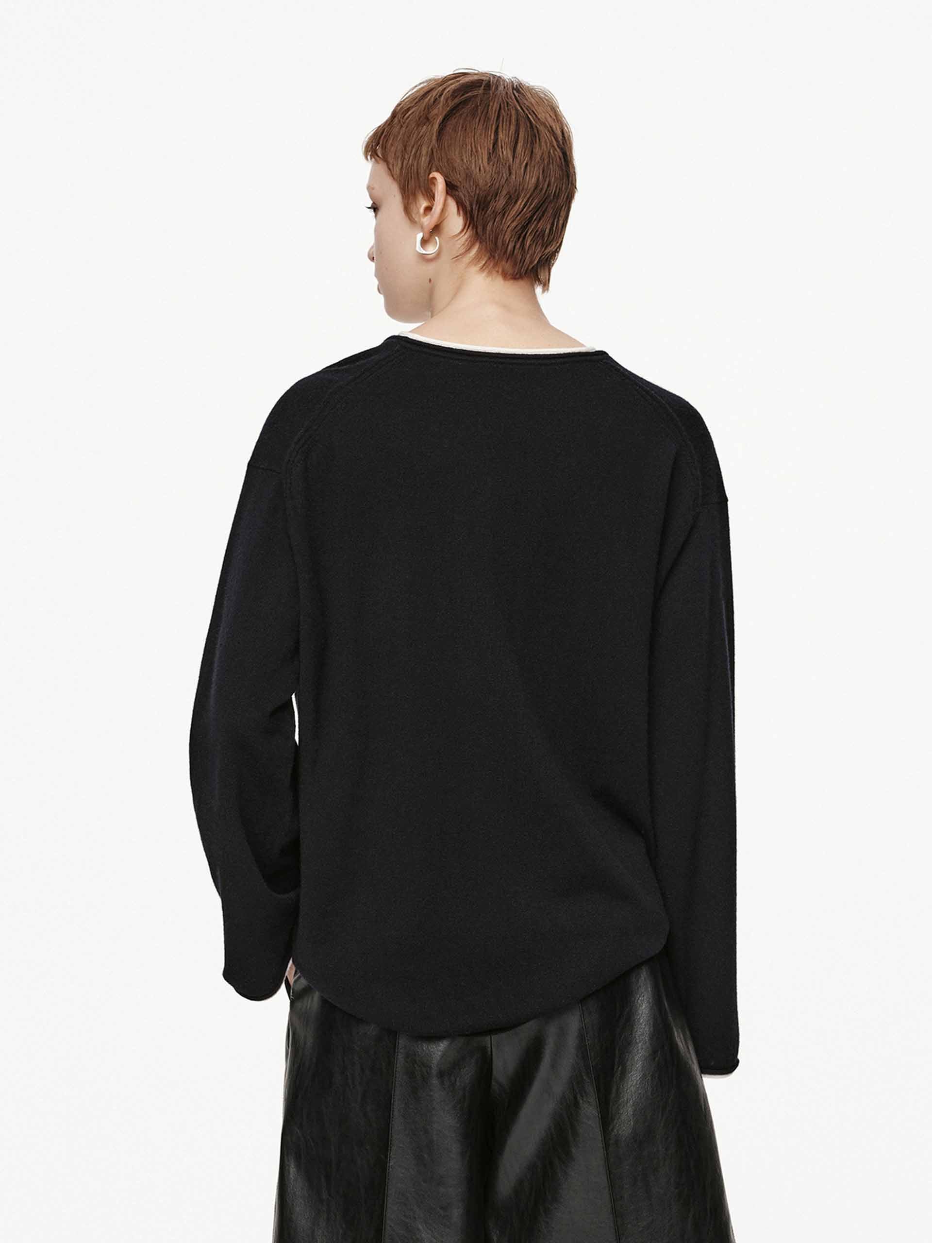 Discover dimension and depth with the sweater, a masterclass in texture and modern craftsmanship. Featuring a timeless round neck and sleek long sleeves, it is built for versatile styling. The dropped shoulders add a slouchy, relaxed elegance, while the standout contrast layered design creates visual interest and a tactile, fashion-forward appeal.