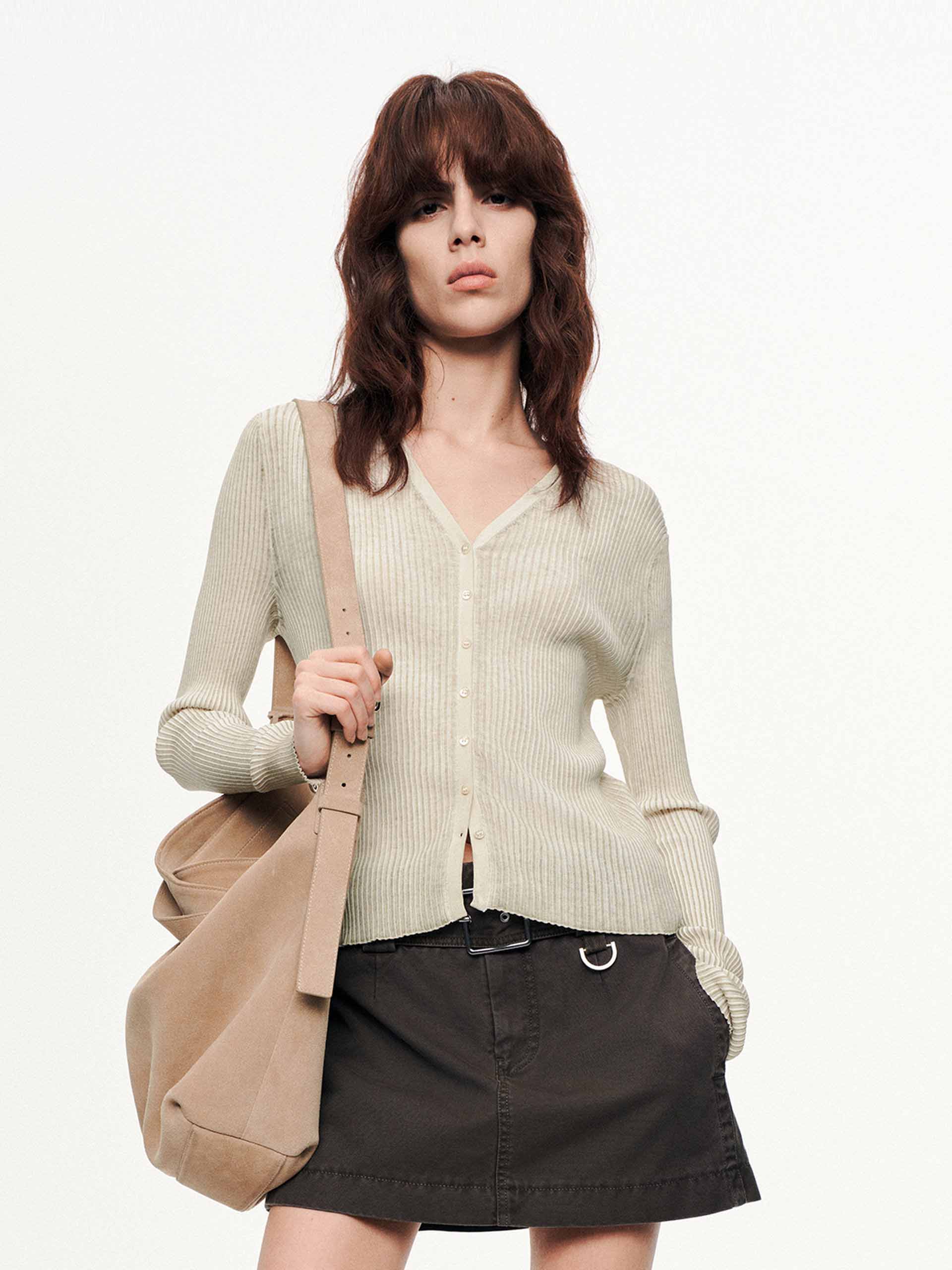 Stay effortlessly chic with this cardigan, a versatile layering piece designed for a polished and flattering silhouette. Featuring a button-front closure, it pairs perfectly with your favorite camisoles. Crafted from lightweight knitted fabric, it offers a comfortable, breathable feel—ideal for transitioning between seasons.