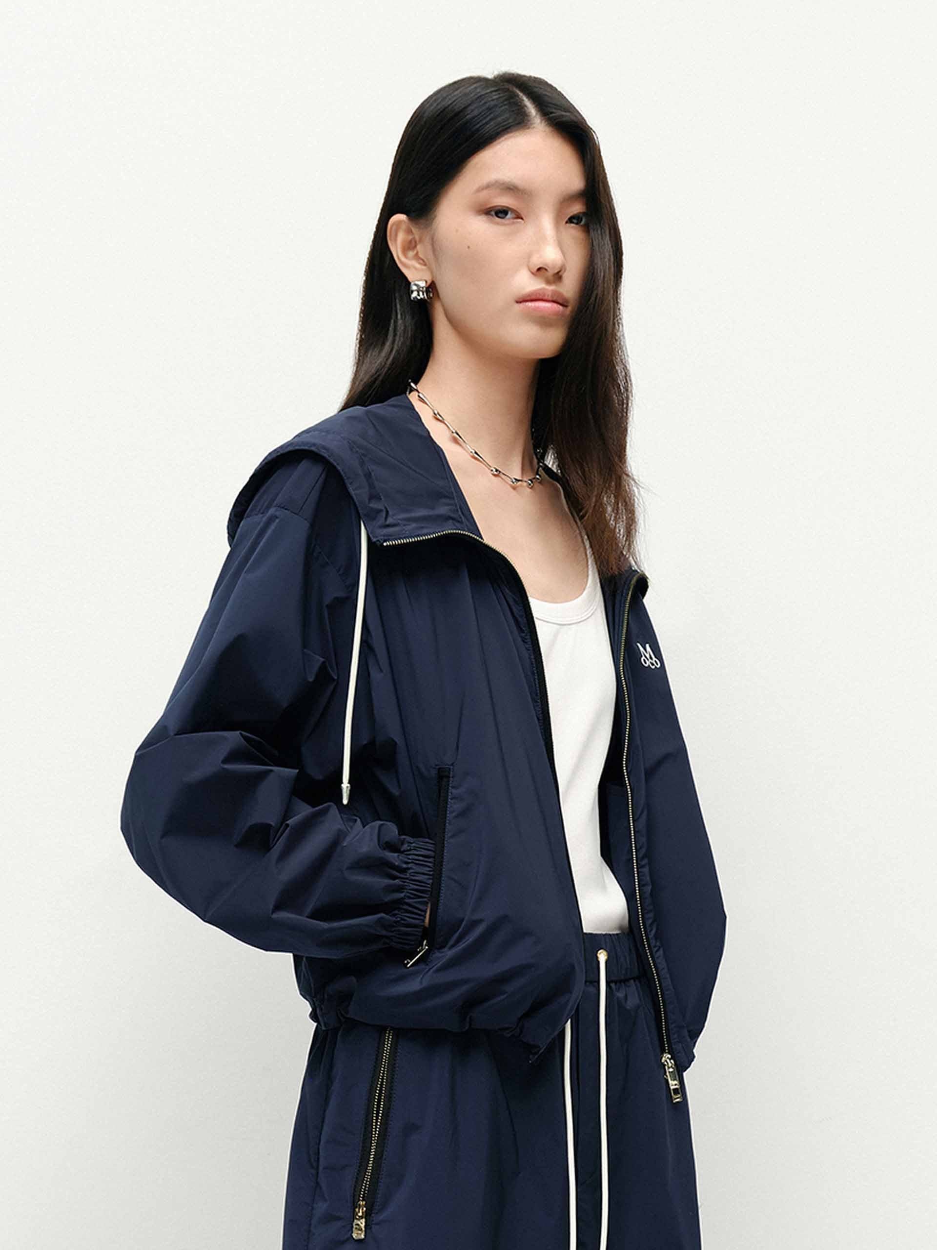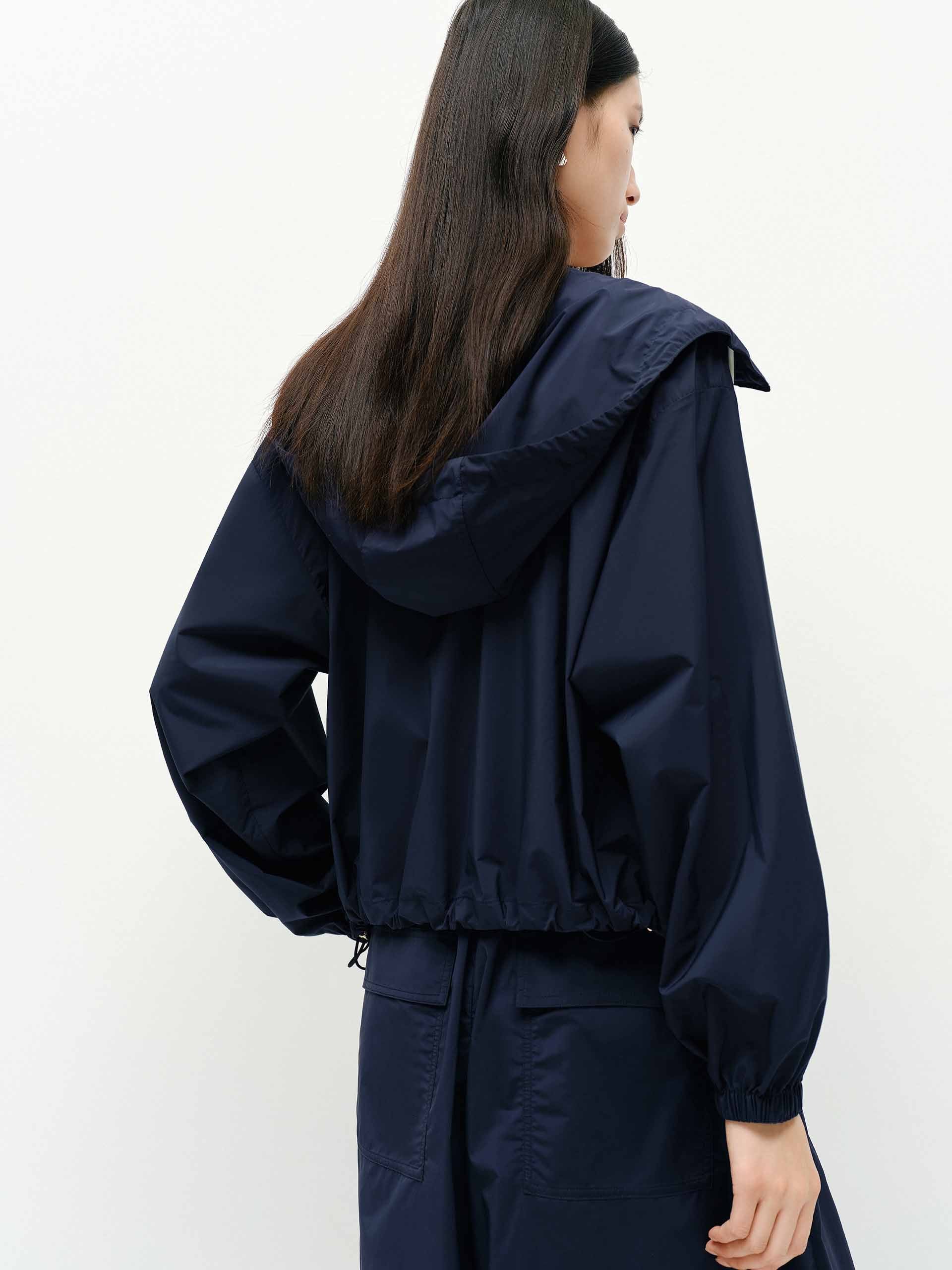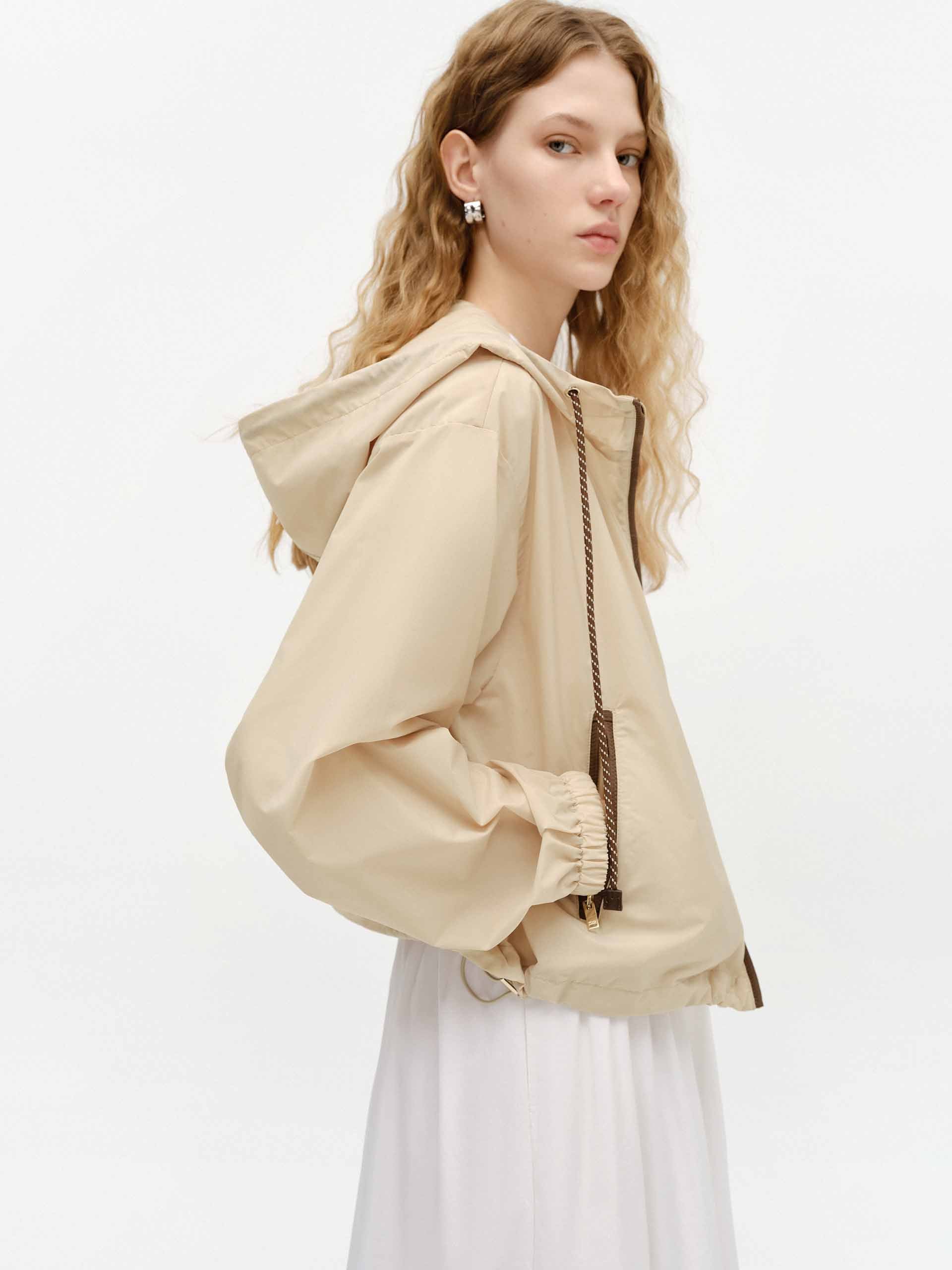 Crafted from comfy materials, this parka jacket has contrast drawcords at the neck and hem that create a cocooning, bubble-like shape. It's offered in a khaki and navy tone and features double-entry pockets and an enveloping hood.