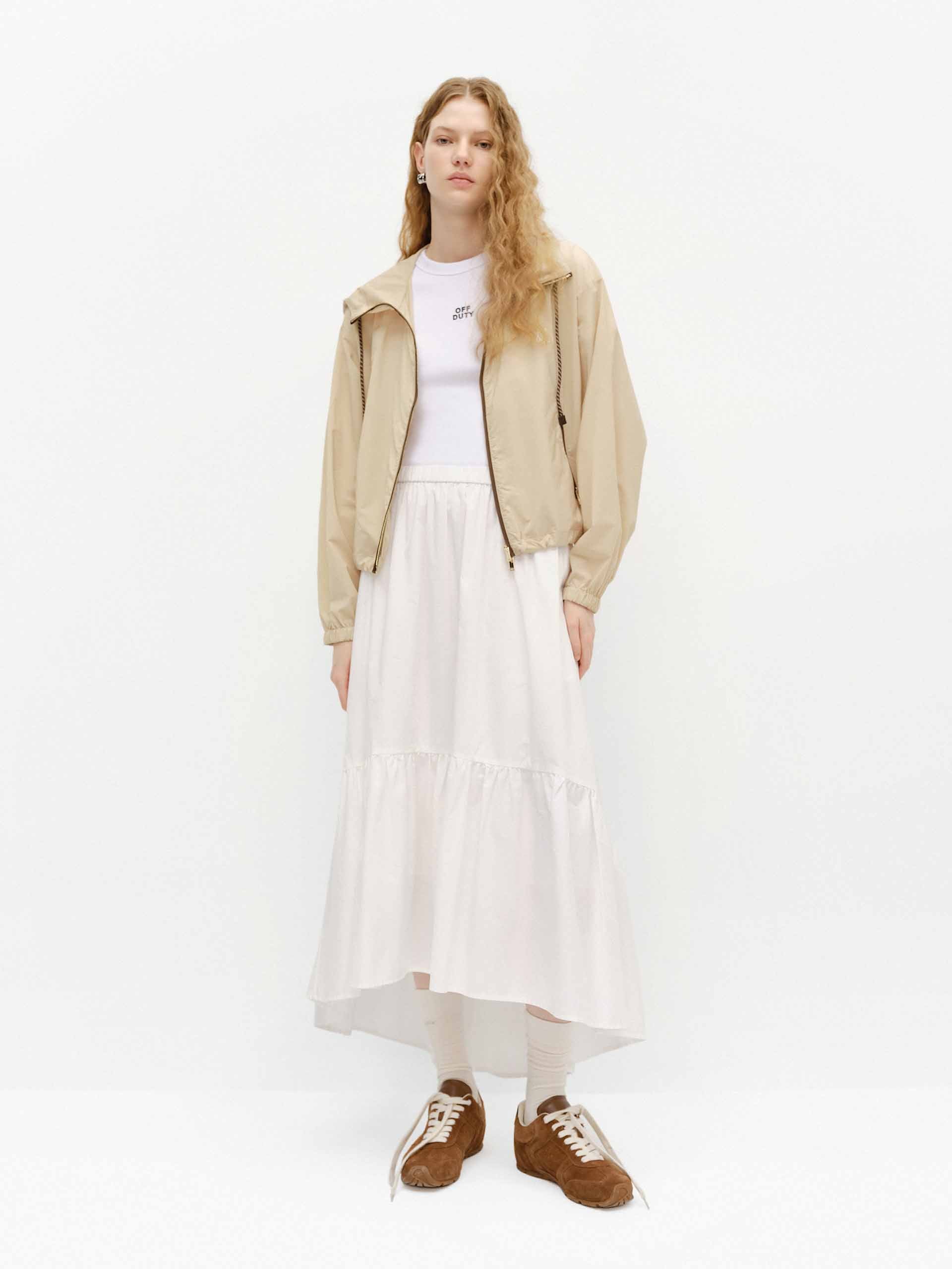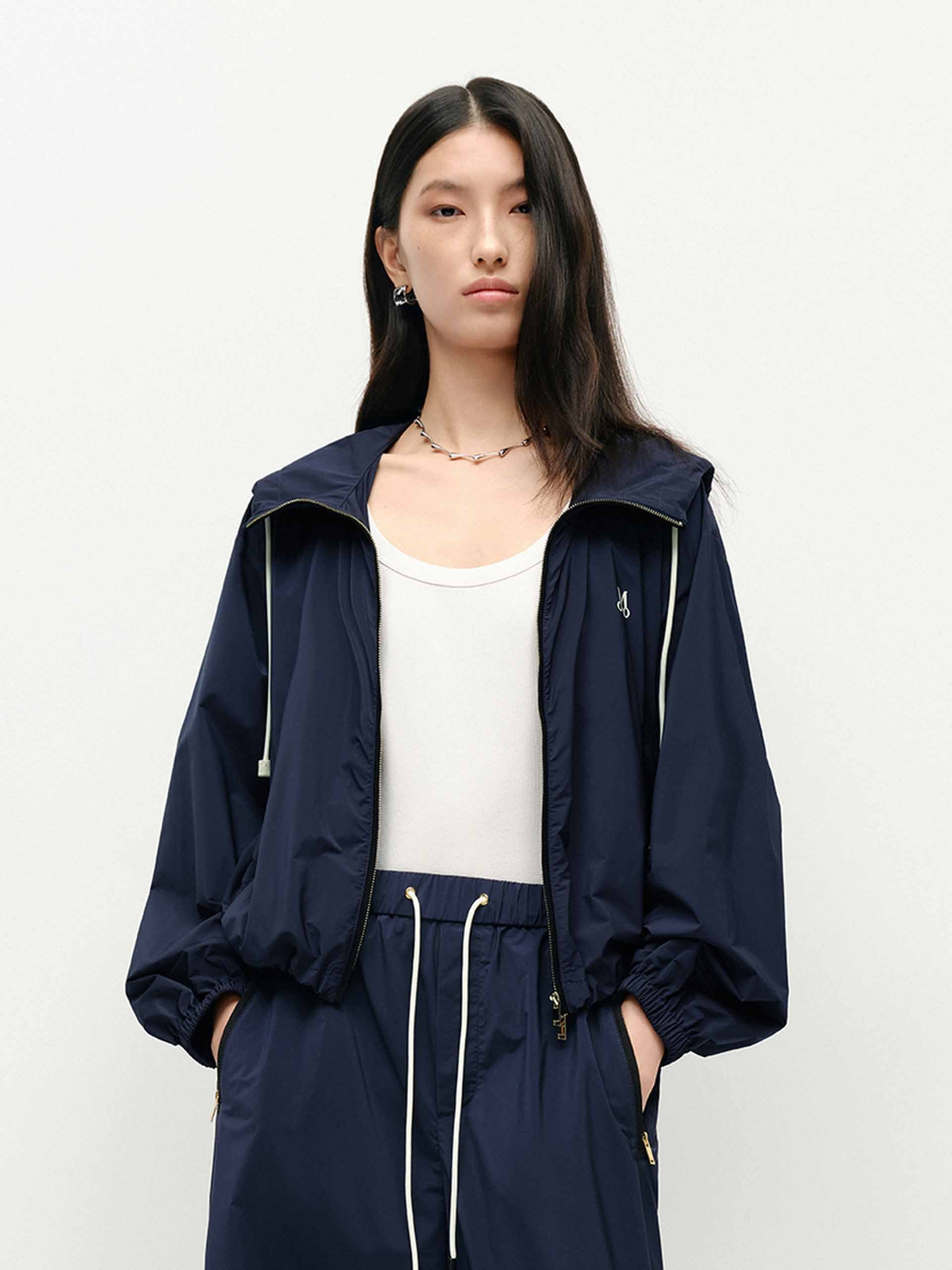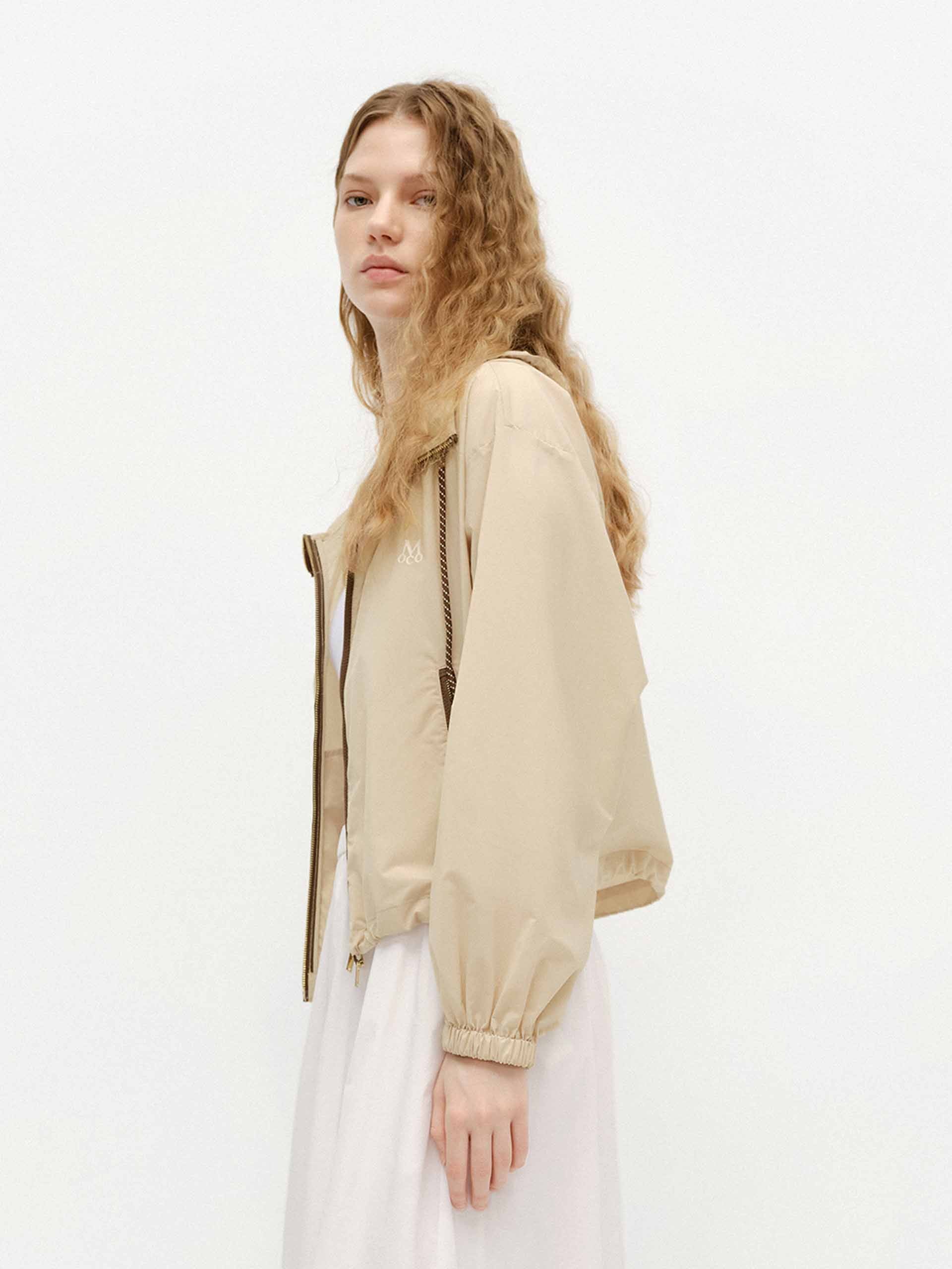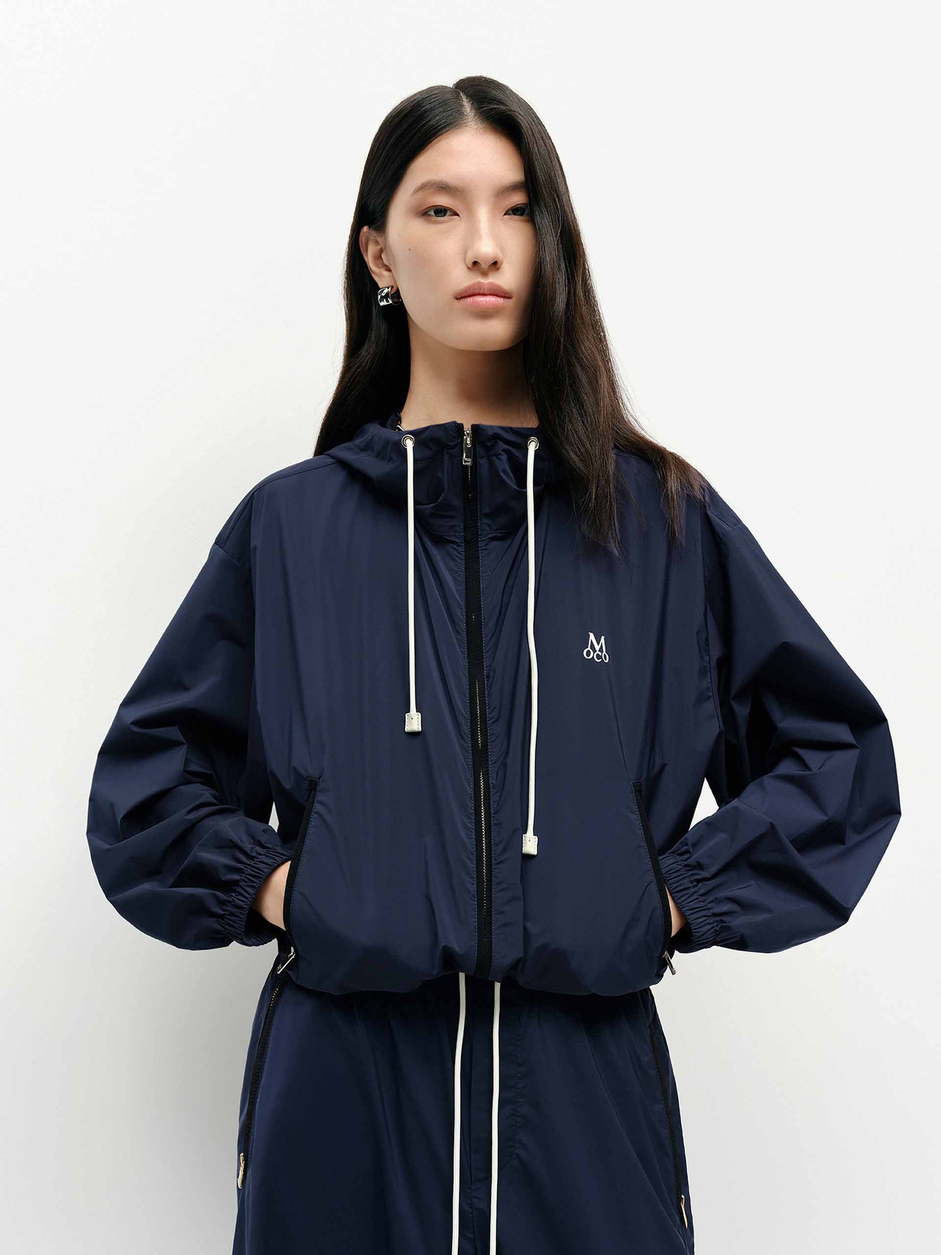 Crafted from comfy materials, this parka jacket has contrast drawcords at the neck and hem that create a cocooning, bubble-like shape. It's offered in a khaki and navy tone and features double-entry pockets and an enveloping hood.