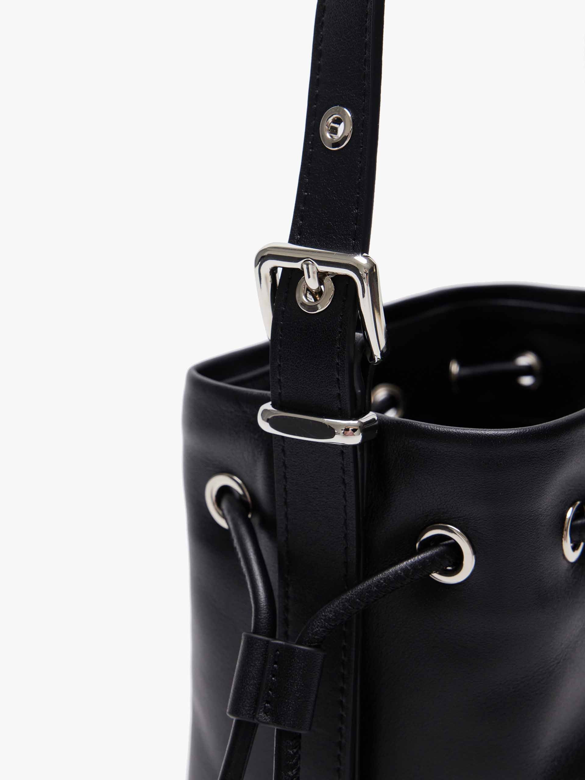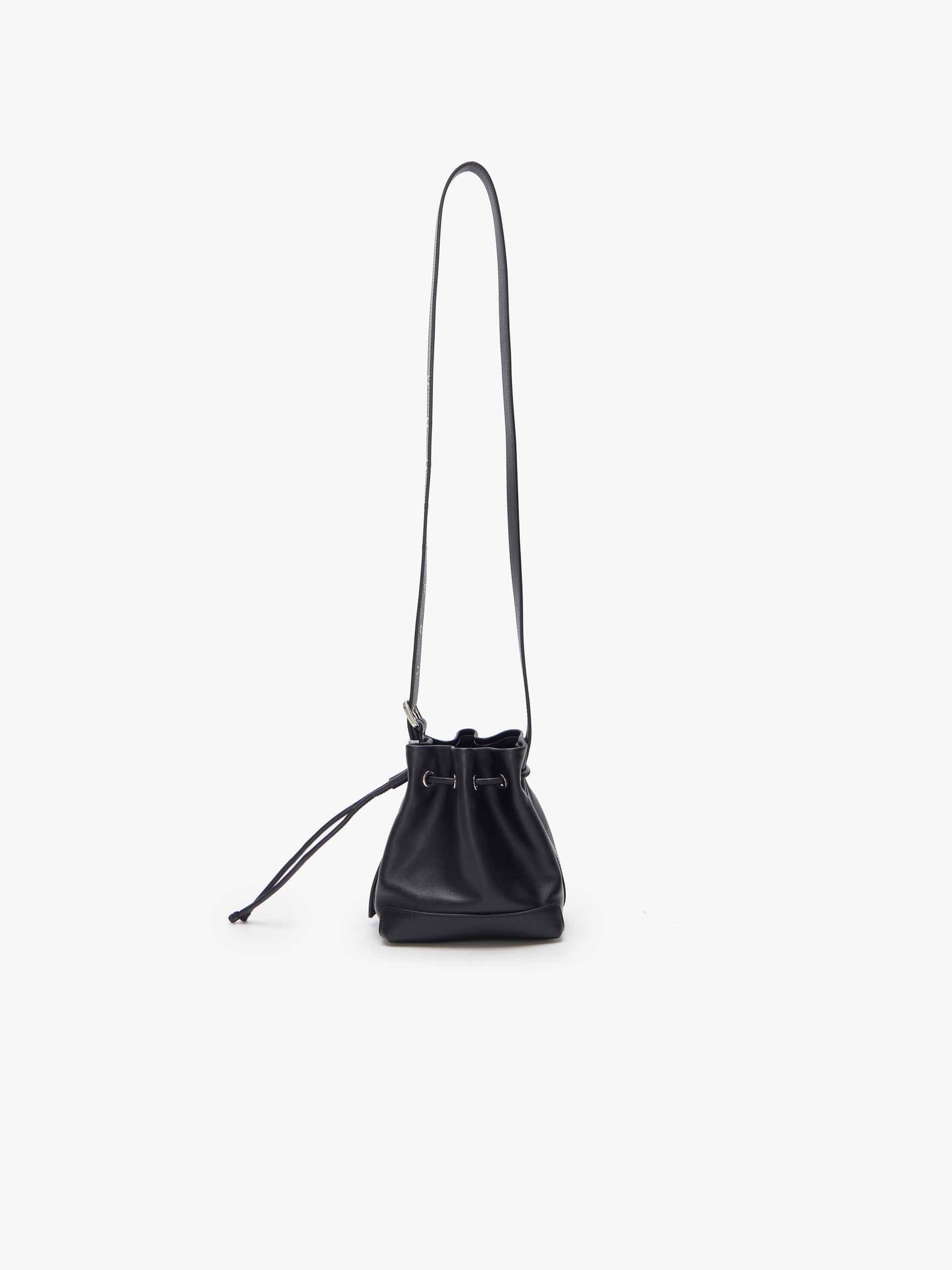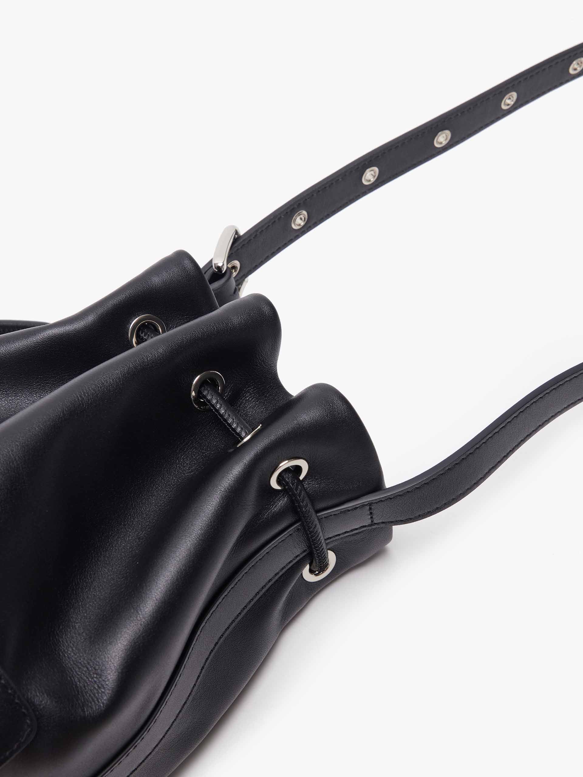This crossbody bag is made from bovine leather in a black hue. It's cut in mini size and features a drawstring closure that creates an exaggerated, softly gathered profile.