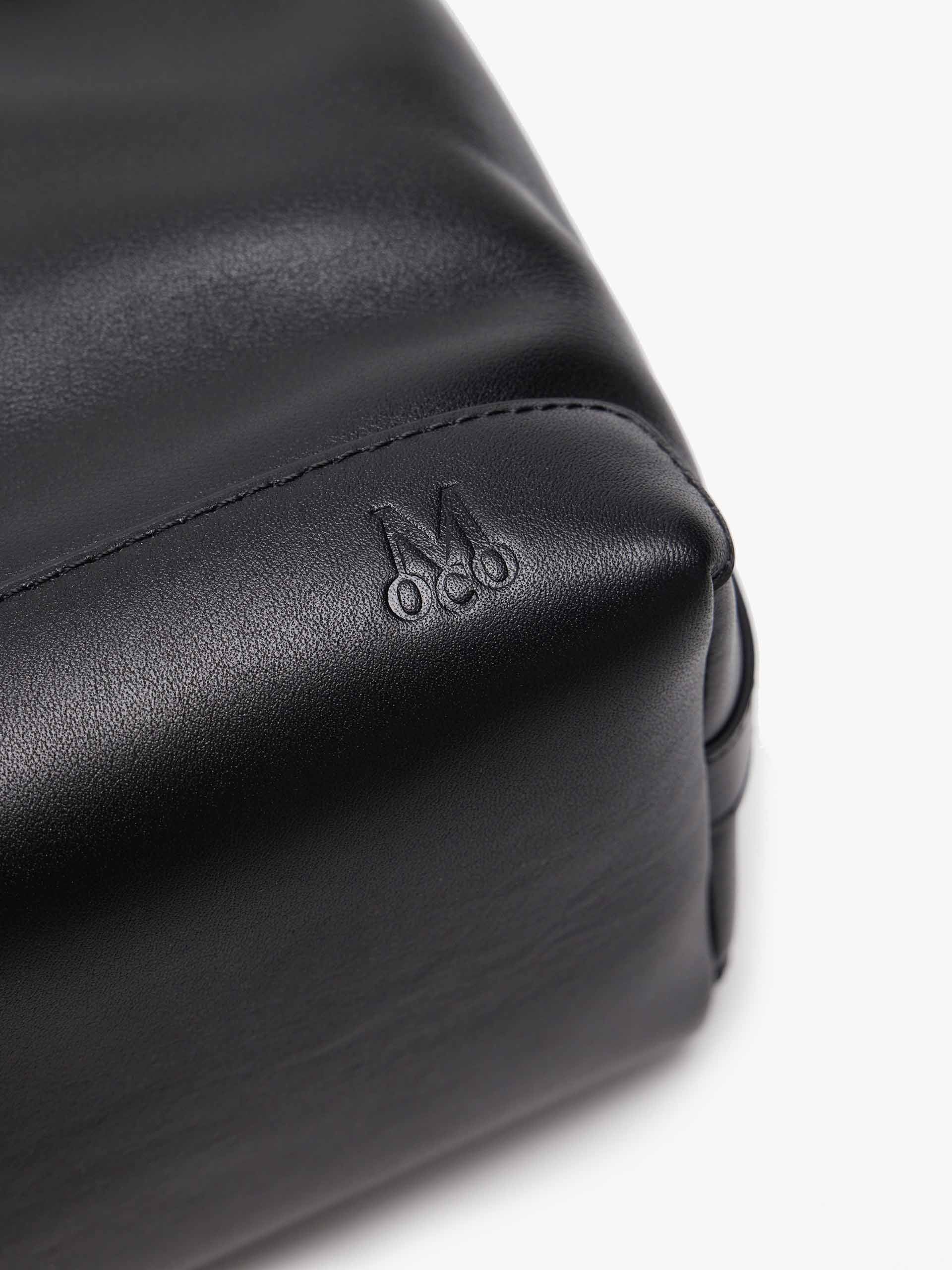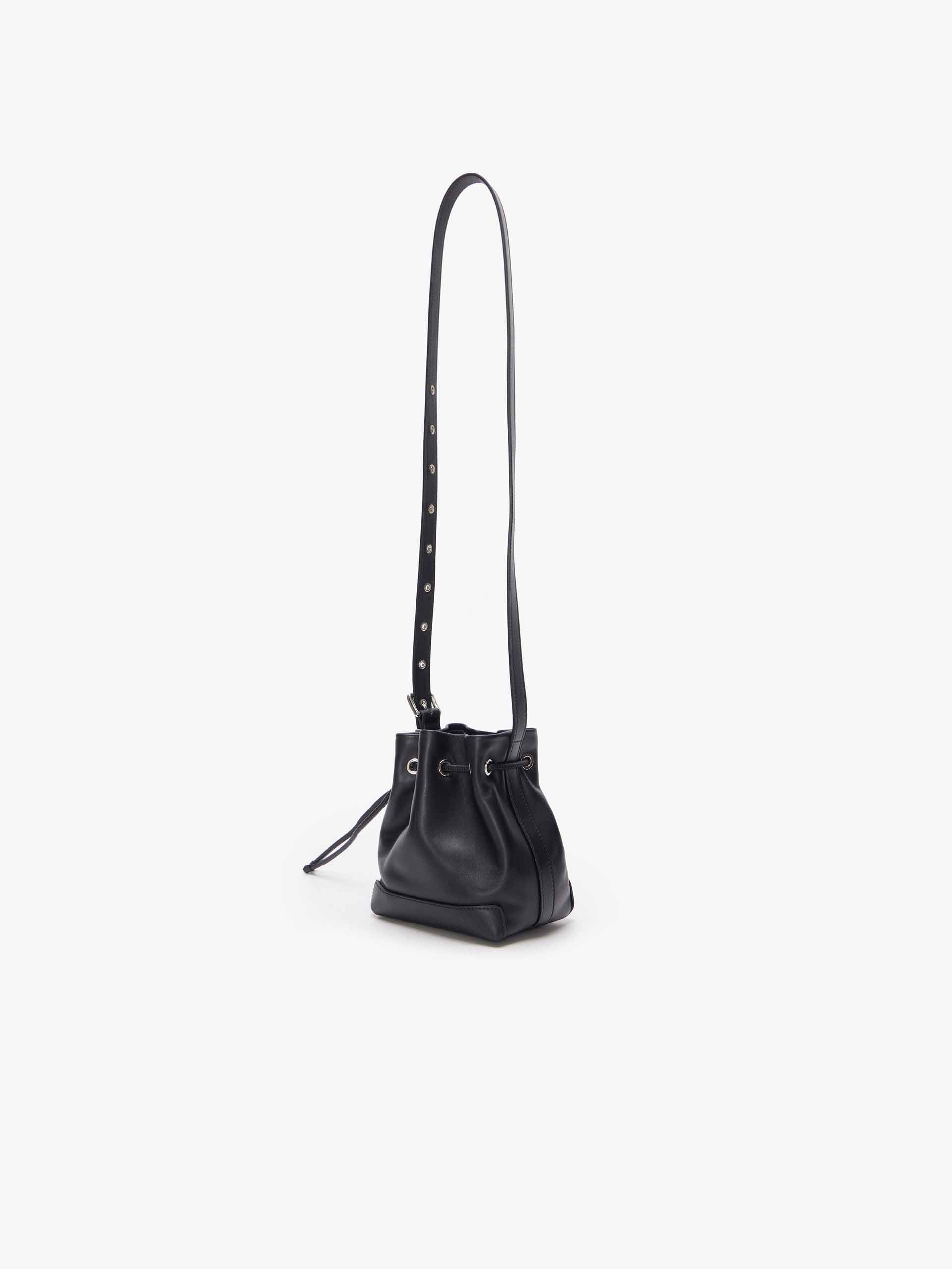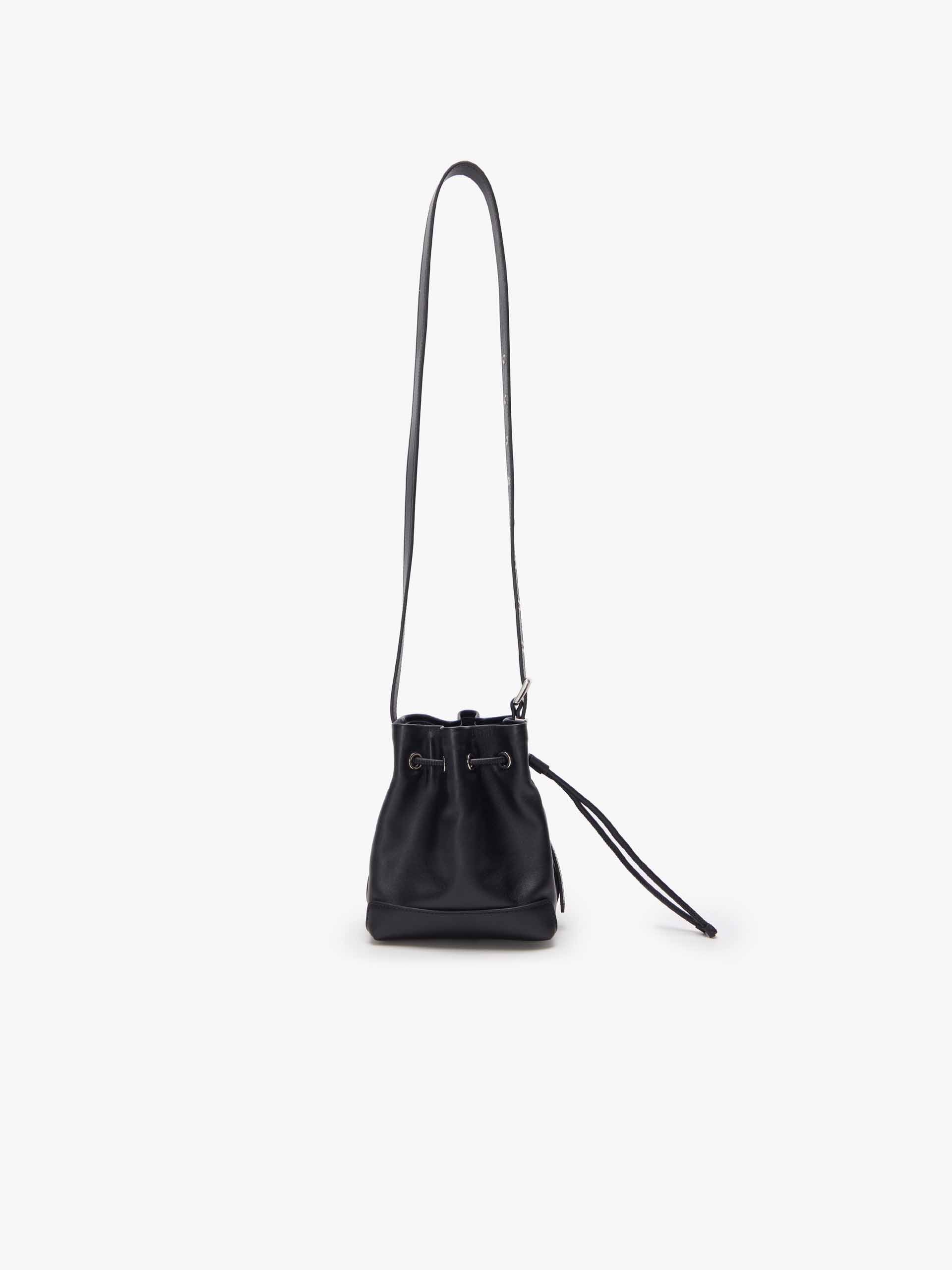 This crossbody bag is made from bovine leather in a black hue. It's cut in mini size and features a drawstring closure that creates an exaggerated, softly gathered profile.