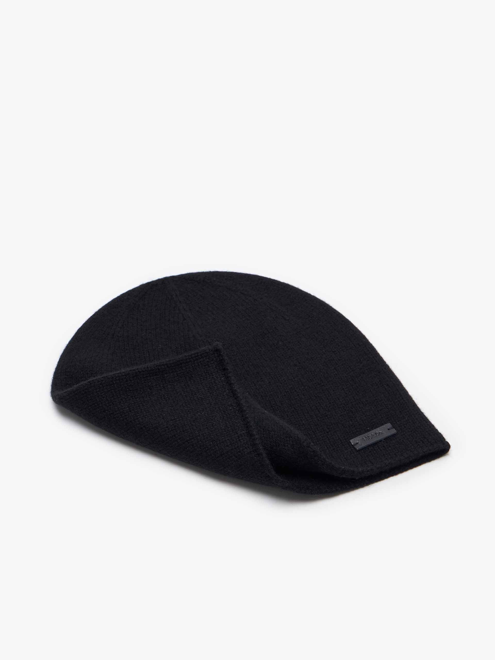 This beanie is made from a premium blend of wool and cashmere, which offers exceptional softness and insulating warmth for colder weather. The classic ribbed knit design ensures versatile pairing with any winter wardrobe. A subtle black leather label adds a touch of refined branding to its minimalist aesthetic.