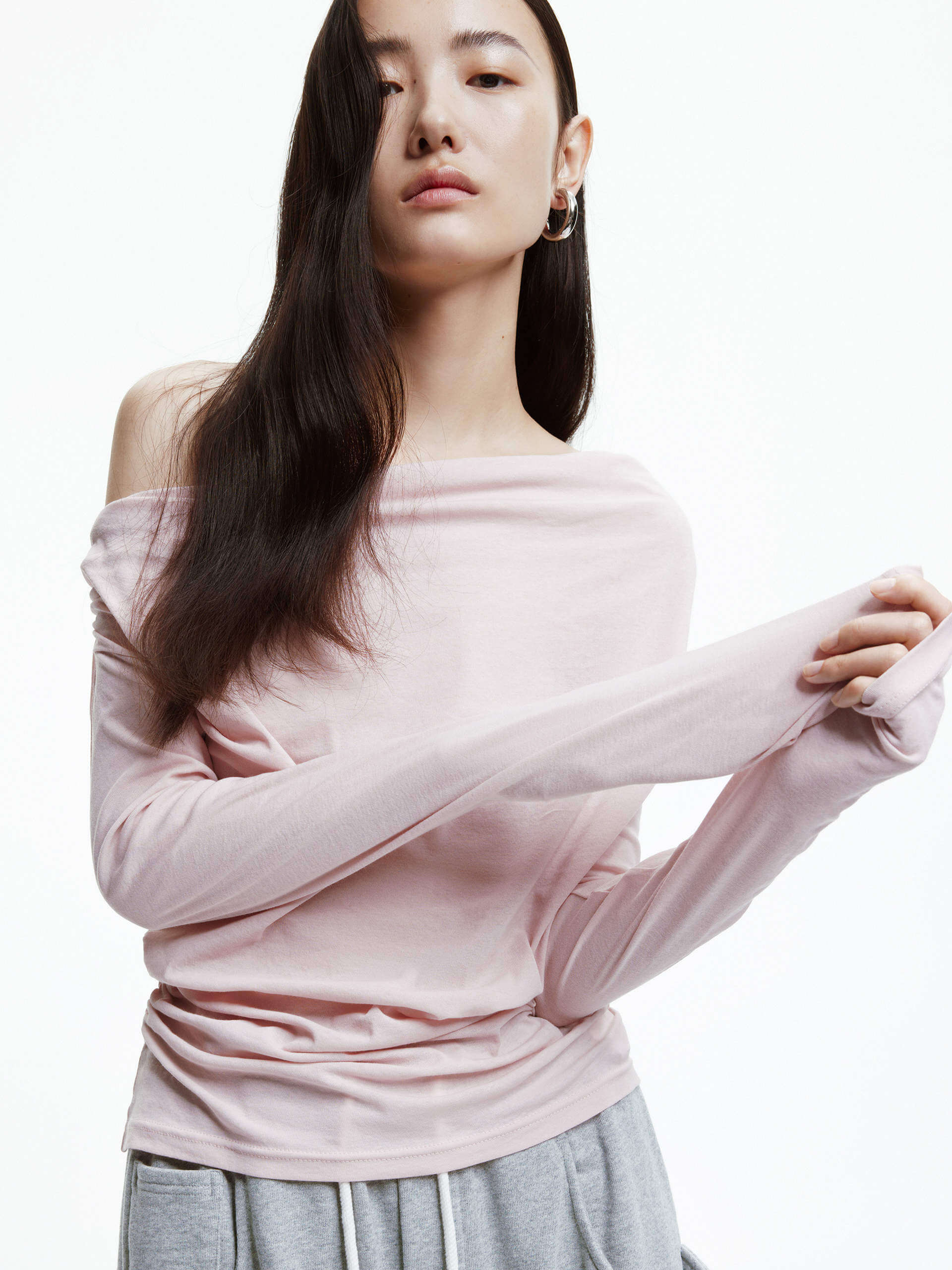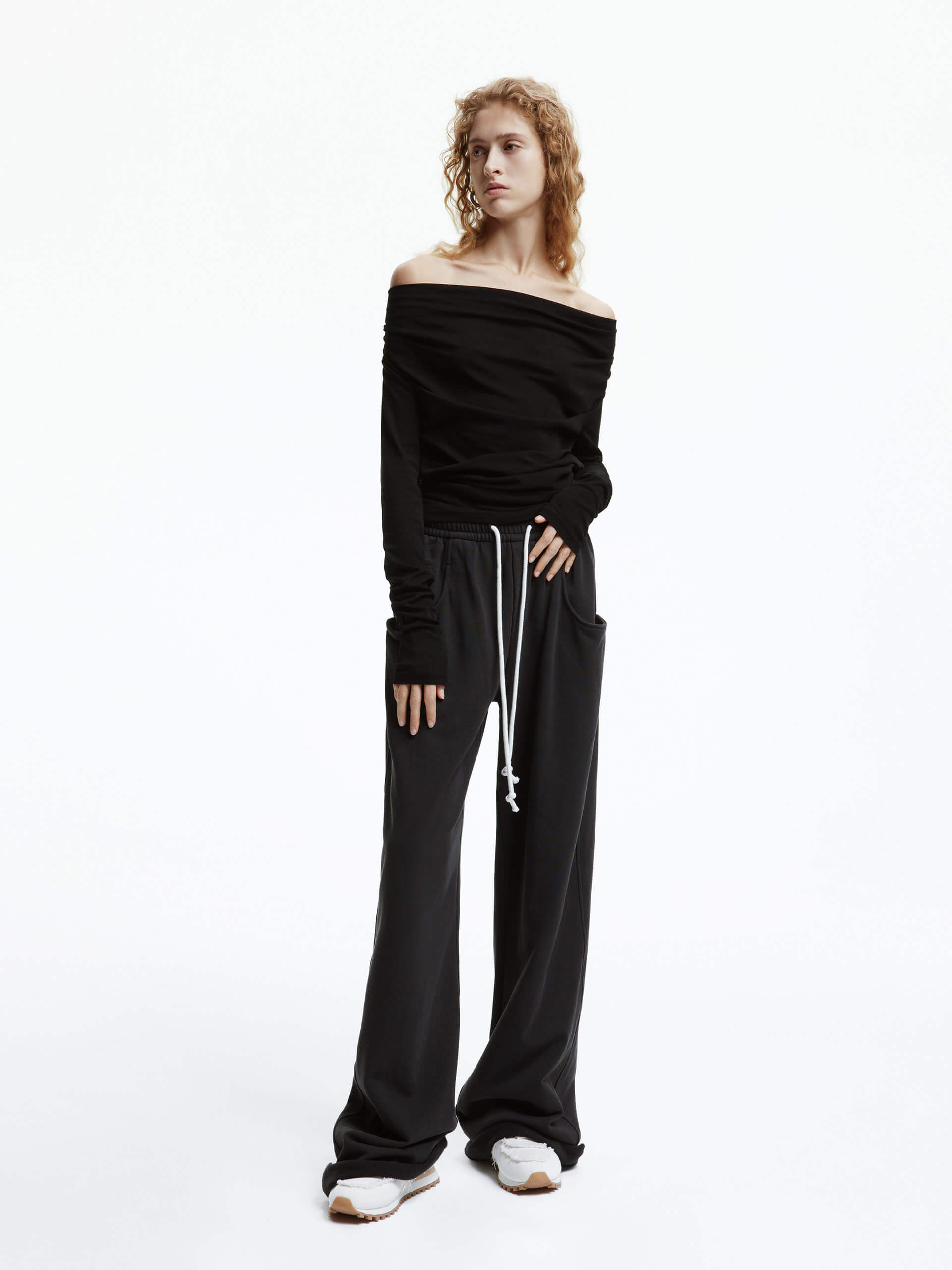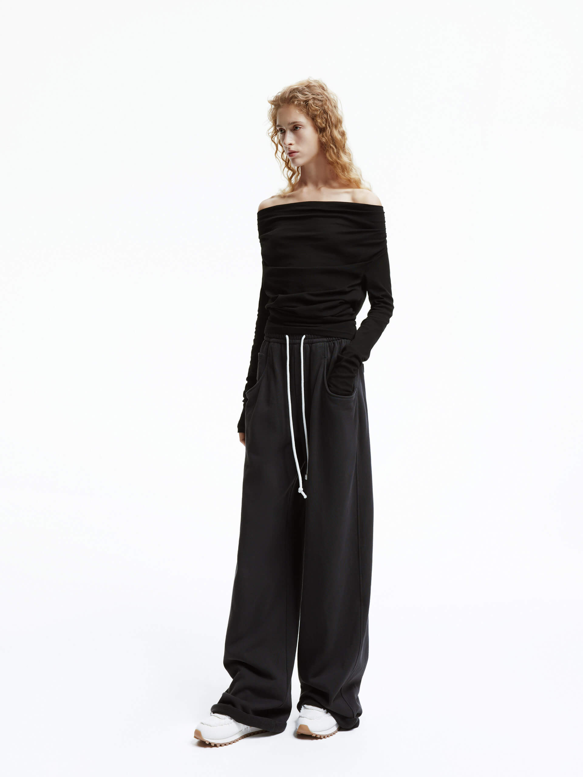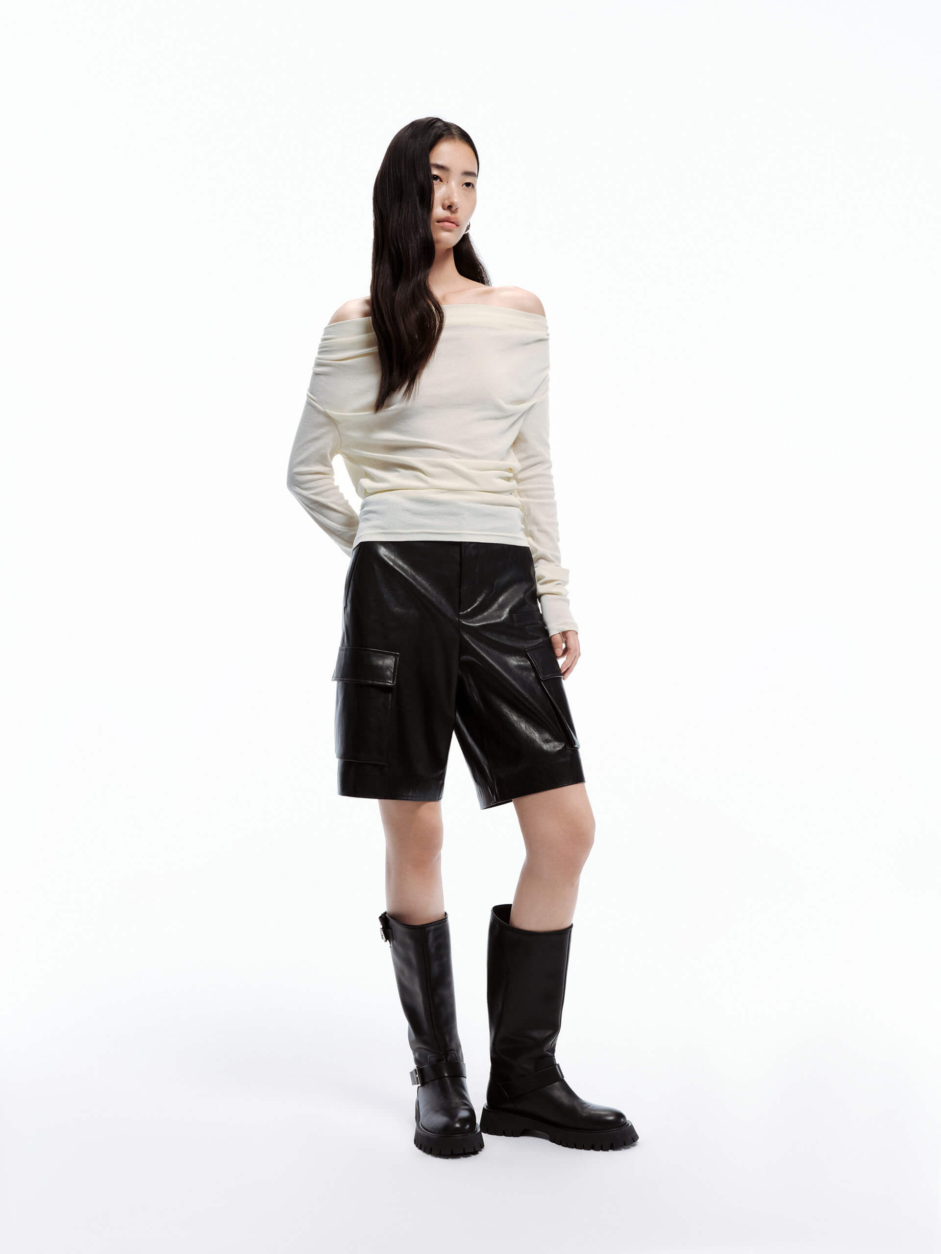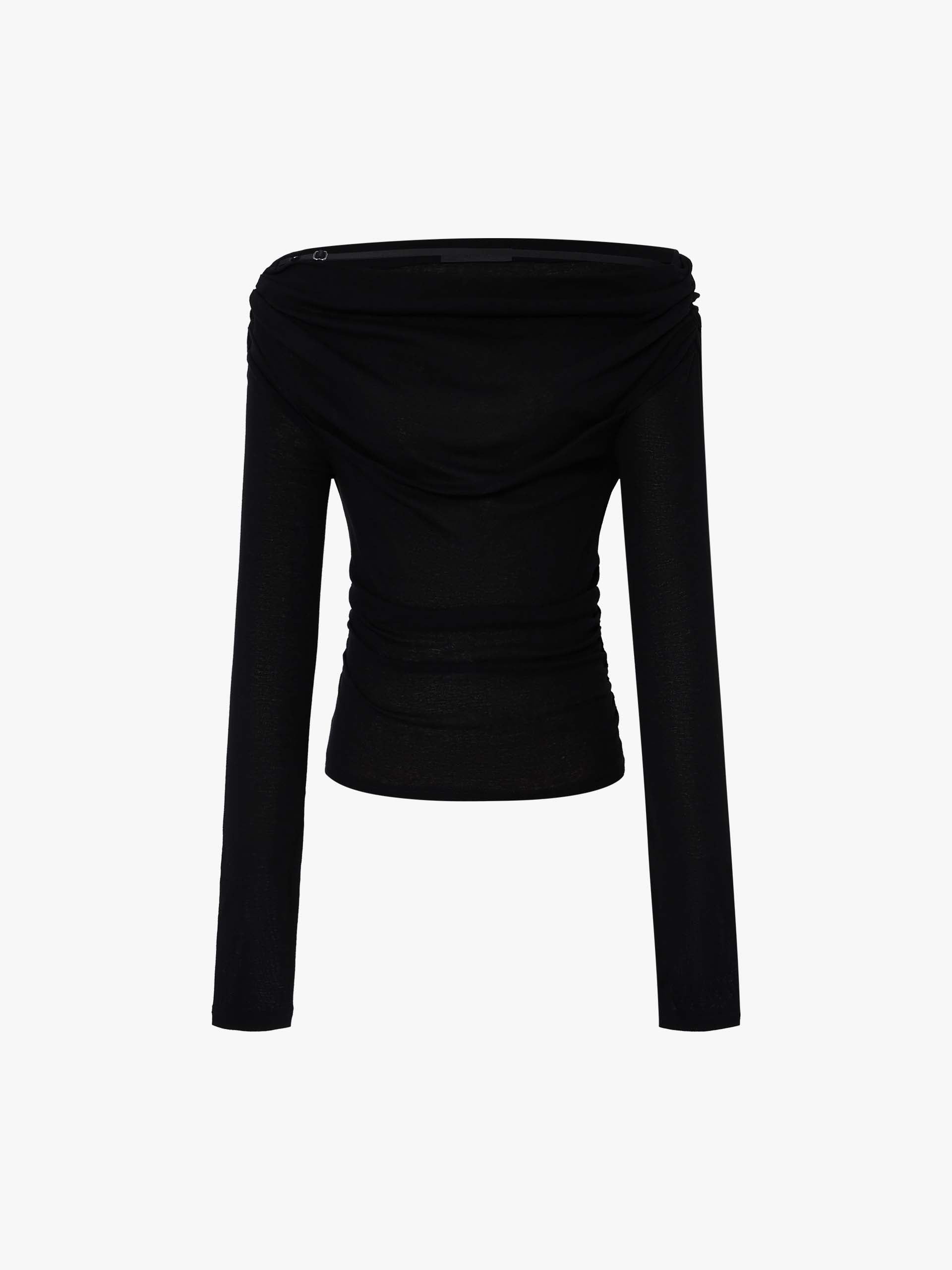 - Off-shoulder, long sleeves