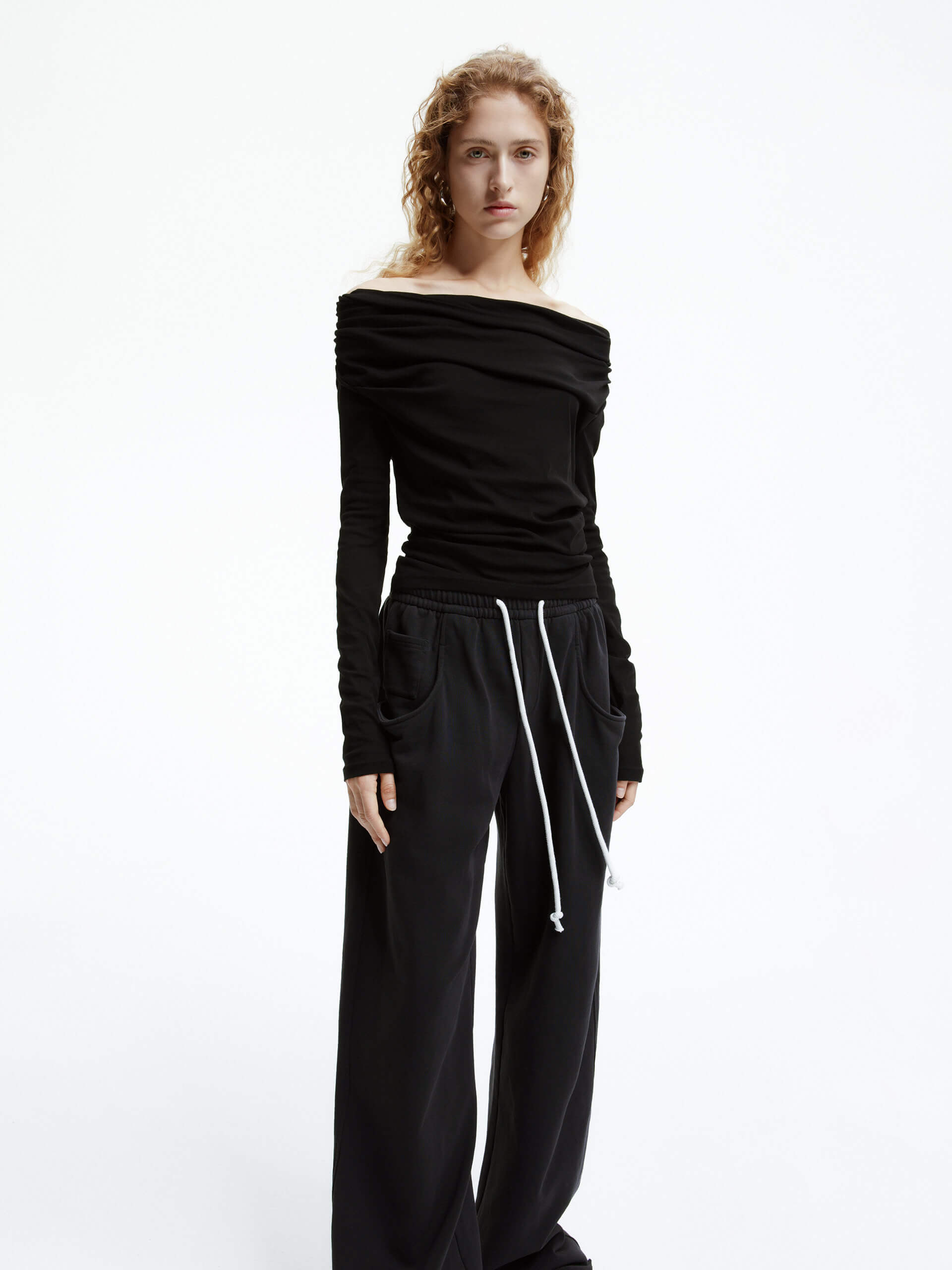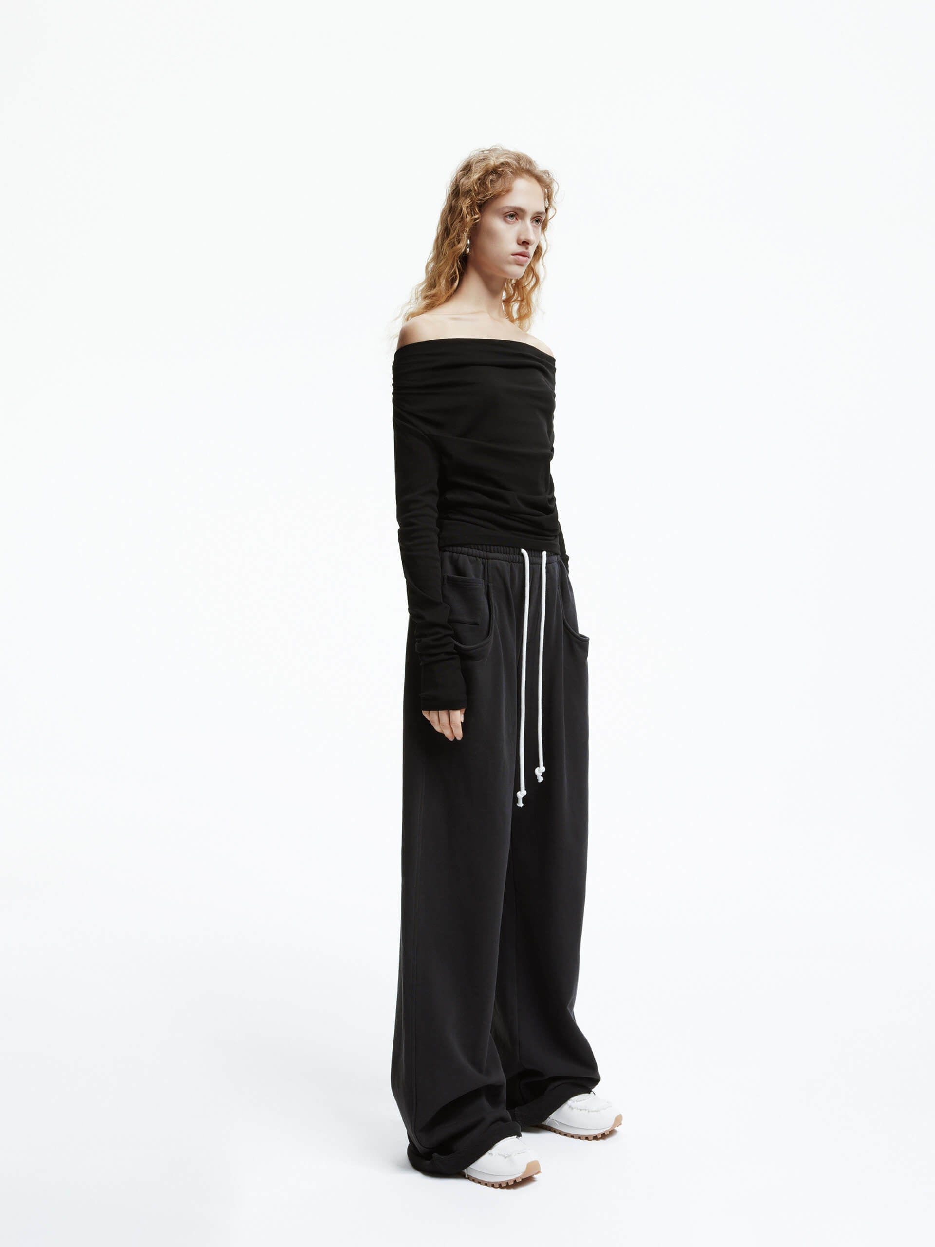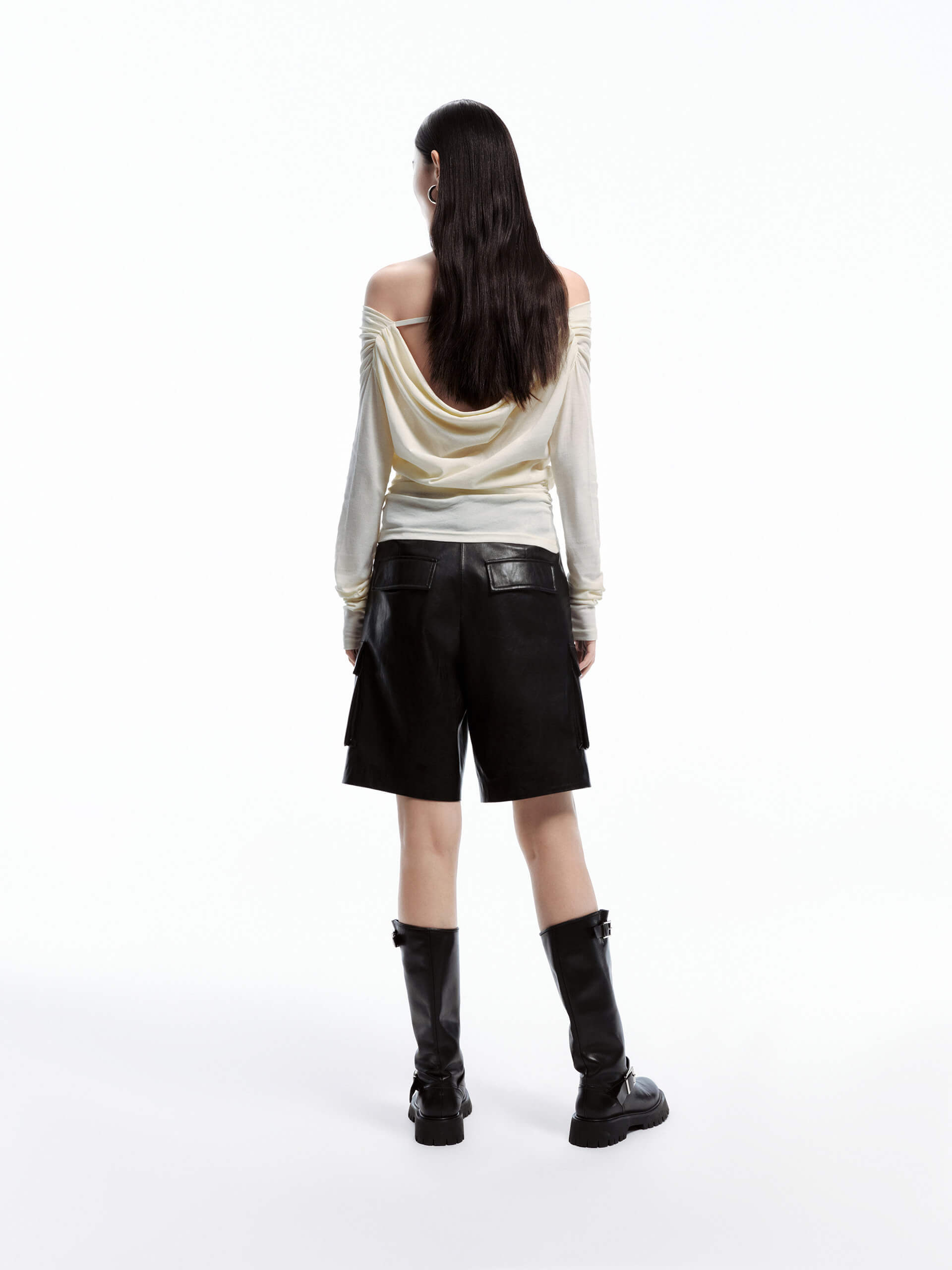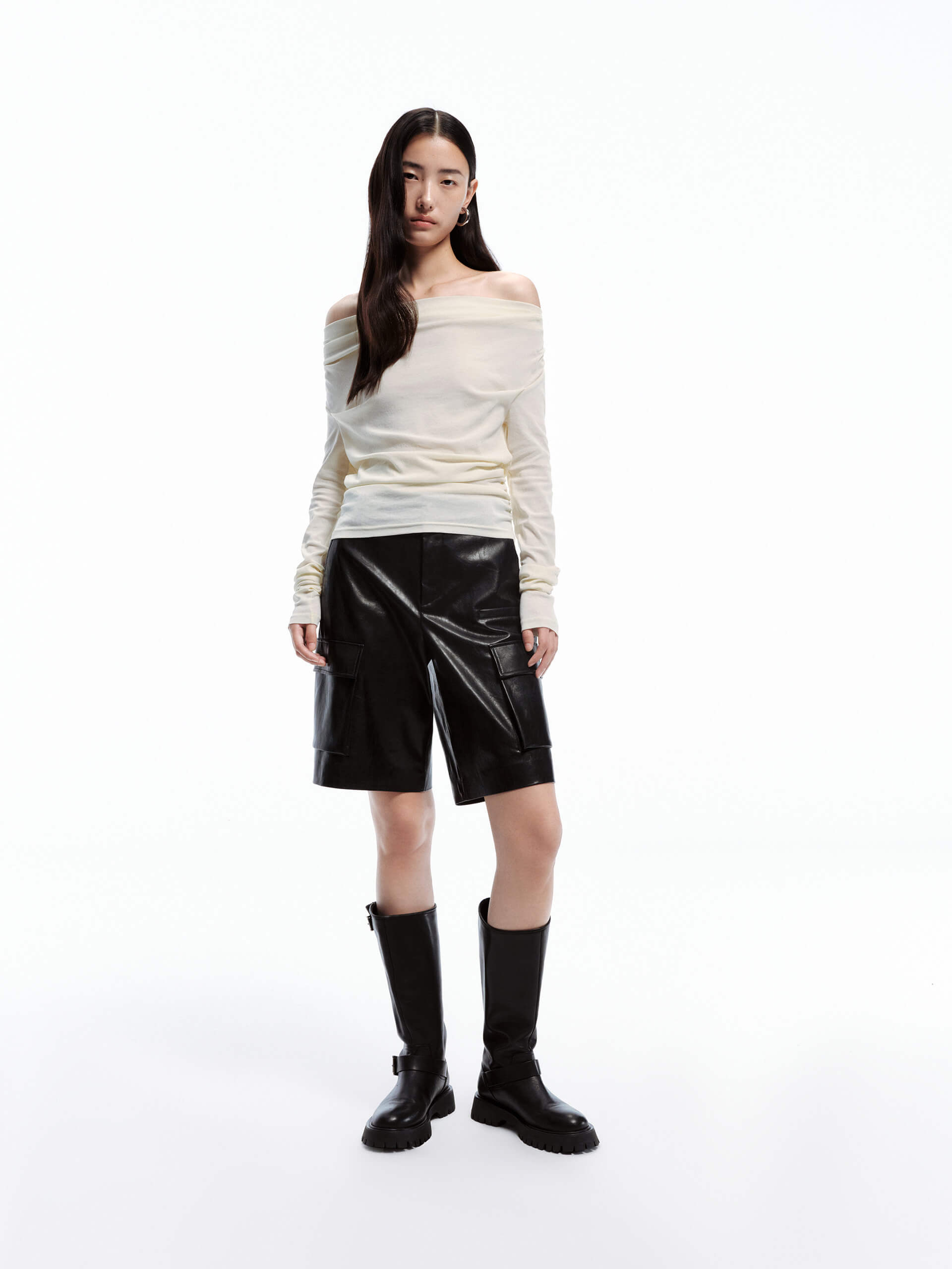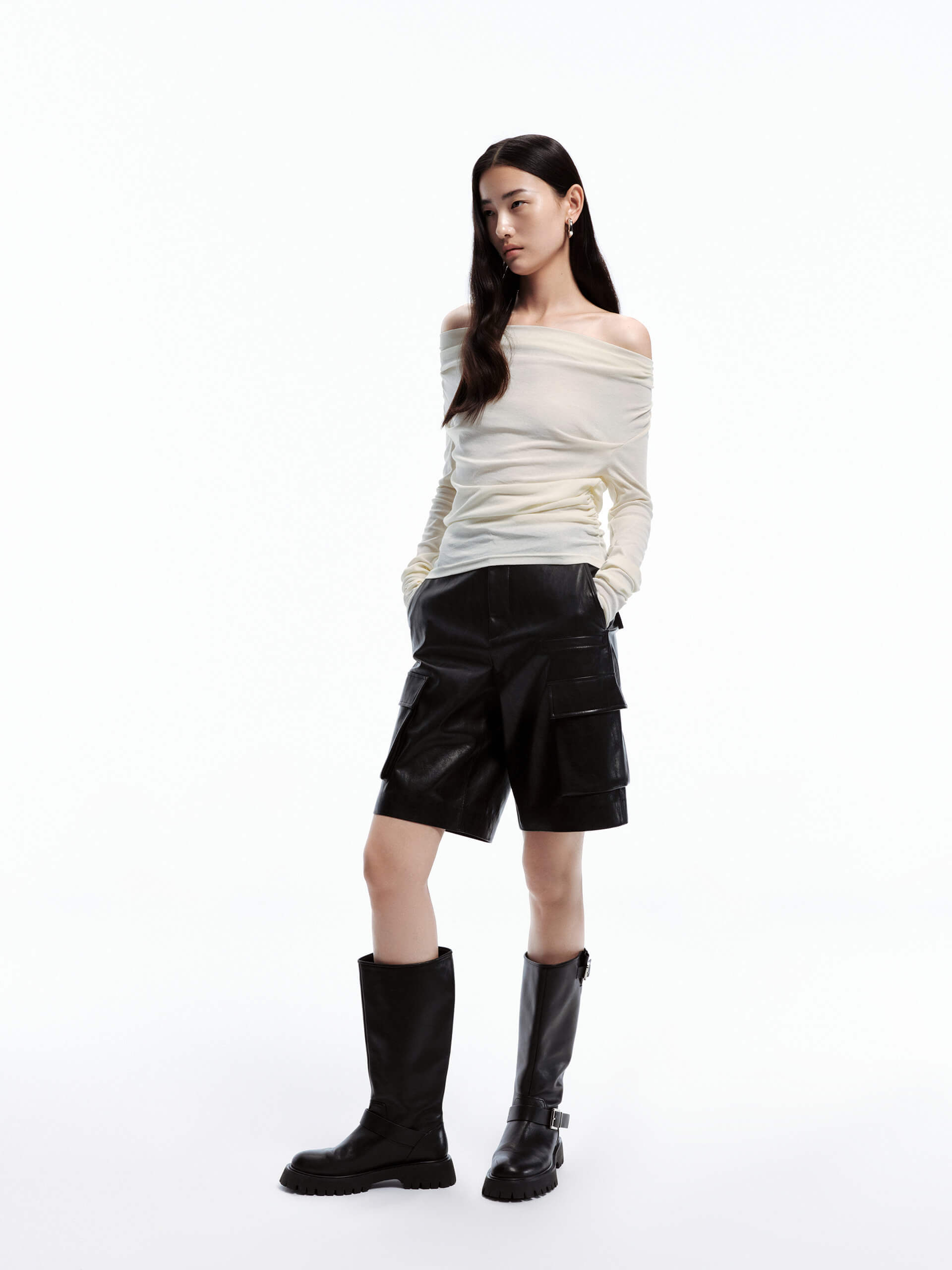 - Off-shoulder, long sleeves