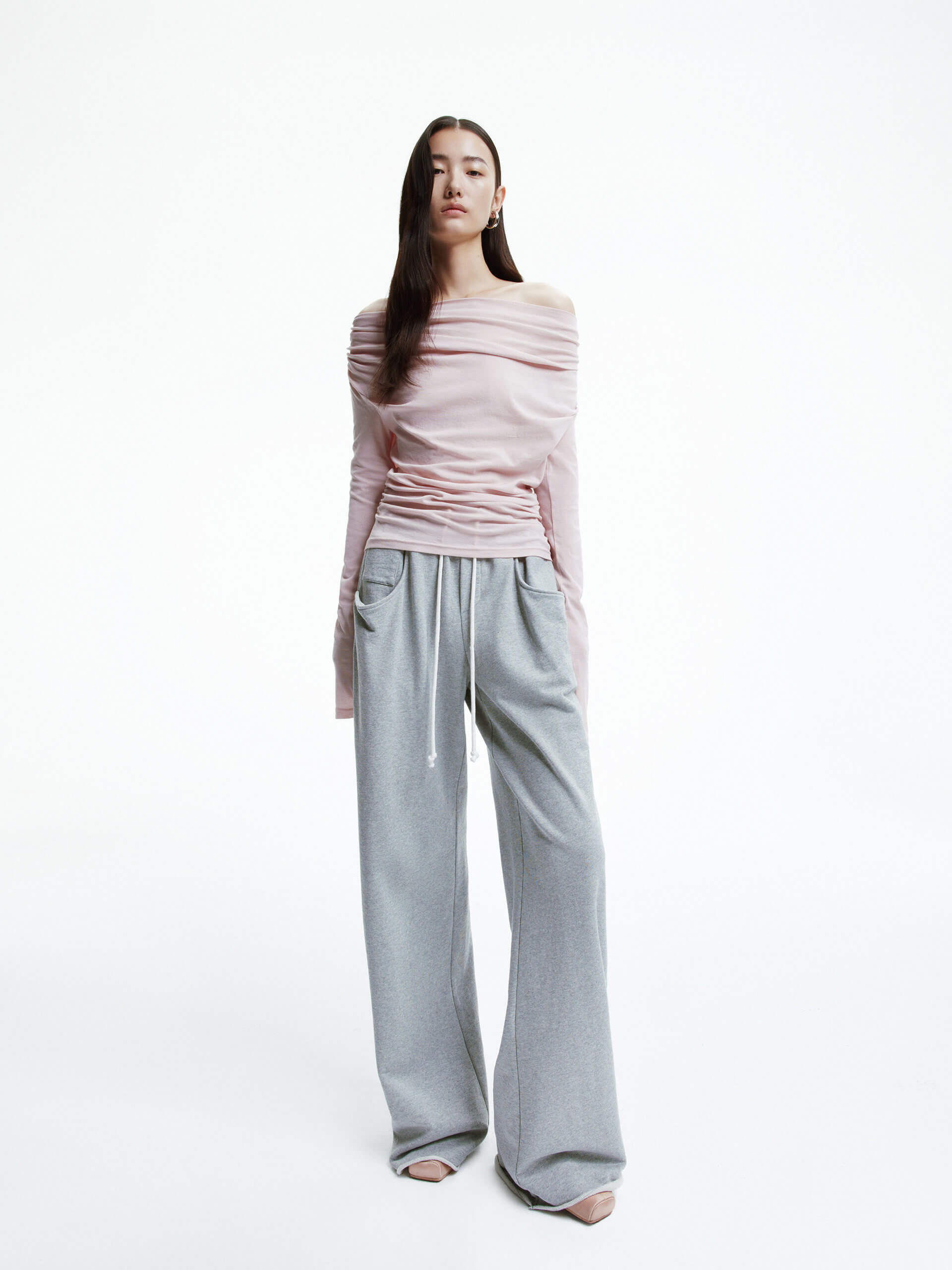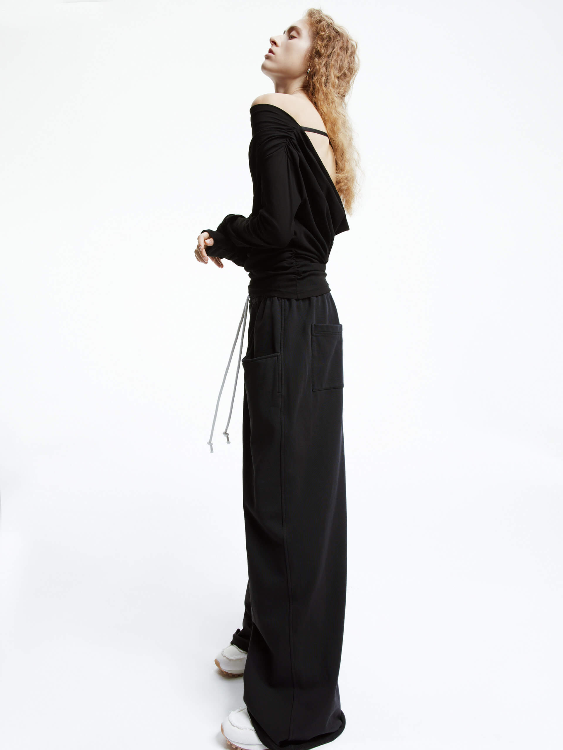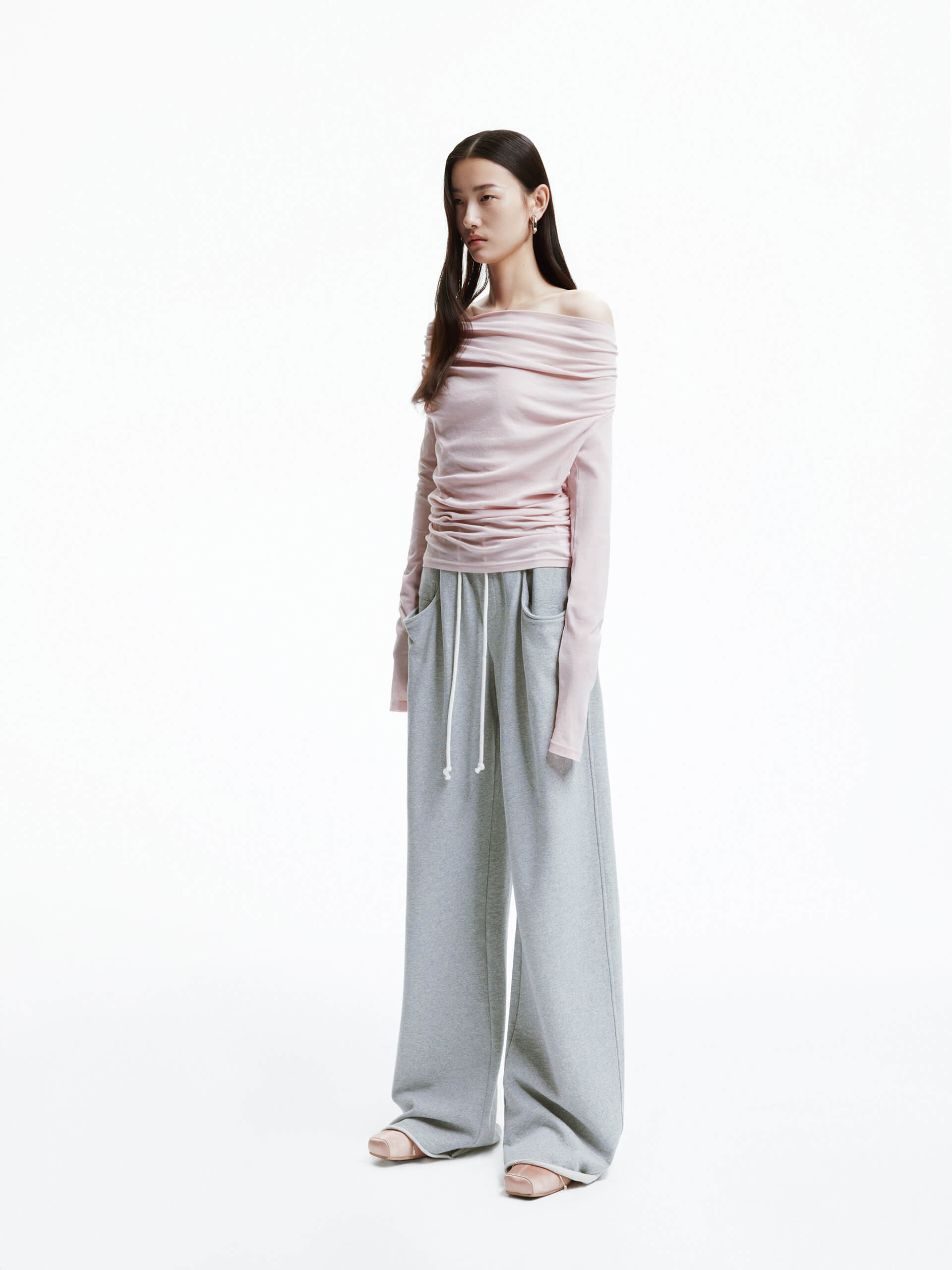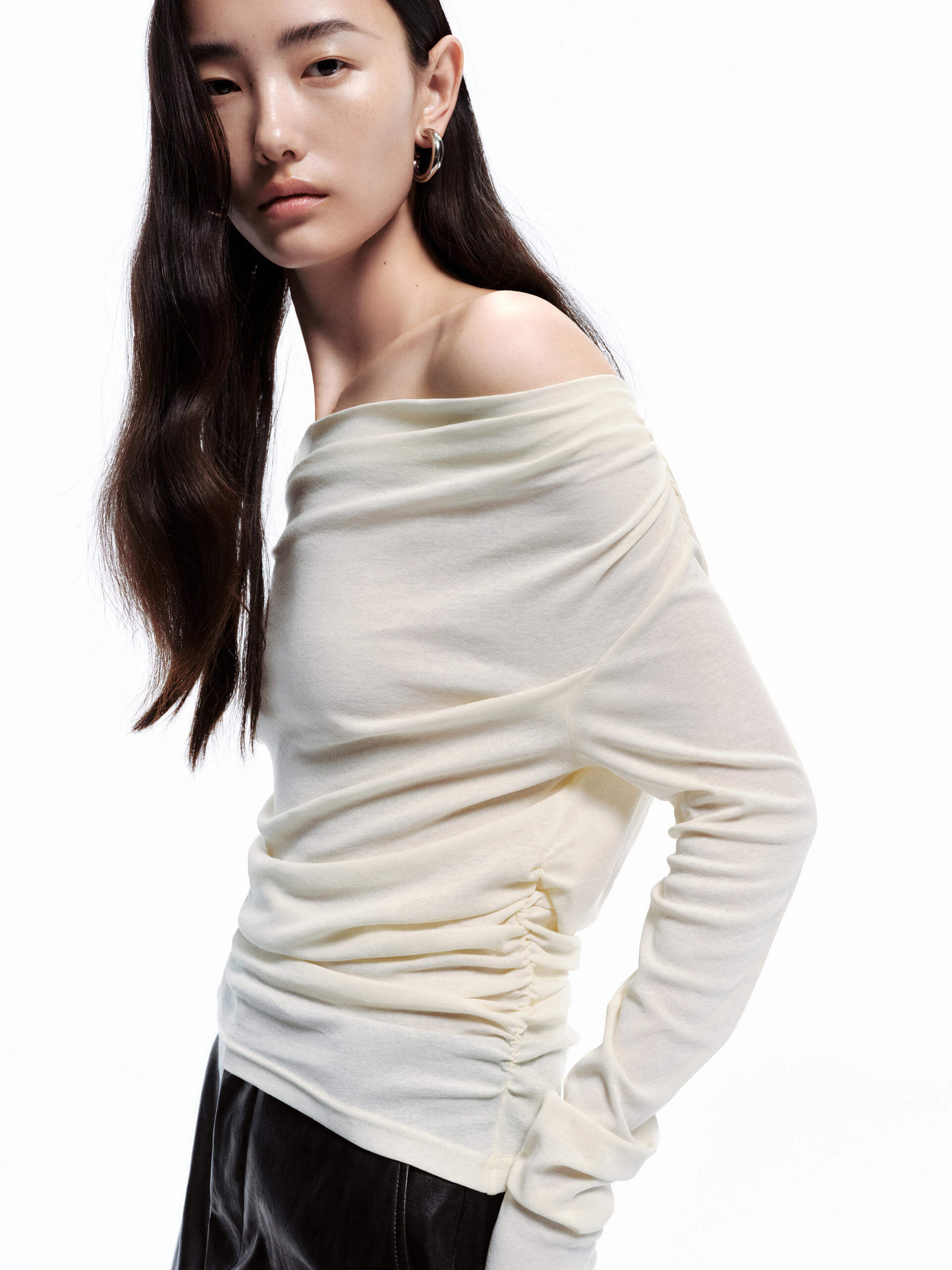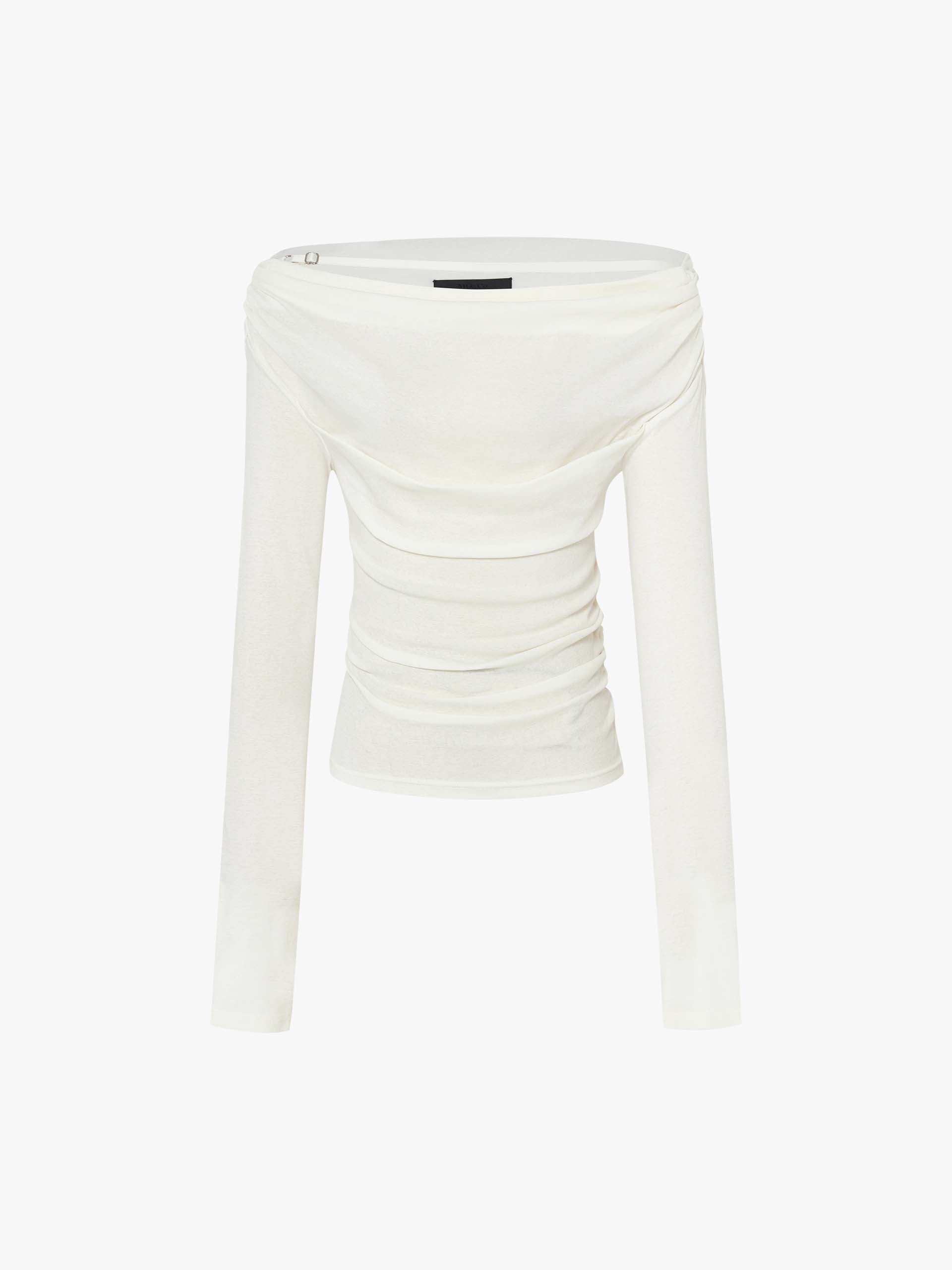 - Off-shoulder, long sleeves