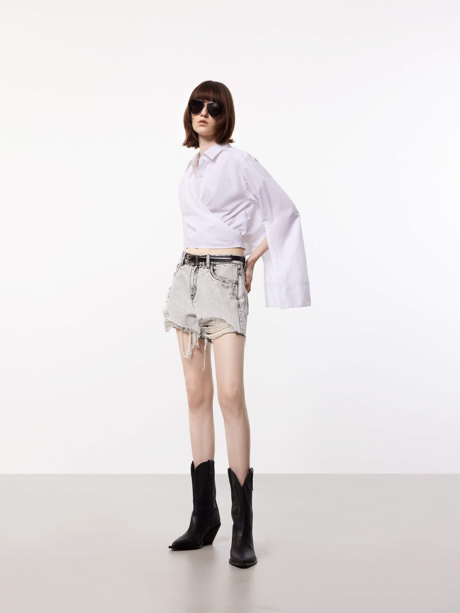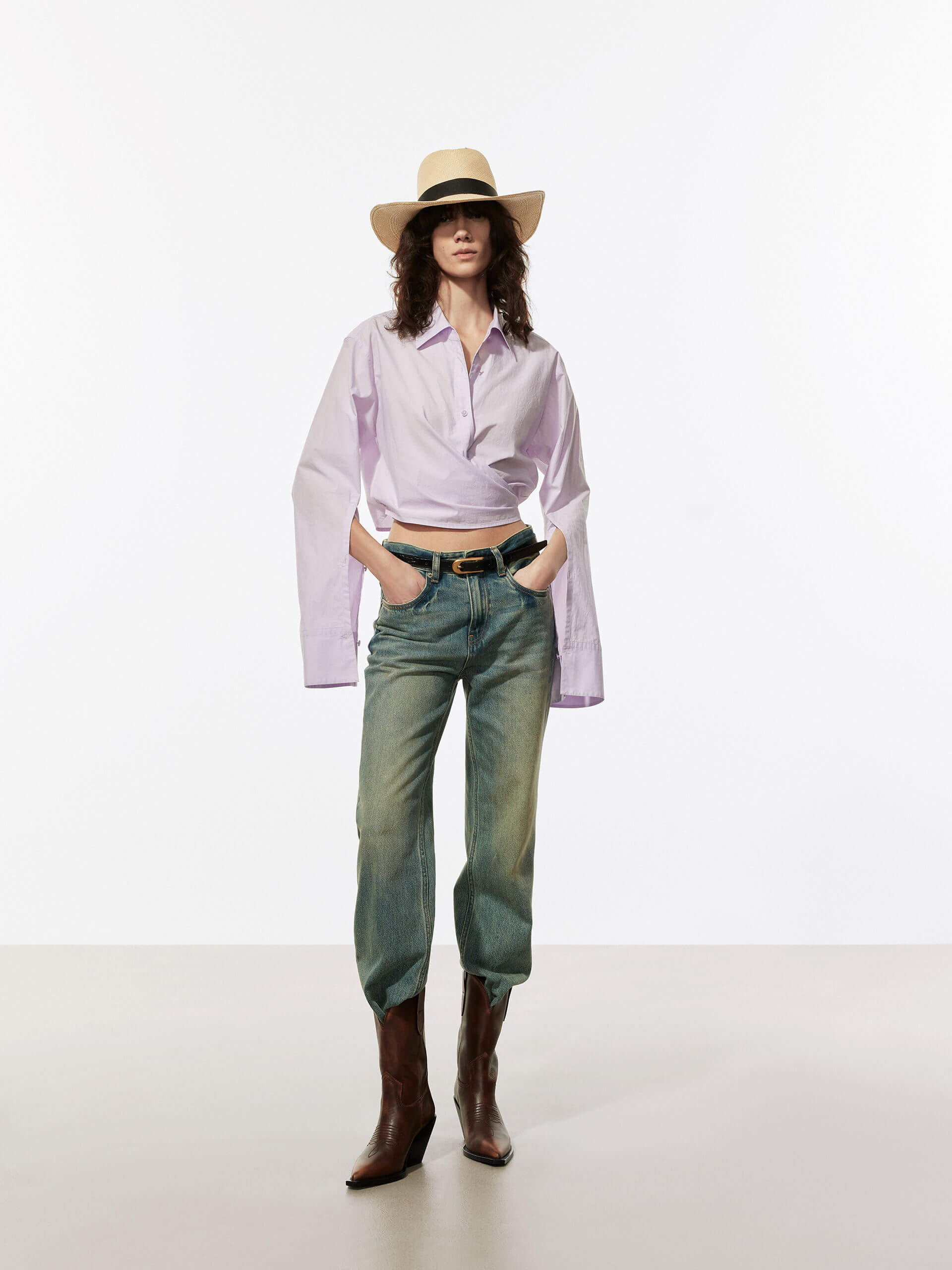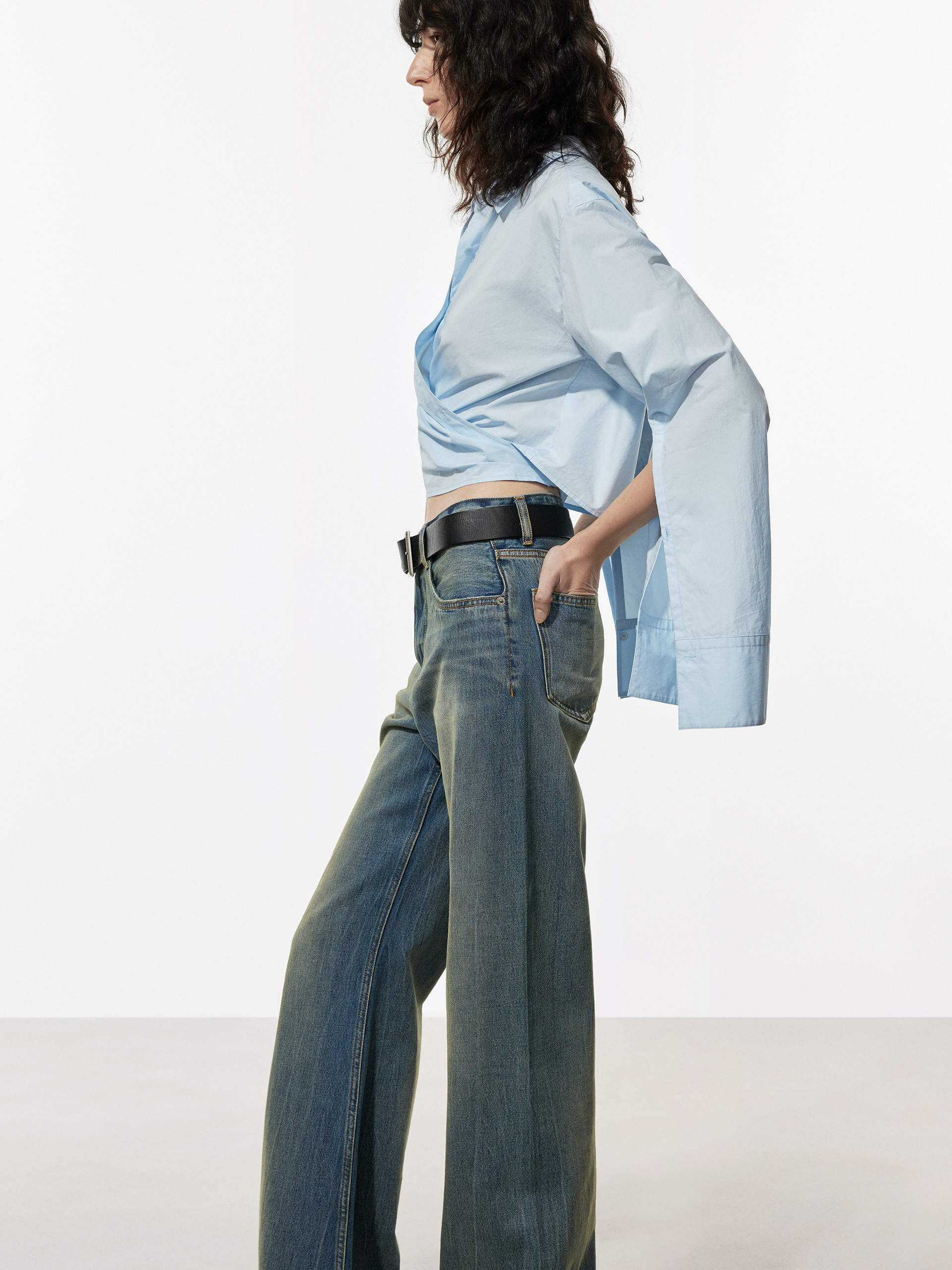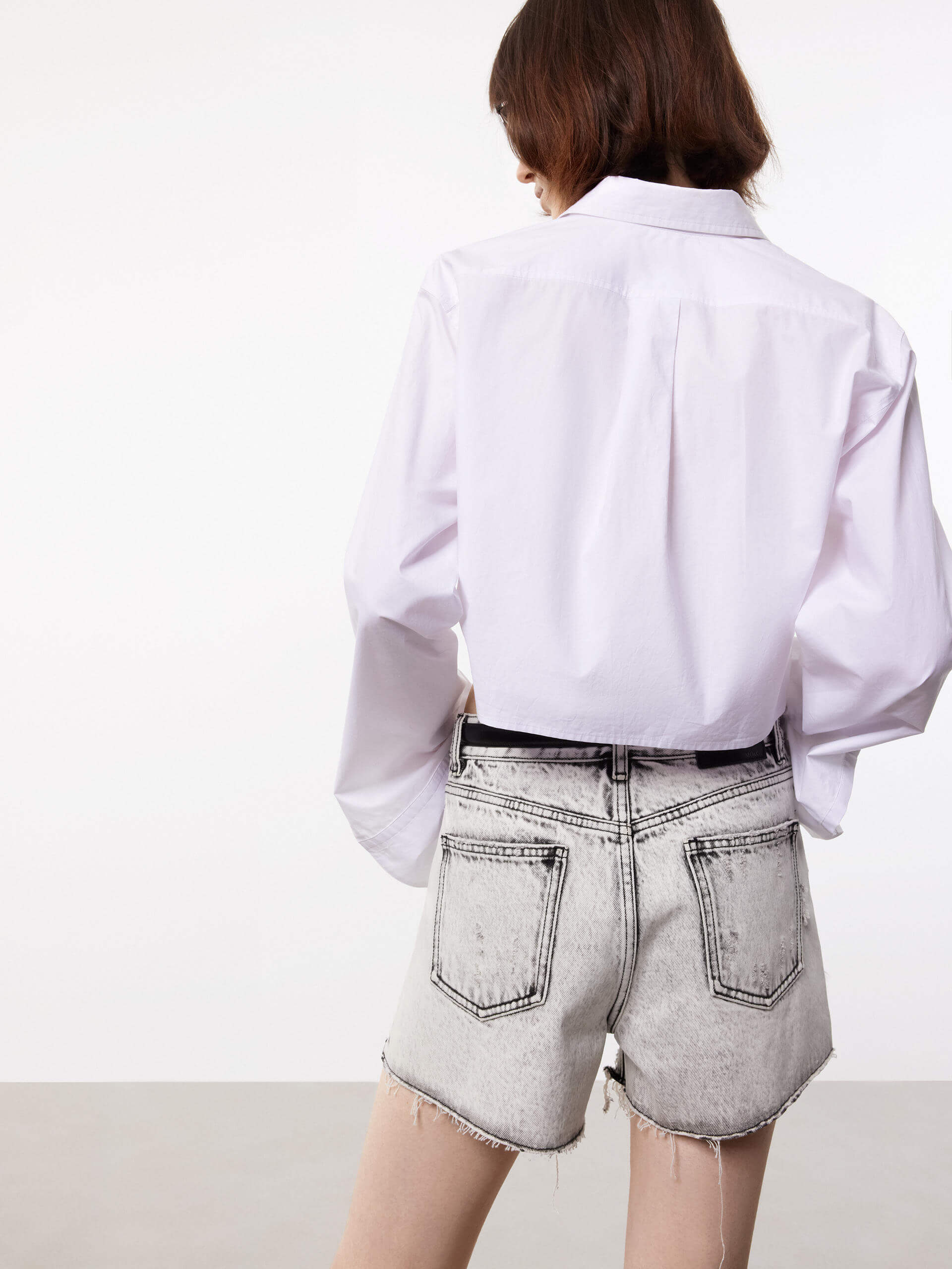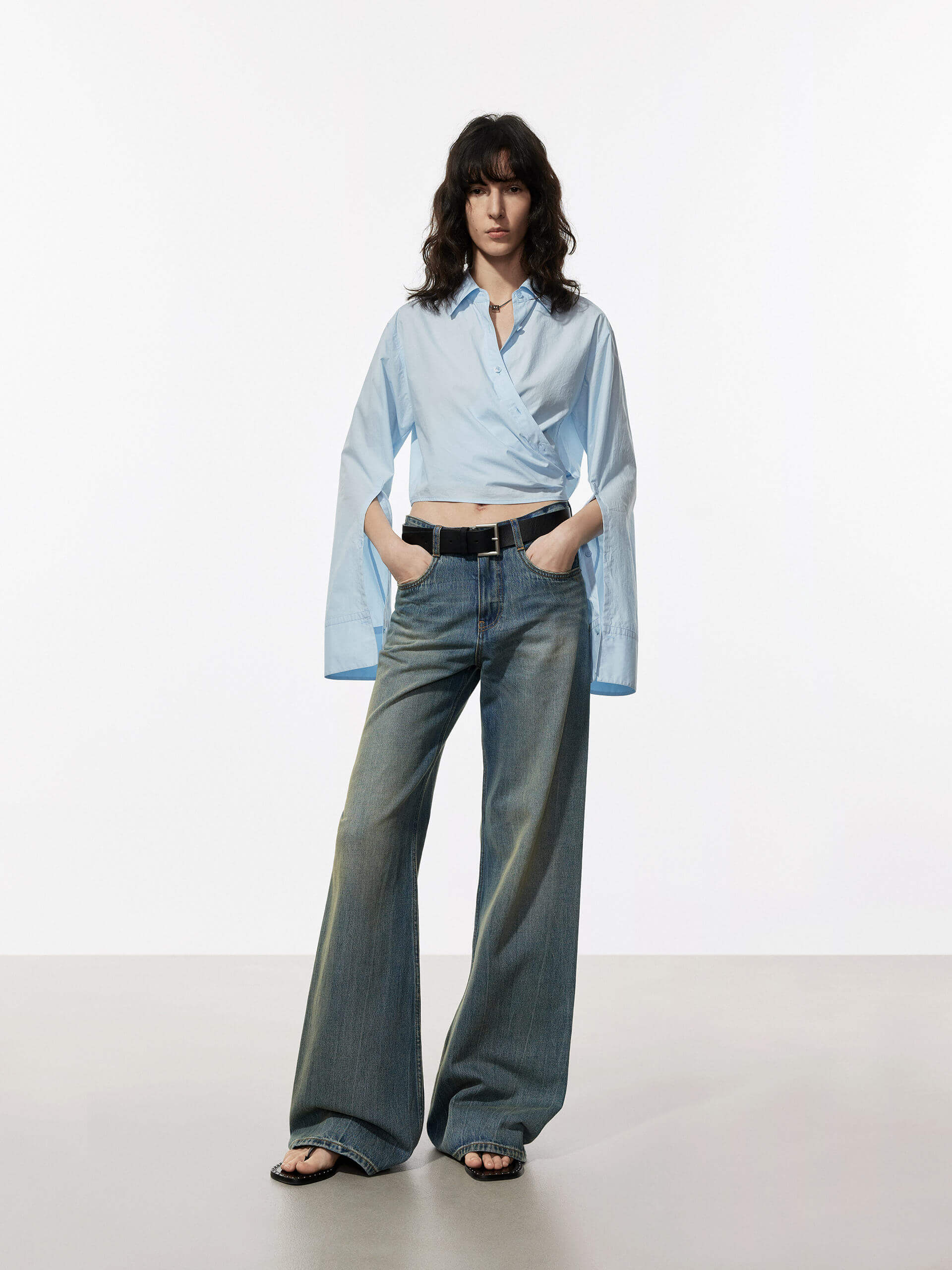 The MO&Co top is a stylish and comfortable piece of clothing made from 100% cotton. Features a shirt style with long cuffed sleeves and a button closure. The wrapped design adds a unique and fashionable touch to this top, making it perfect for any occasion. The cropped length of the top is ideal for pairing with high-waisted jeans or skirts, and the soft cotton fabric ensures a comfortable fit.