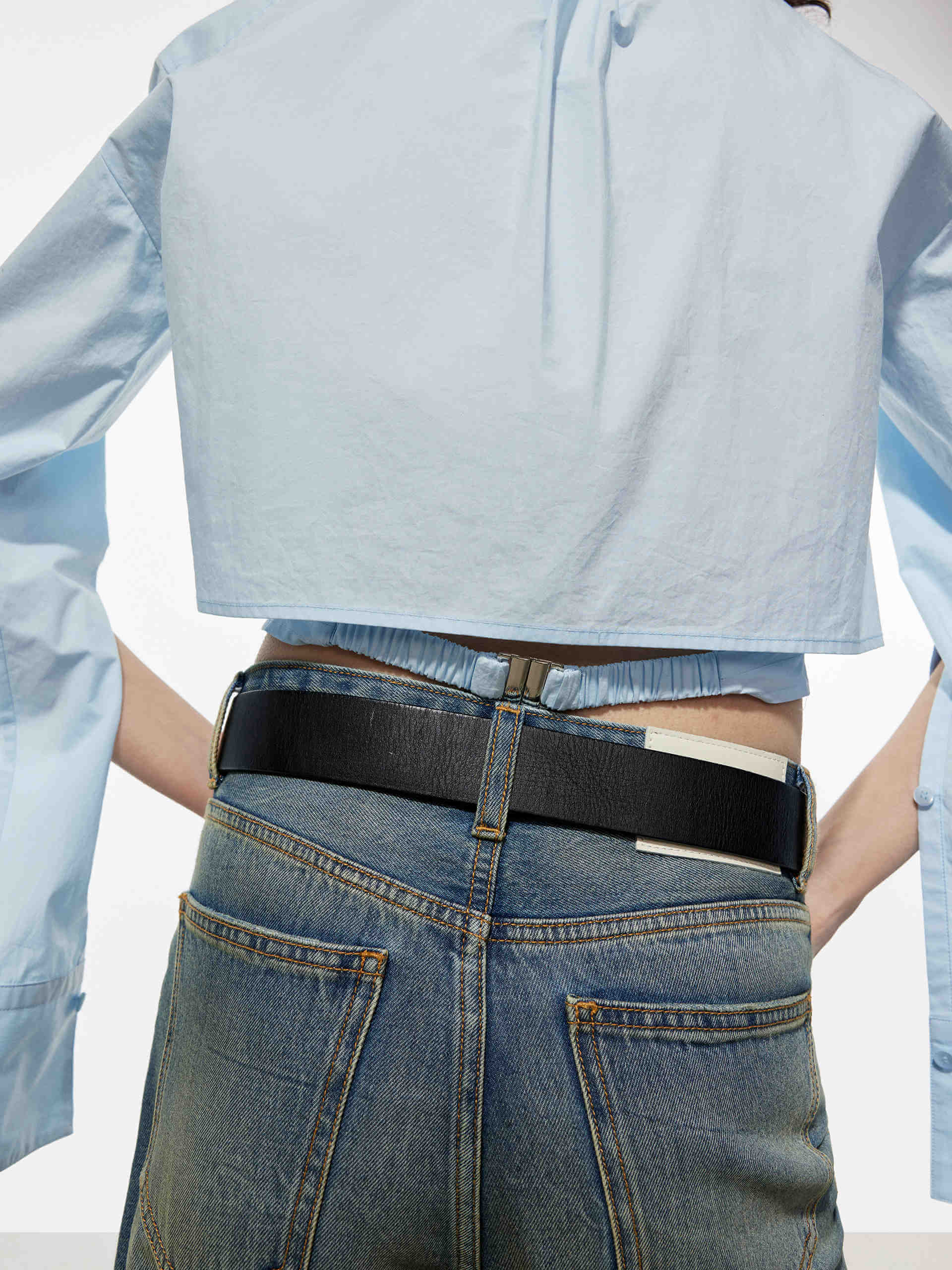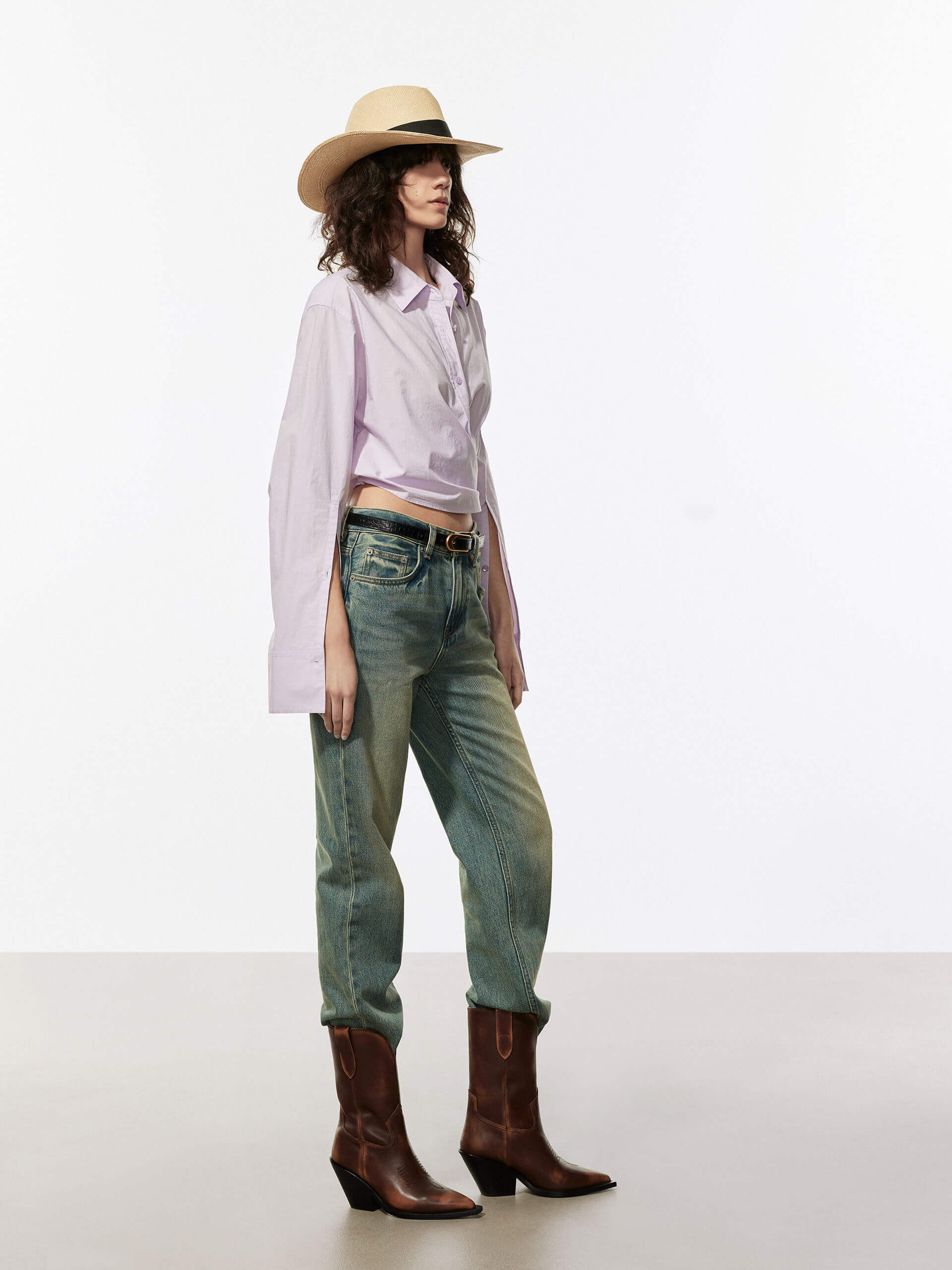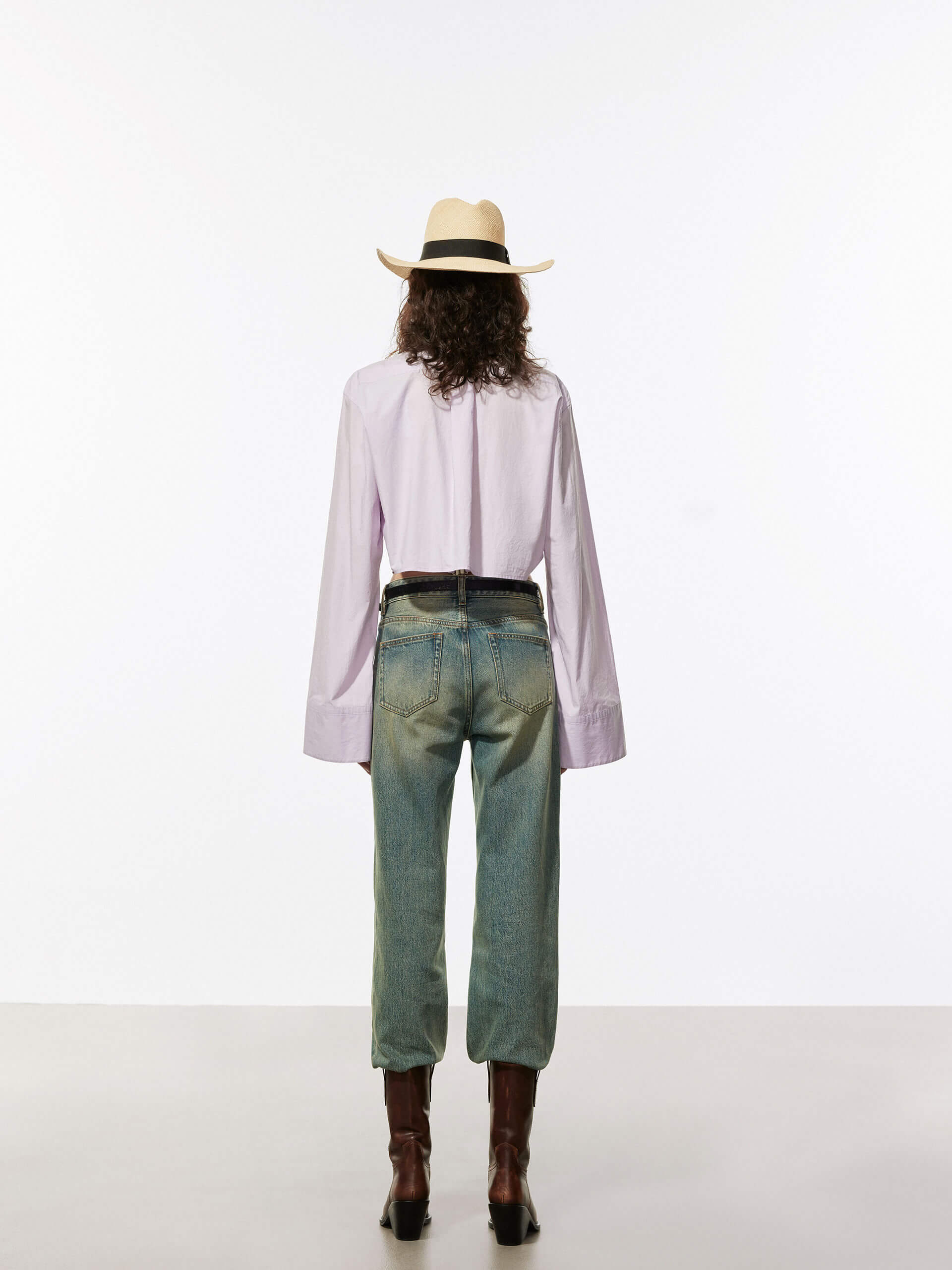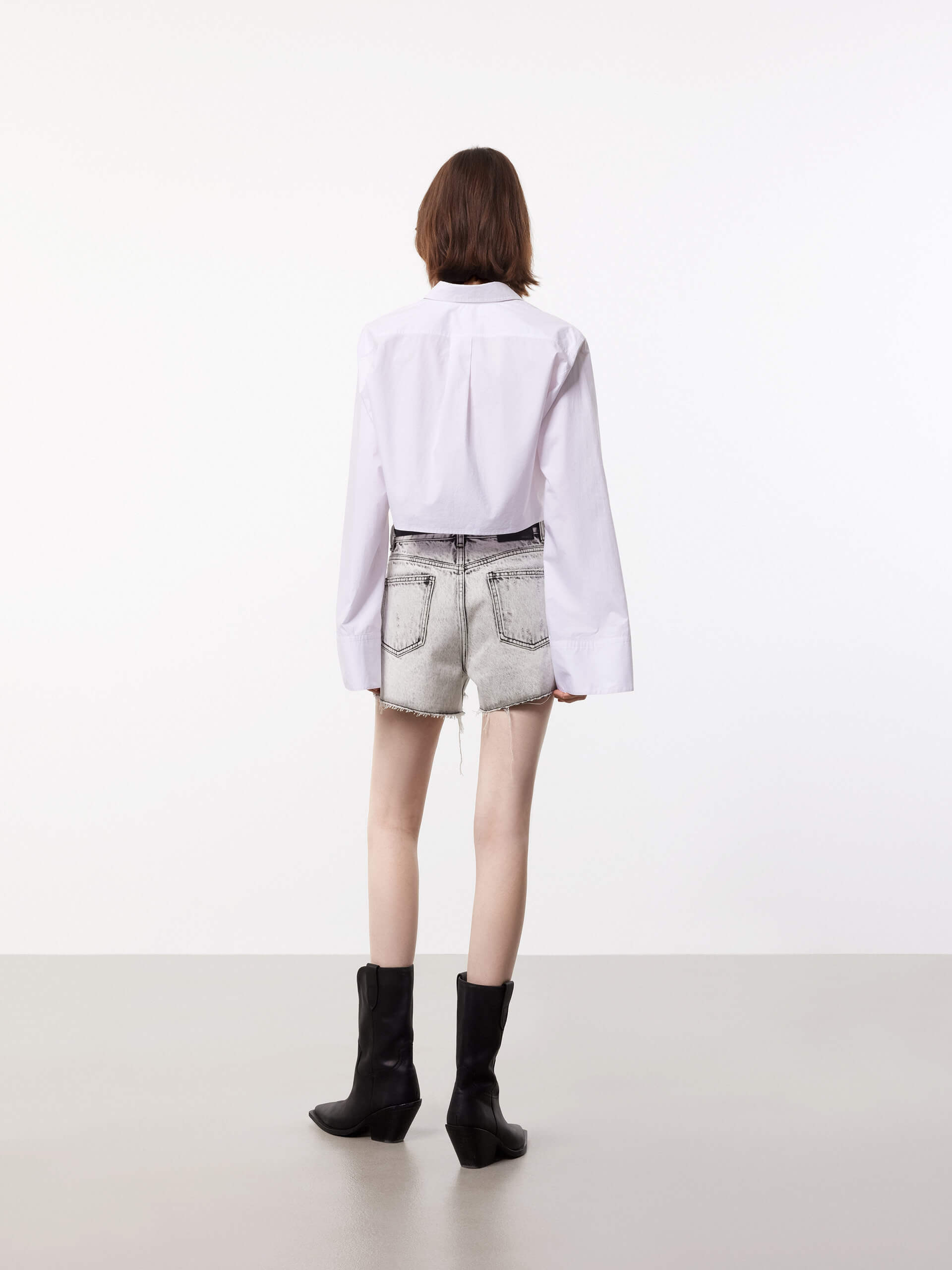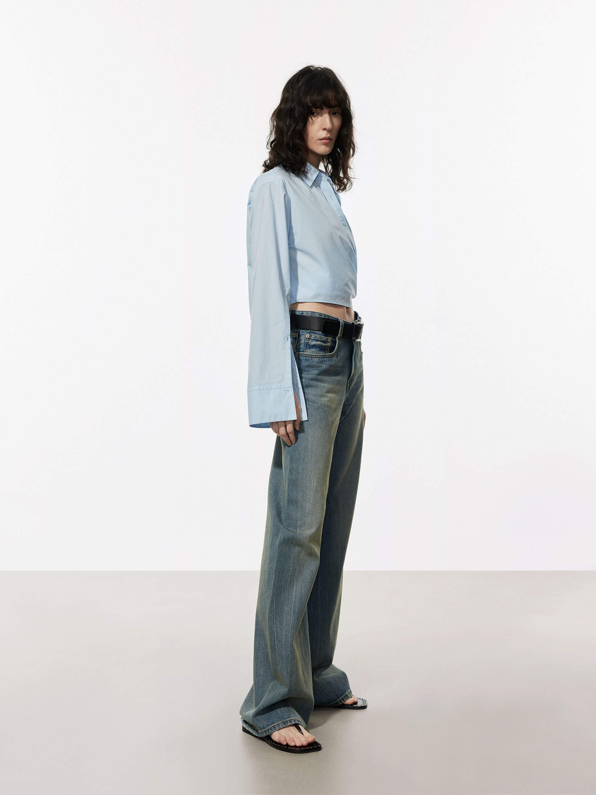 - Long cuffed sleeves, button closure