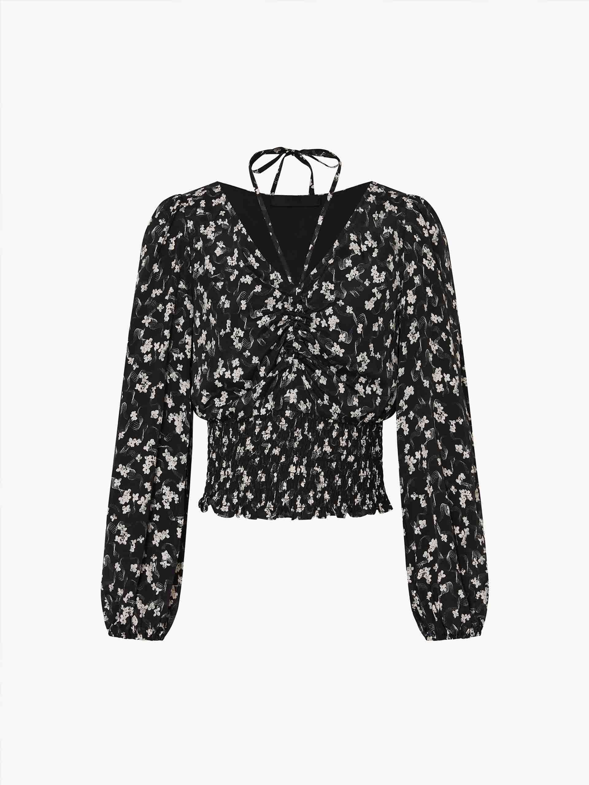 - V-neckline with self-tie detail
