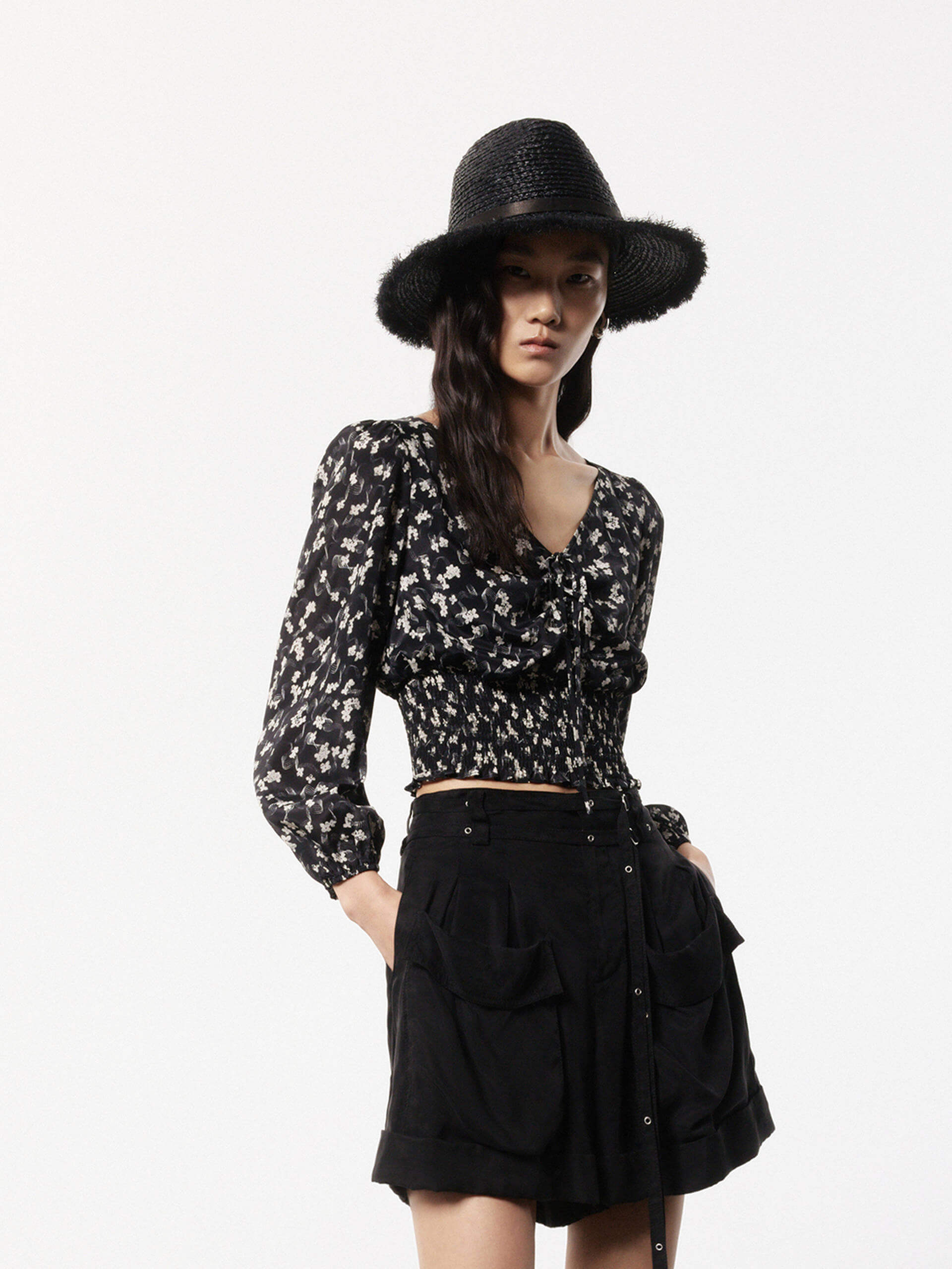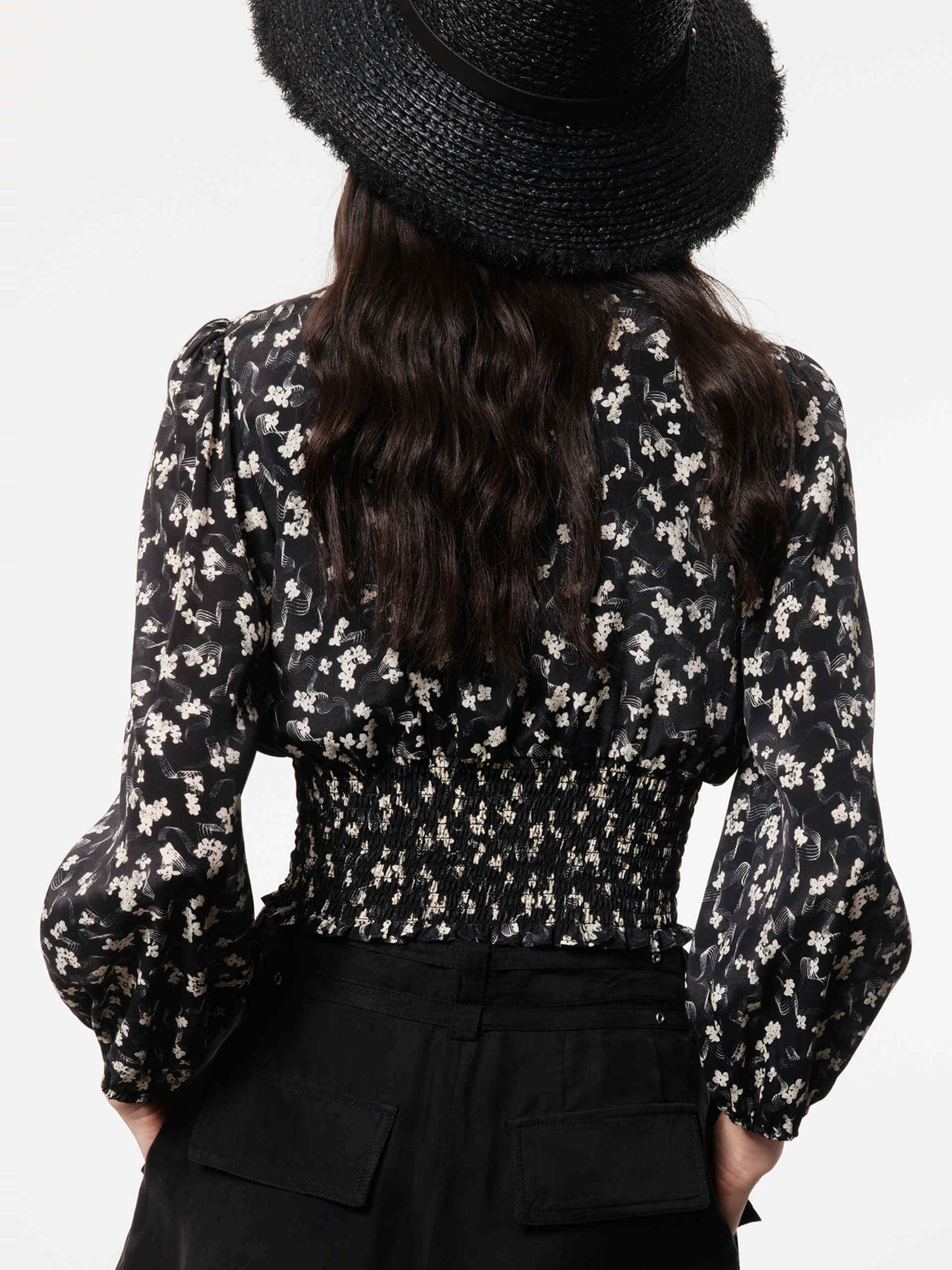 - Elastic wide waist, floral print
