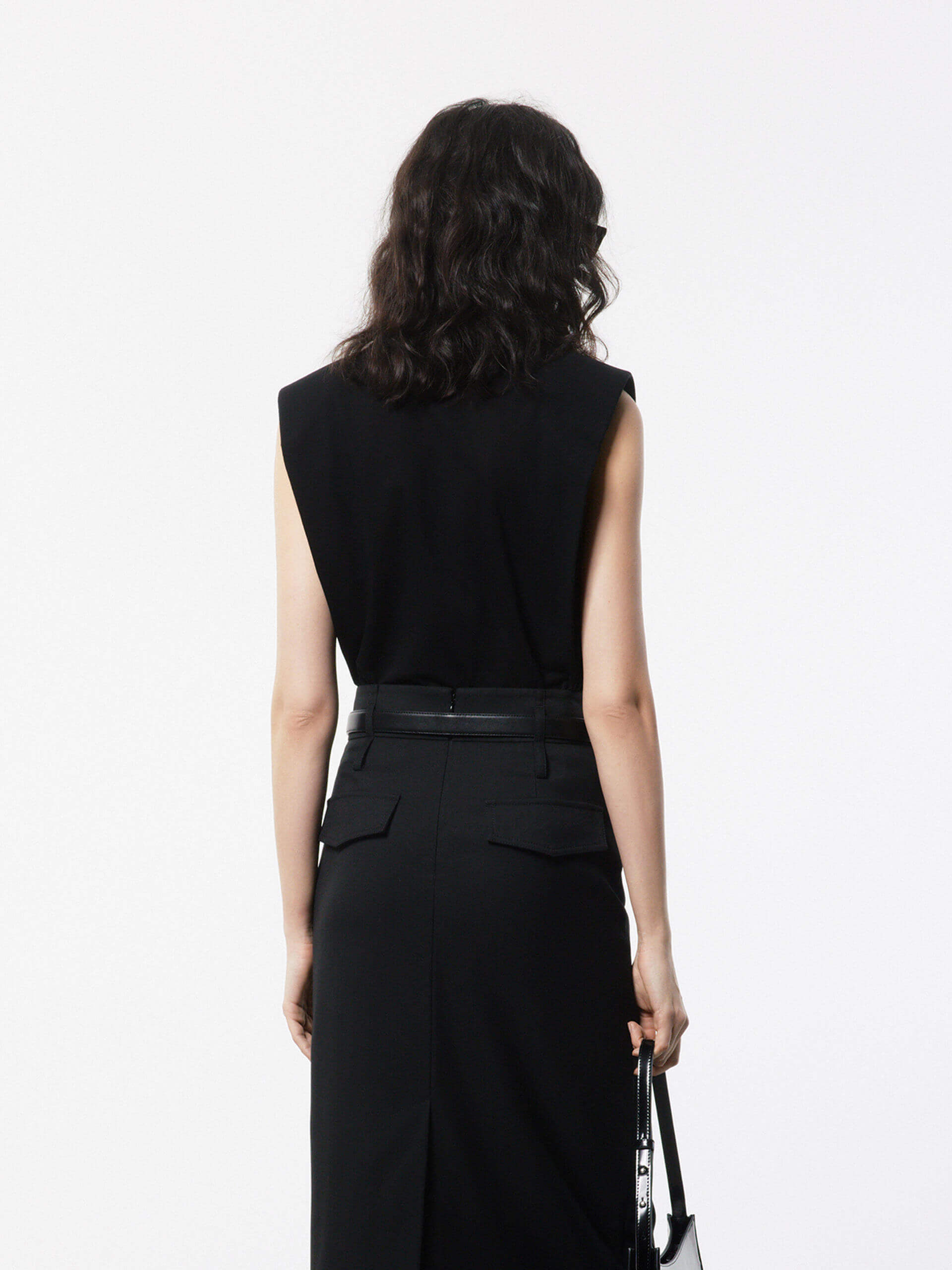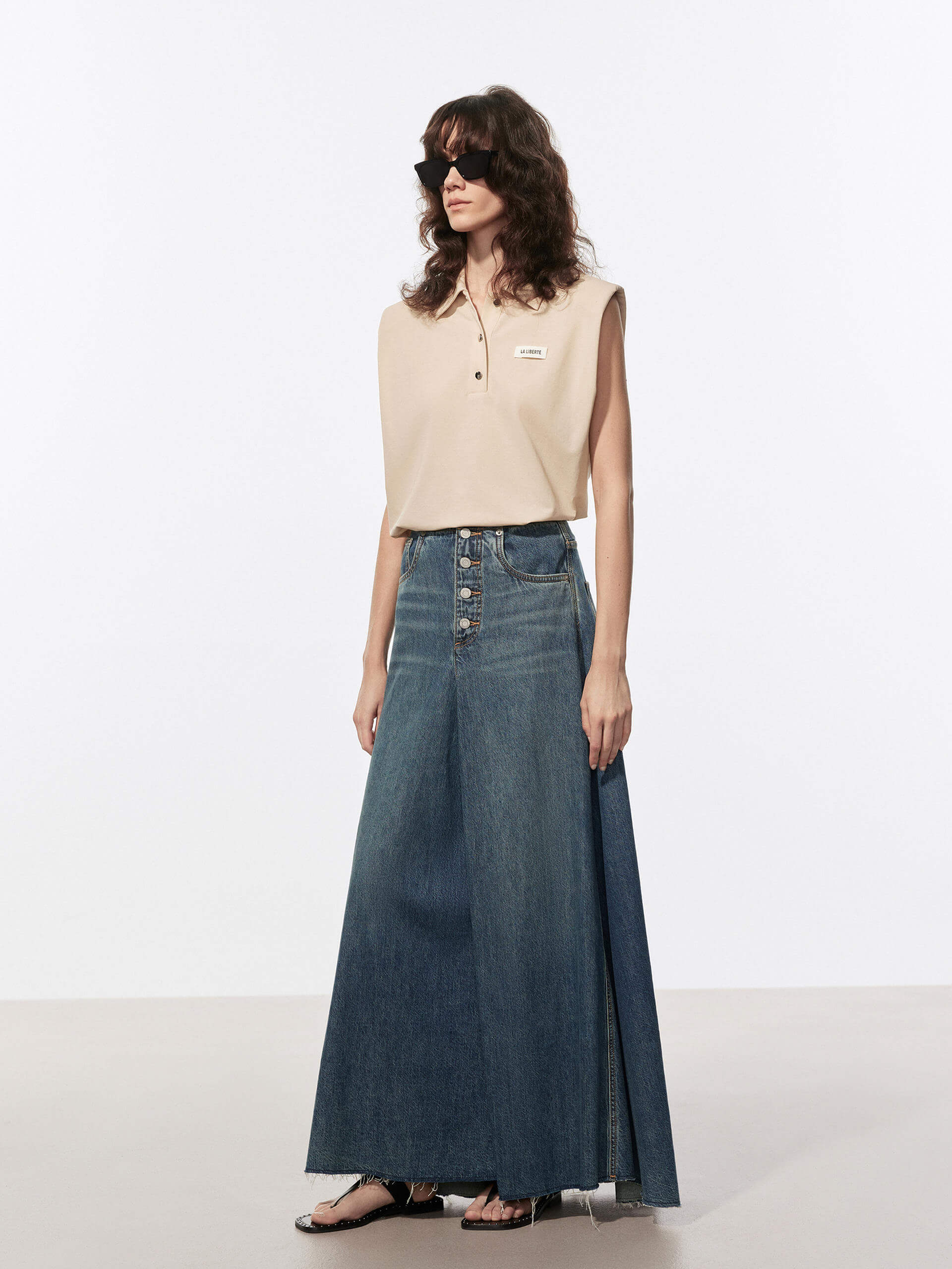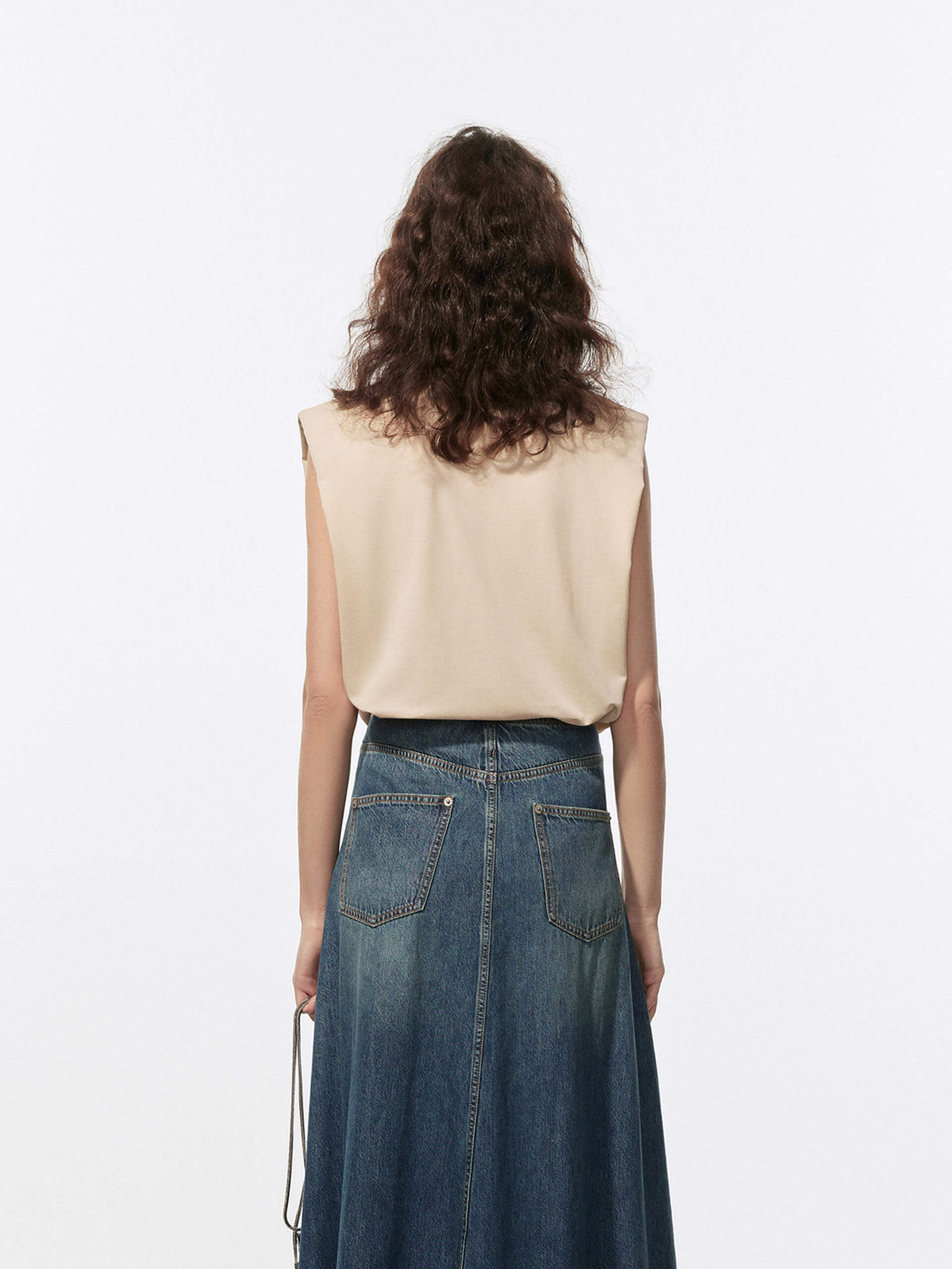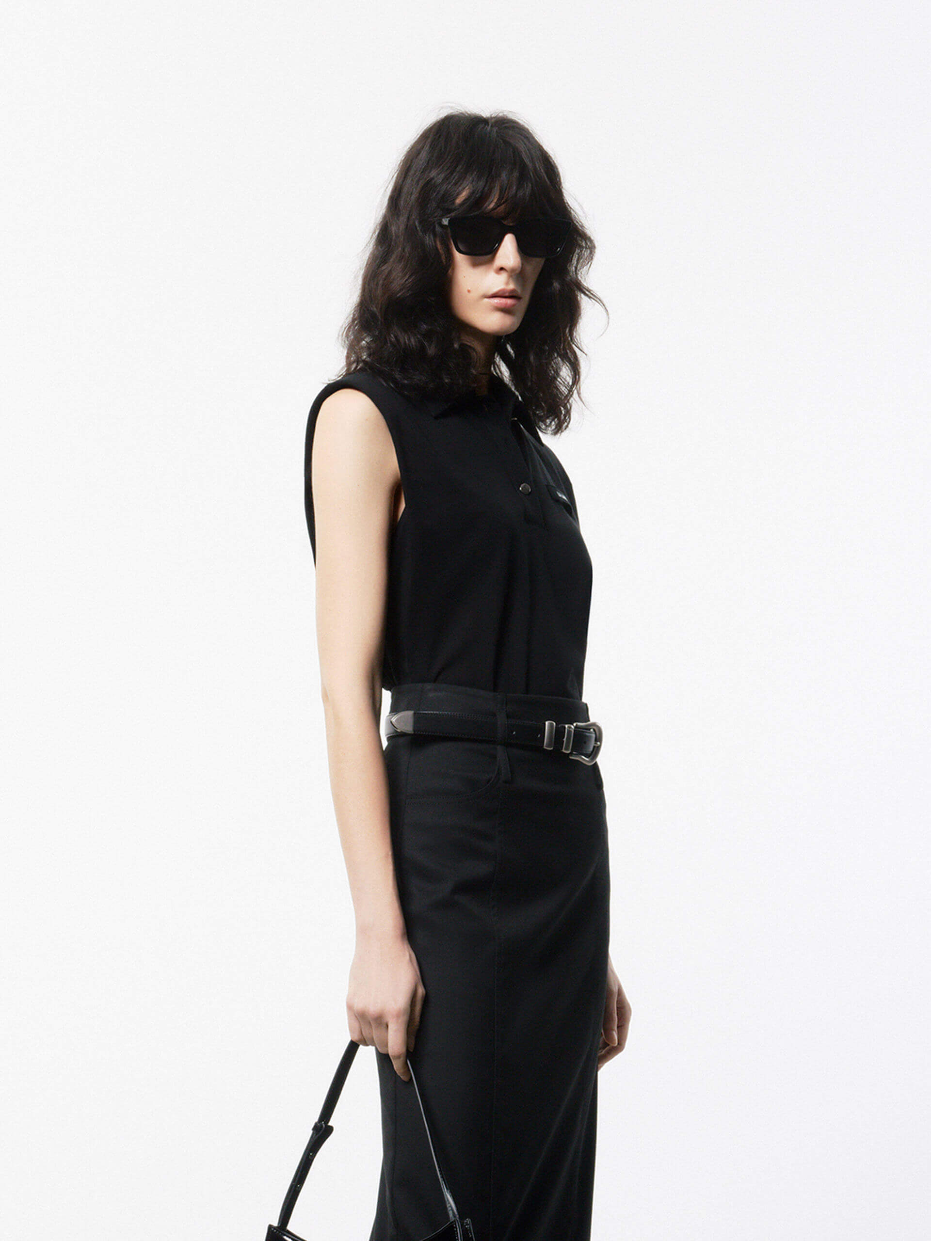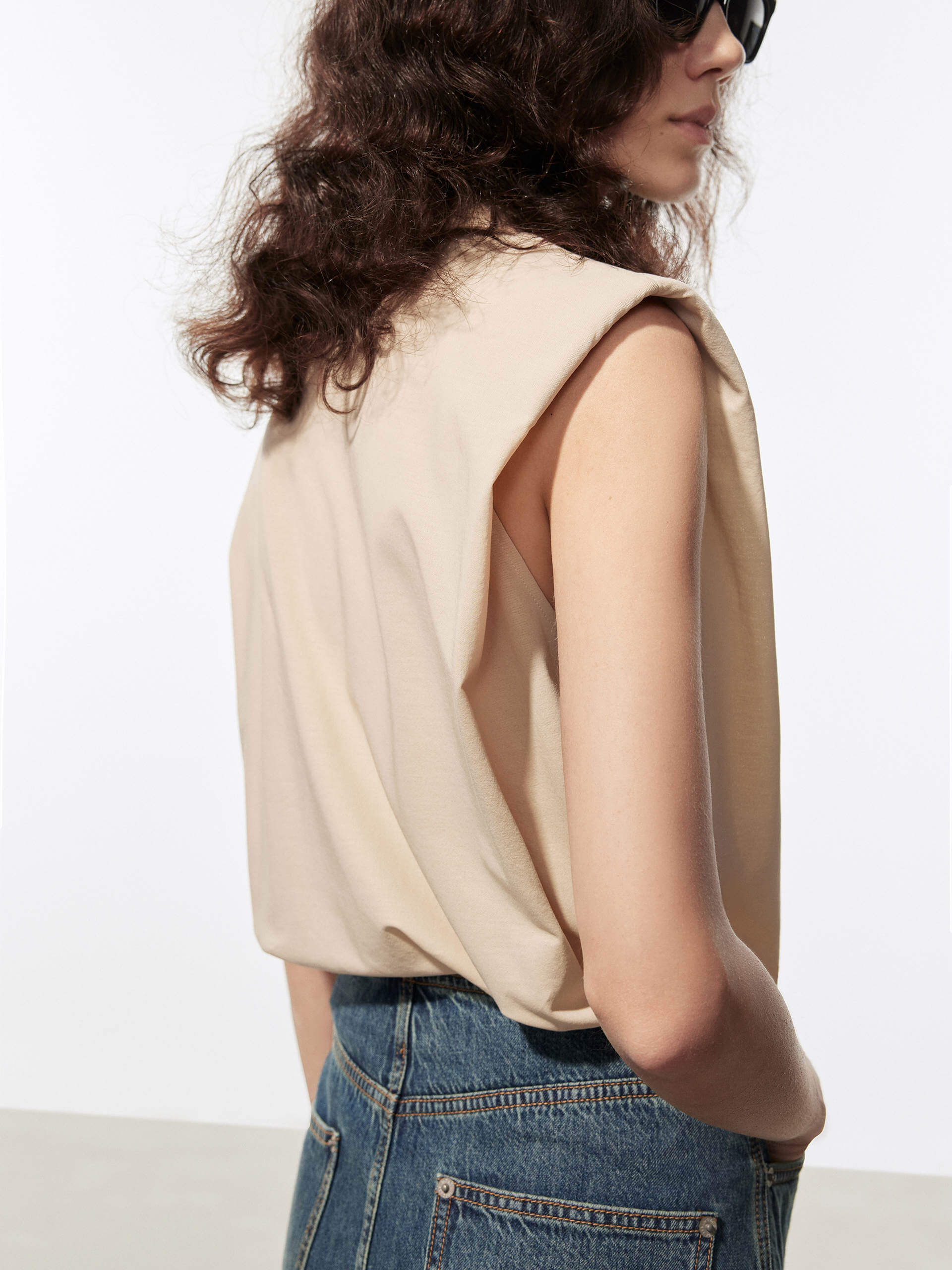 This cotton top, designed with a comfortable regular fit and padded shoulders, is the perfect addition to your wardrobe. Its stylish polo collar and sleeveless design make it versatile for casual occasions. Made from high-quality cotton fabric, it offers both comfort and style.
