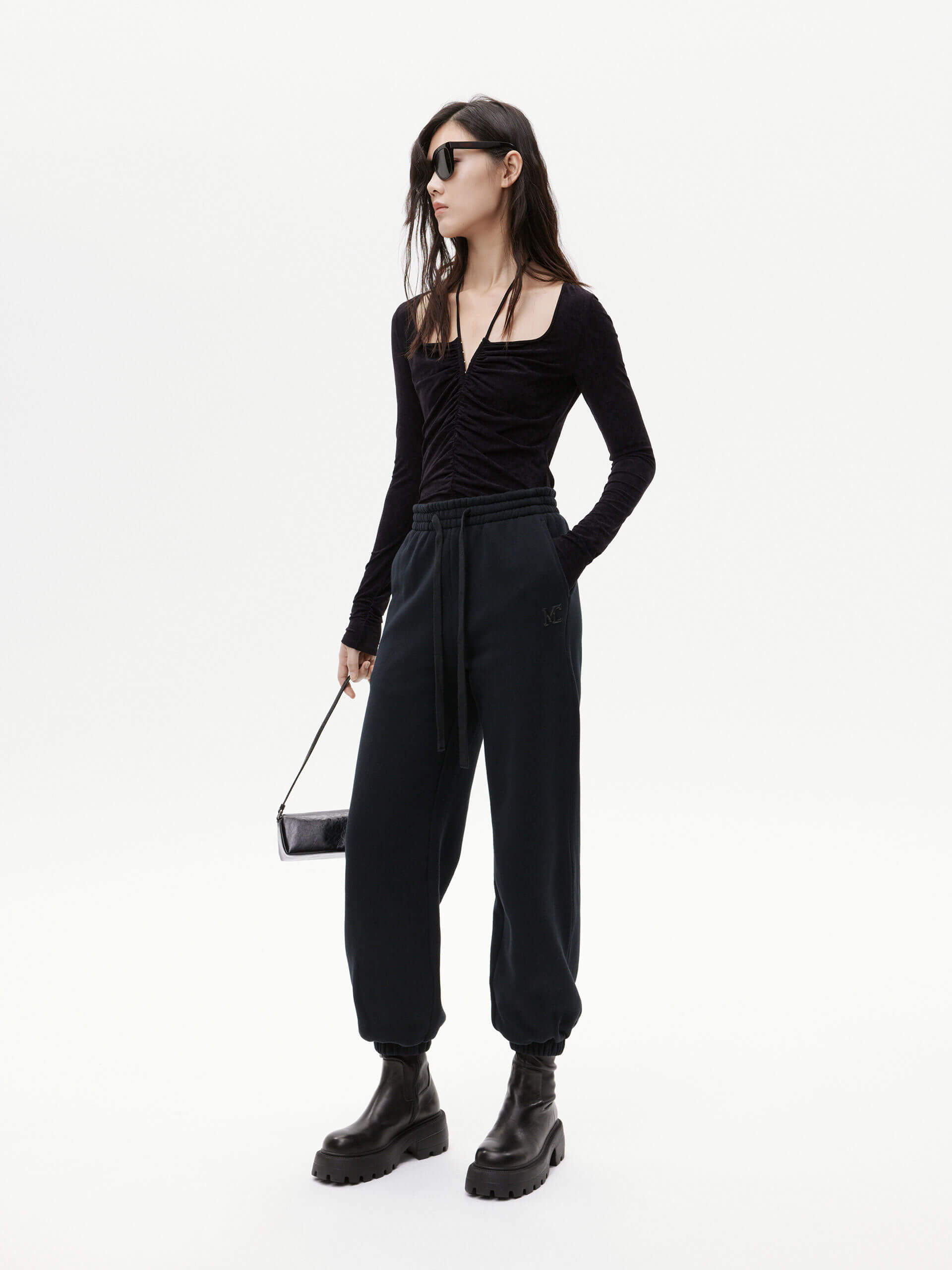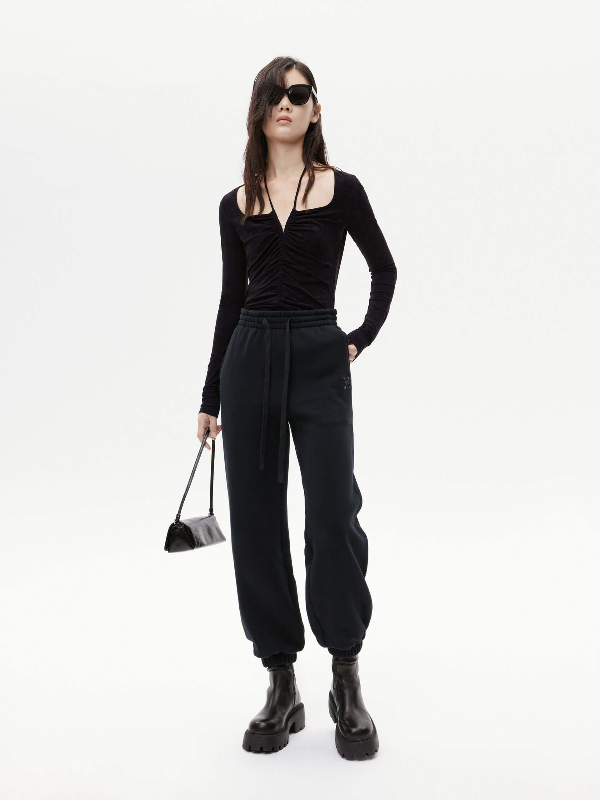 - Soft velvet touch, ruched details