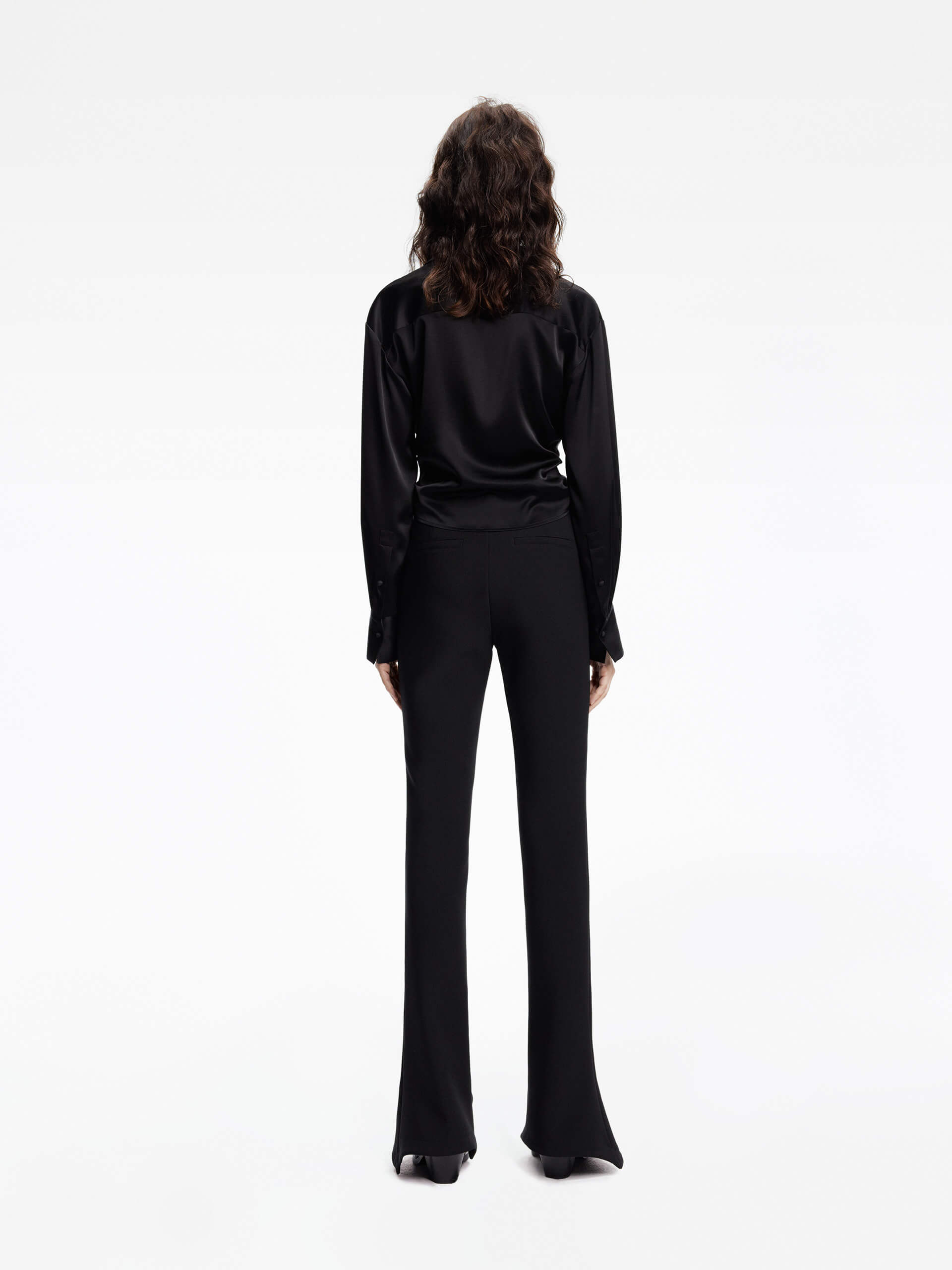 MO&Co. Women's V-neck Satin Cropped Blouse