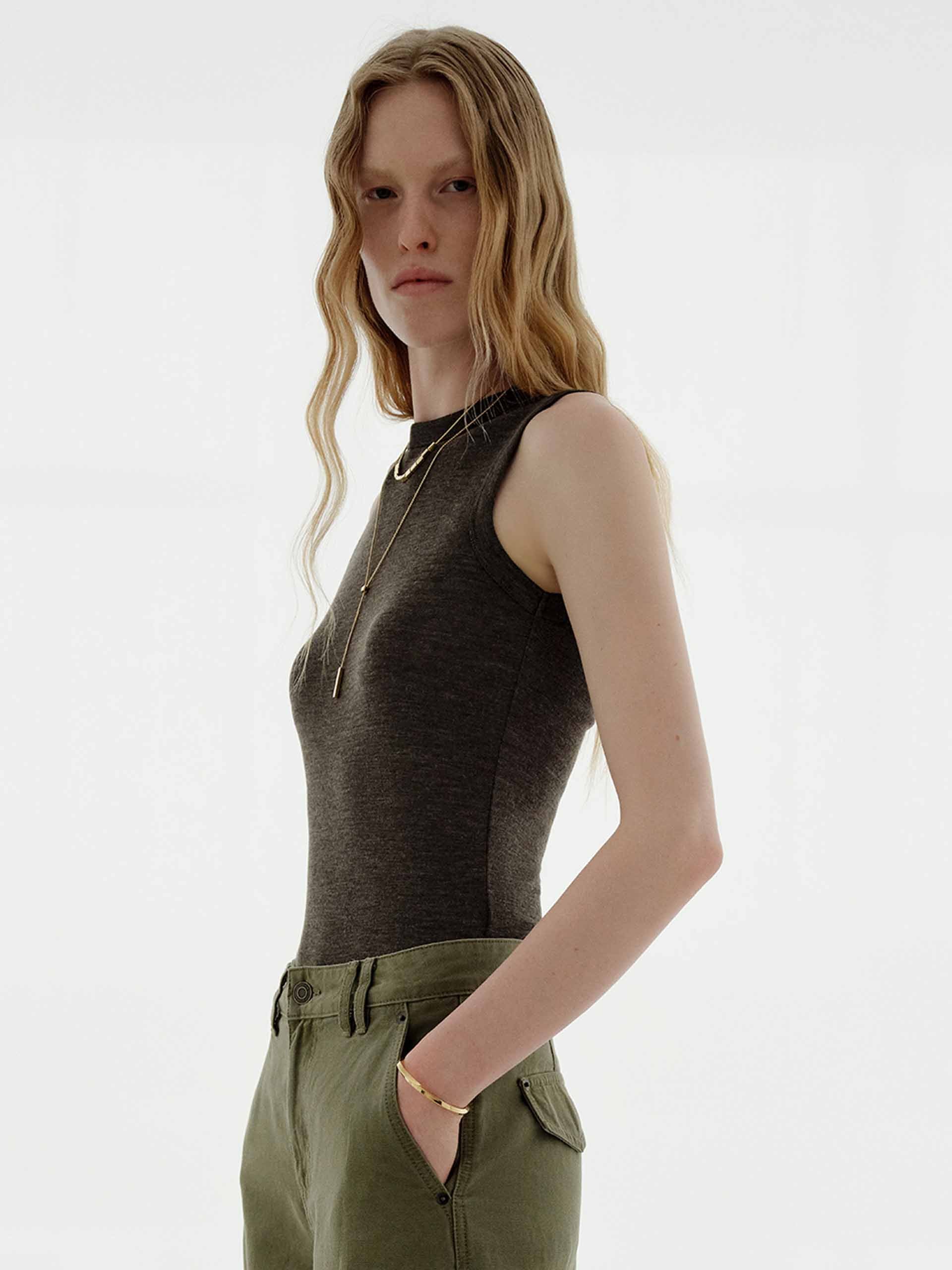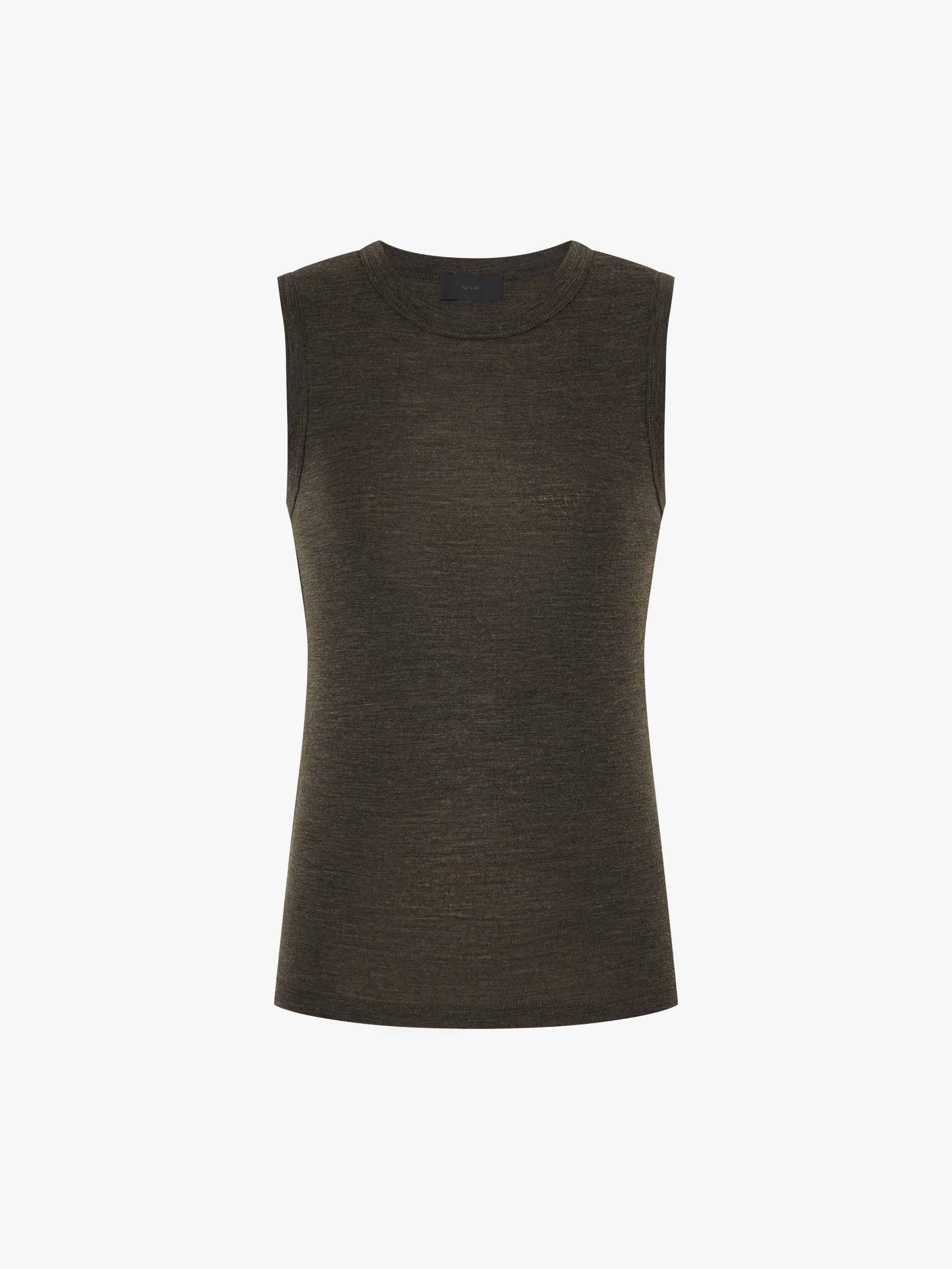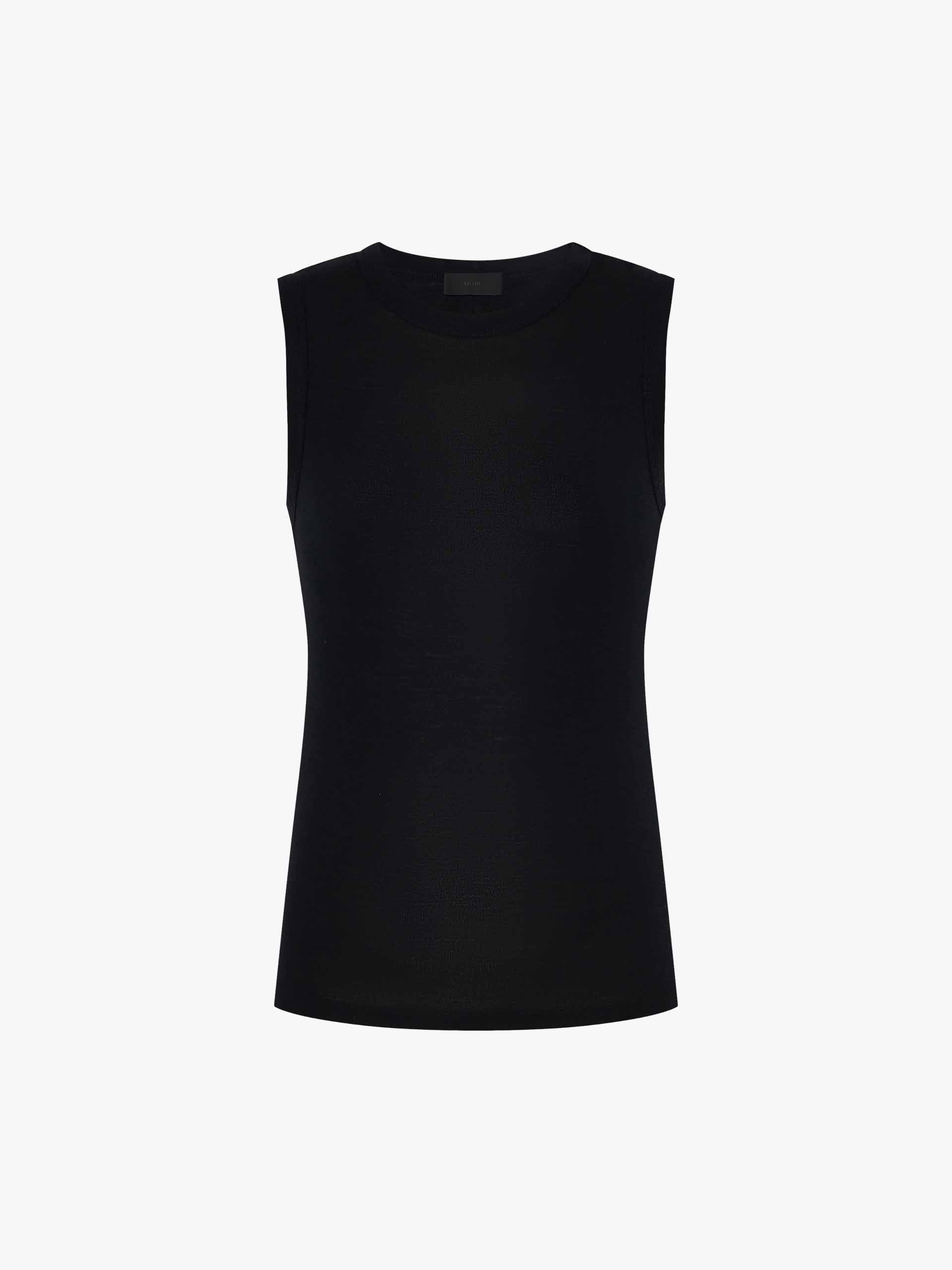 Sophisticated edge meets effortless style in this blouse, cut in a sleek slim fit for a flattering silhouette. Crafted from a soft wool blend fabric, it balances comfort with polished structure. The clean round neck and sleeveless design offer timeless versatility, while the tailored center back seam and waisted construction accentuate your shape with precision.