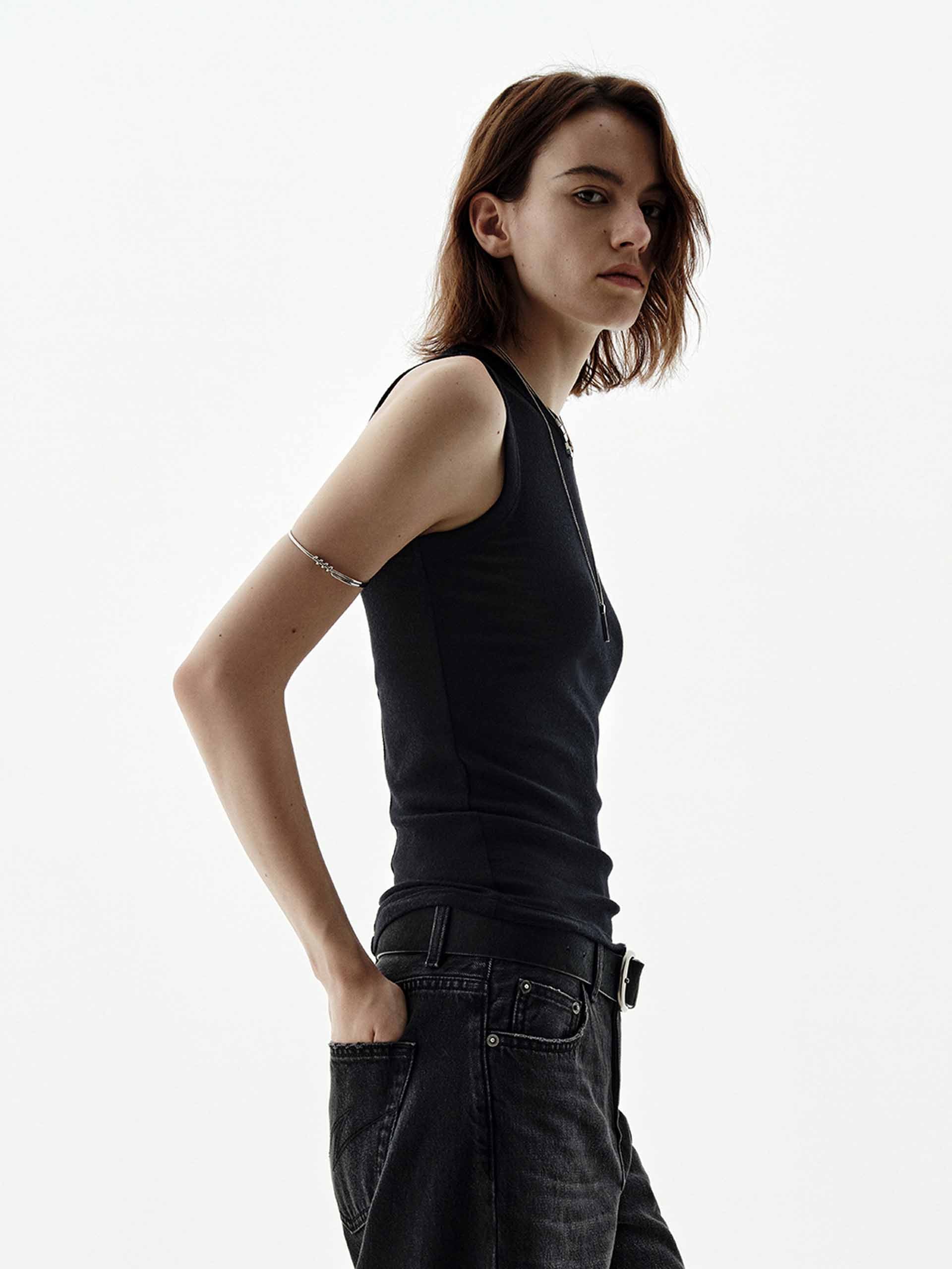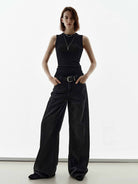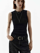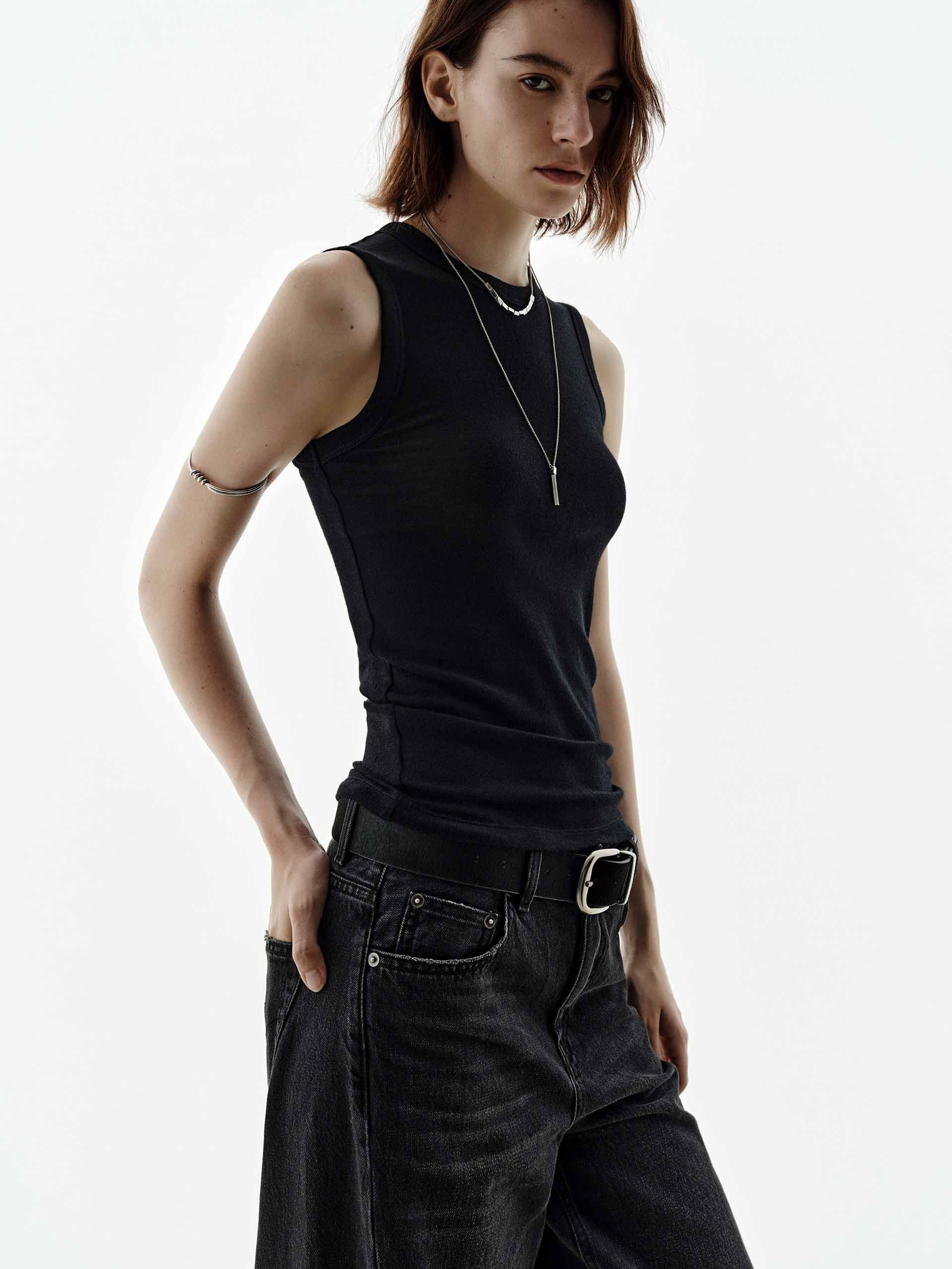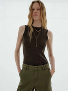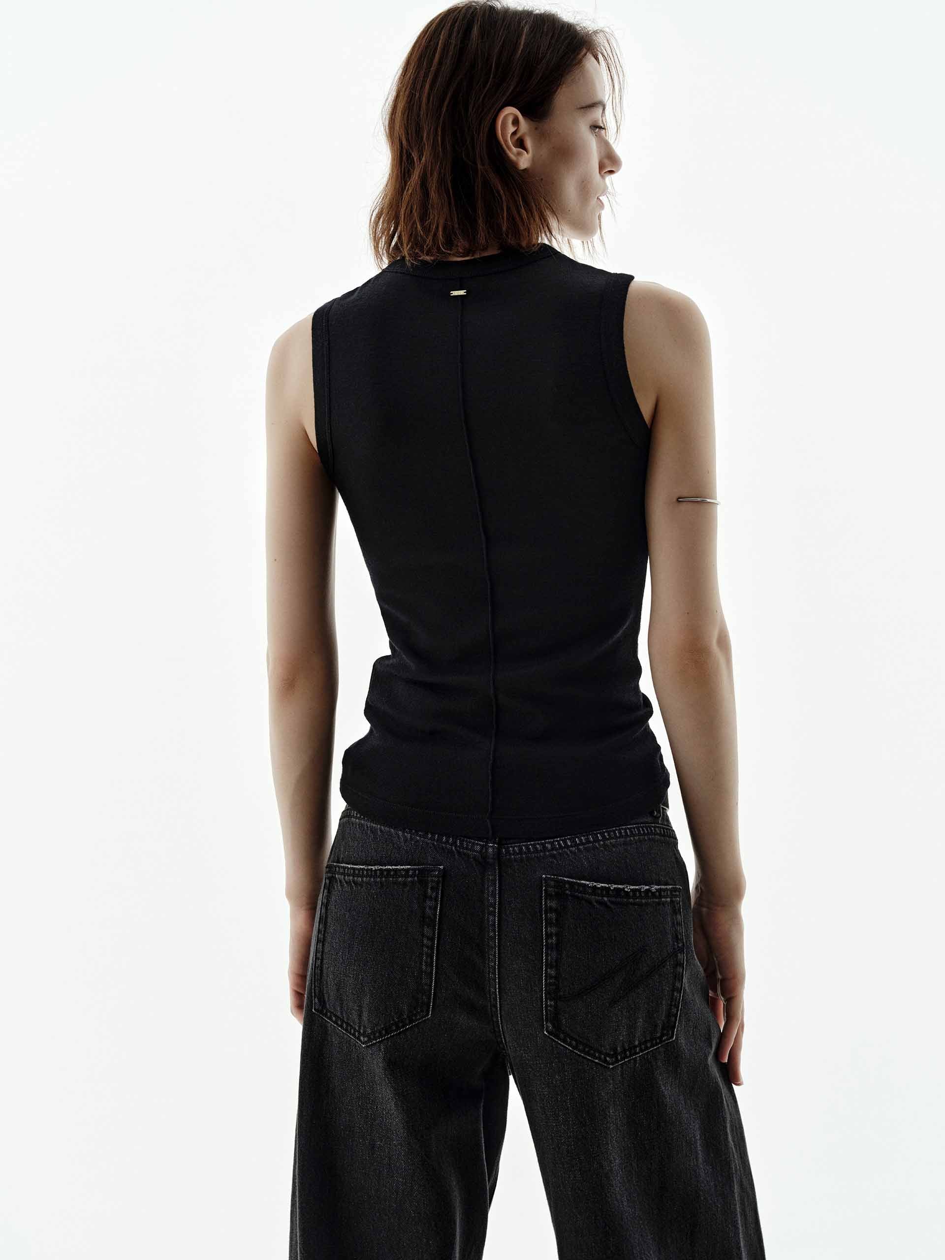 Sophisticated edge meets effortless style in this blouse, cut in a sleek slim fit for a flattering silhouette. Crafted from a soft wool blend fabric, it balances comfort with polished structure. The clean round neck and sleeveless design offer timeless versatility, while the tailored center back seam and waisted construction accentuate your shape with precision.
