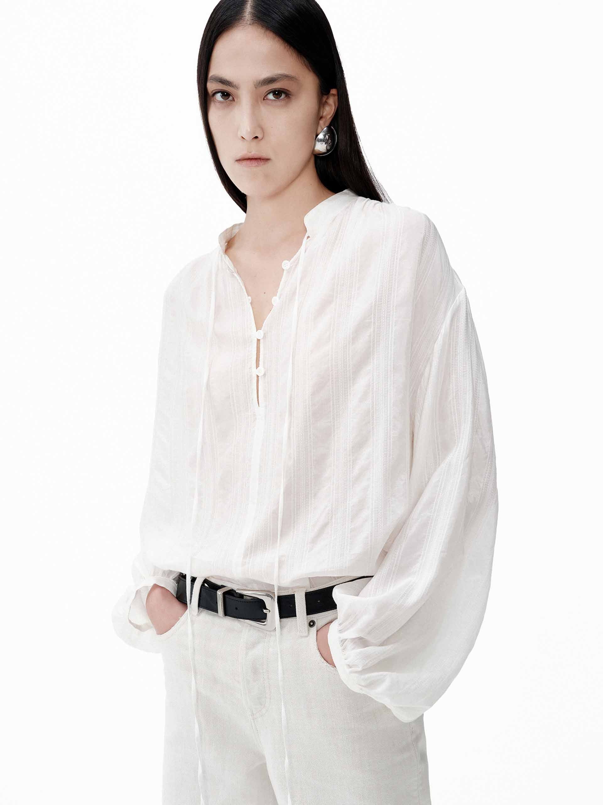 Volume Sleeve Tie Blouse