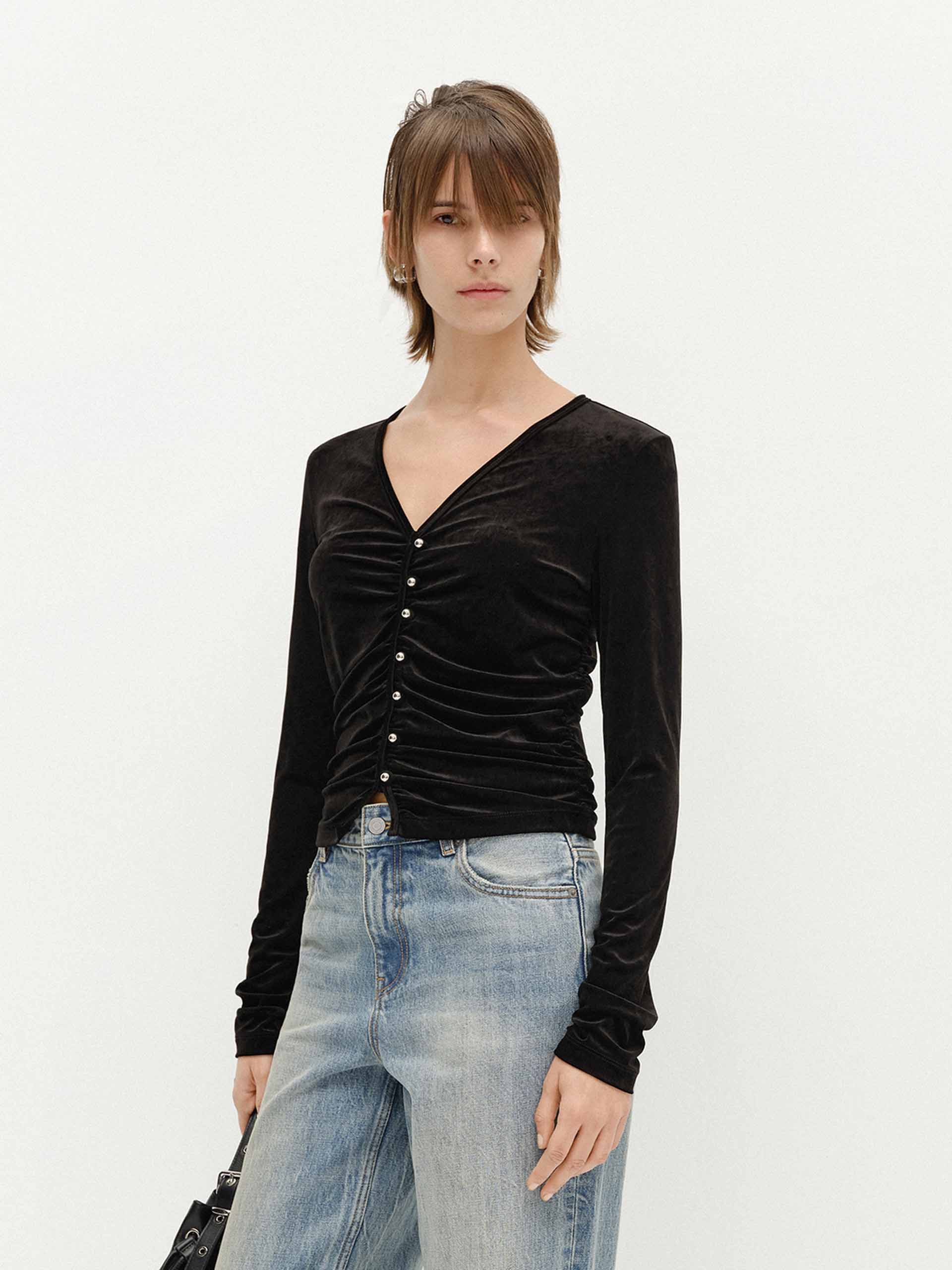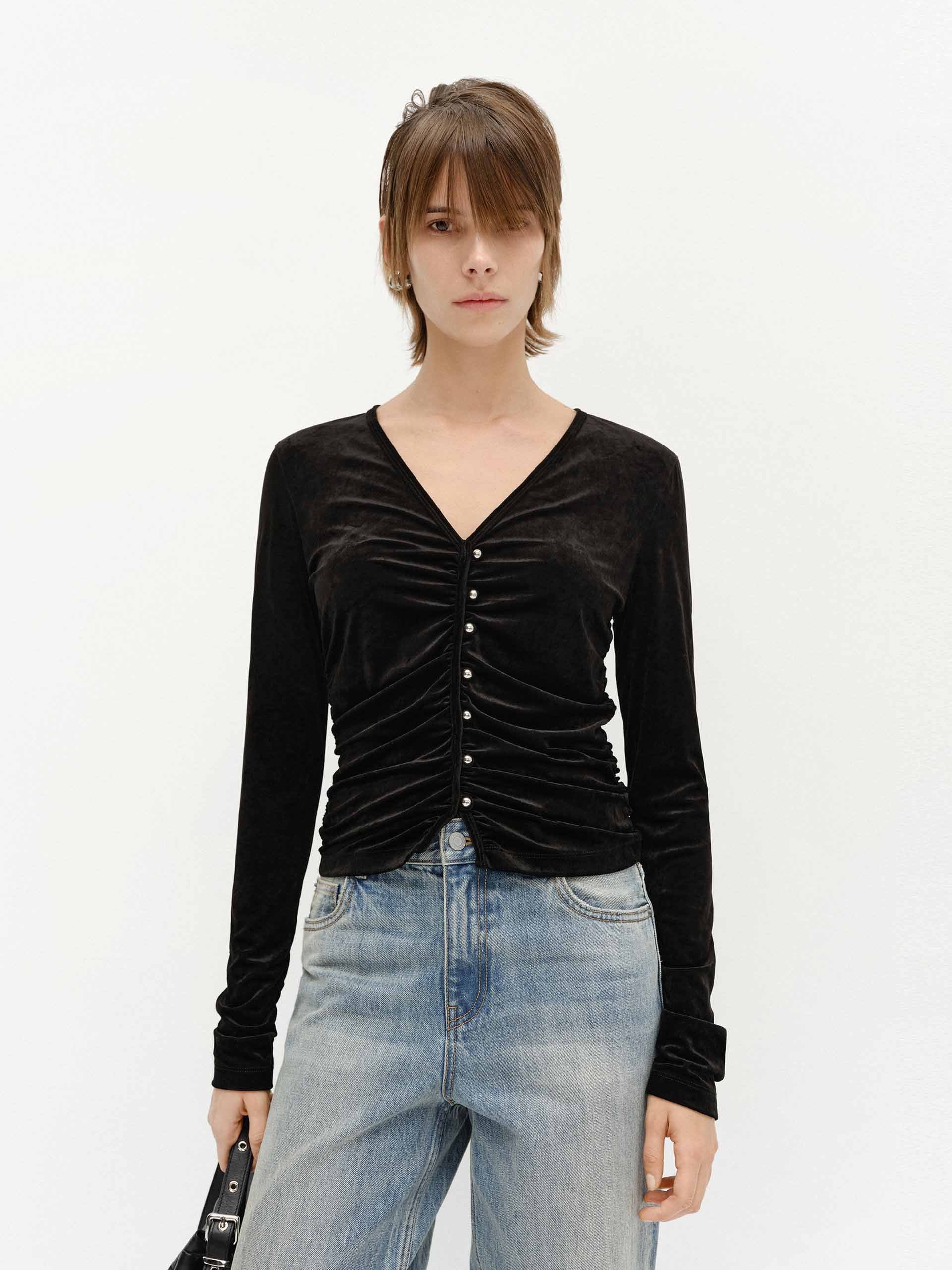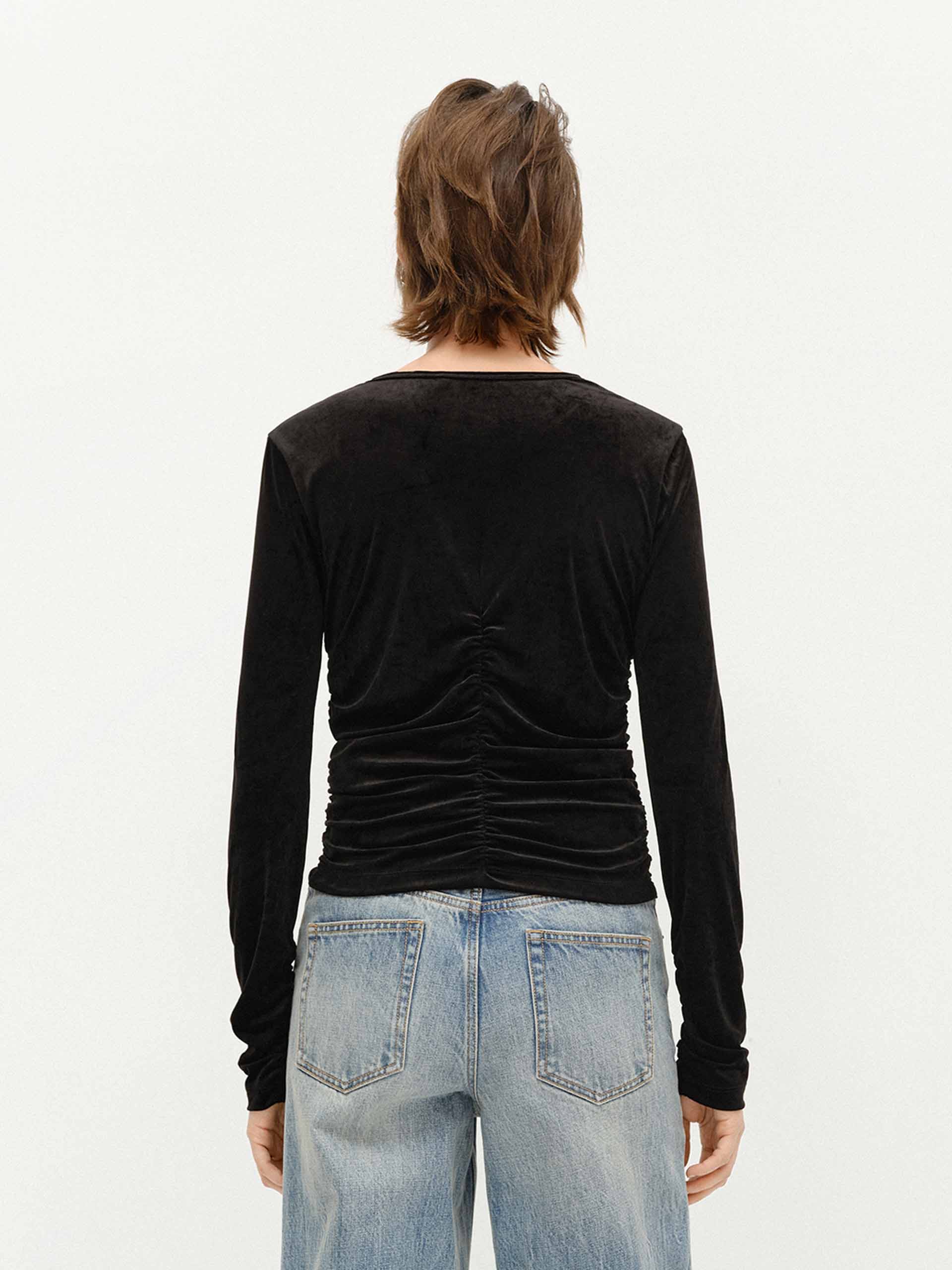 Side Pleated Velvet Top