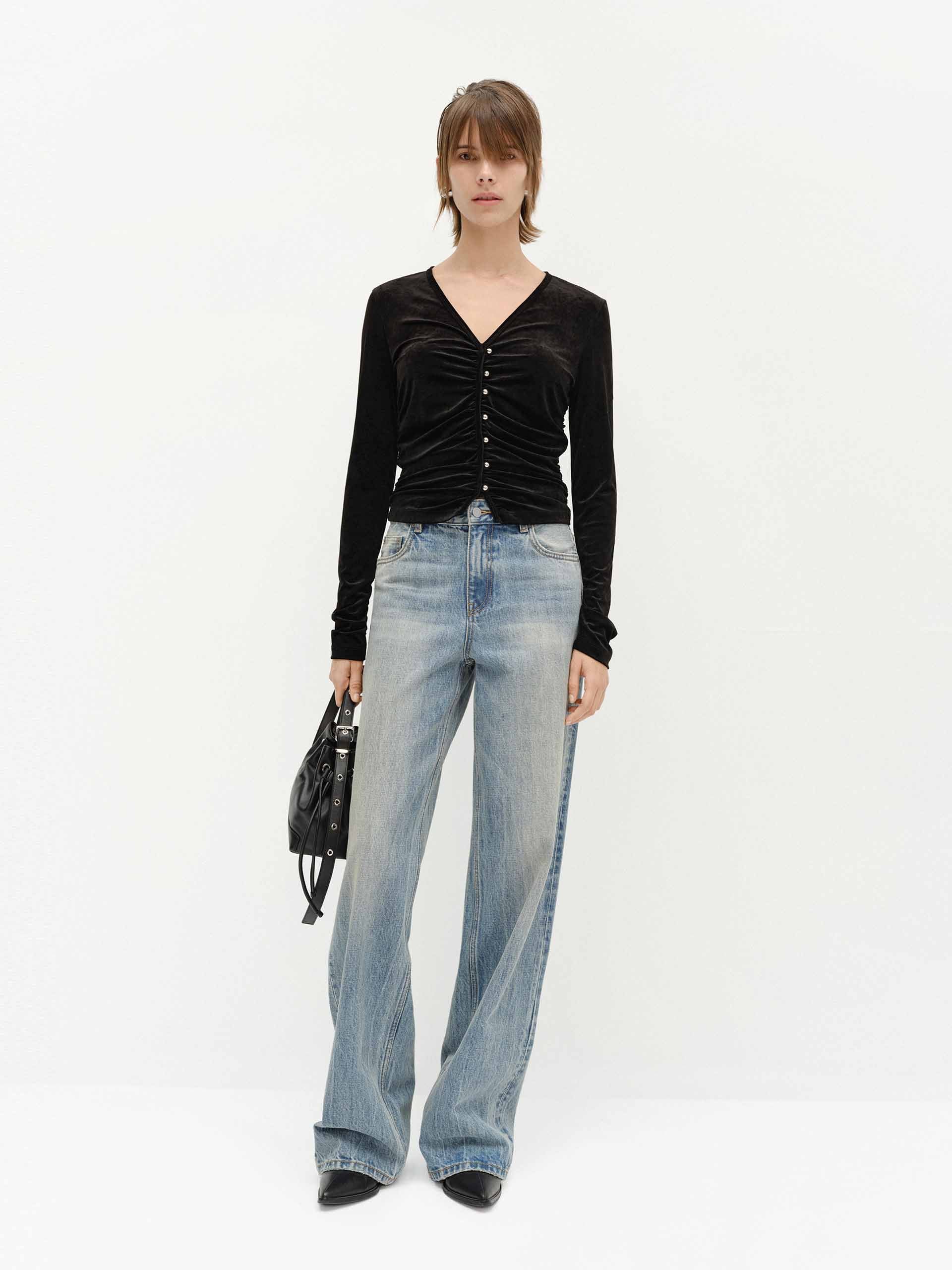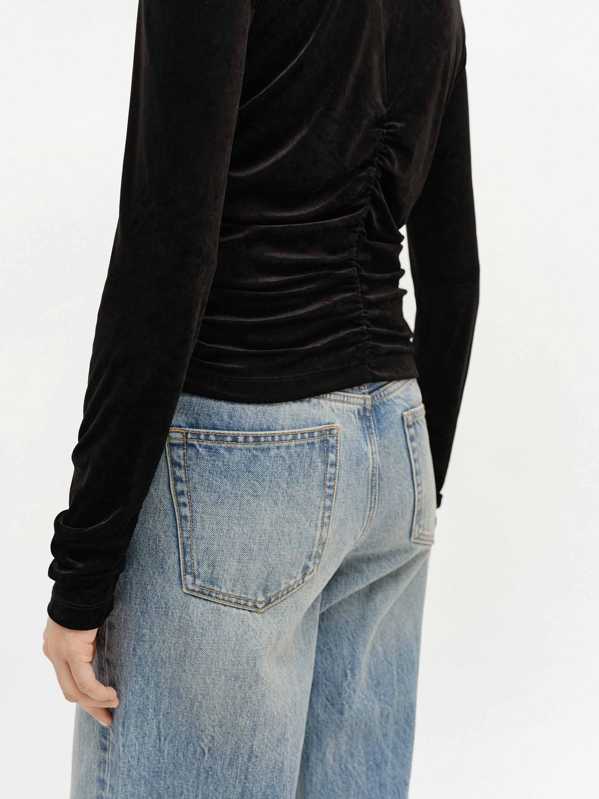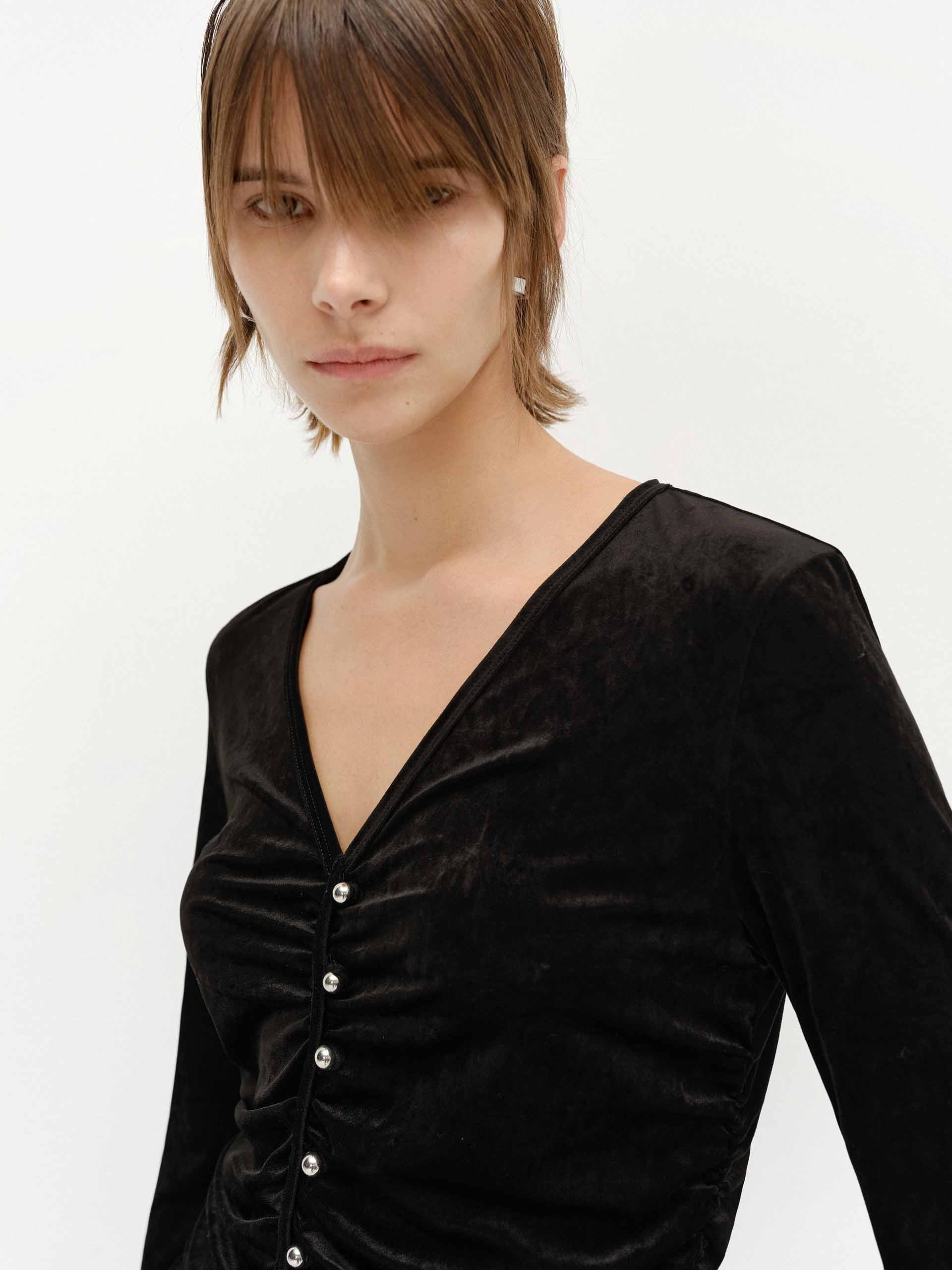 Side Pleated Velvet Top