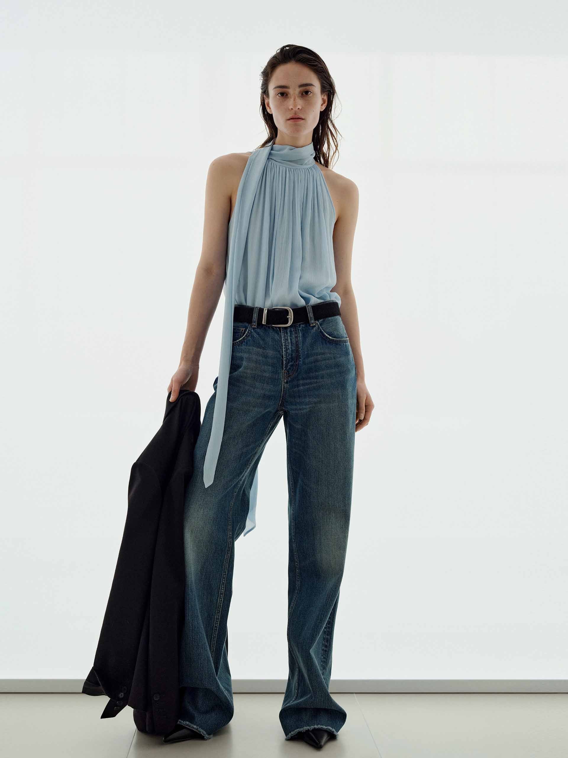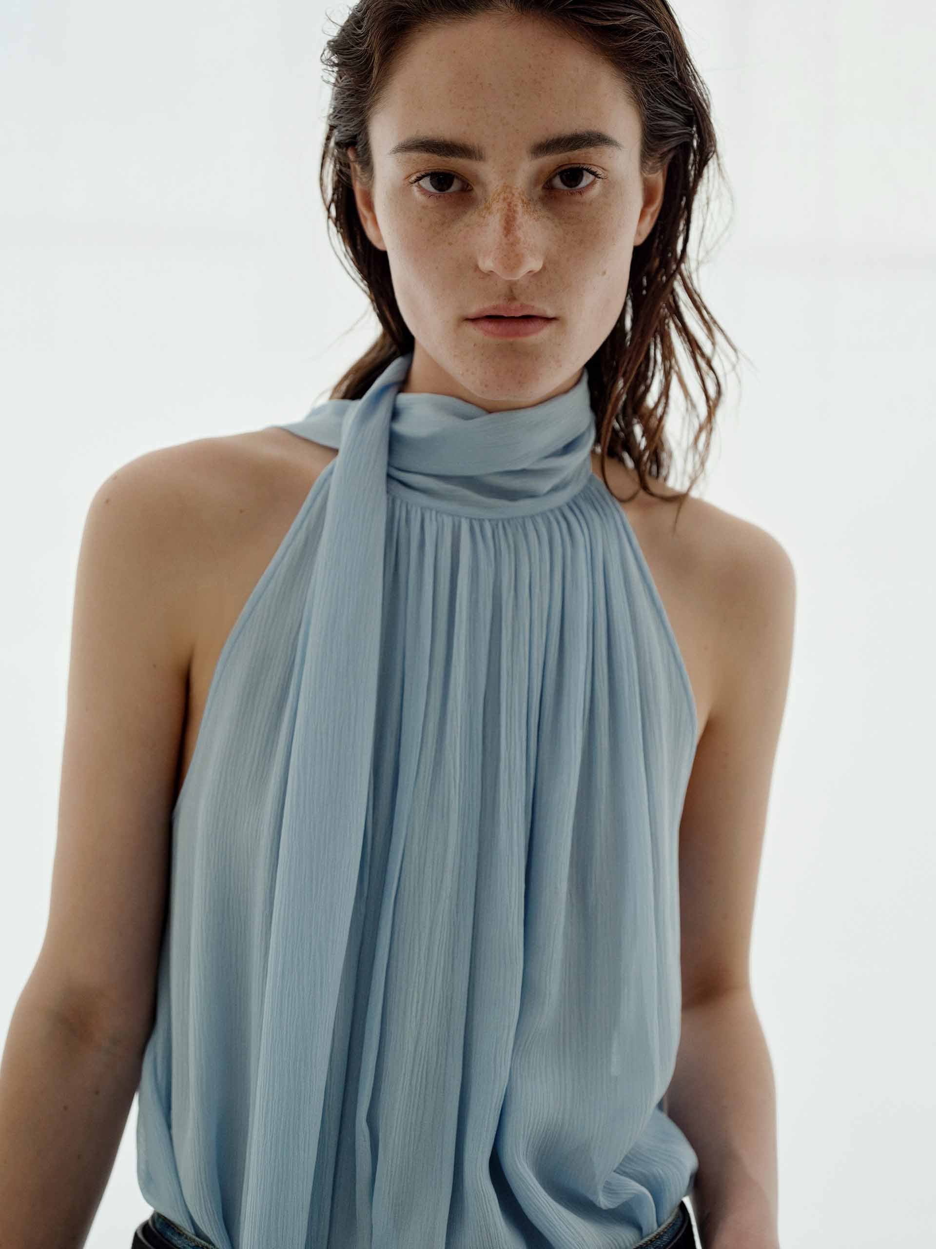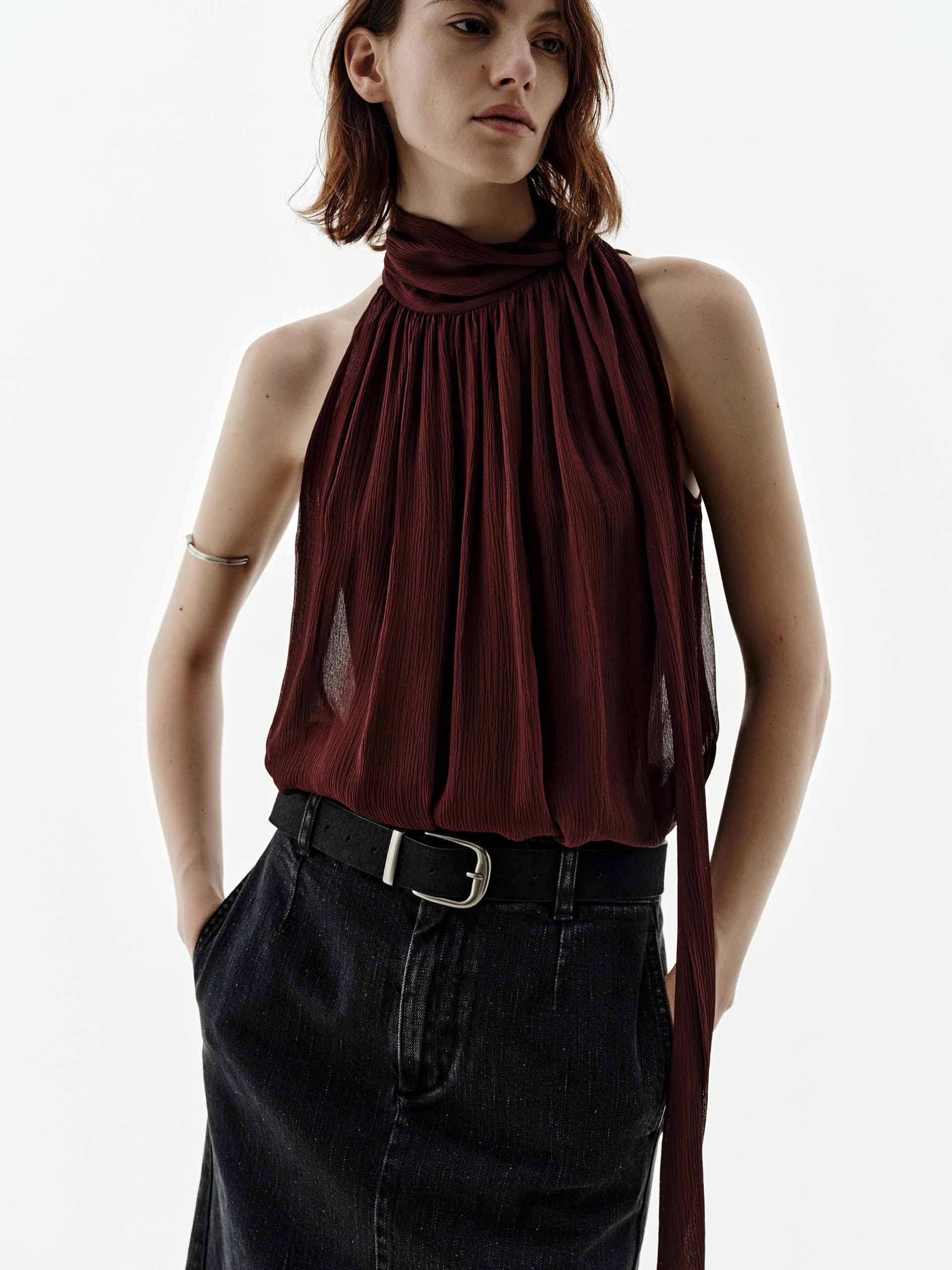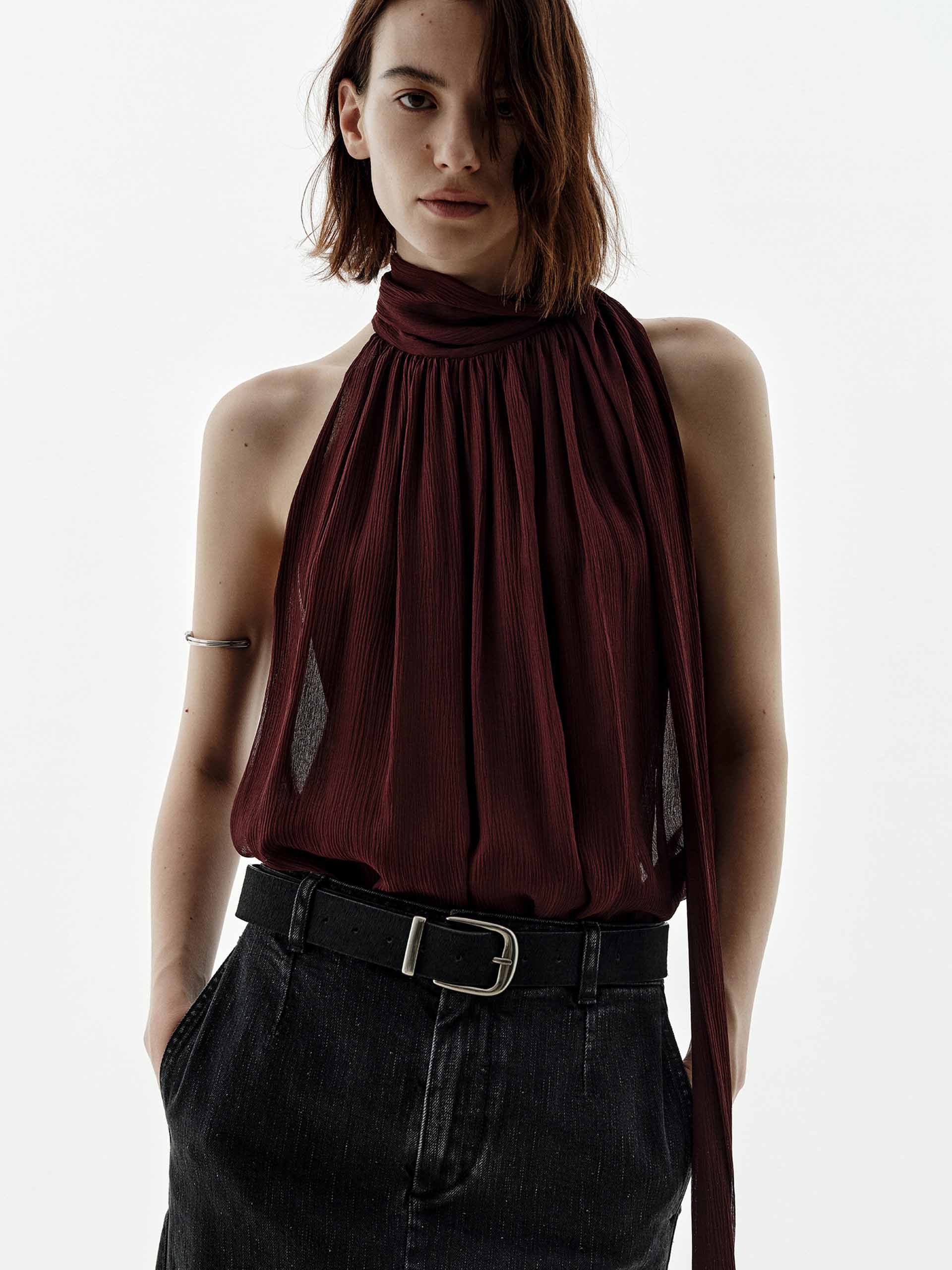 Pleated Detail Silk Blouse