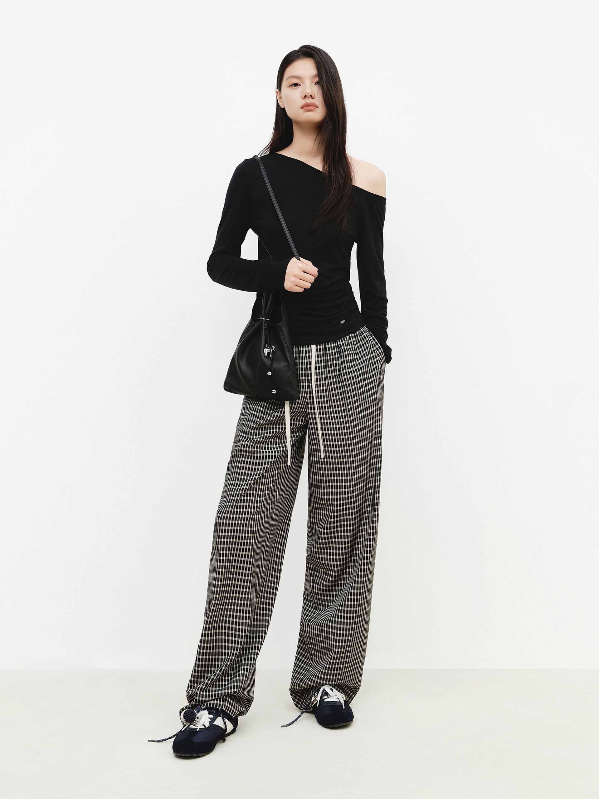 Cotton Tie Plaid Blouse