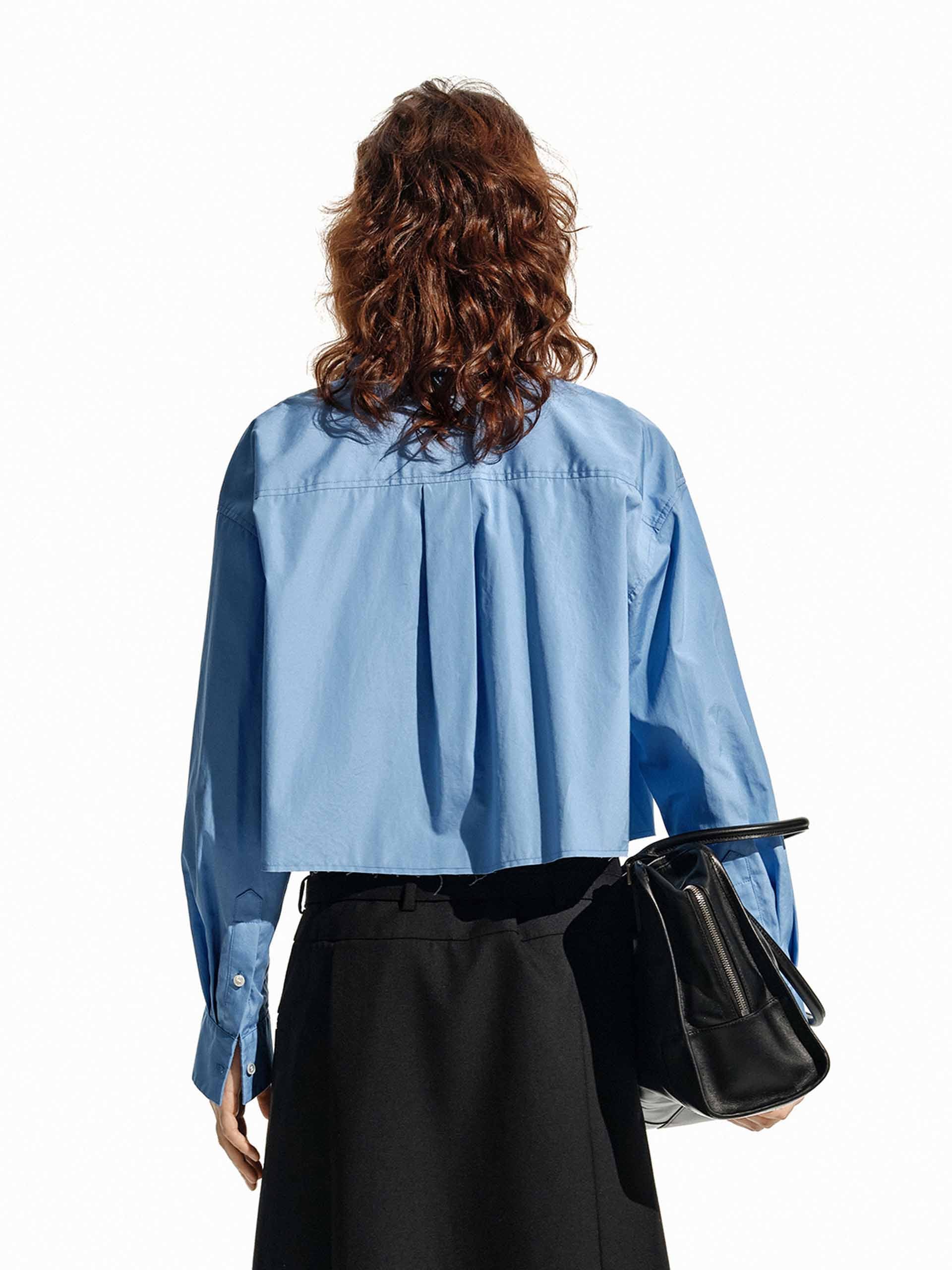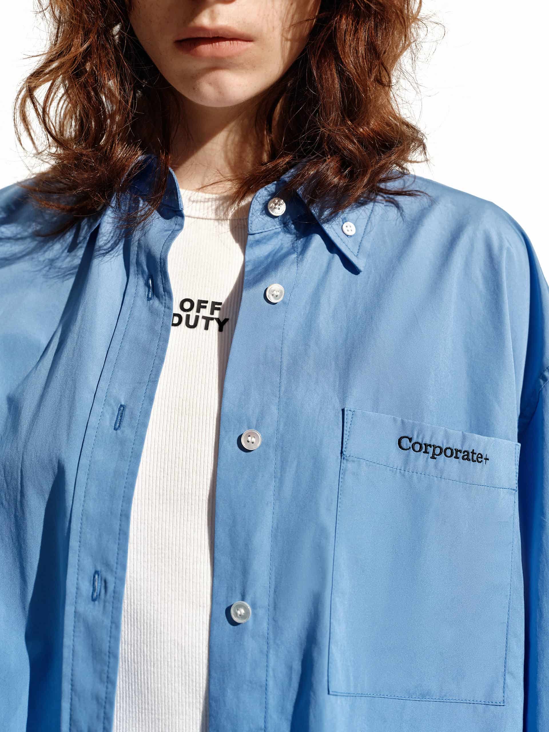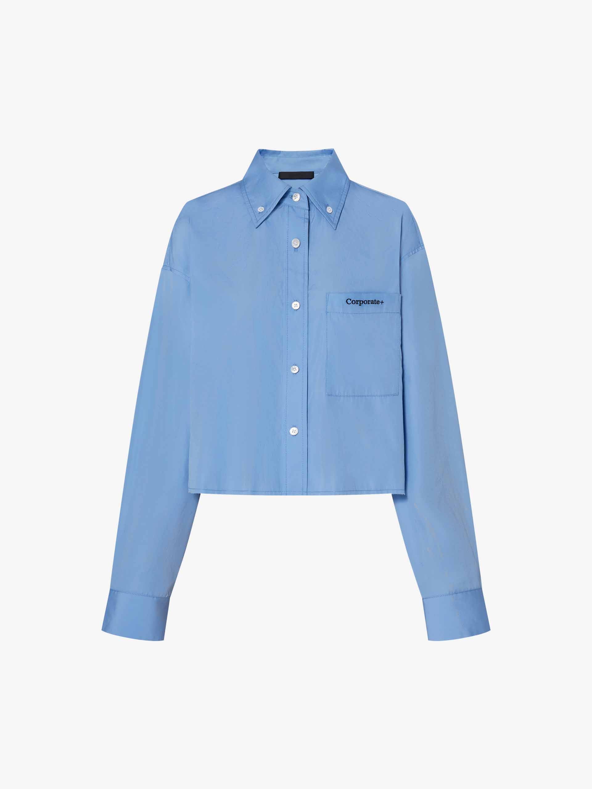 This shirt is made from soft and cozy 100% cotton, designed in a versatile blue hue. It features a practical chest pocket and a classic button closure, making it functional and stylish. Pair it with a high-waisted skirt for a perfect everyday office or commute-ready look.