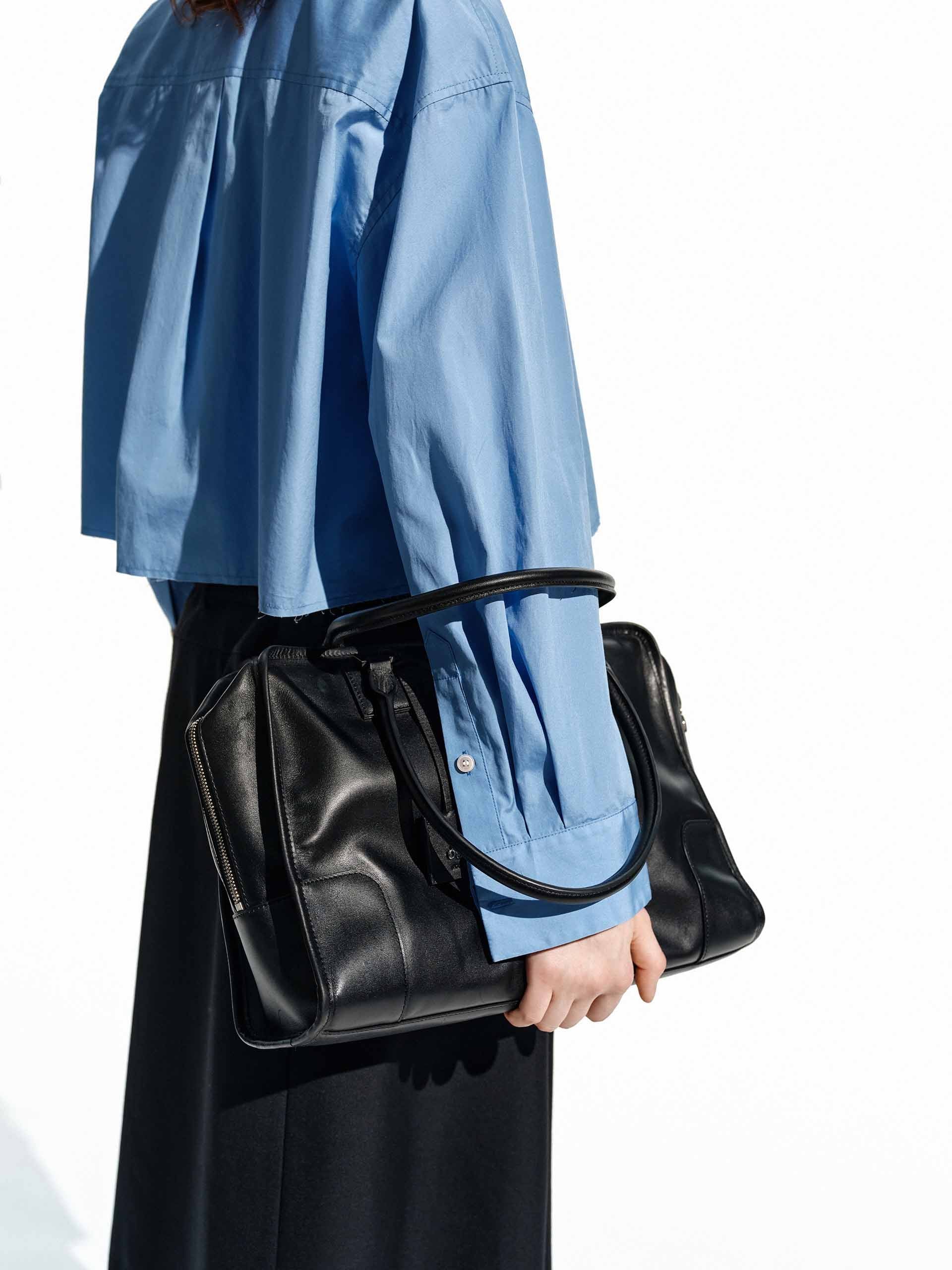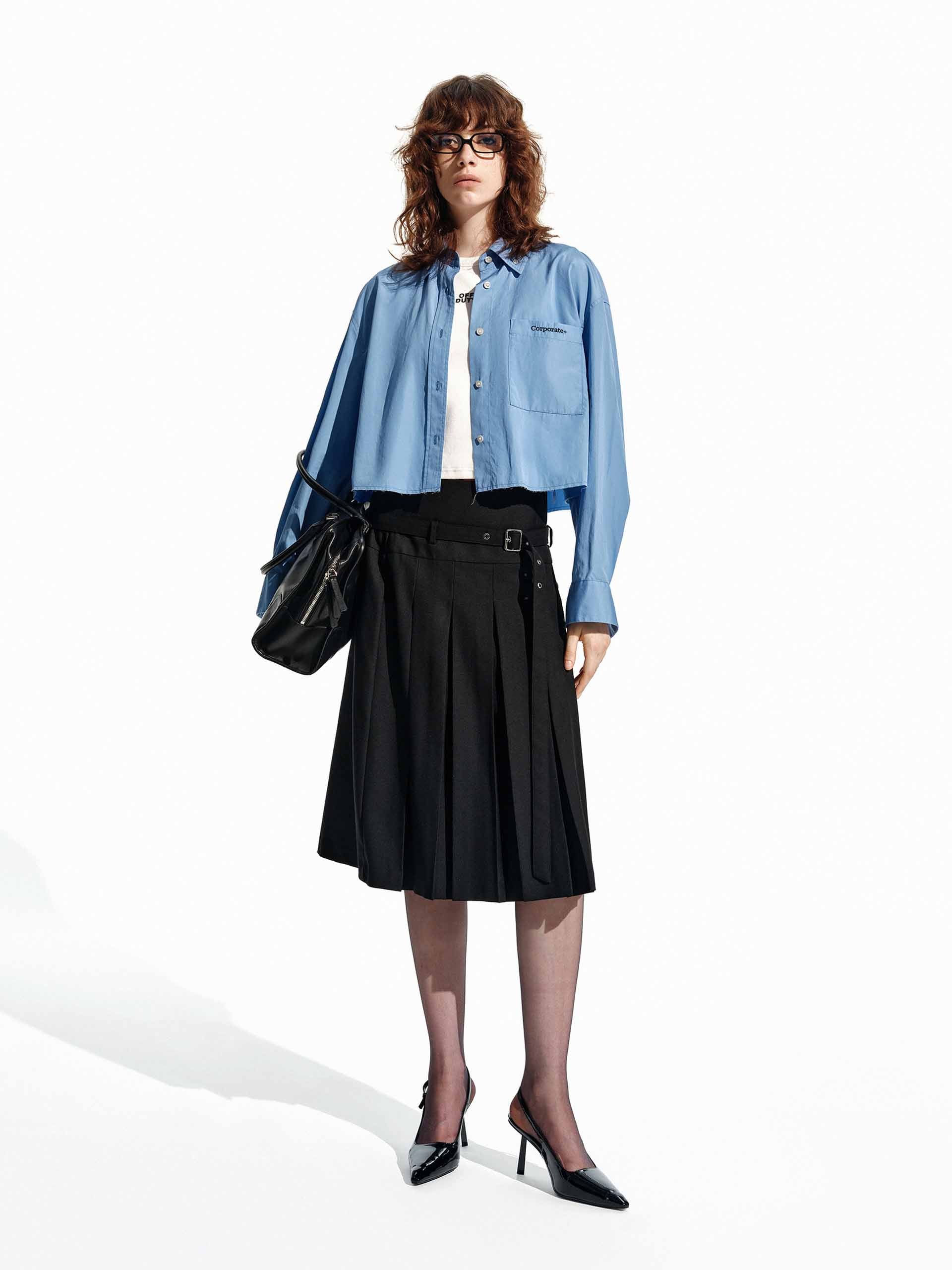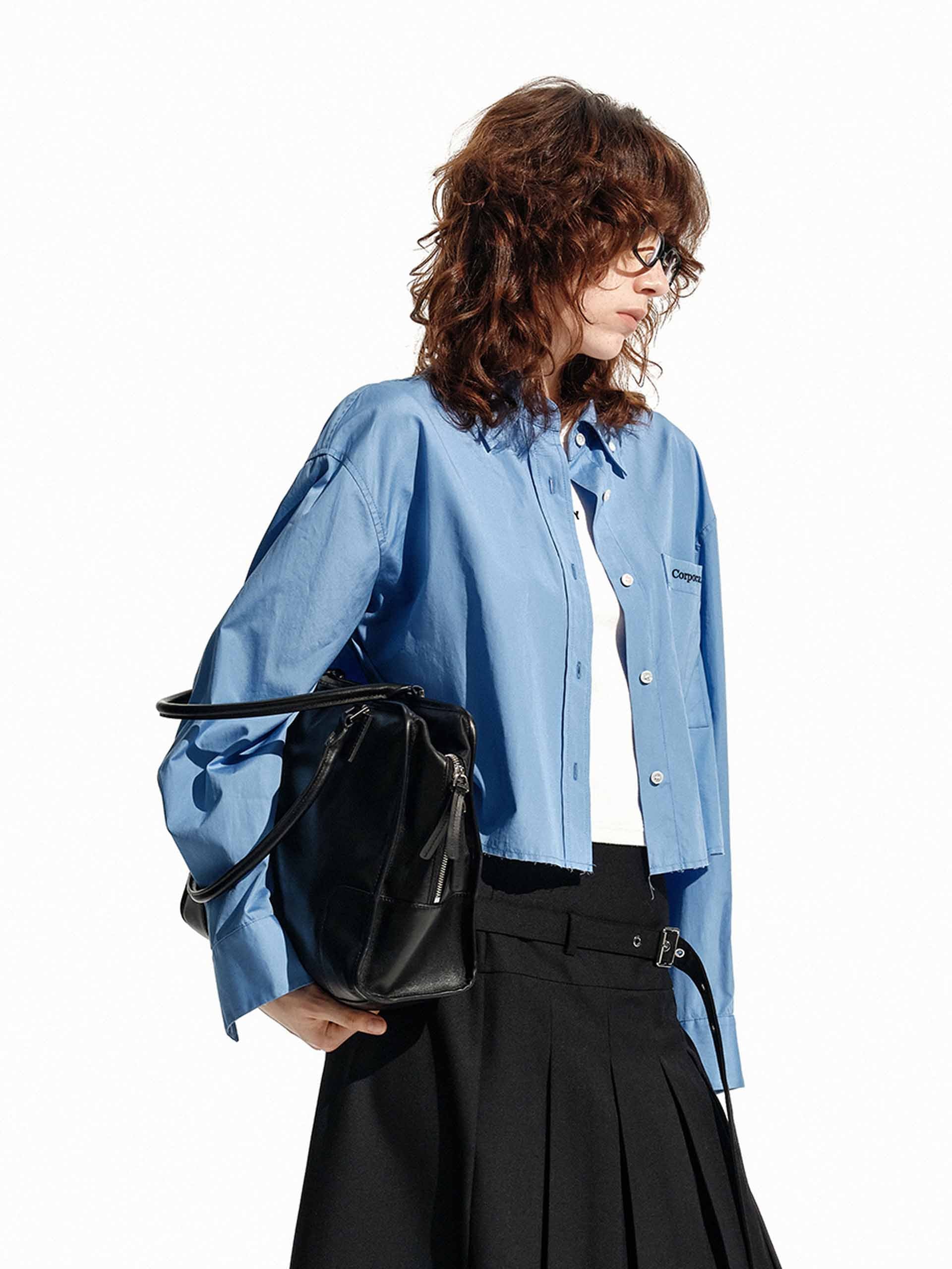 This shirt is made from soft and cozy 100% cotton, designed in a versatile blue hue. It features a practical chest pocket and a classic button closure, making it functional and stylish. Pair it with a high-waisted skirt for a perfect everyday office or commute-ready look.