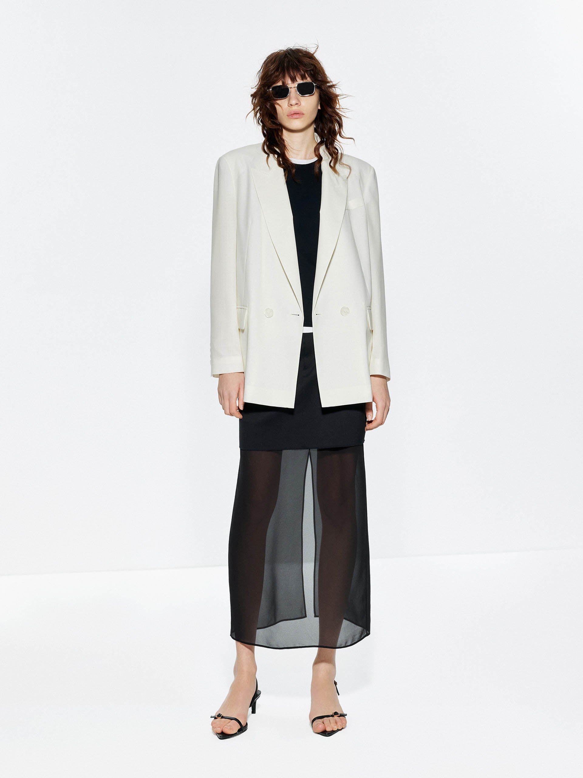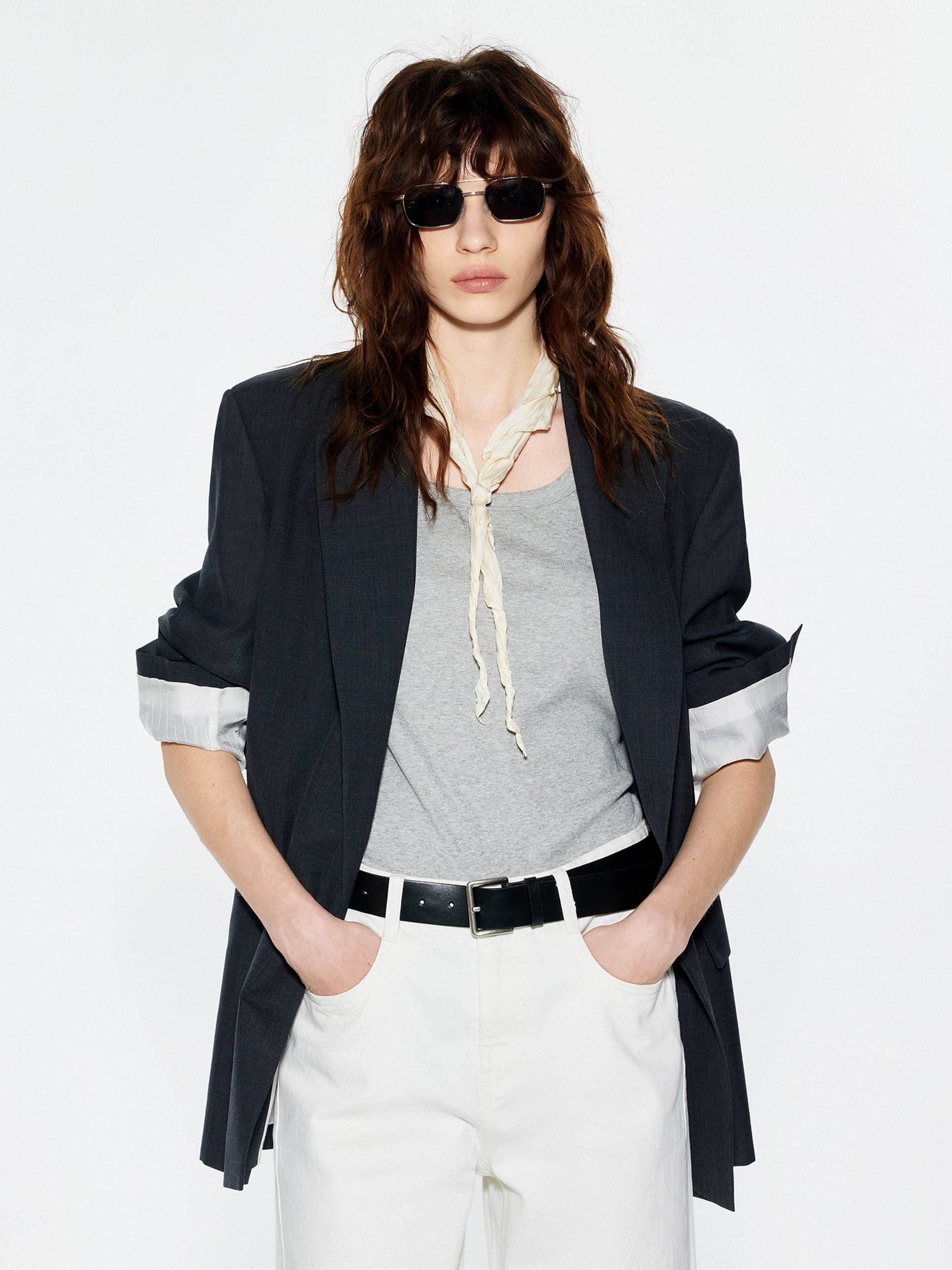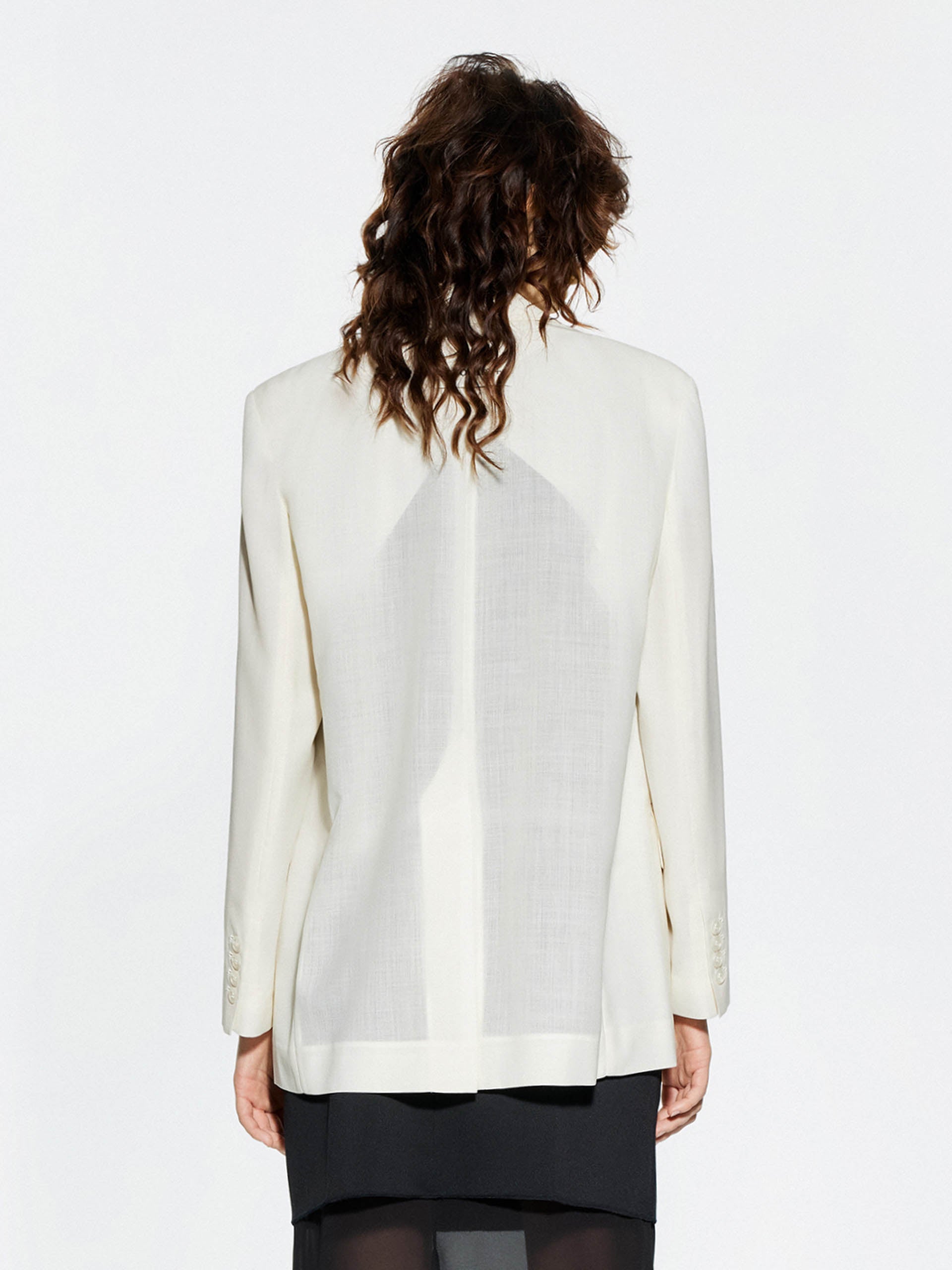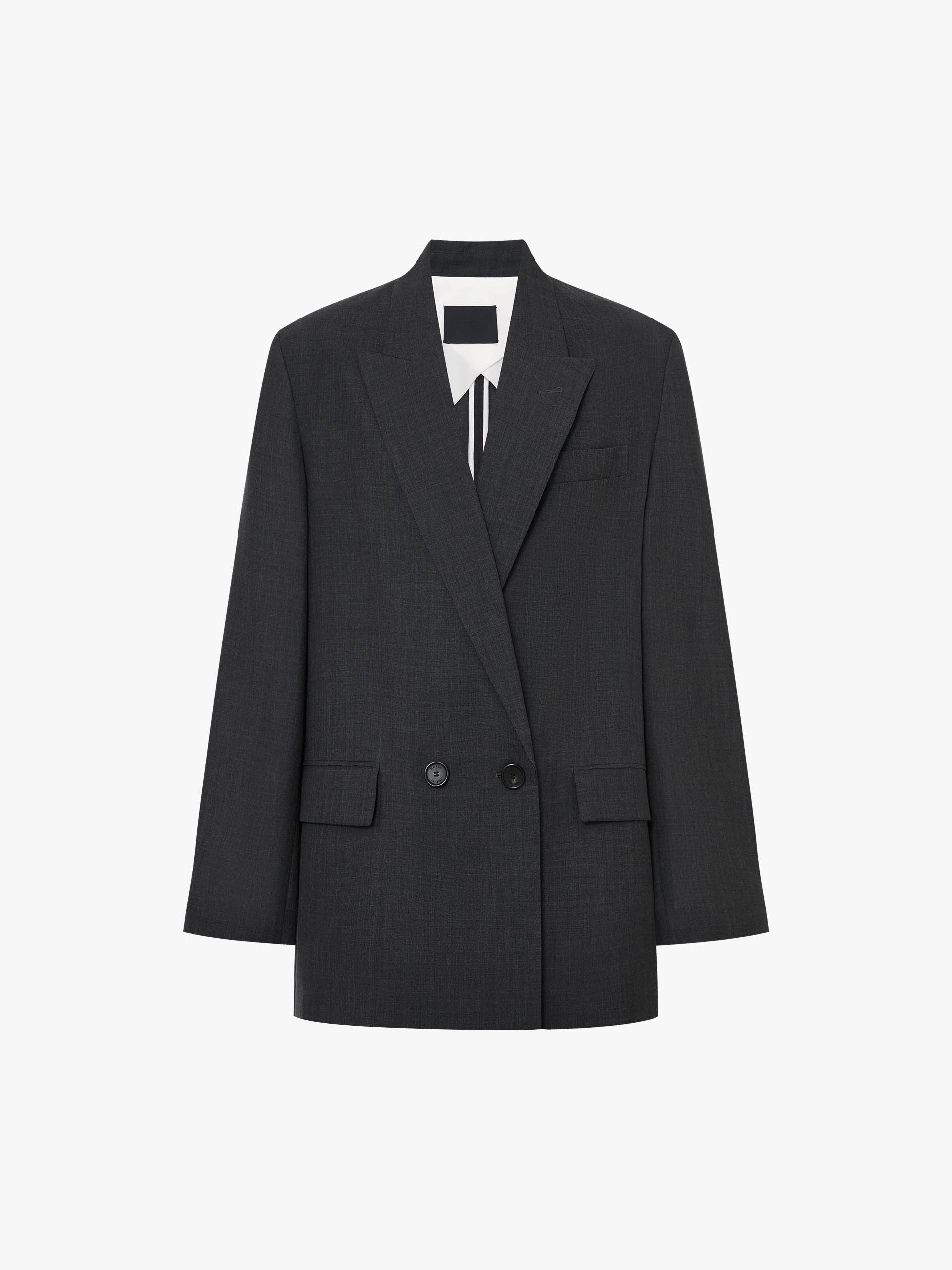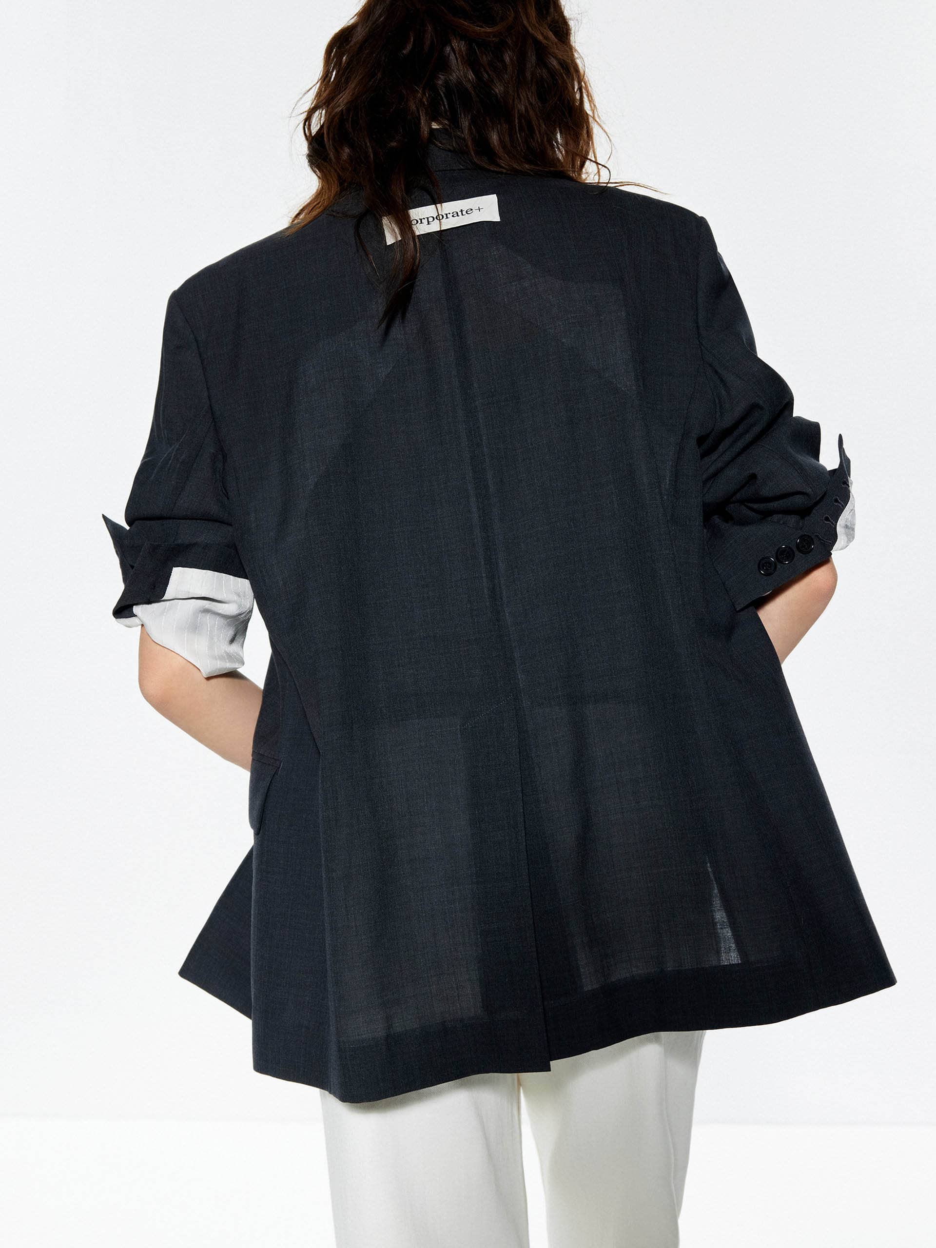 - Back slit and peak lapel design