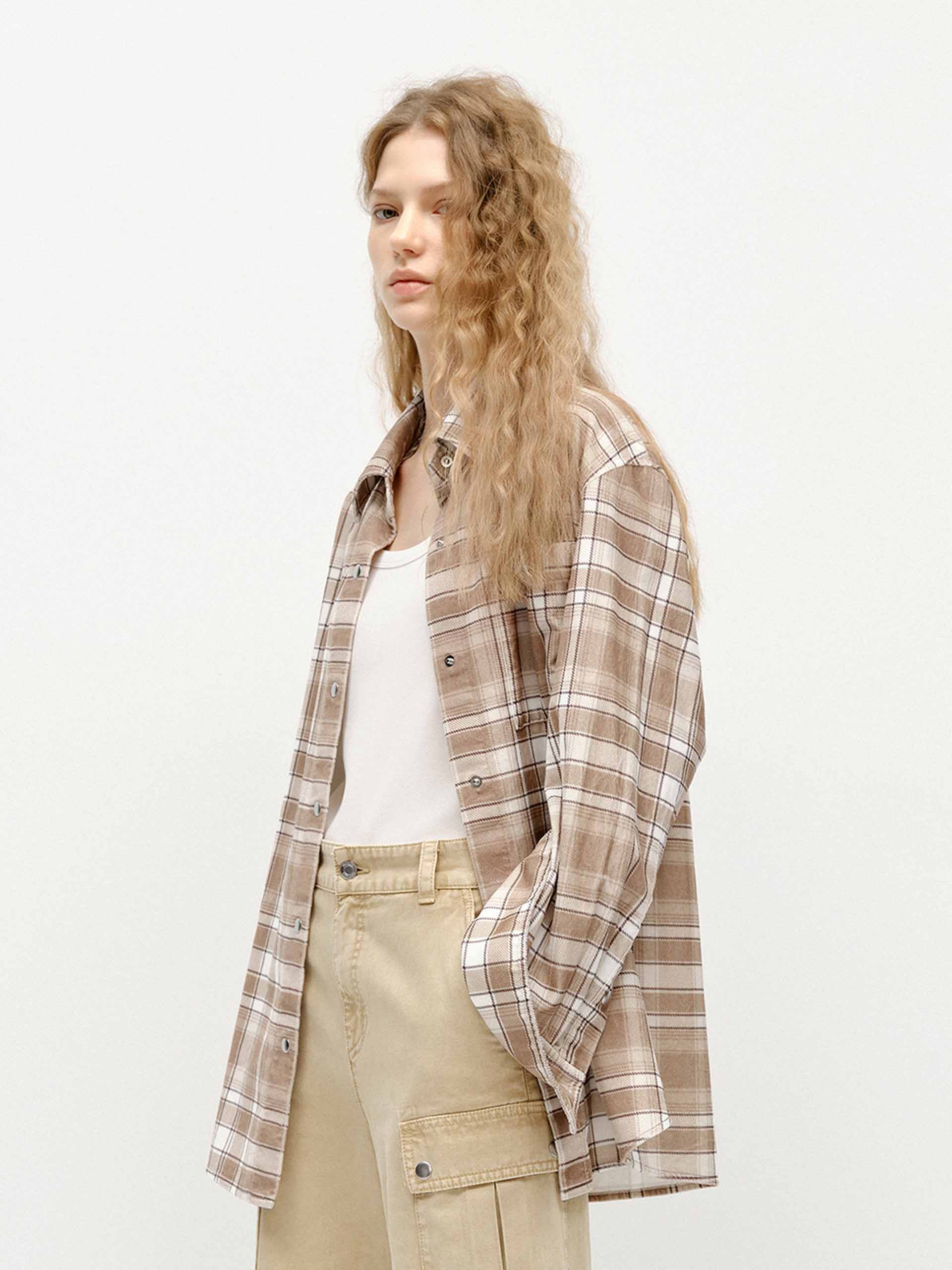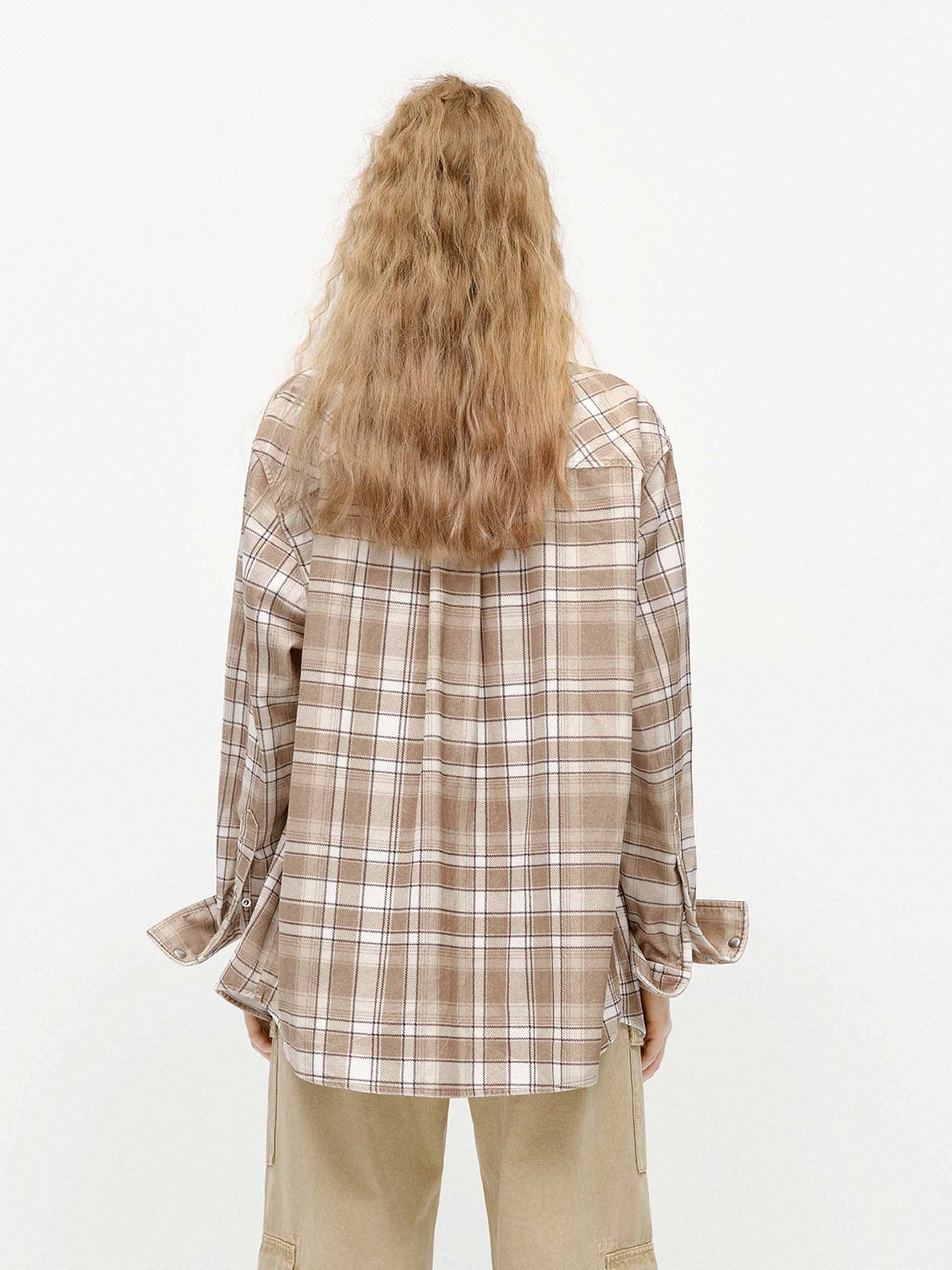 Crafted from pure cotton, this plaid shirt is shaped for an oversized fit and features a patch pocket on the chest and a flattering curved hem. The pointed collar and cuffed long sleeves add a tailored finish.