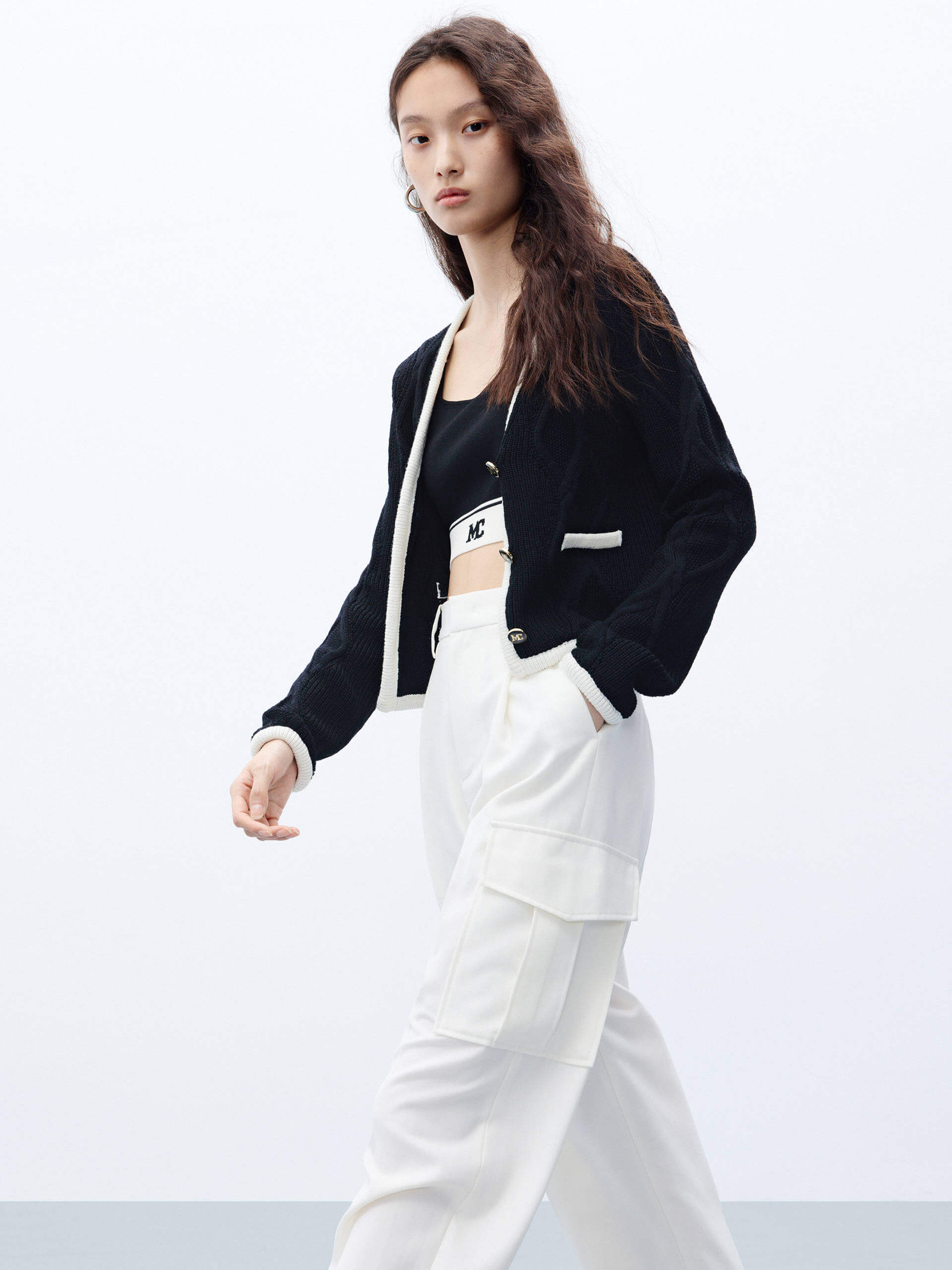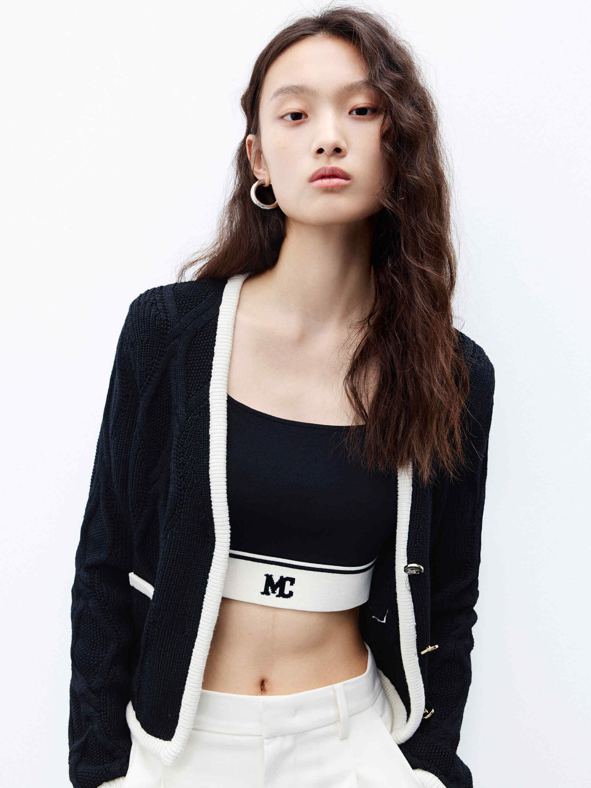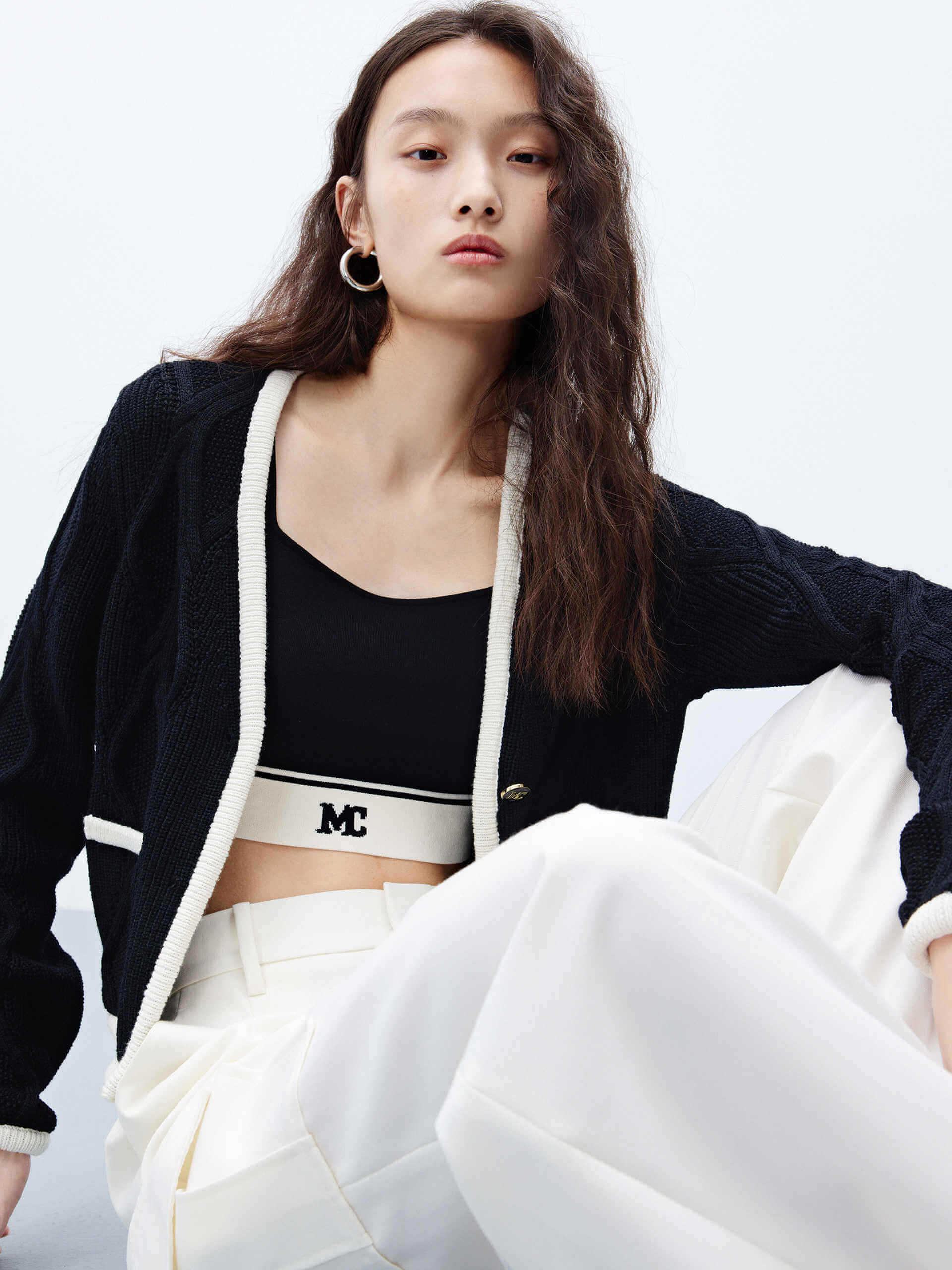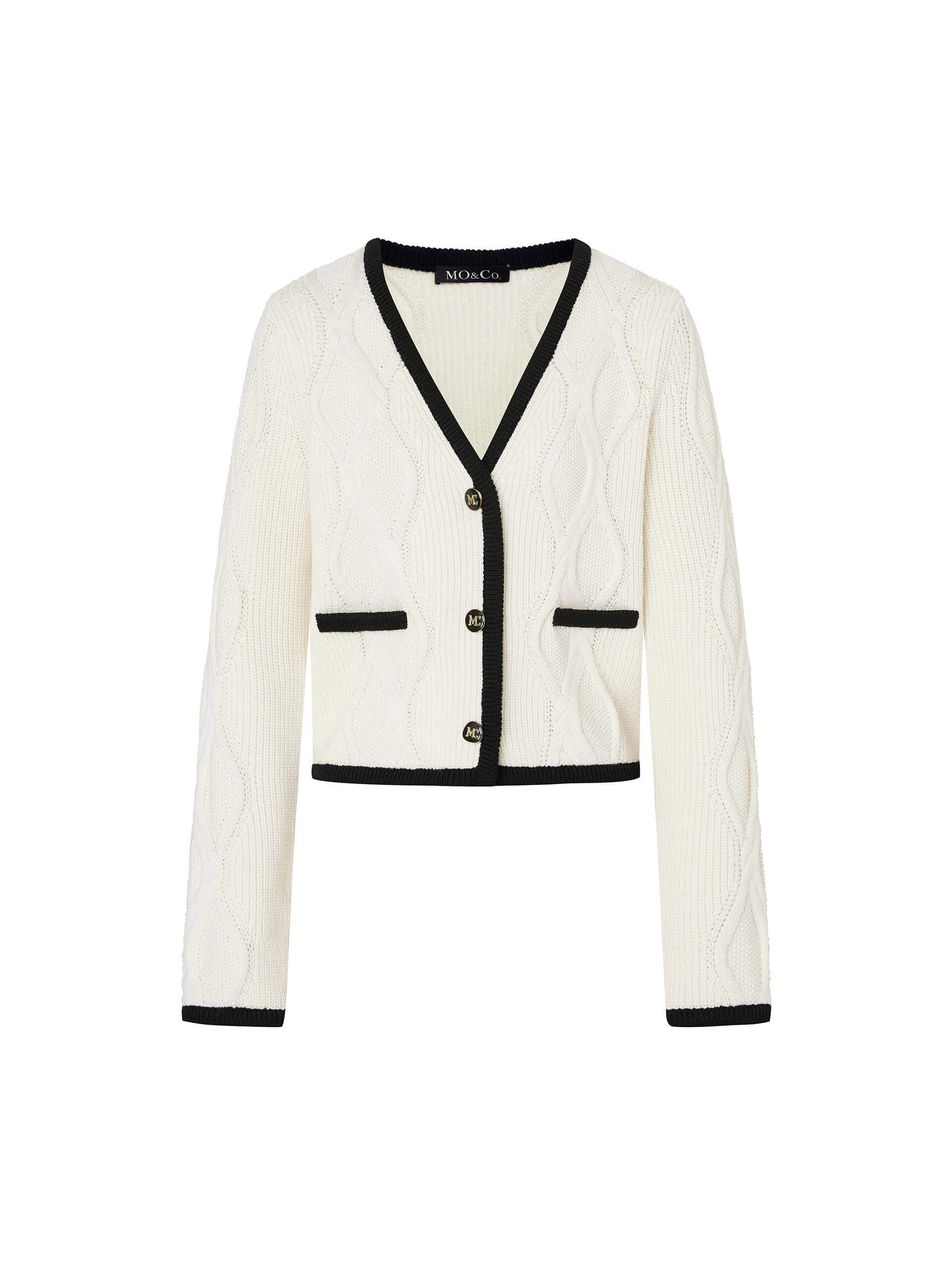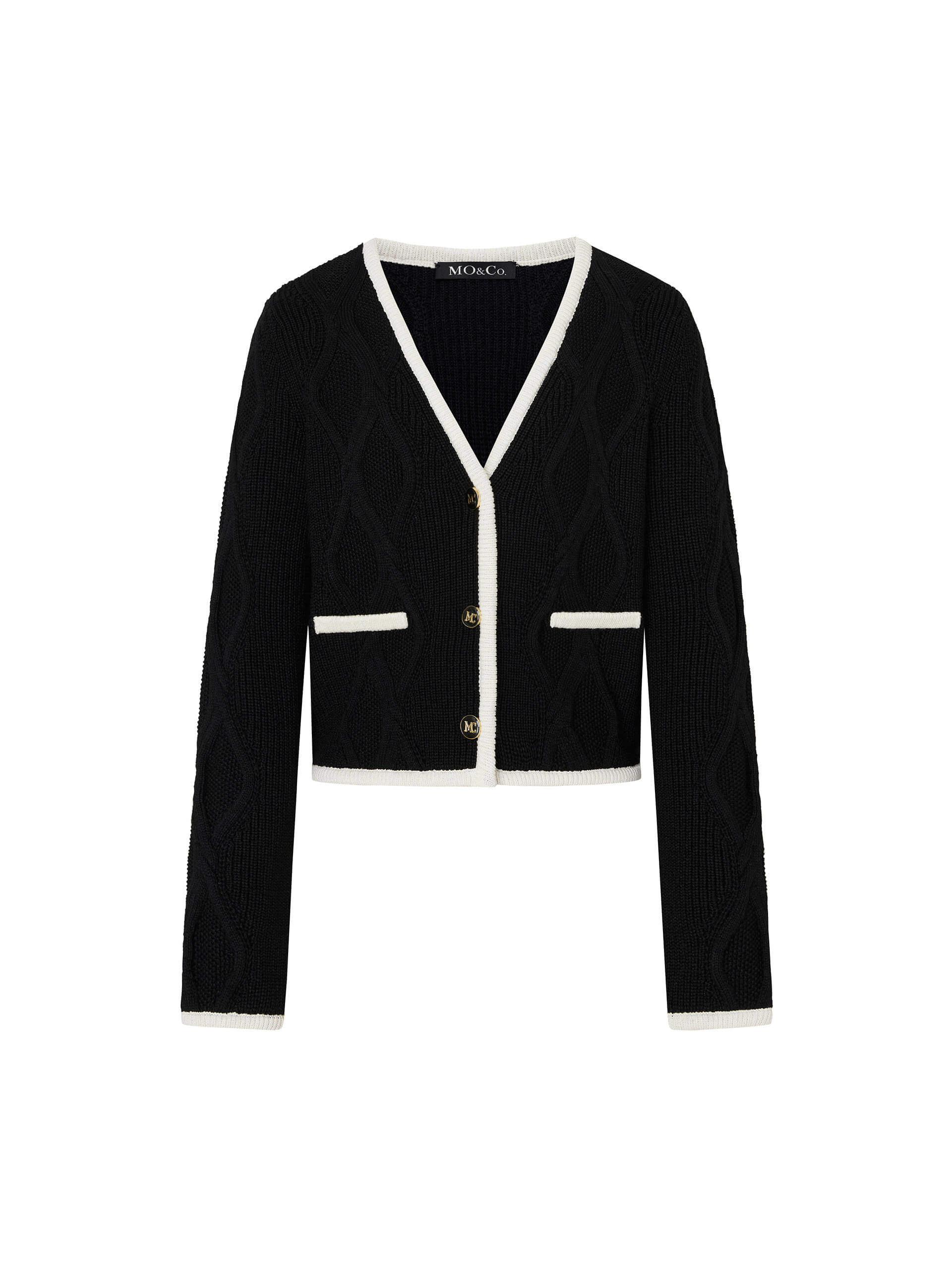 MO&Co. Women's Contrast Trim Cropped Cardigan