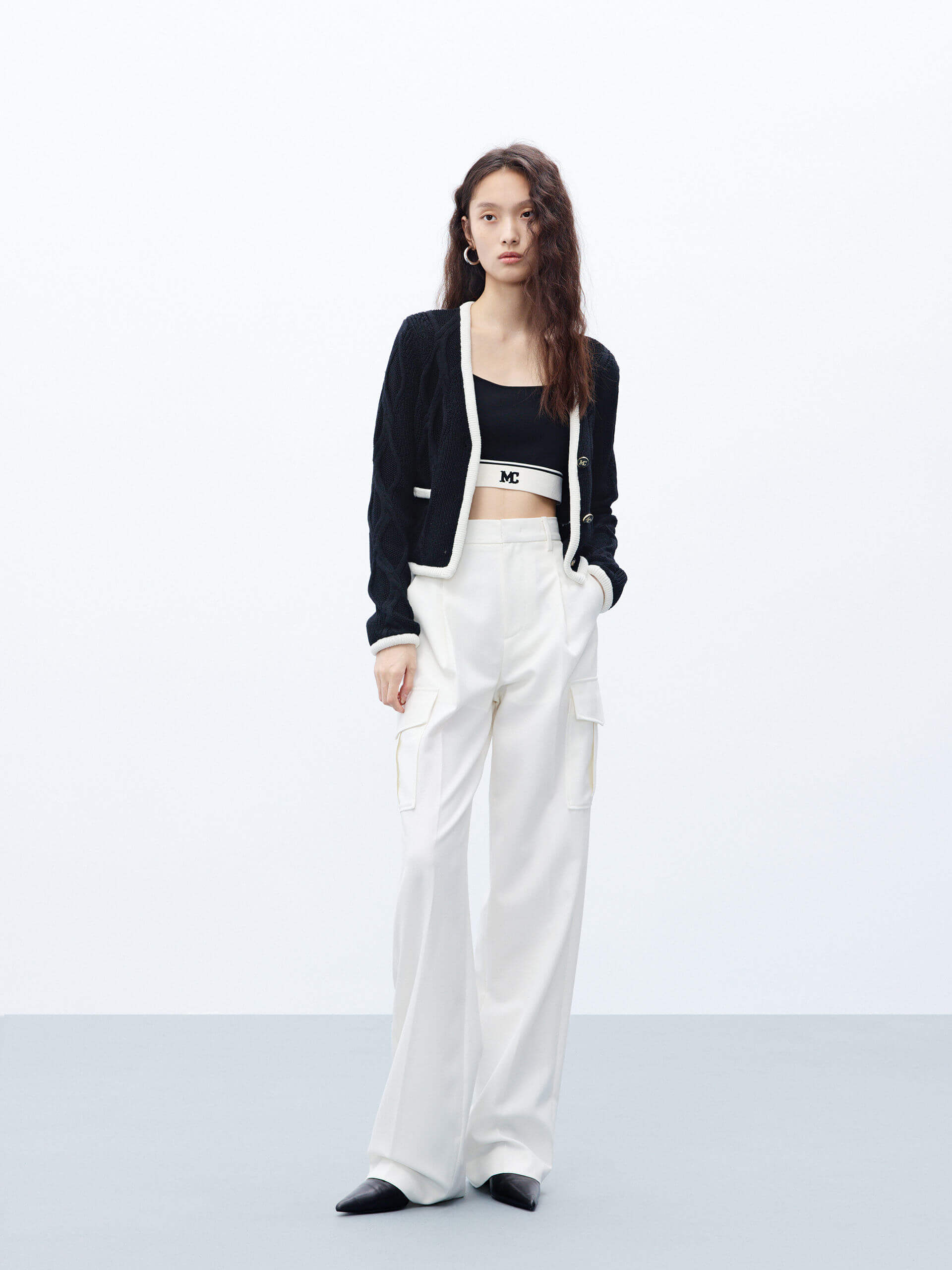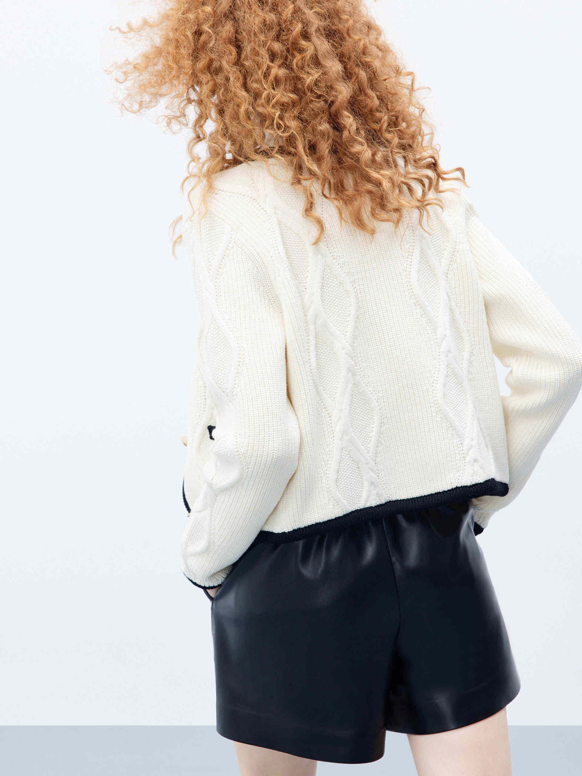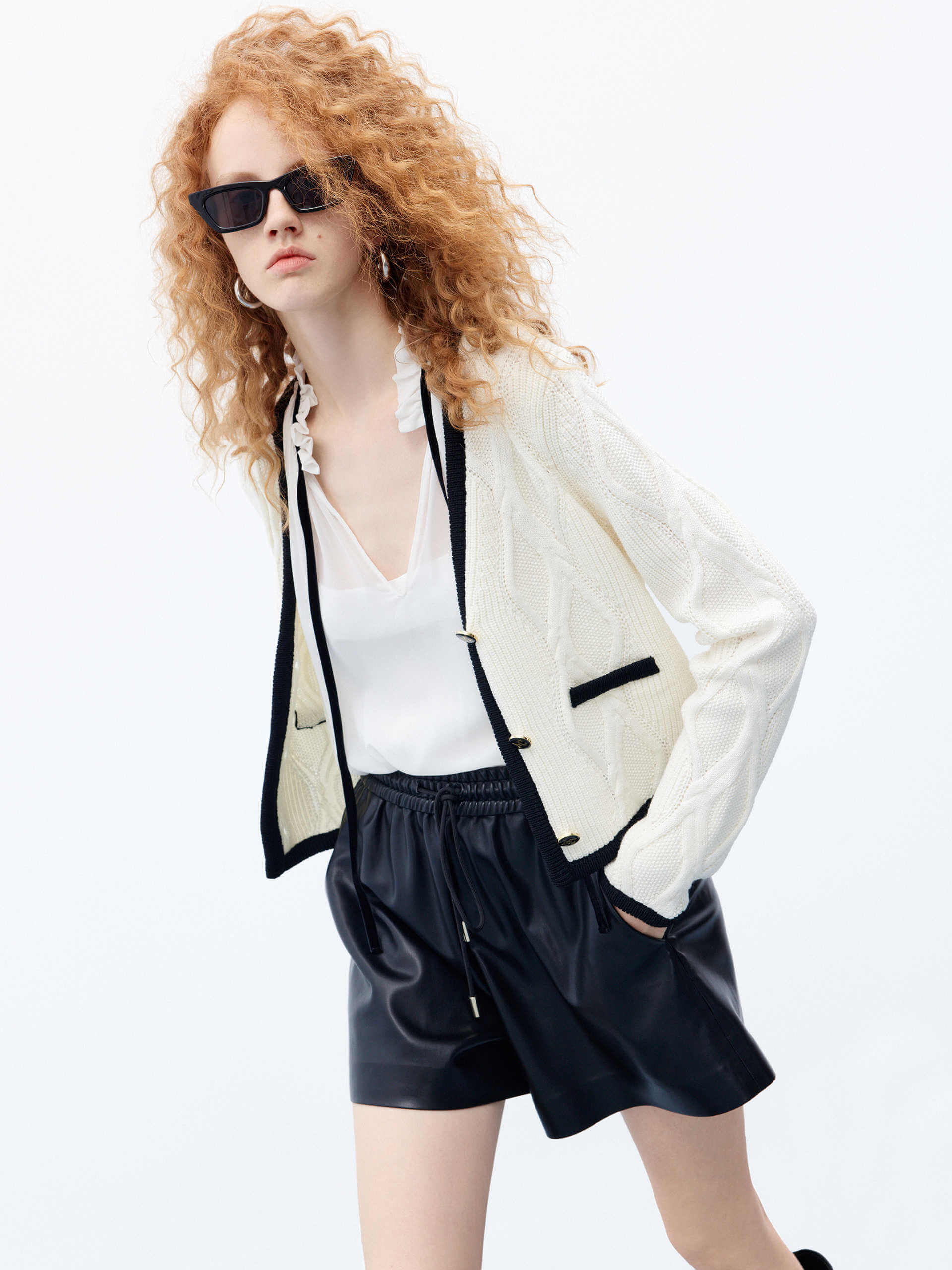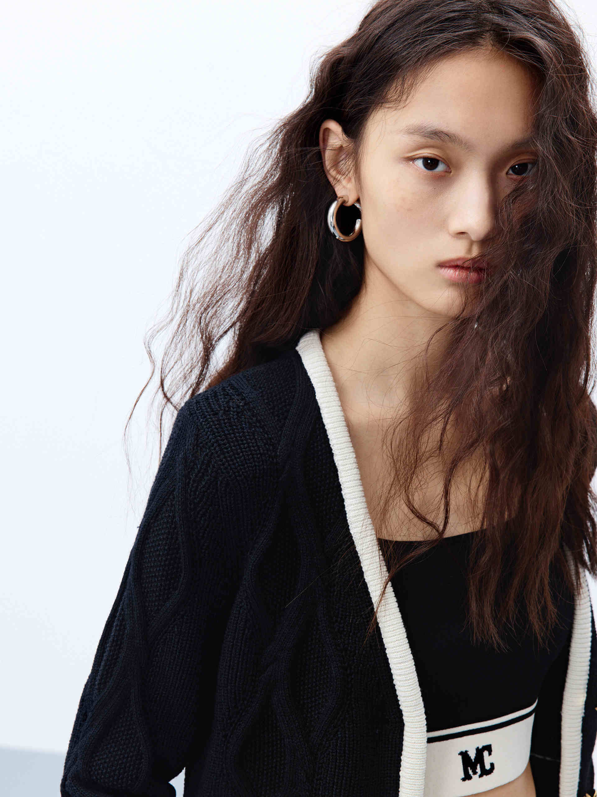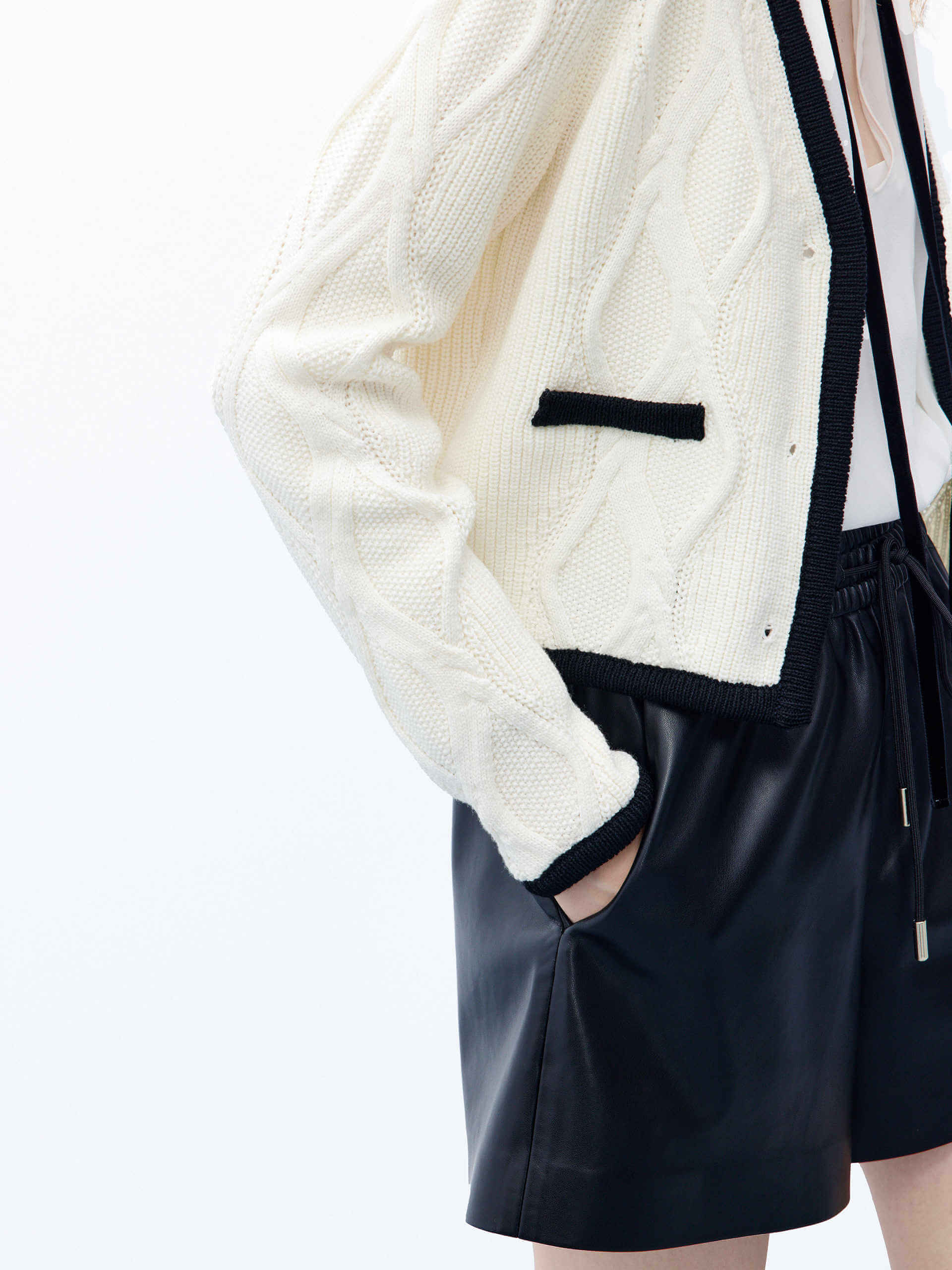 MO&Co. Women's Contrast Trim Cropped Cardigan