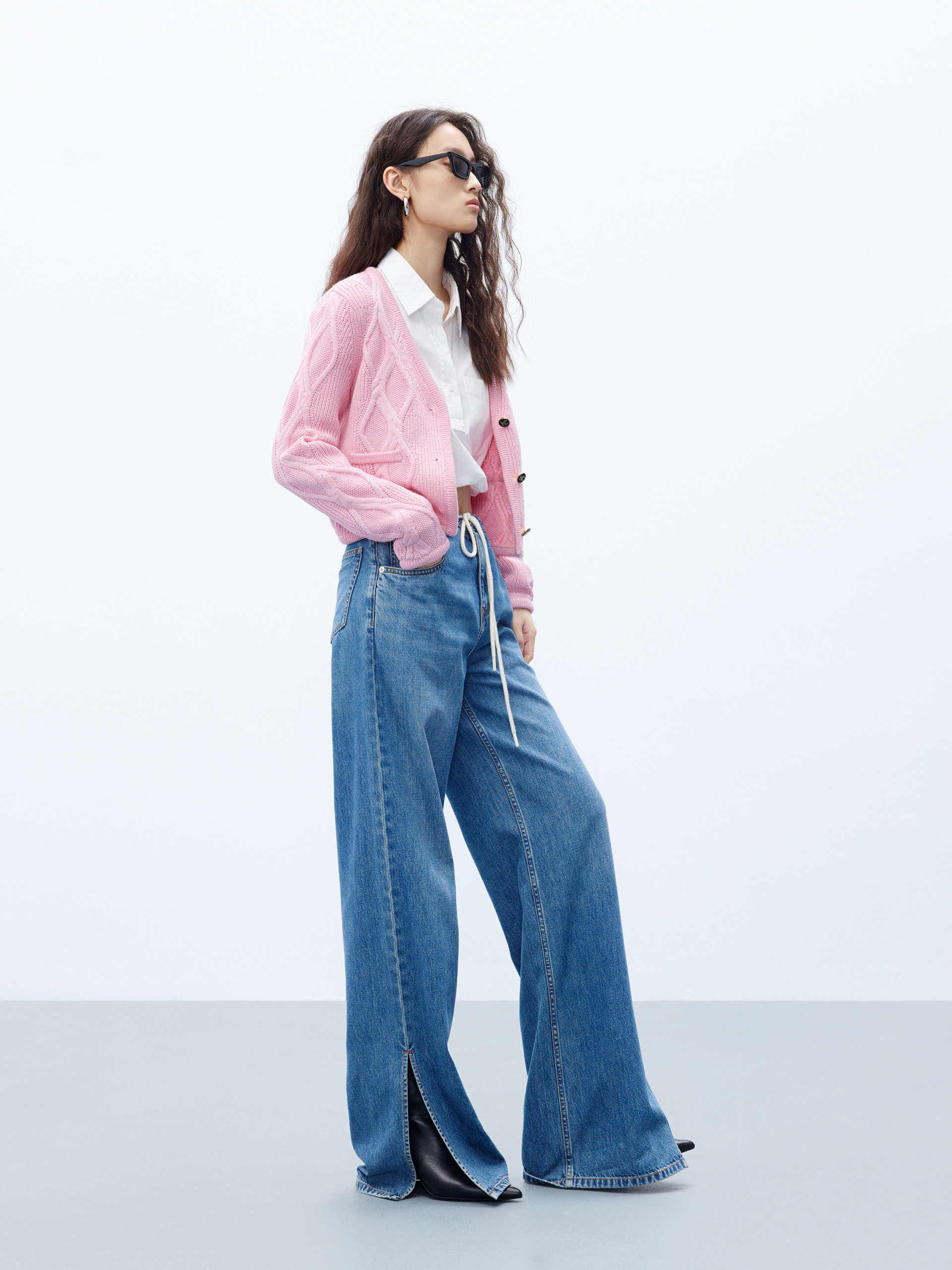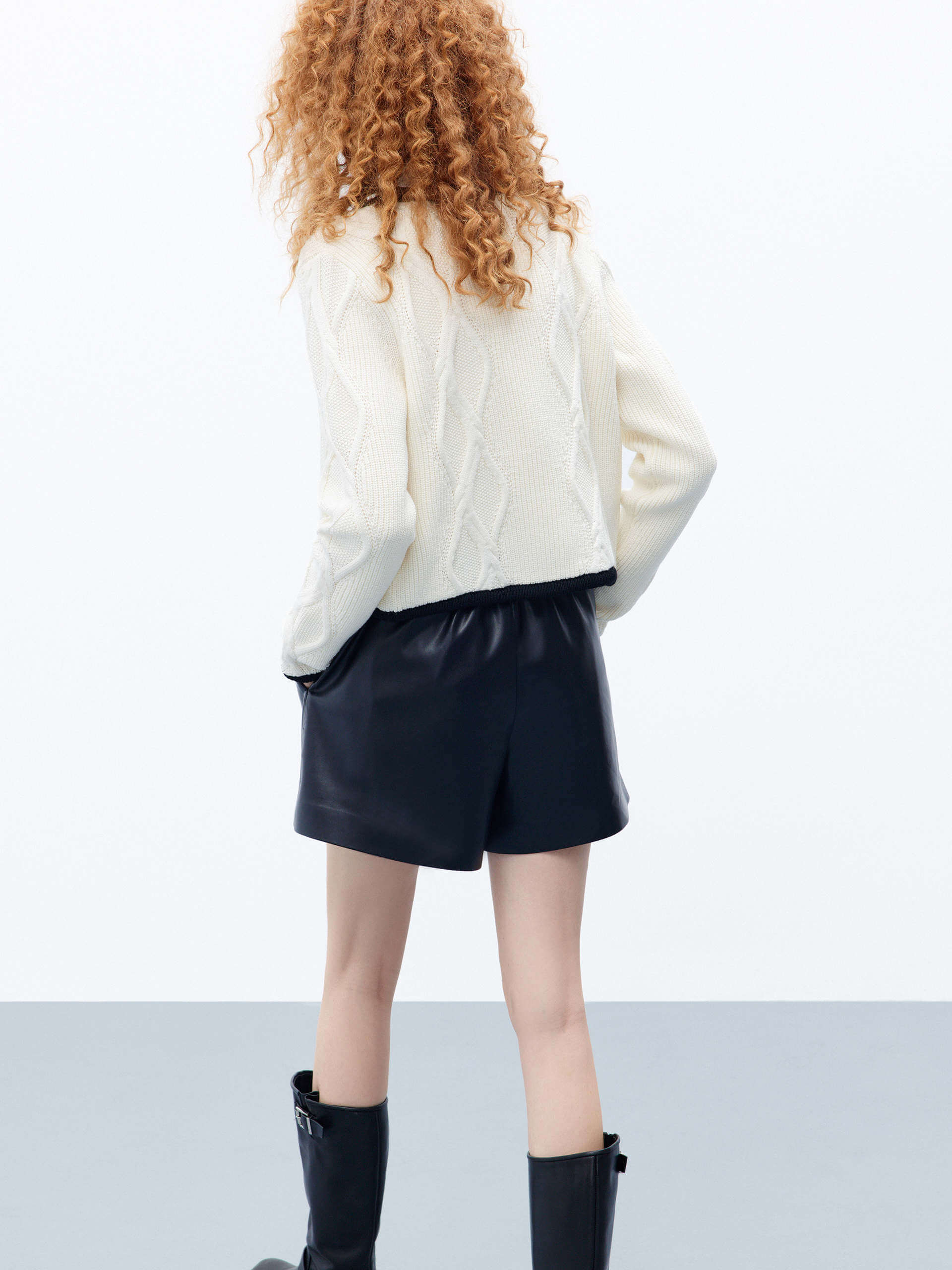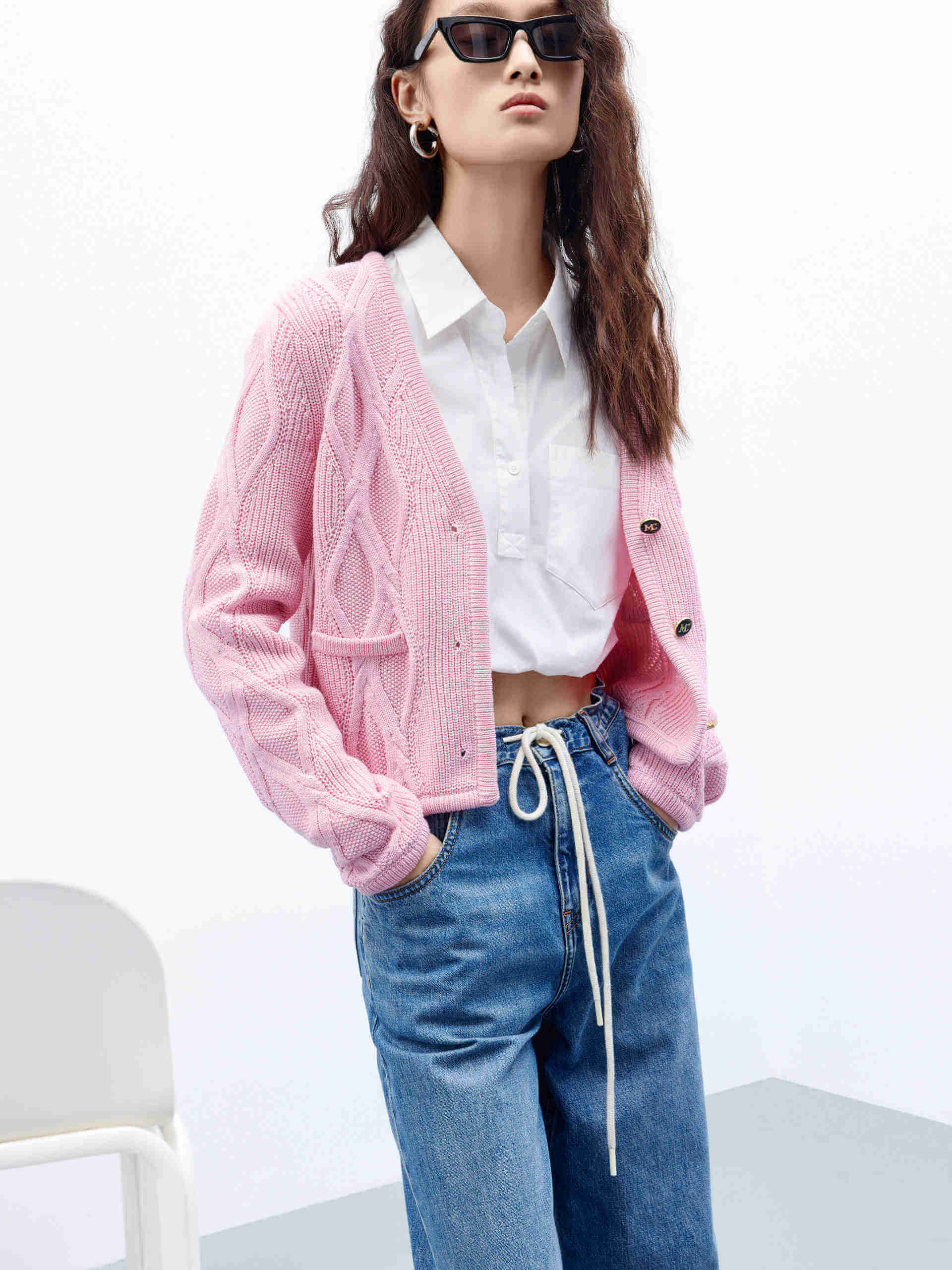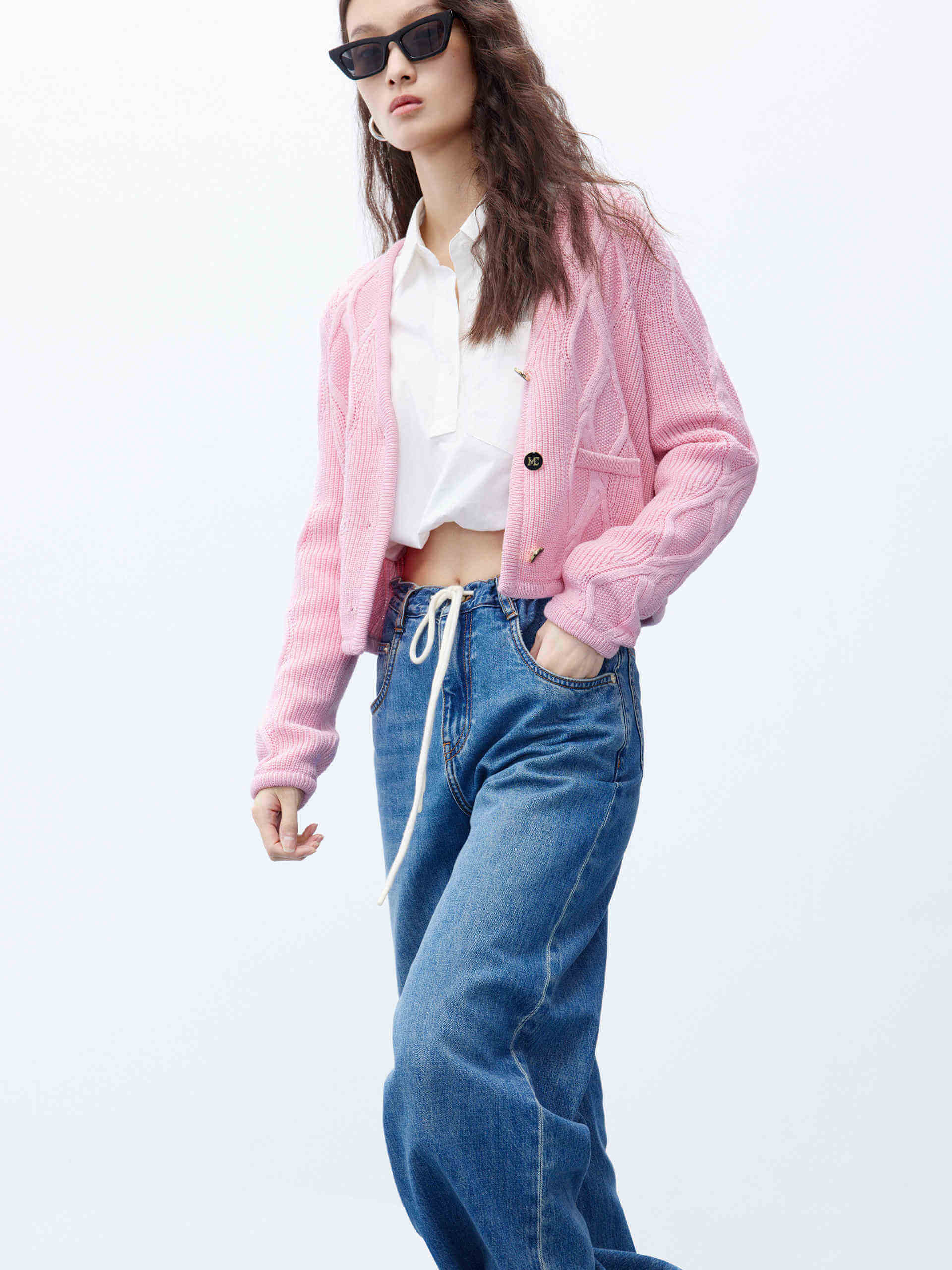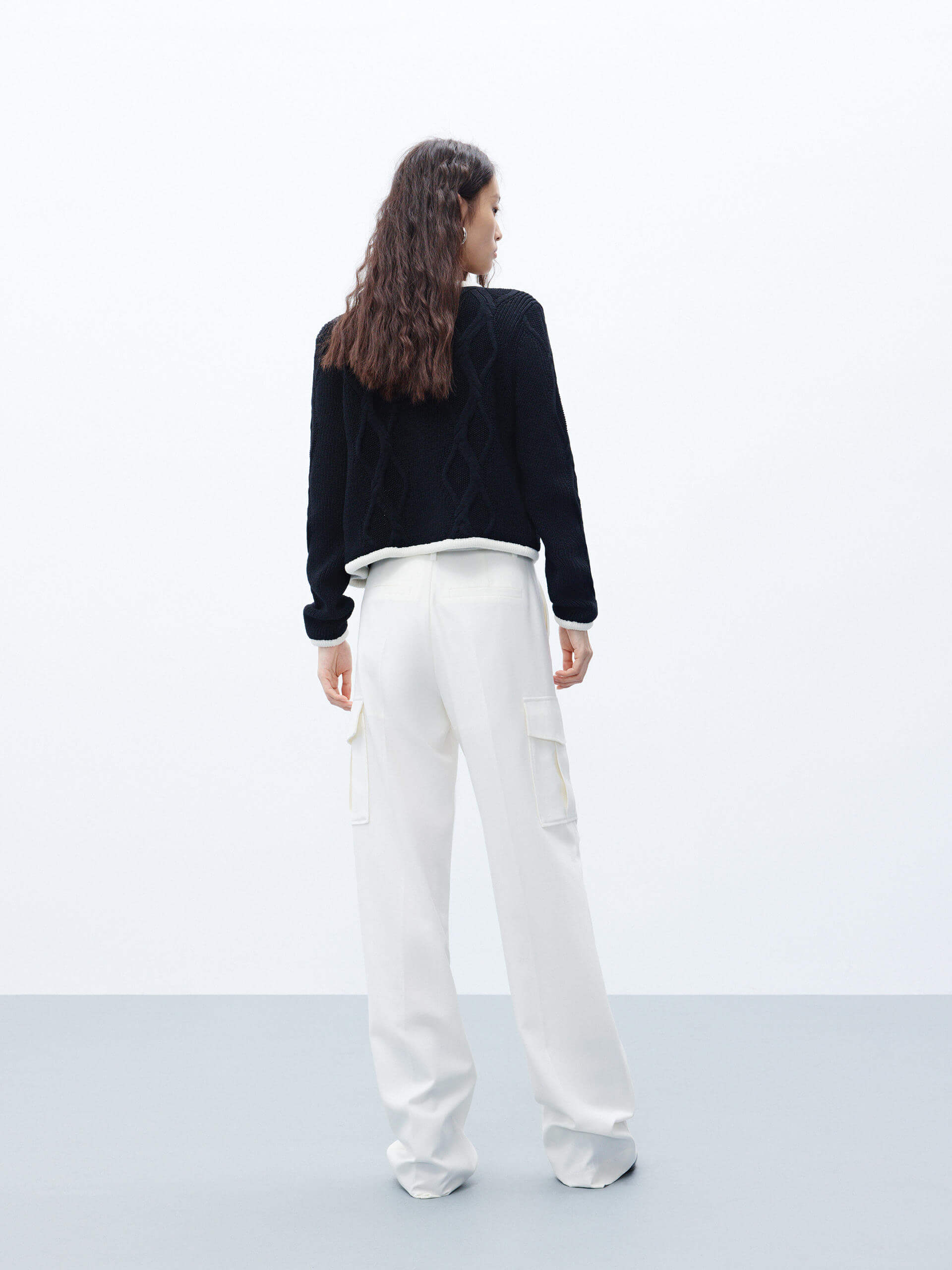 MO&Co. Women's Contrast Trim Cropped Cardigan