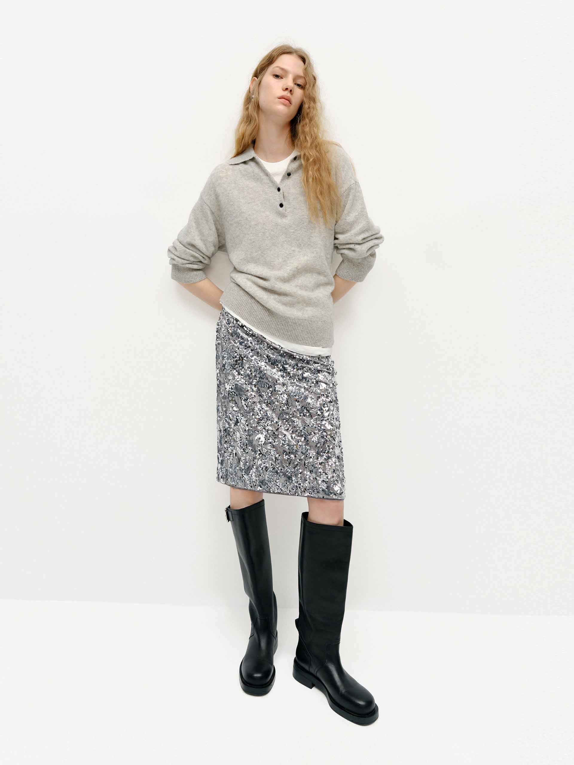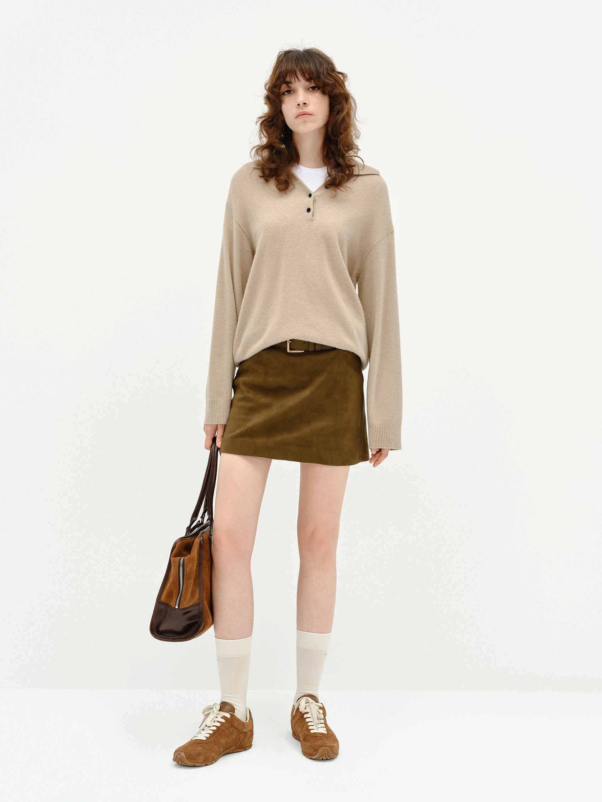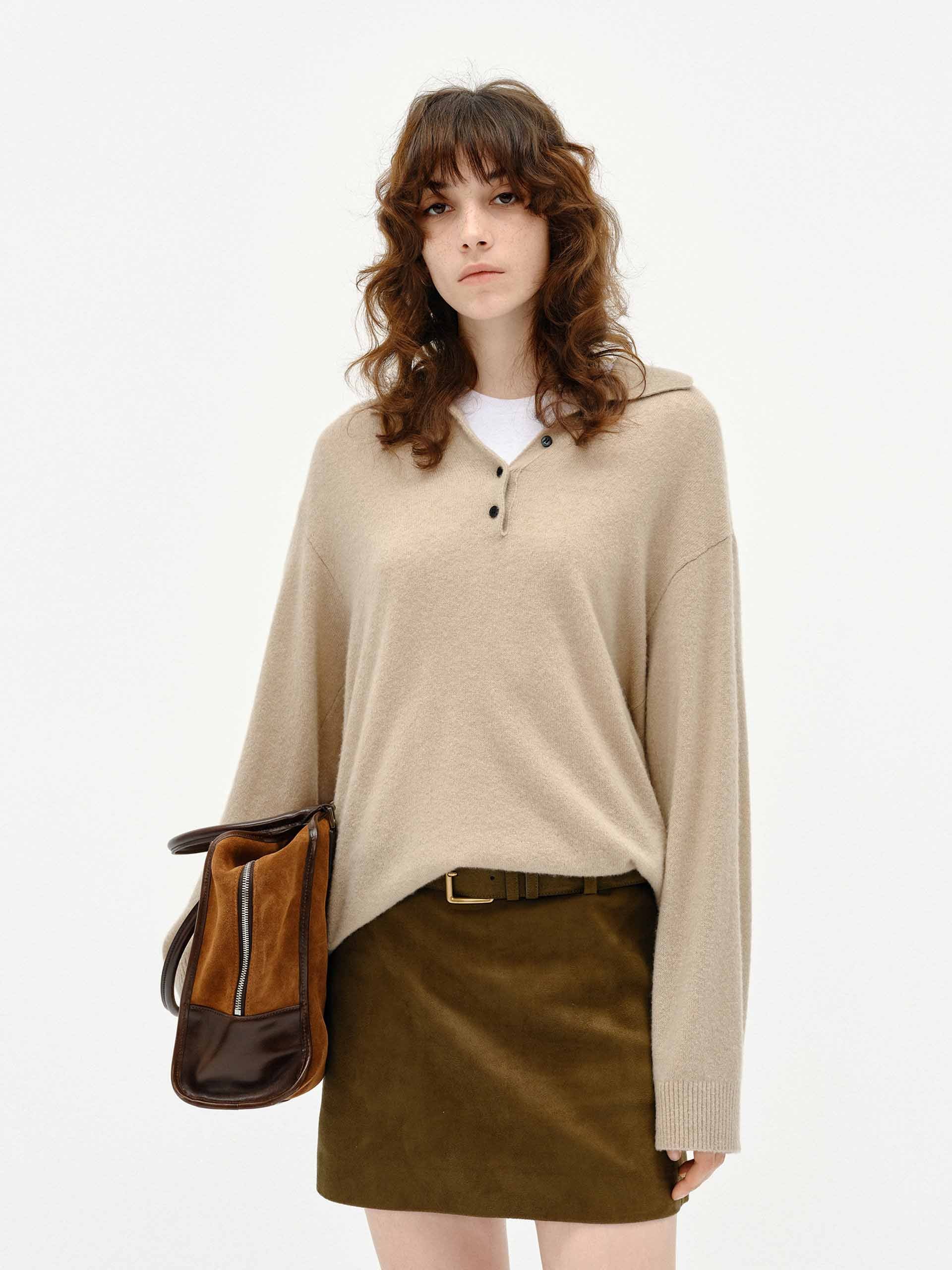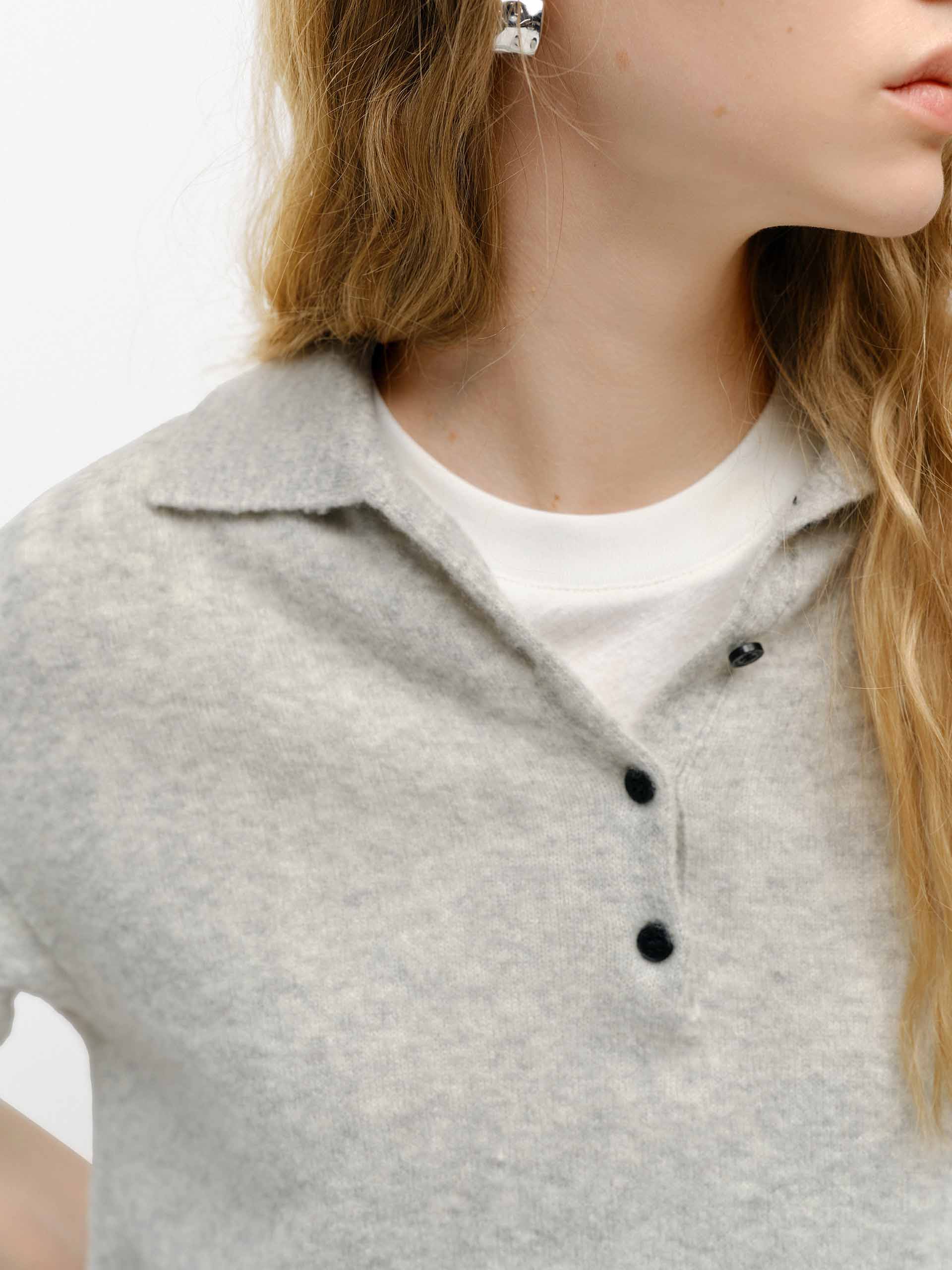 This sweater is made from lightweight and soft wool, cashmere and silk, it features a classic polo collar and half-button detail. Perfect for transitioning into the warmer seasons while staying fashionable.