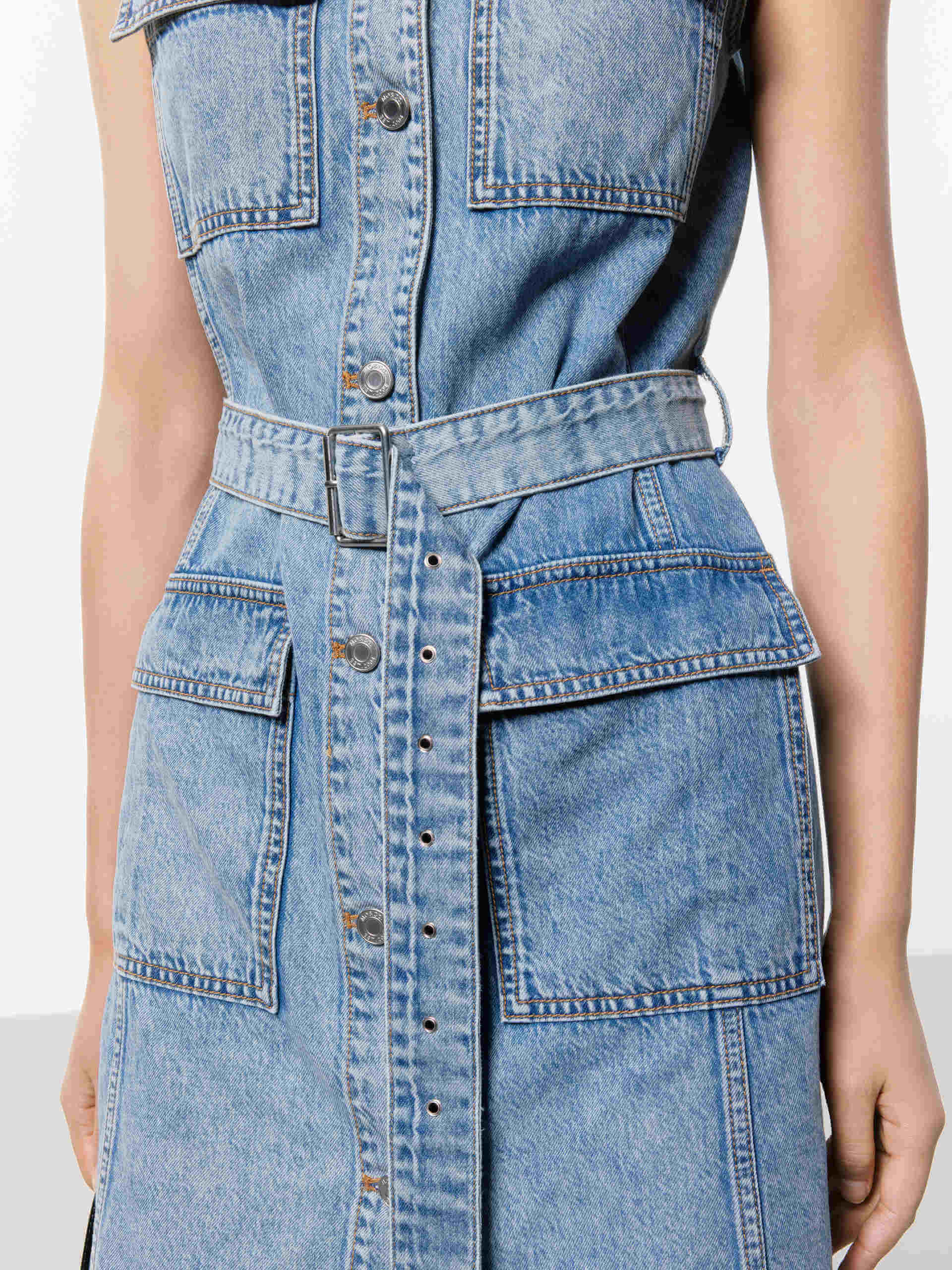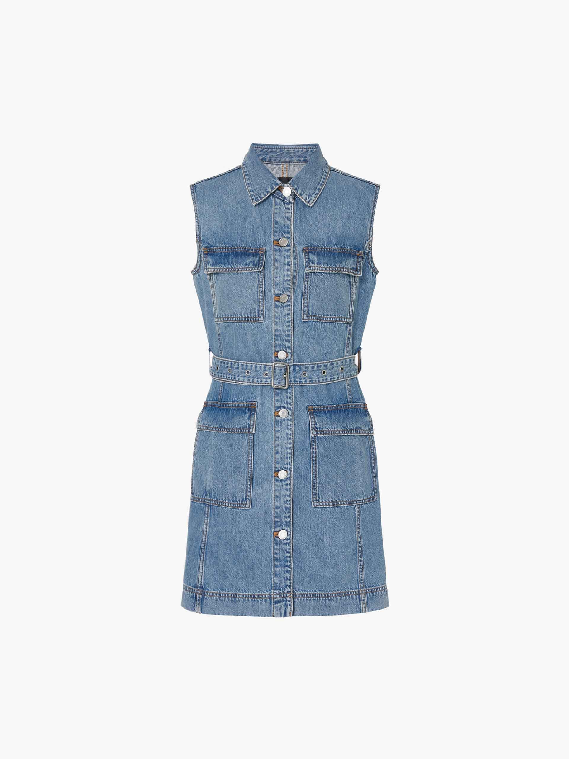Belt Sleeveless Denim Dress