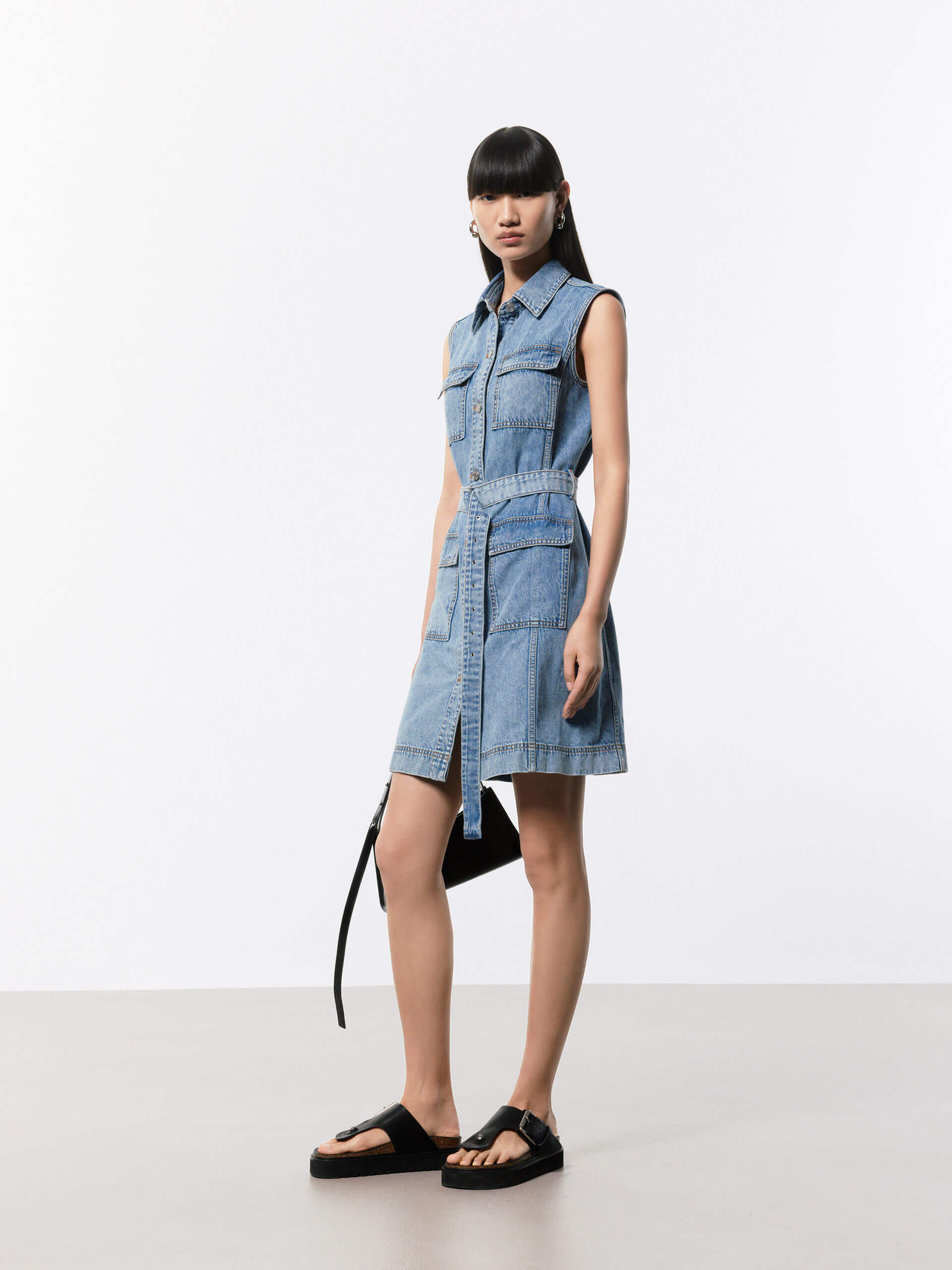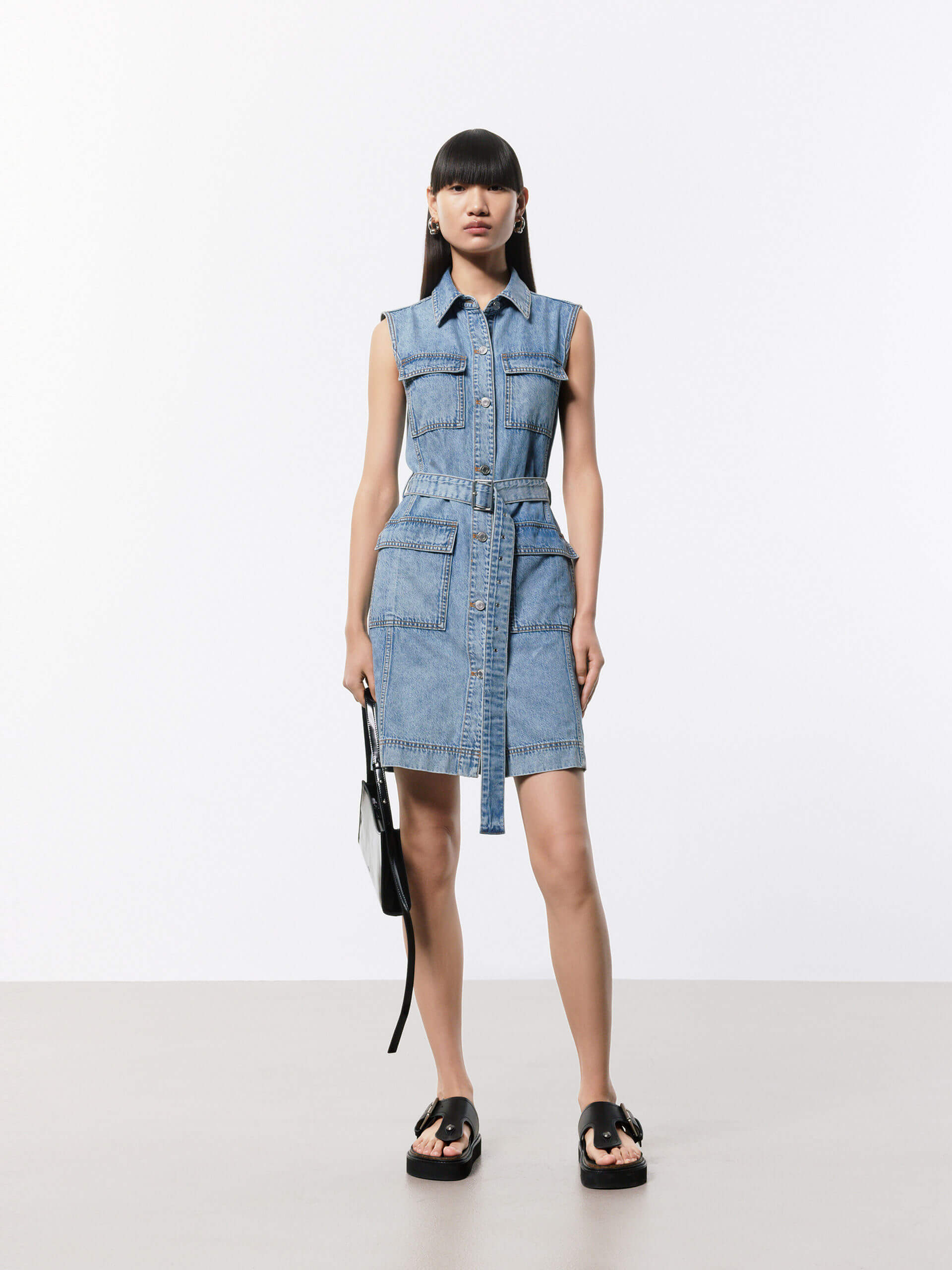- Straight cut mini denim dress
