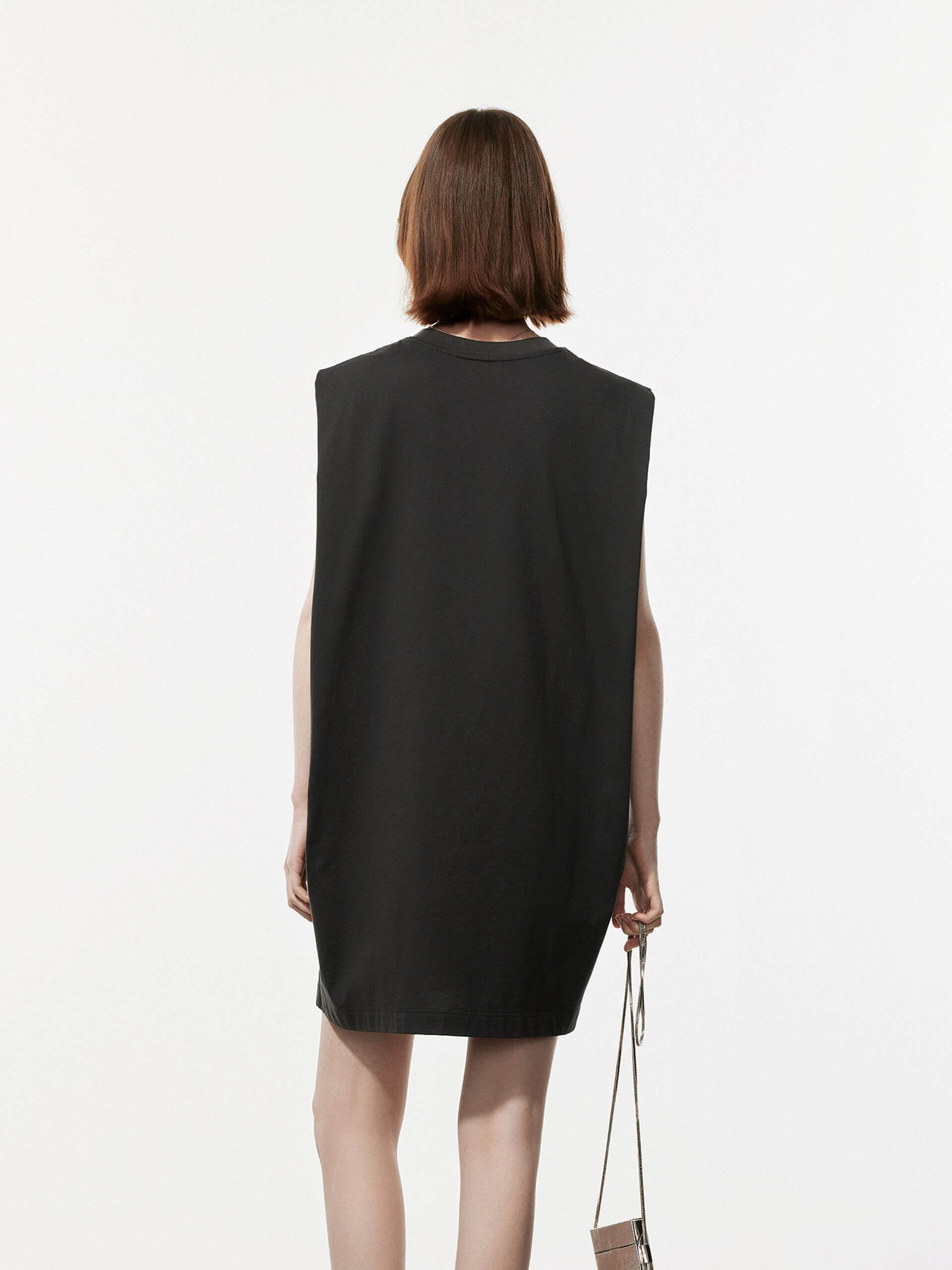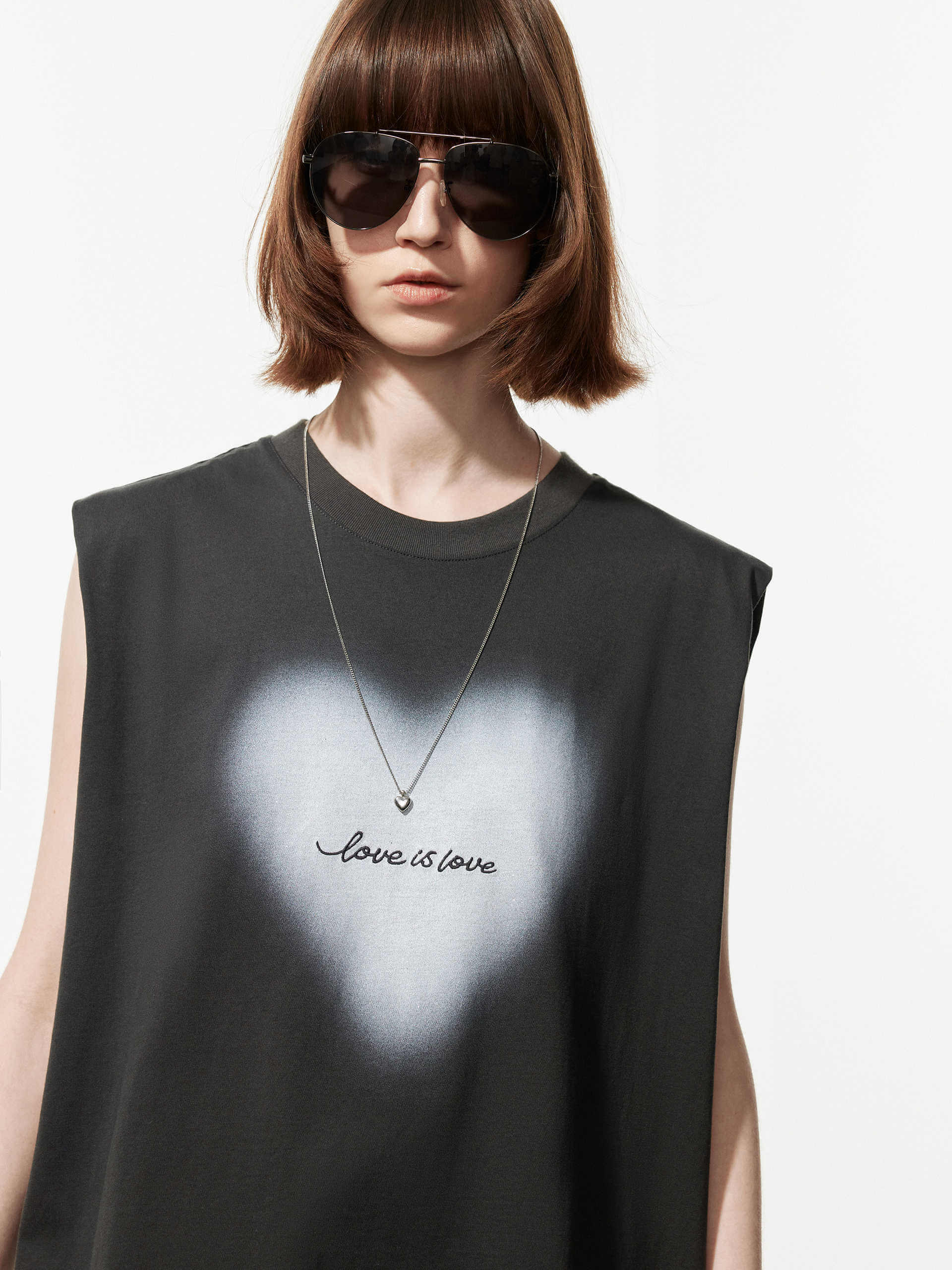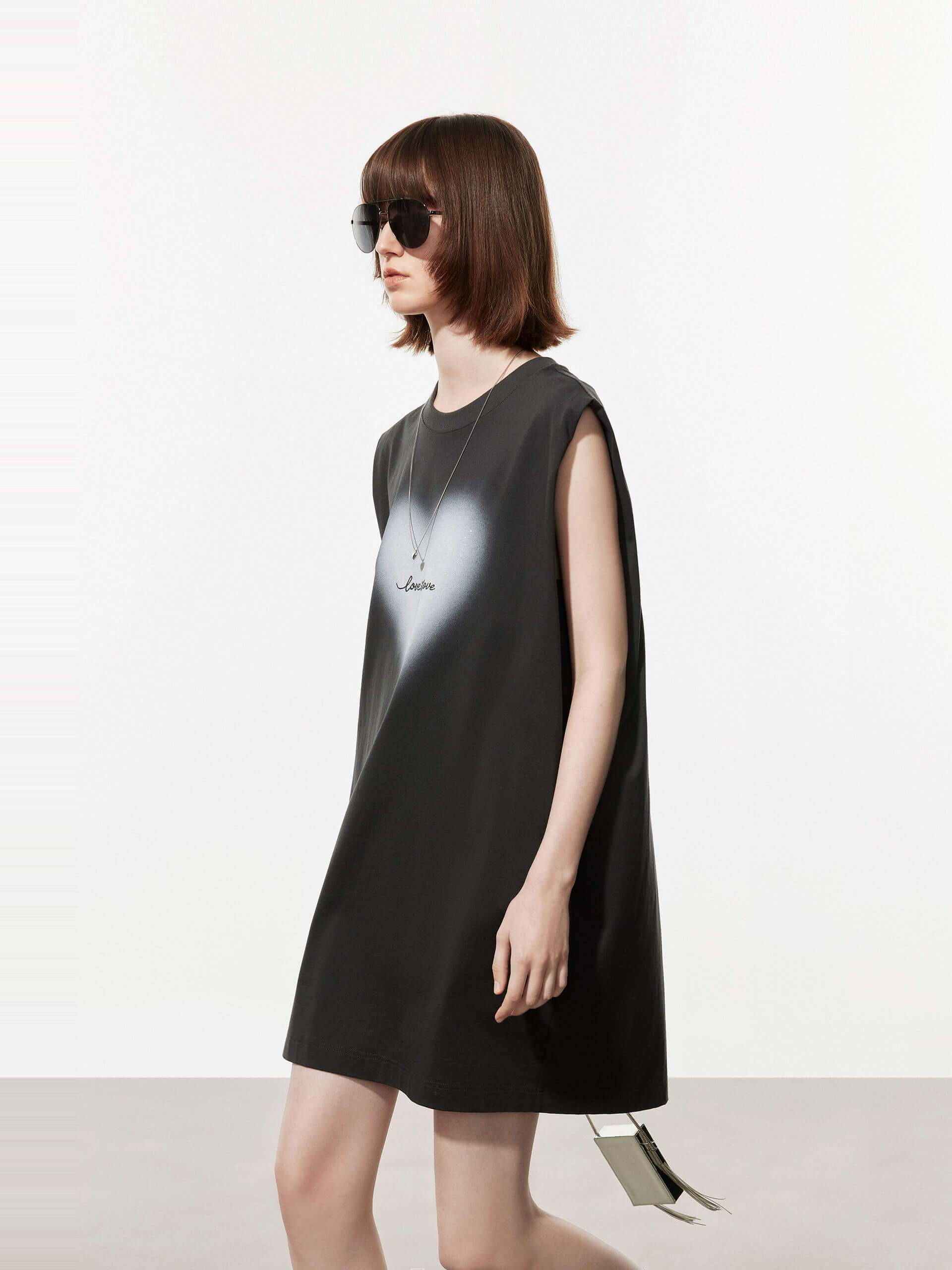 This loose dress is the perfect addition to your casual wardrobe, made from breathable and comfortable 100% cotton. Featuring a straight t-shirt silhouette and a mini length, it's both a relaxed vibe and stylish. The front of the dress is adorned with a heart print and an embroidered letter, adding a playful touch to the overall design. The crewneck and side pocket design add to the casual and functional aspect of the dress.