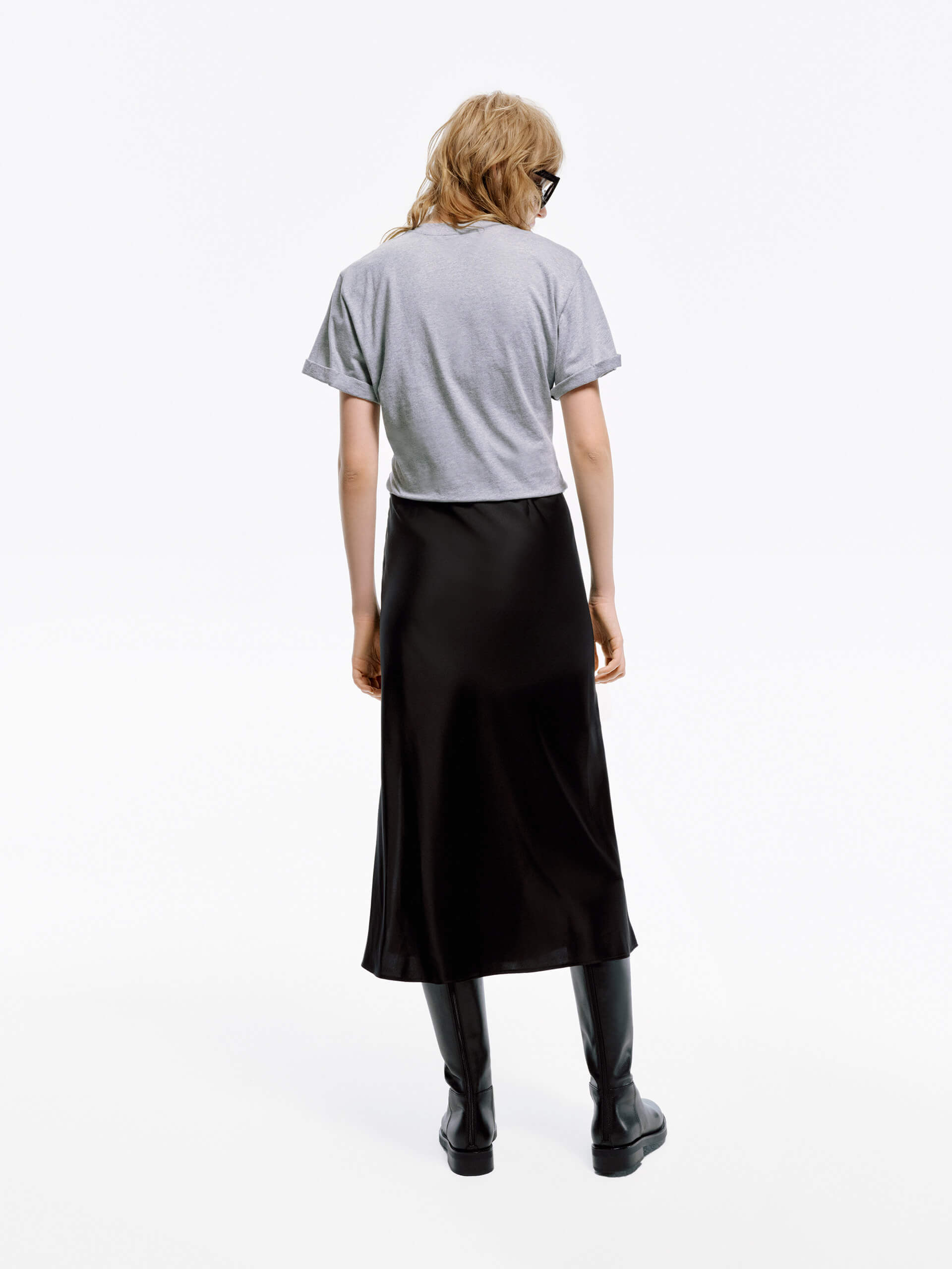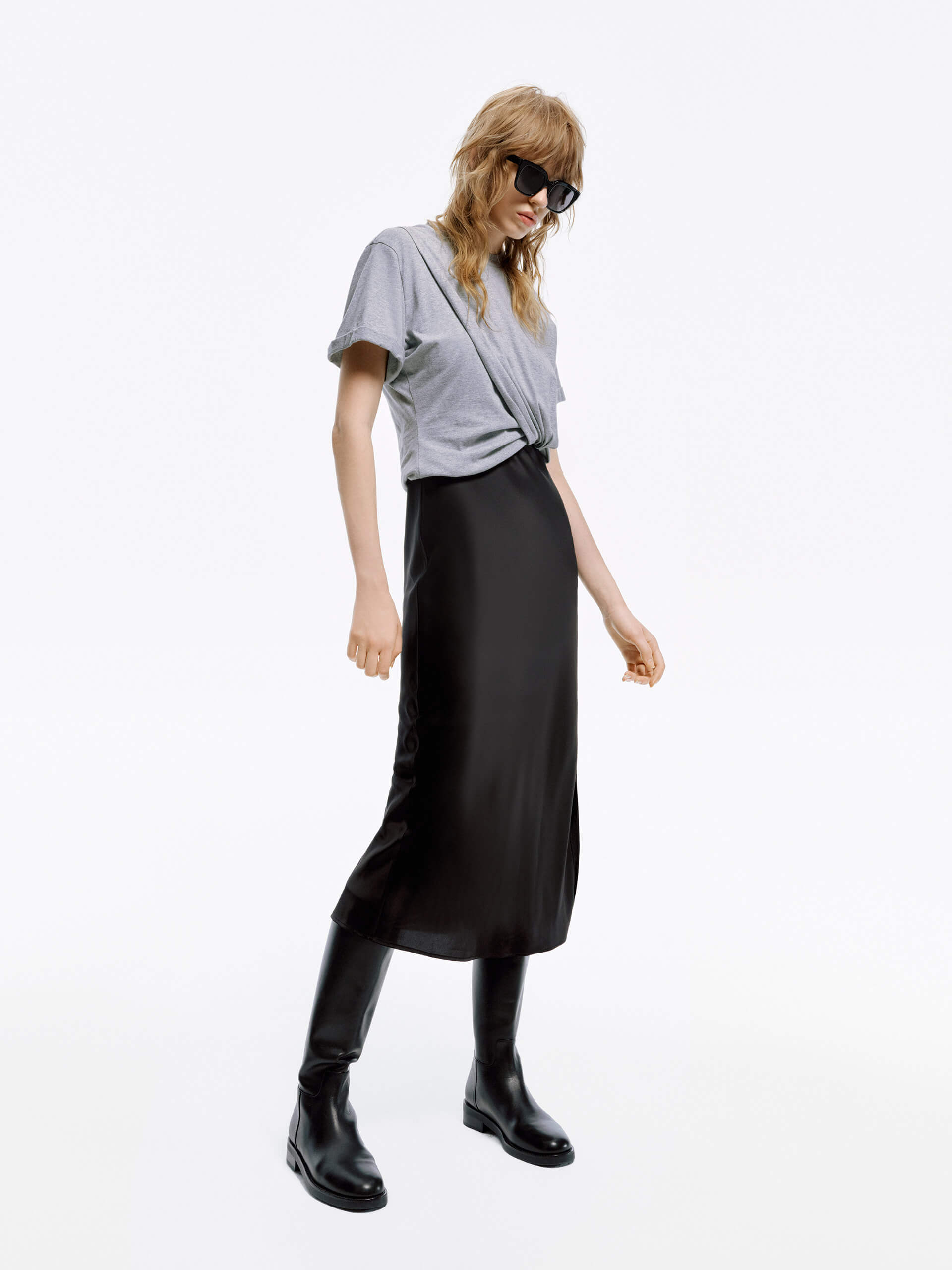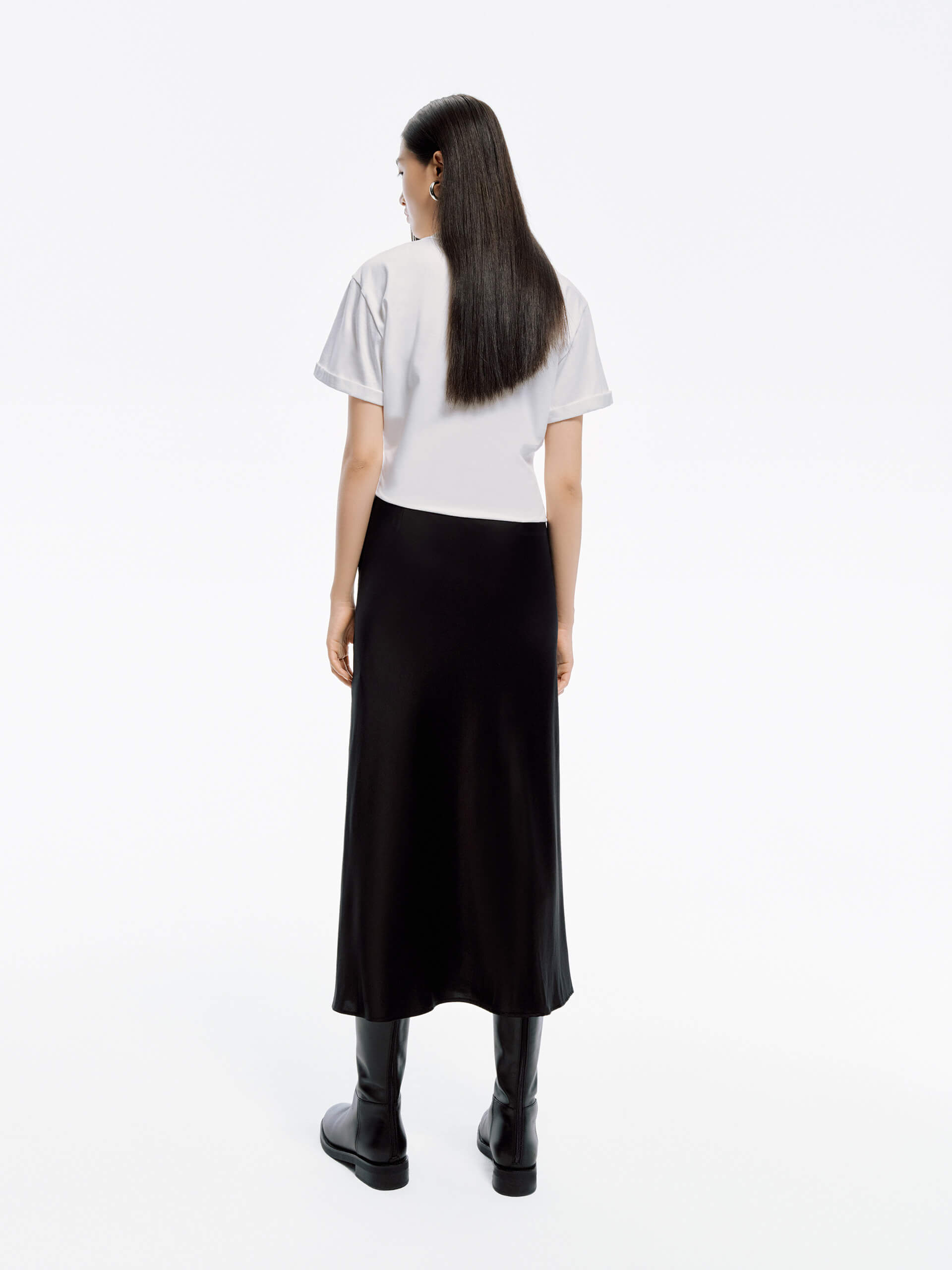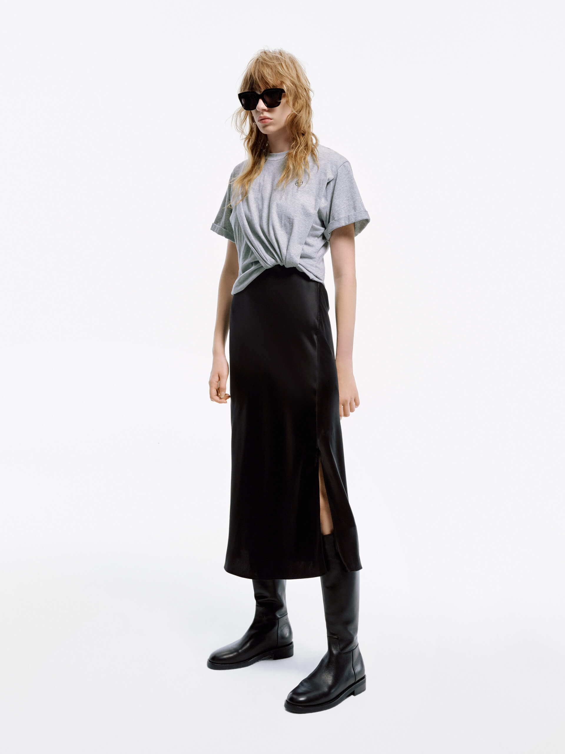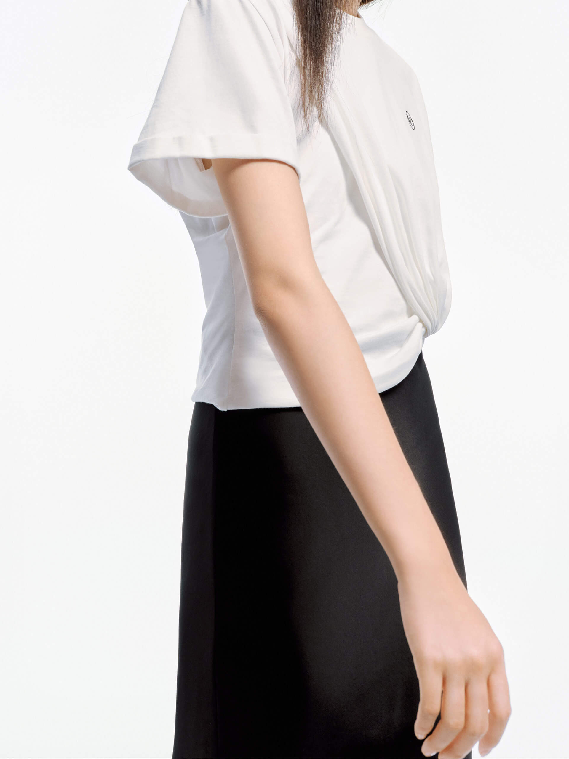 Unique cuts and tactile fabrics give dresses a new perspective. This item is made of two-tone colors, a cotton jersey top and a comfortable acetate blend skirt. The side slit design makes it easy to move, making it visually unique and chic.
