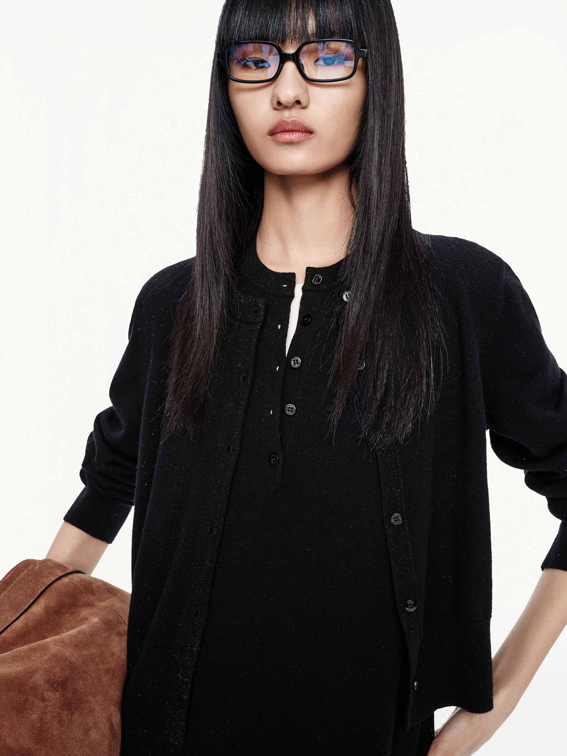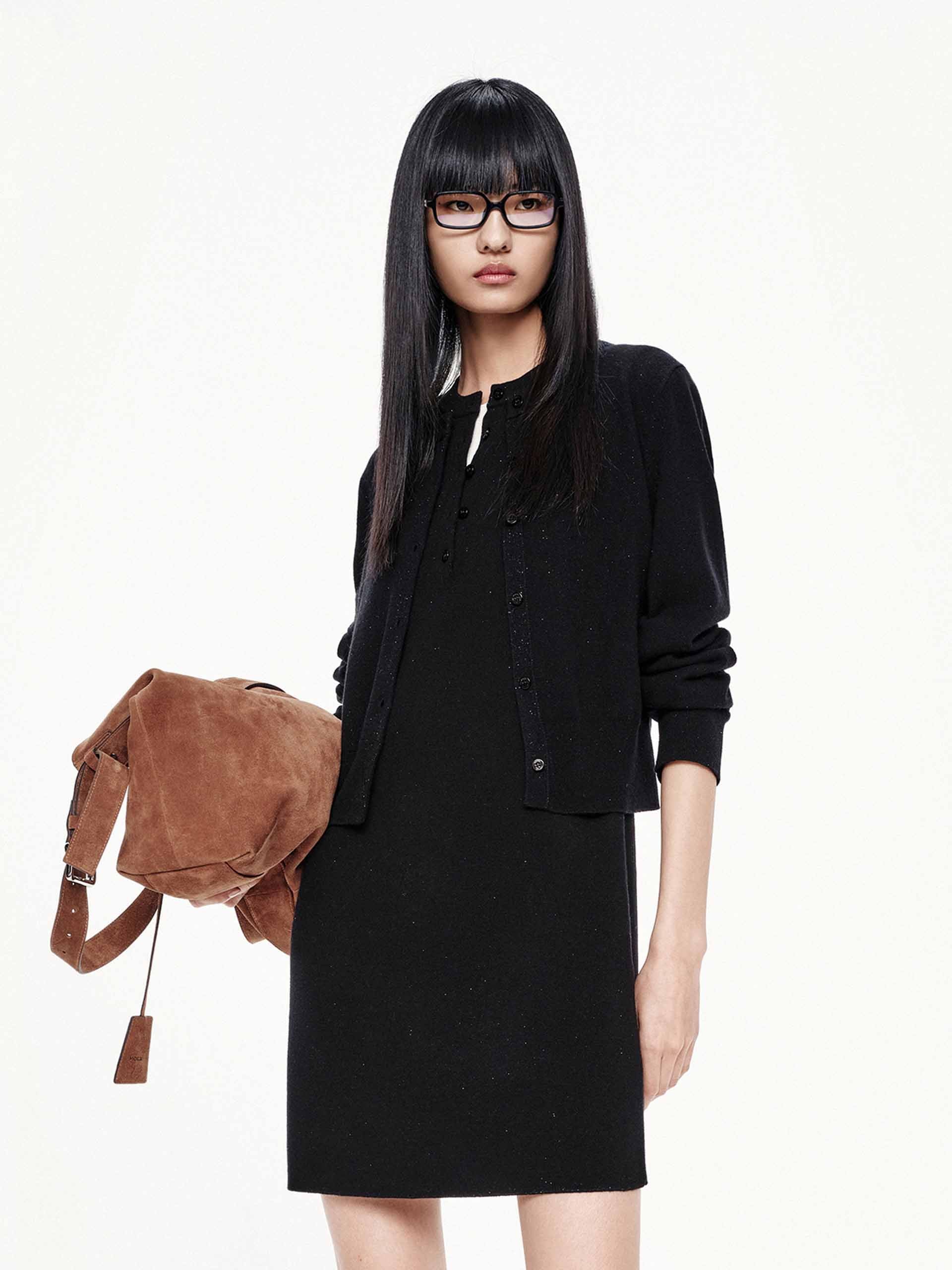 Elevate your wardrobe with this dress, a luxurious blend of cozy comfort and understated glamour. What sets this piece apart is its lustrous lurex detailing that catches the light with every movement, adding just the right amount of sparkle to your everyday look. The matching cardigan completes the set with an extra layer of sophistication.