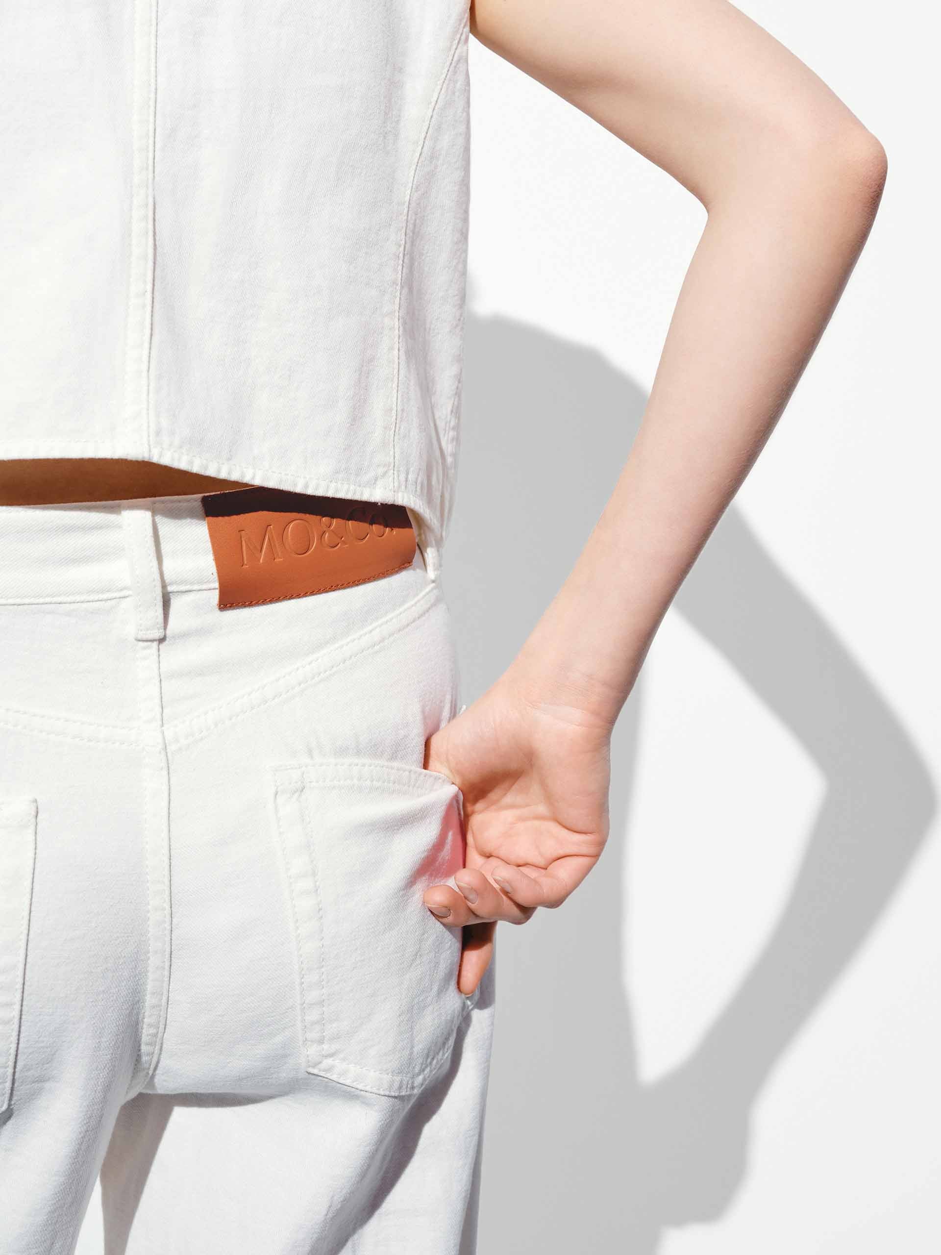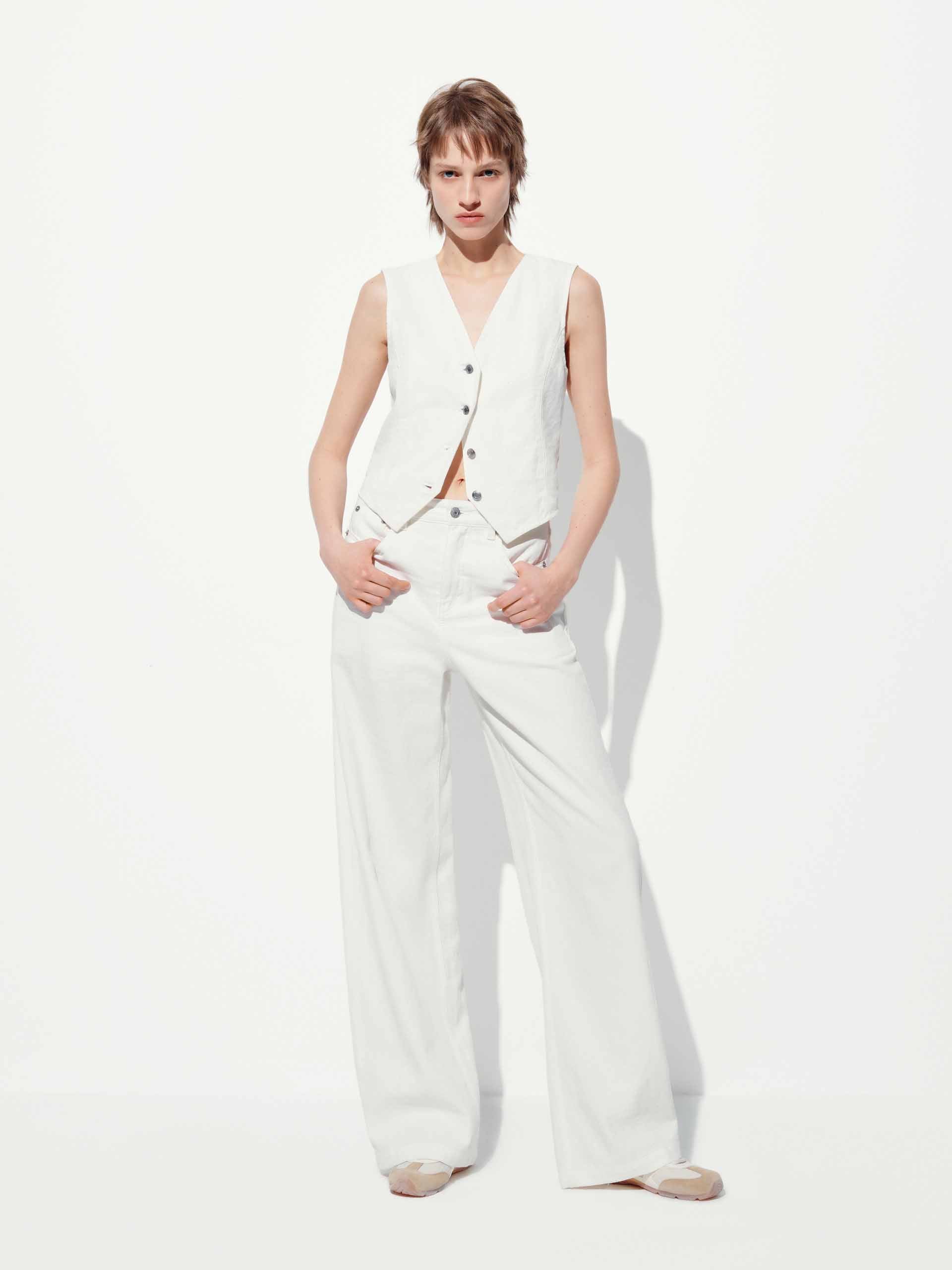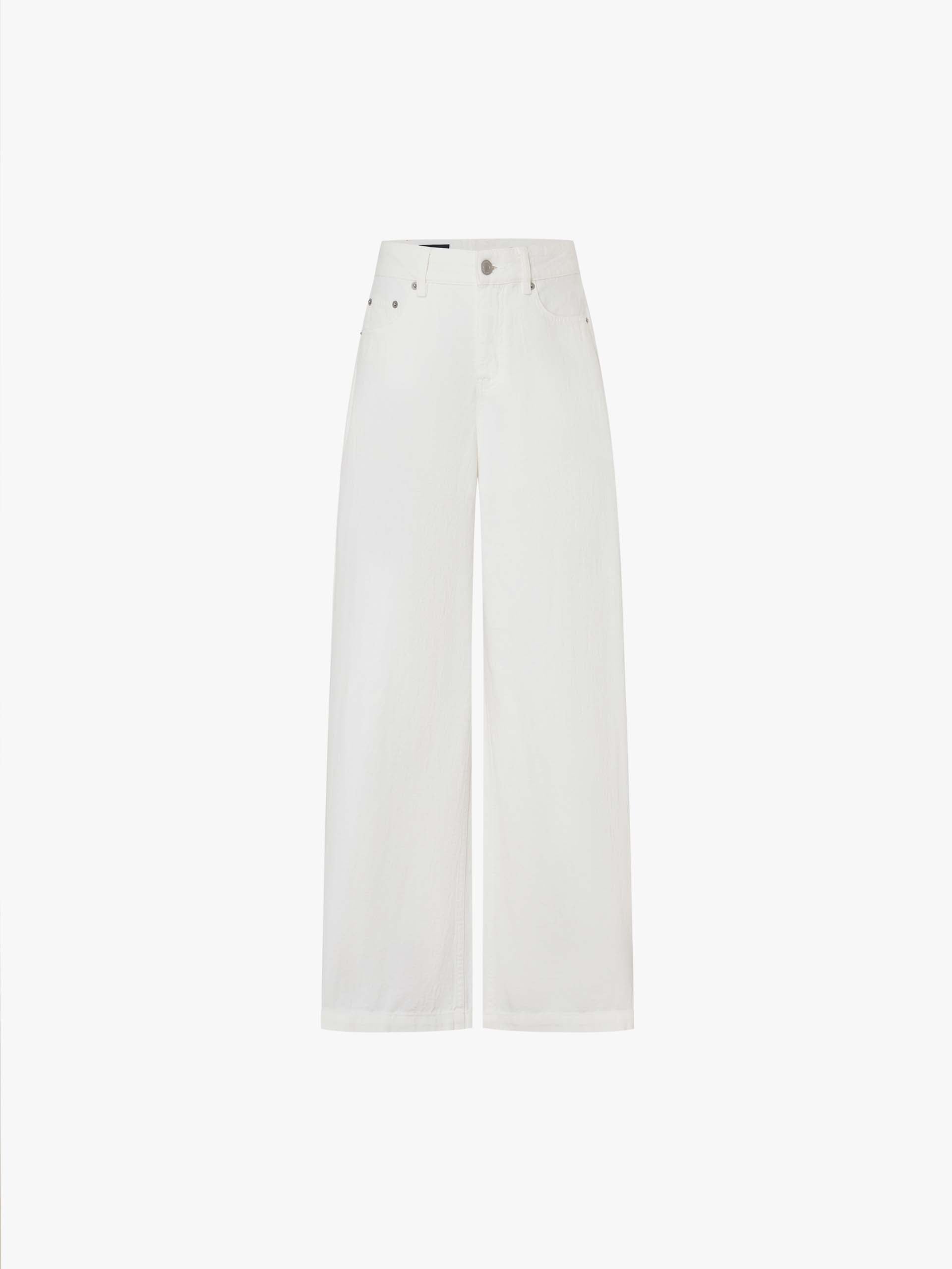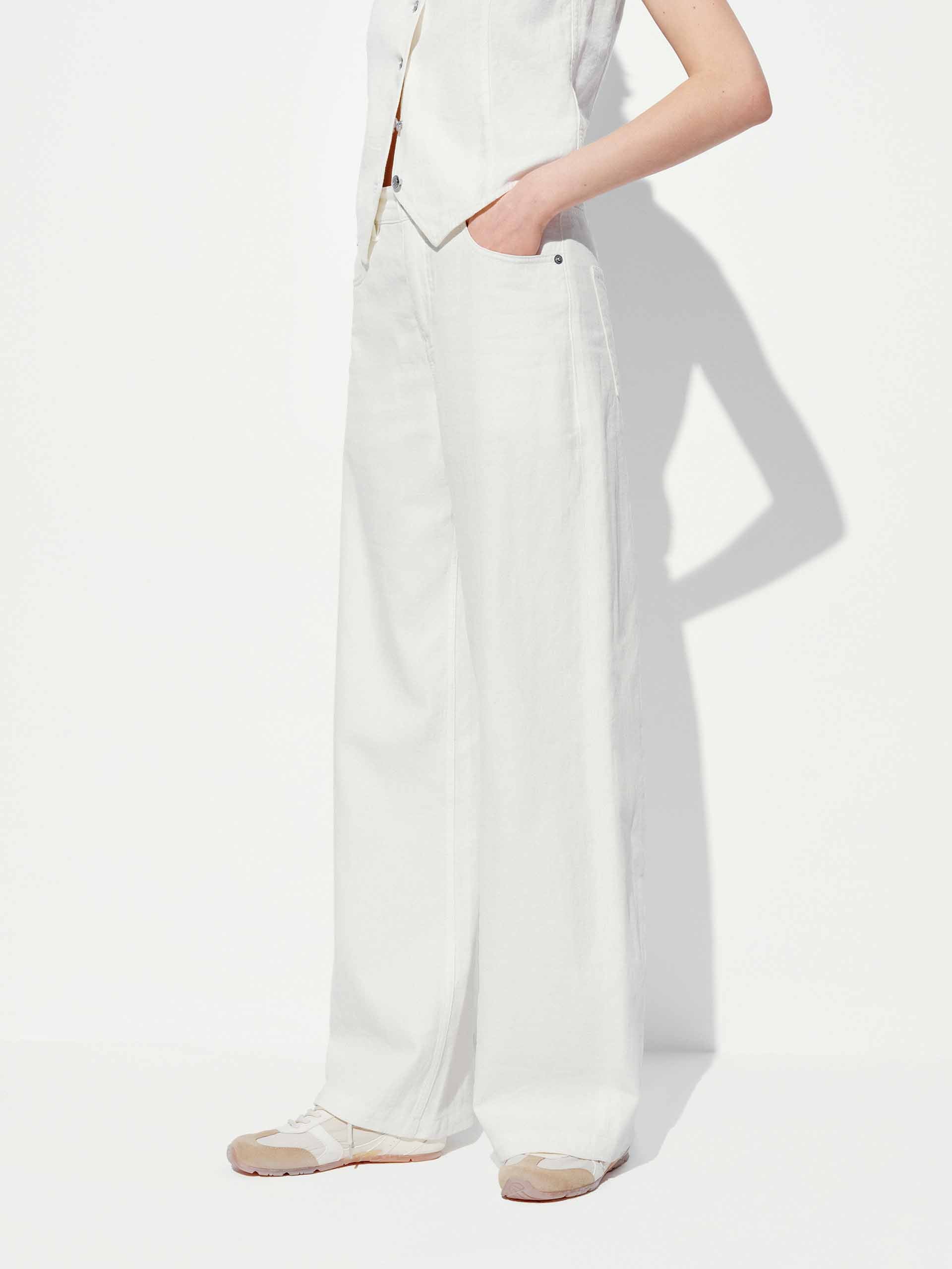 Expertly crafted from a cotton linen blend, these white jeans feature a classic straight cut and a five-pocket design. Perfect for any occasion, this wardrobe staple offers both comfort and style in one. Easily pair with any top for a timeless, polished look.