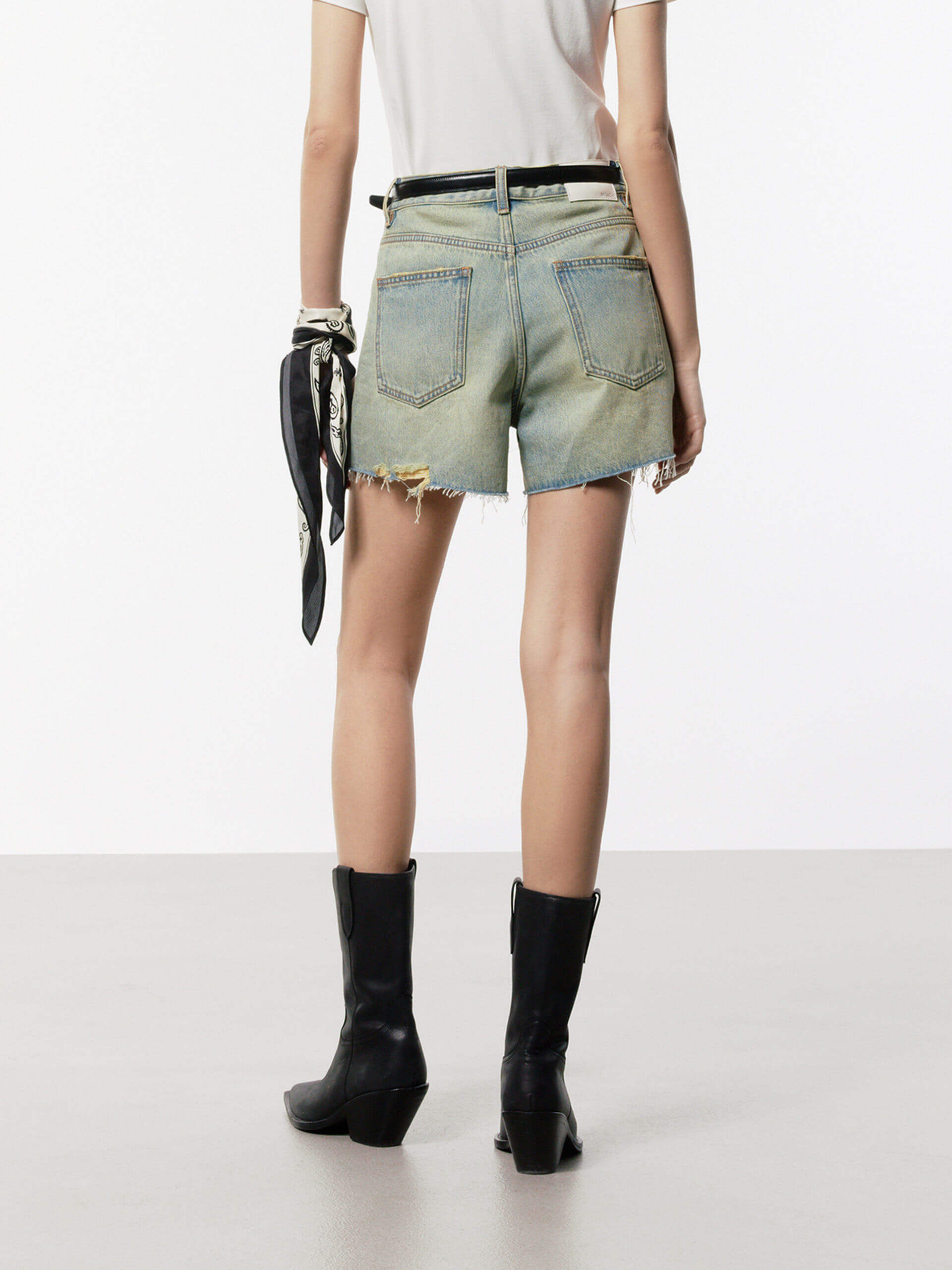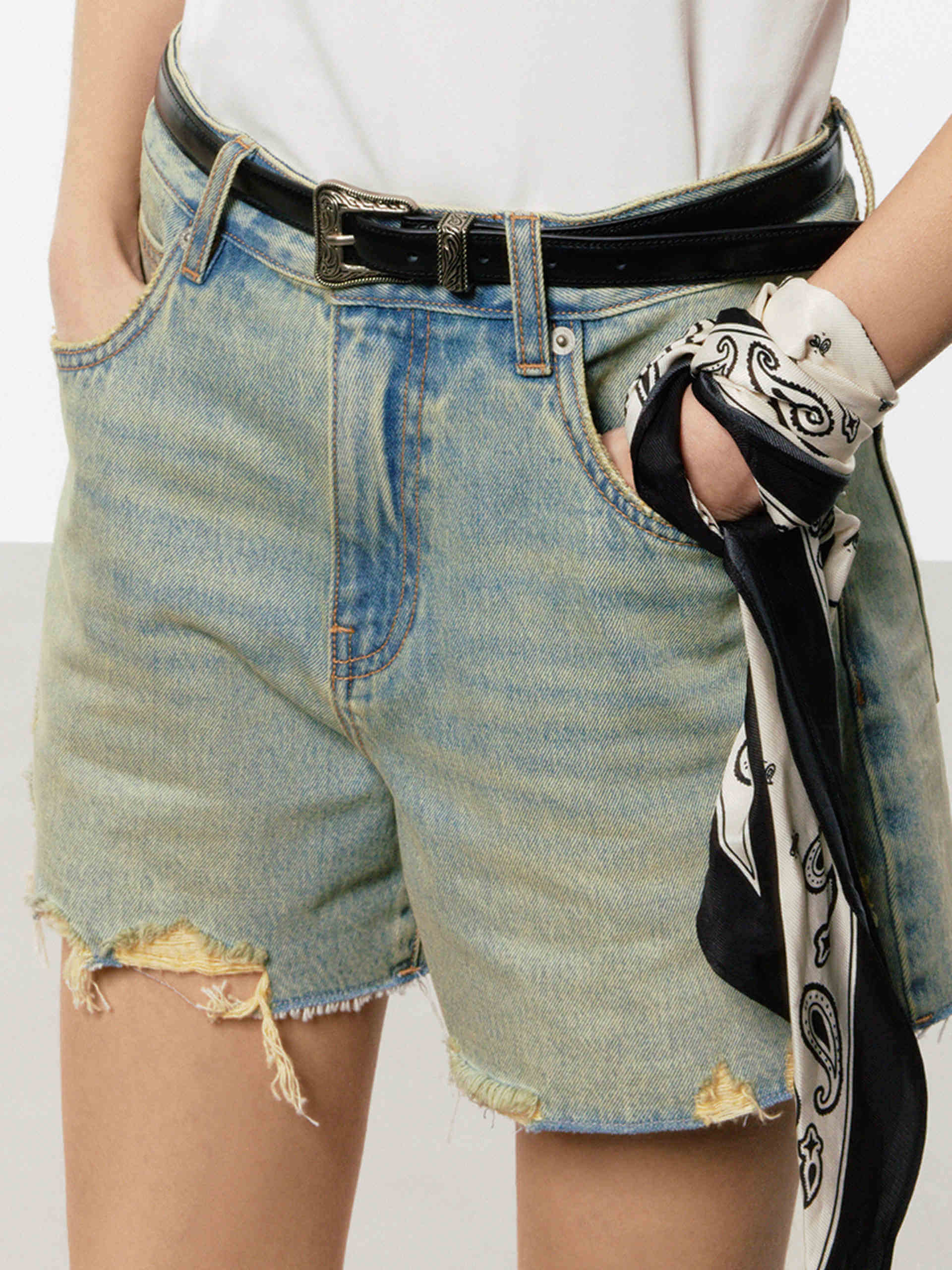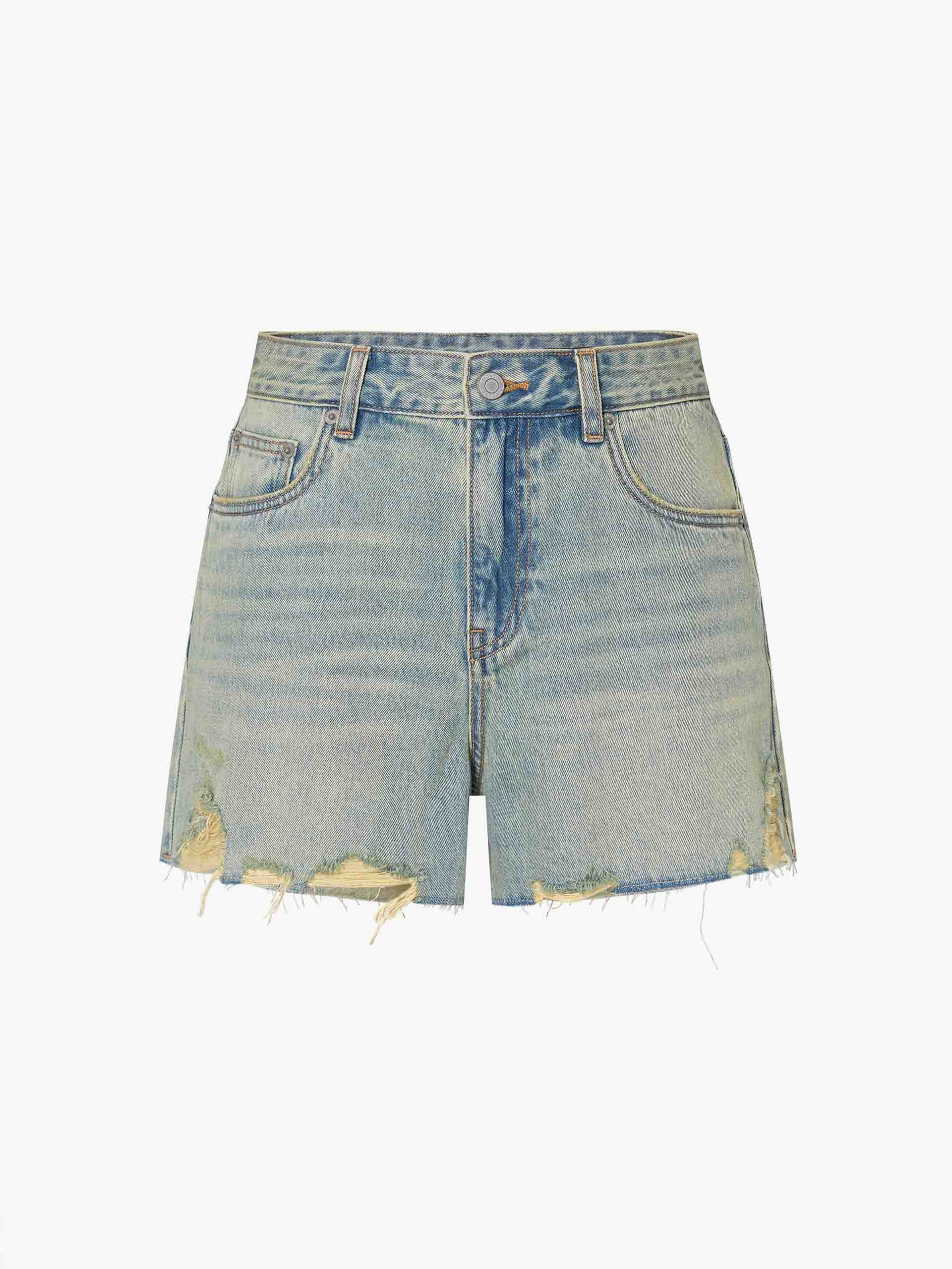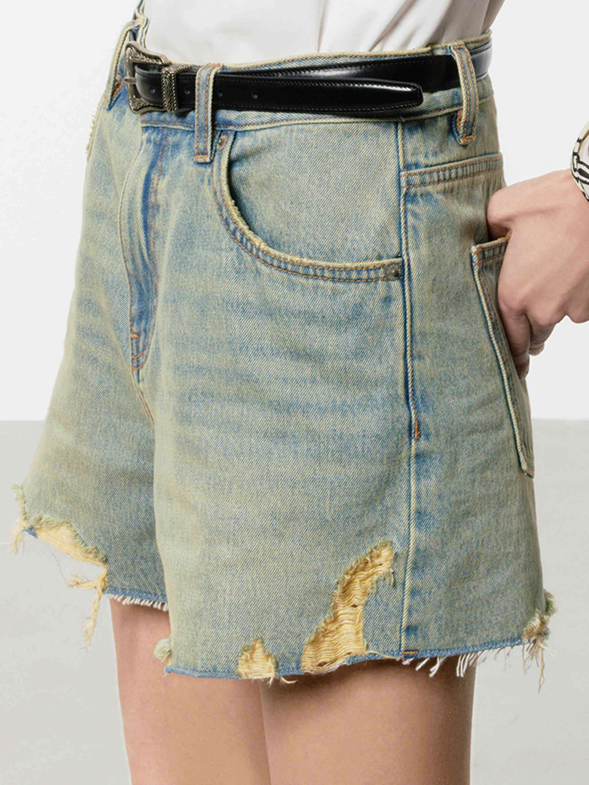 Denim Distressed Detail Shorts