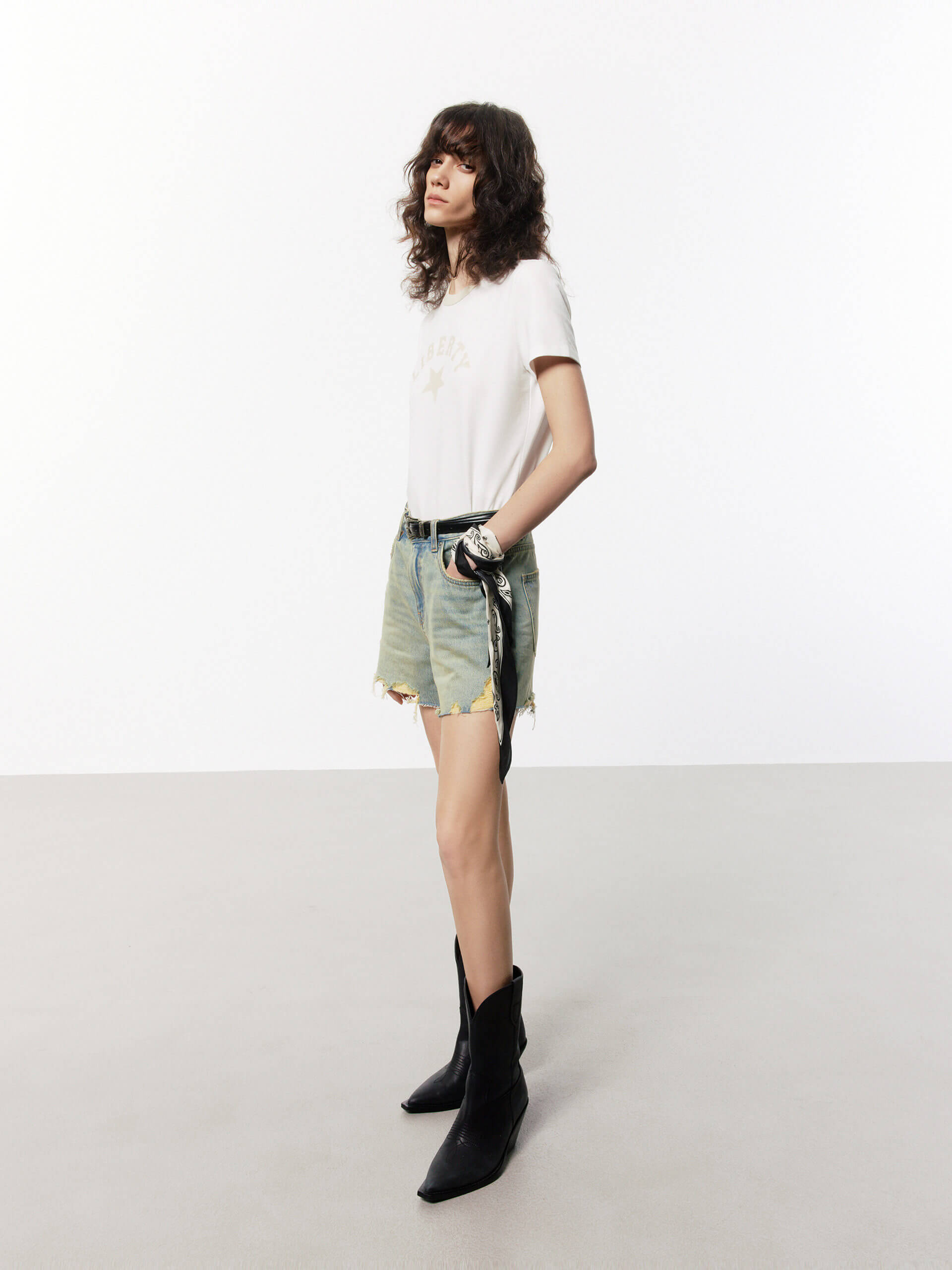 These denim shorts are made from cotton and have a low to mid-rise fit for a comfortable, effortless feel. Features distressed details giving it a stylish, vintage look. They are washed for a faded, distressed look. Perfectly paired with a T-shirt or tank top and short boots, and it is a great choice for casual, laid-back summer wear.