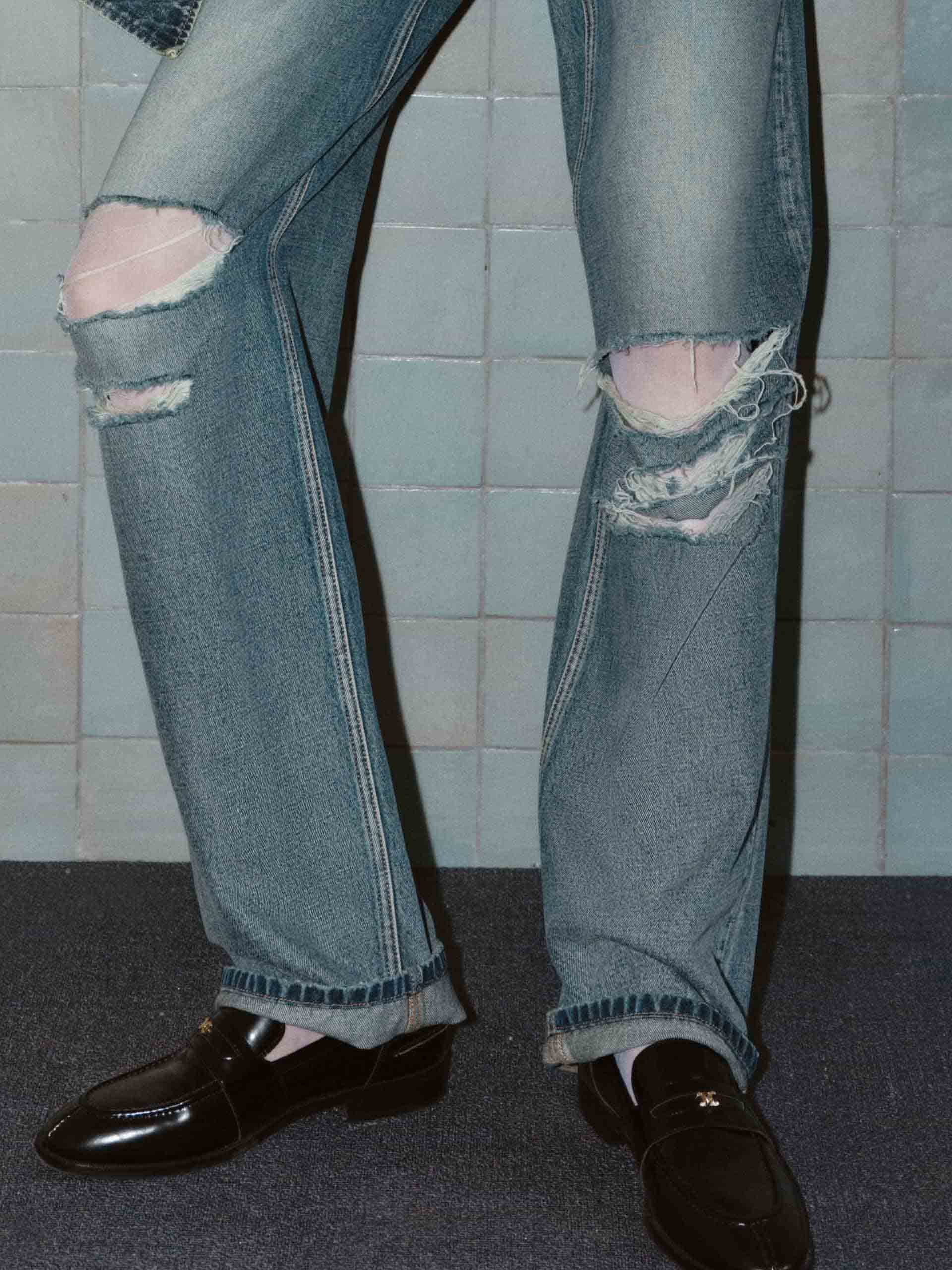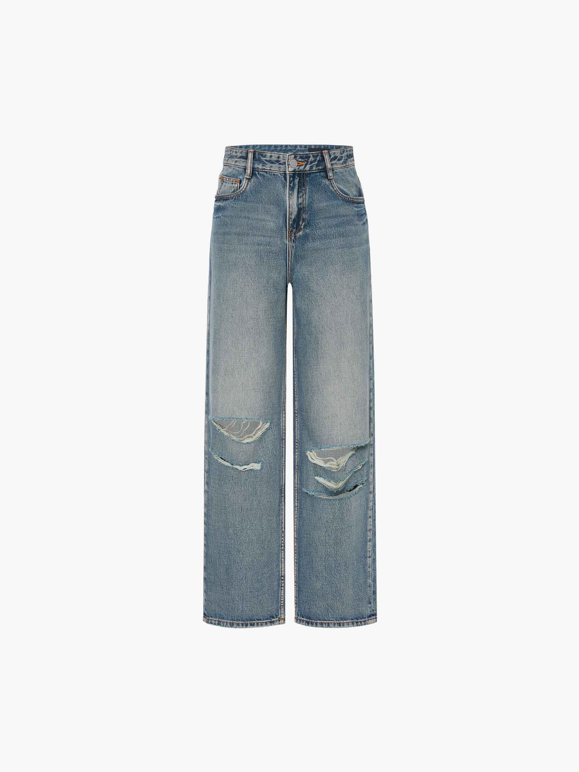- Distressed and ripped details