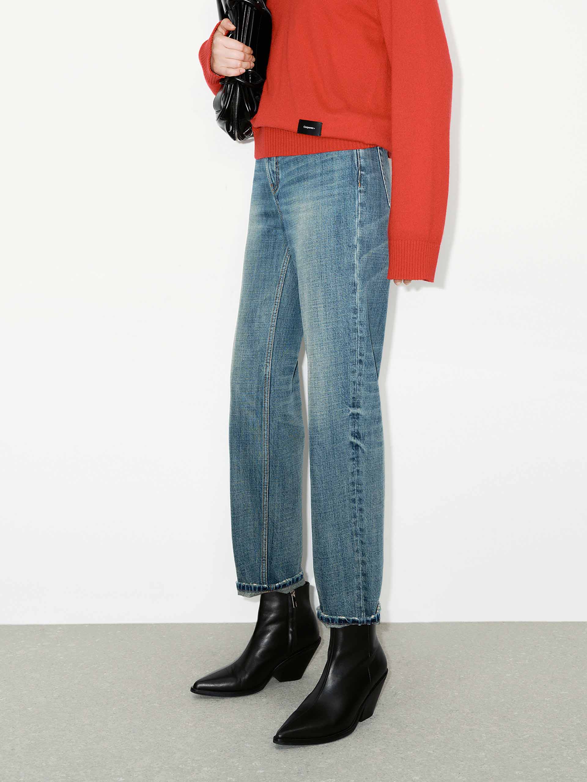 These jeans are expertly crafted for a comfortable fit with a cotton blend, featuring straight legs and an ankle length. Ideal for pairing with short boots and knitwear for a stylish look.