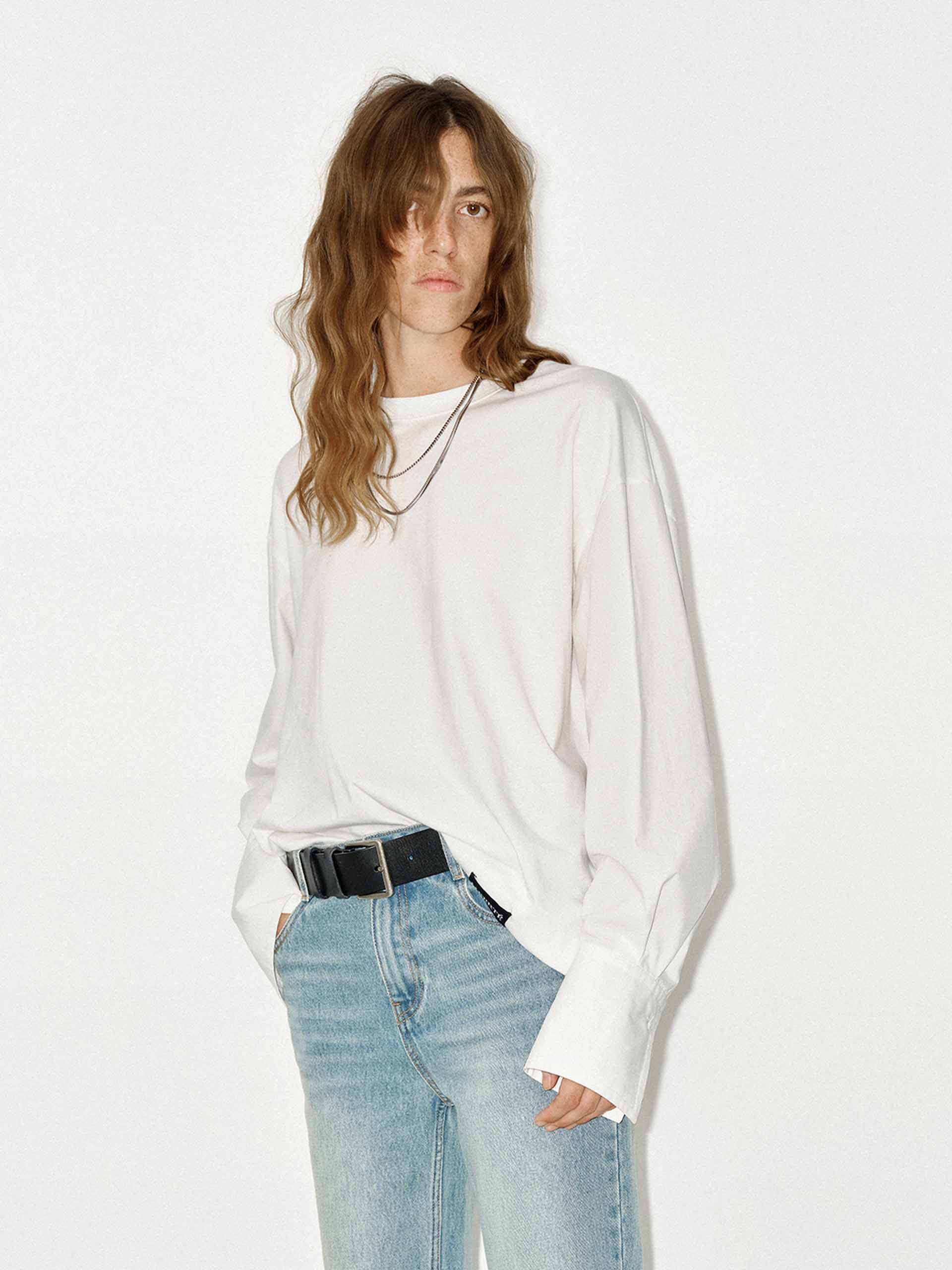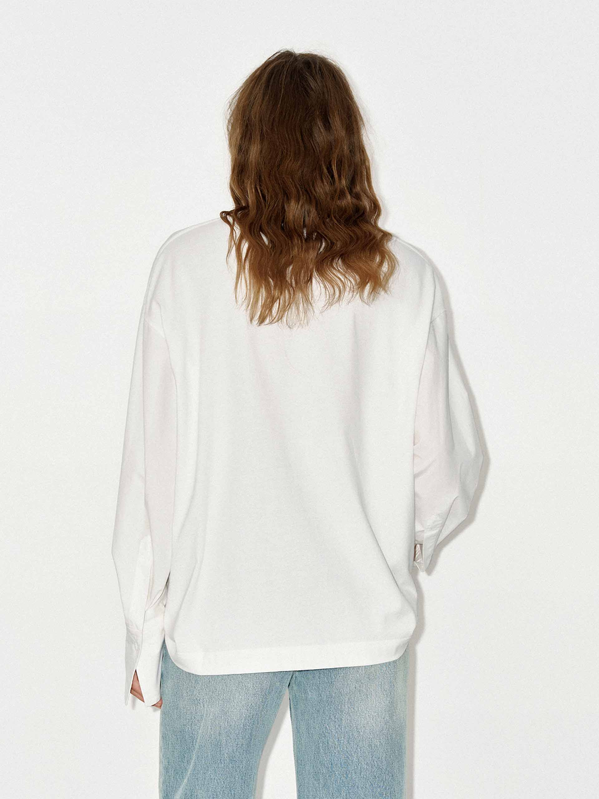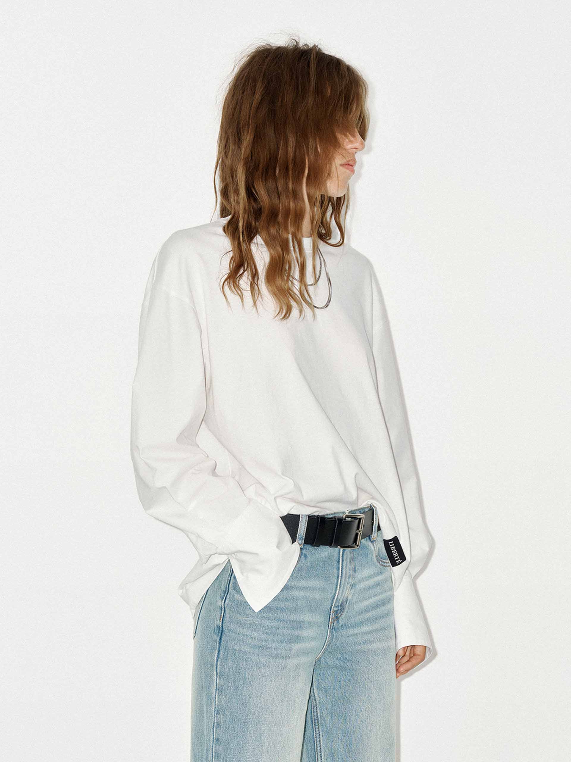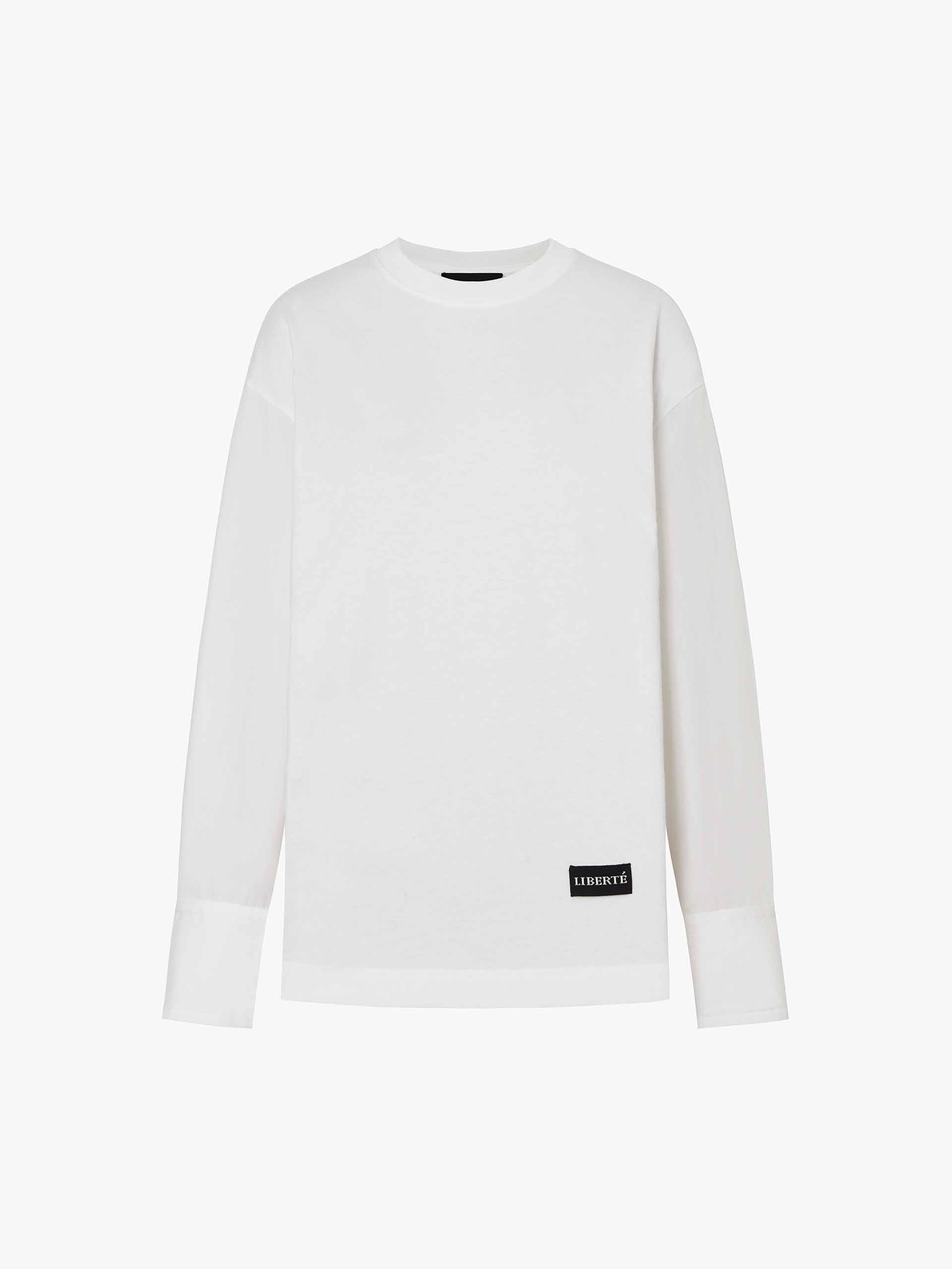 Crafted from soft, breathable cotton, this top provides ultimate comfort and a classic style. This top has a crewneck design and a loose fit. Paneled shirt sleeves add a touch of detail to this versatile and timeless piece.